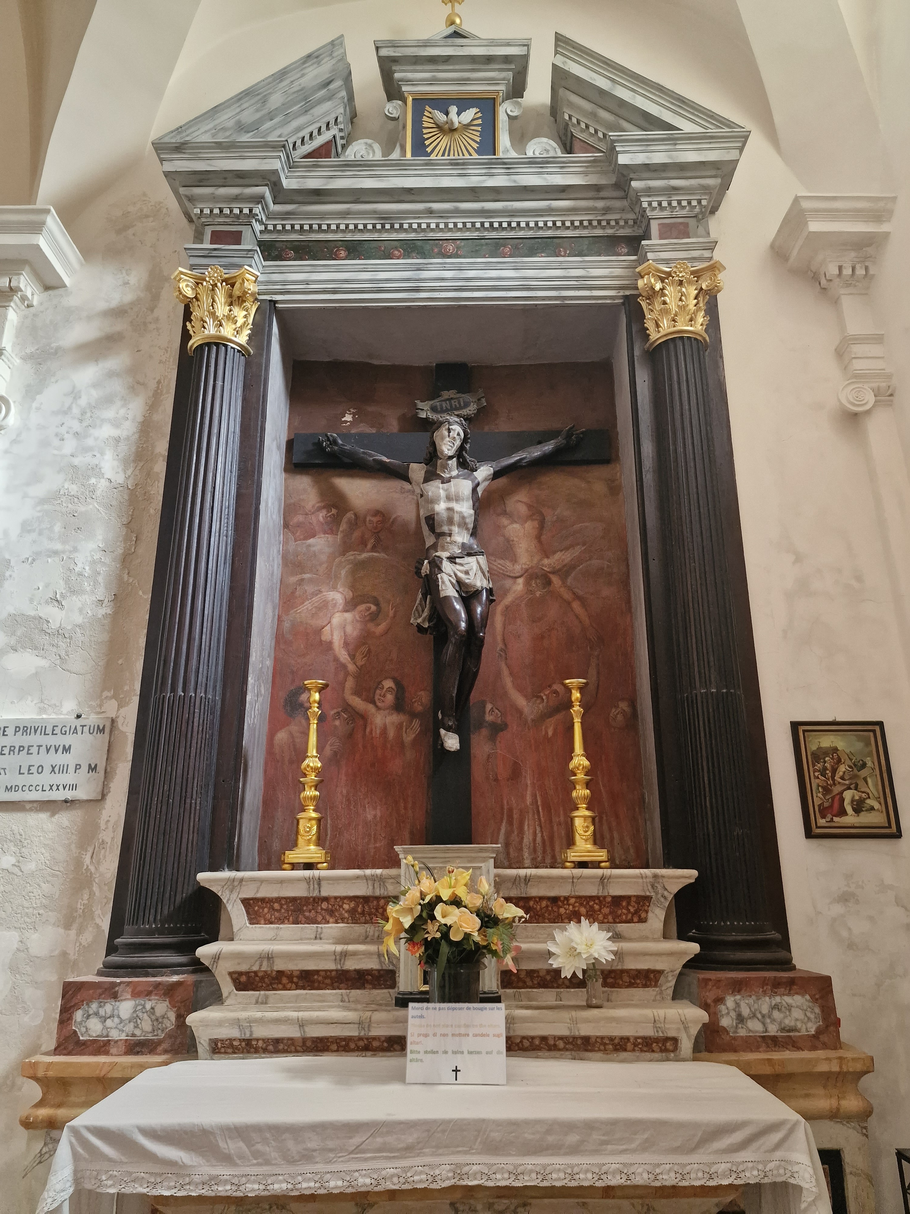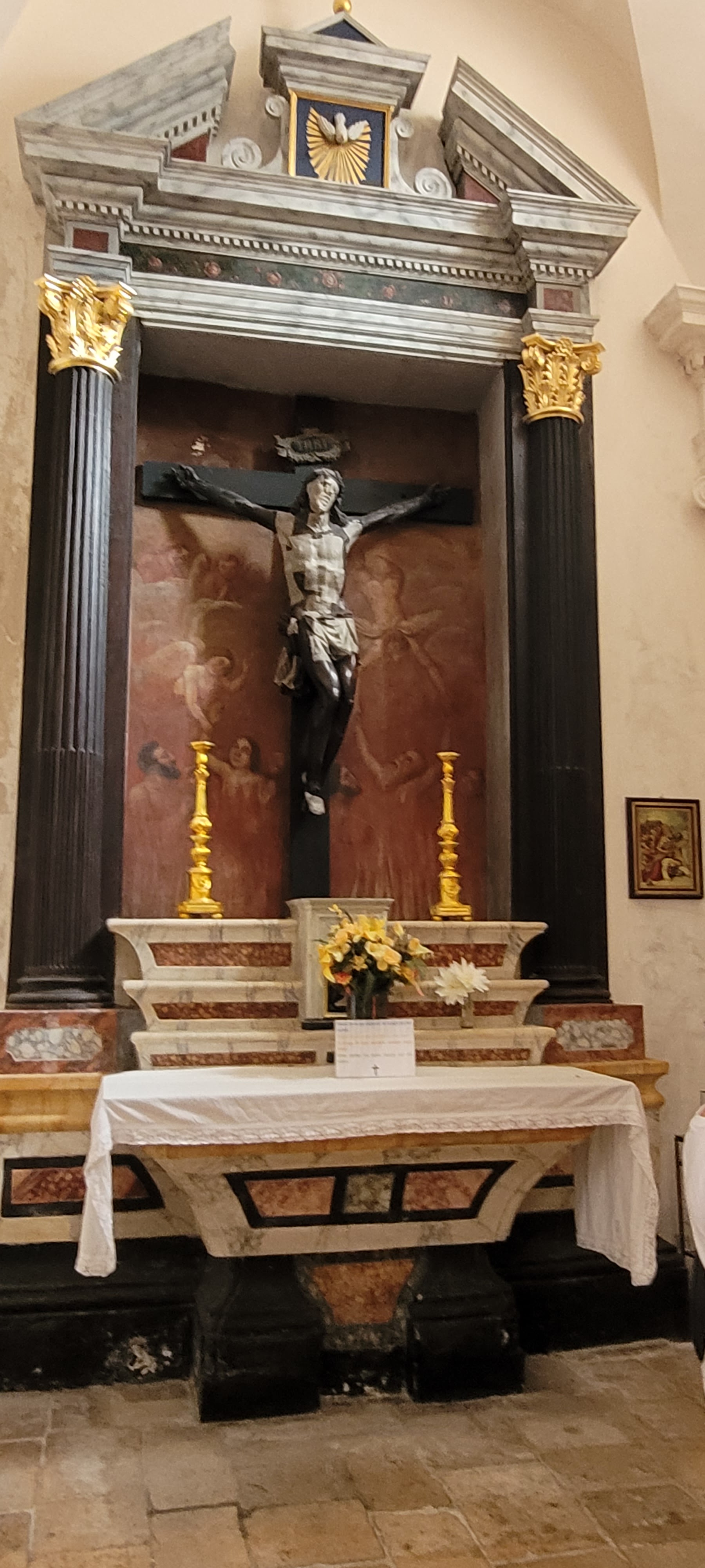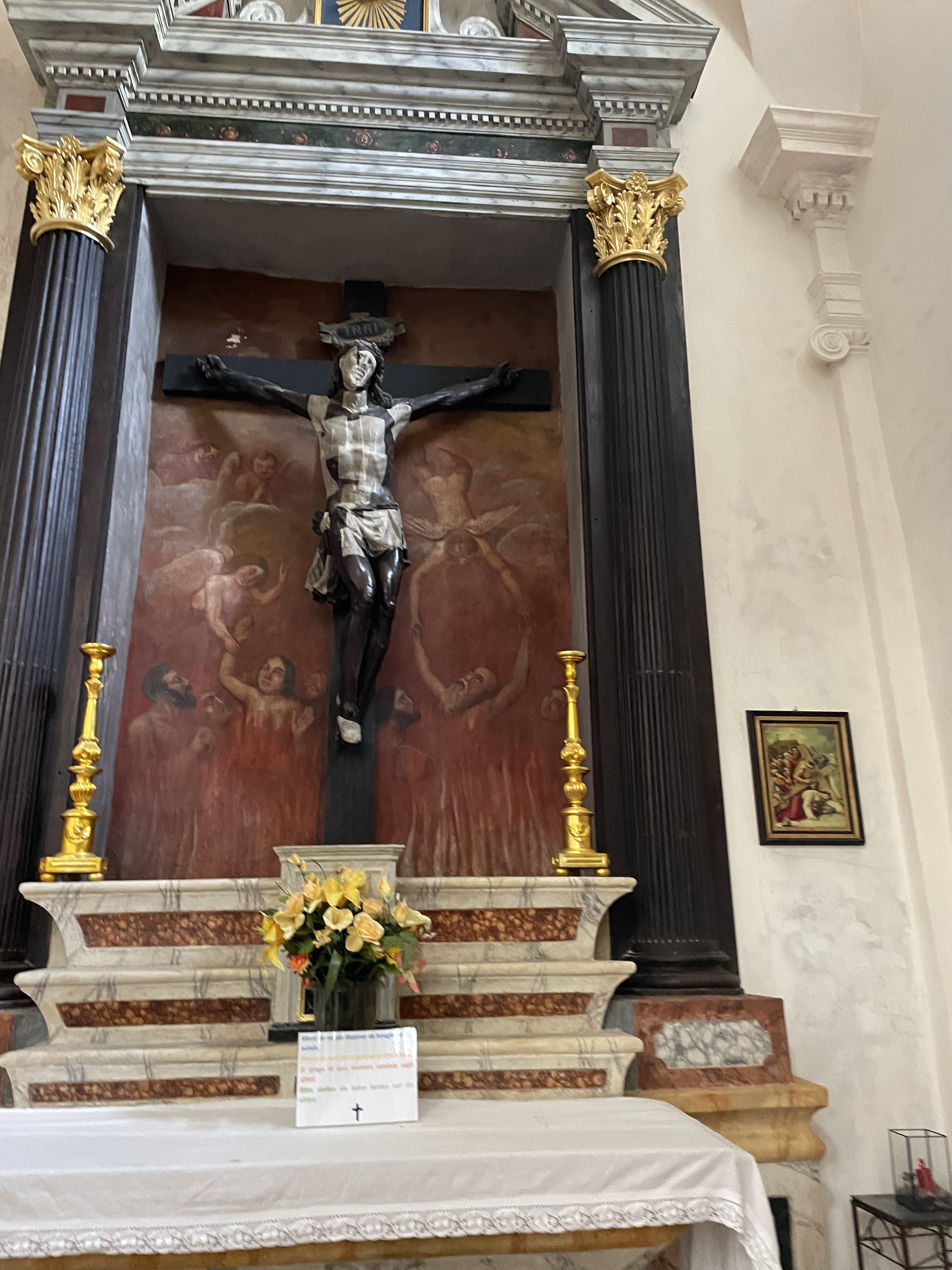 Très belle église de la vieille ville de Bonifacio. Peinture et Christ noir intéressants.