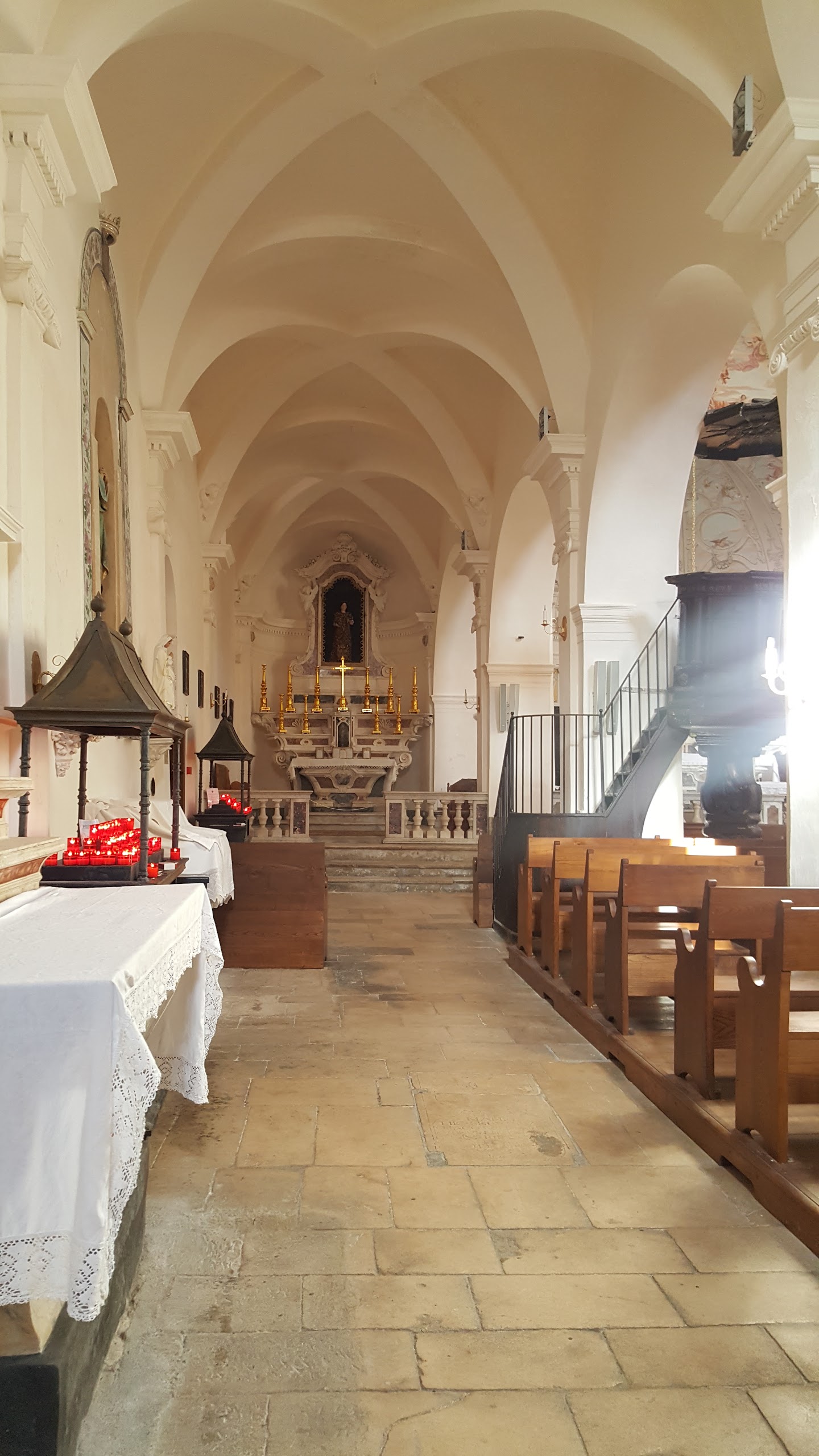 Ancienne église de Bonafacio, bien agréable pour se rafraîchir après la montée au sommet (quelques +70m). Bel intérieur et décoration.
