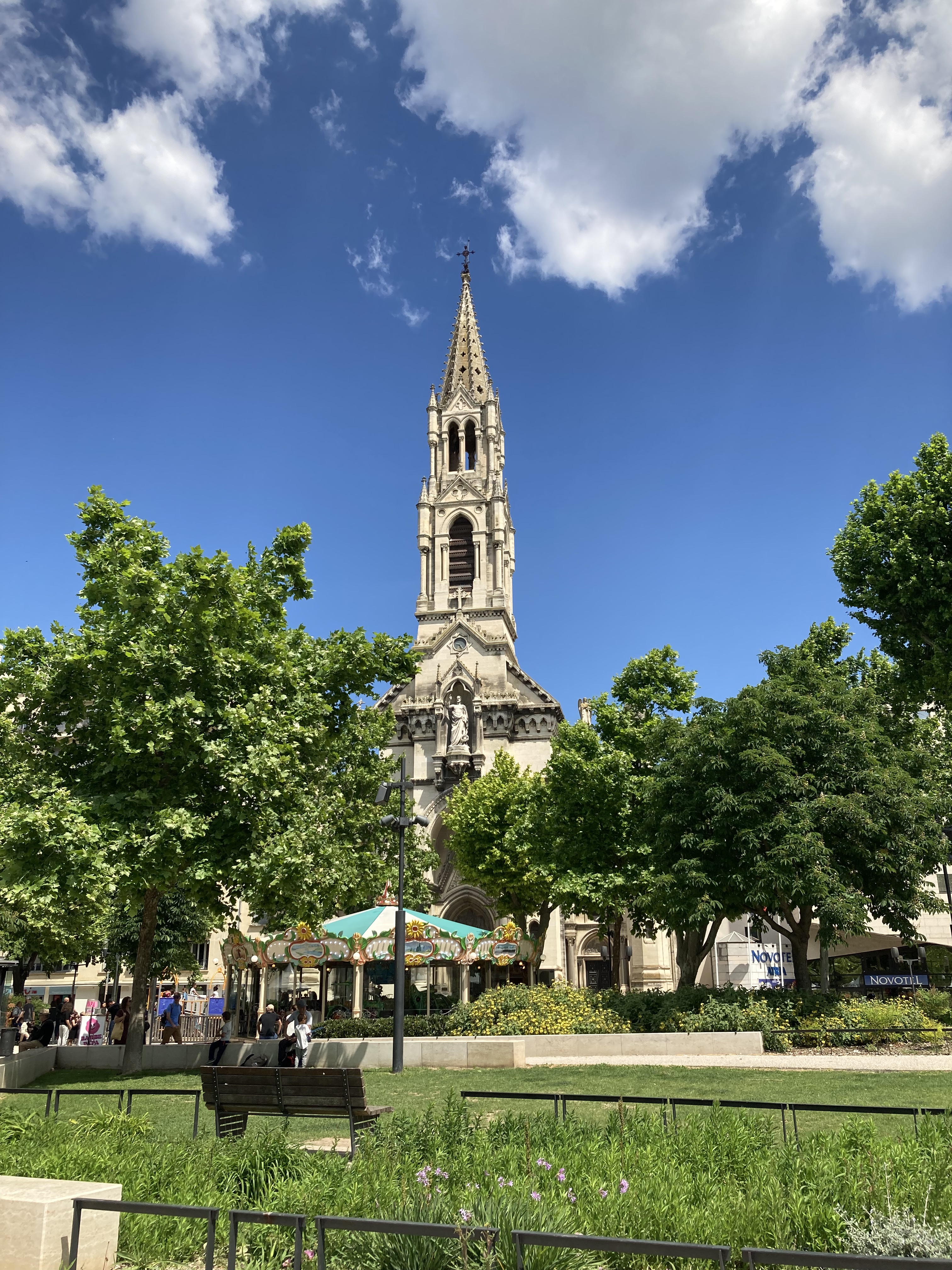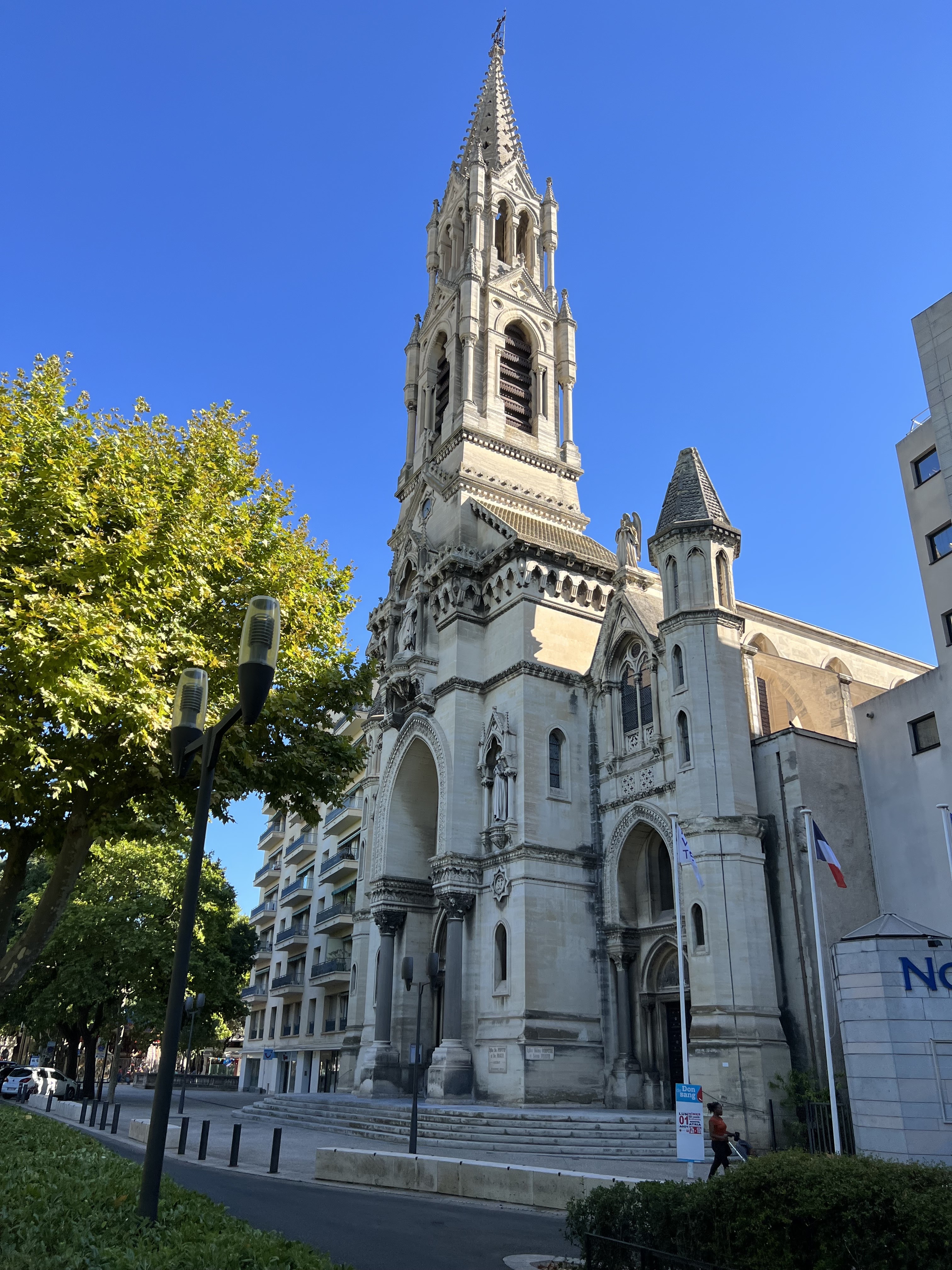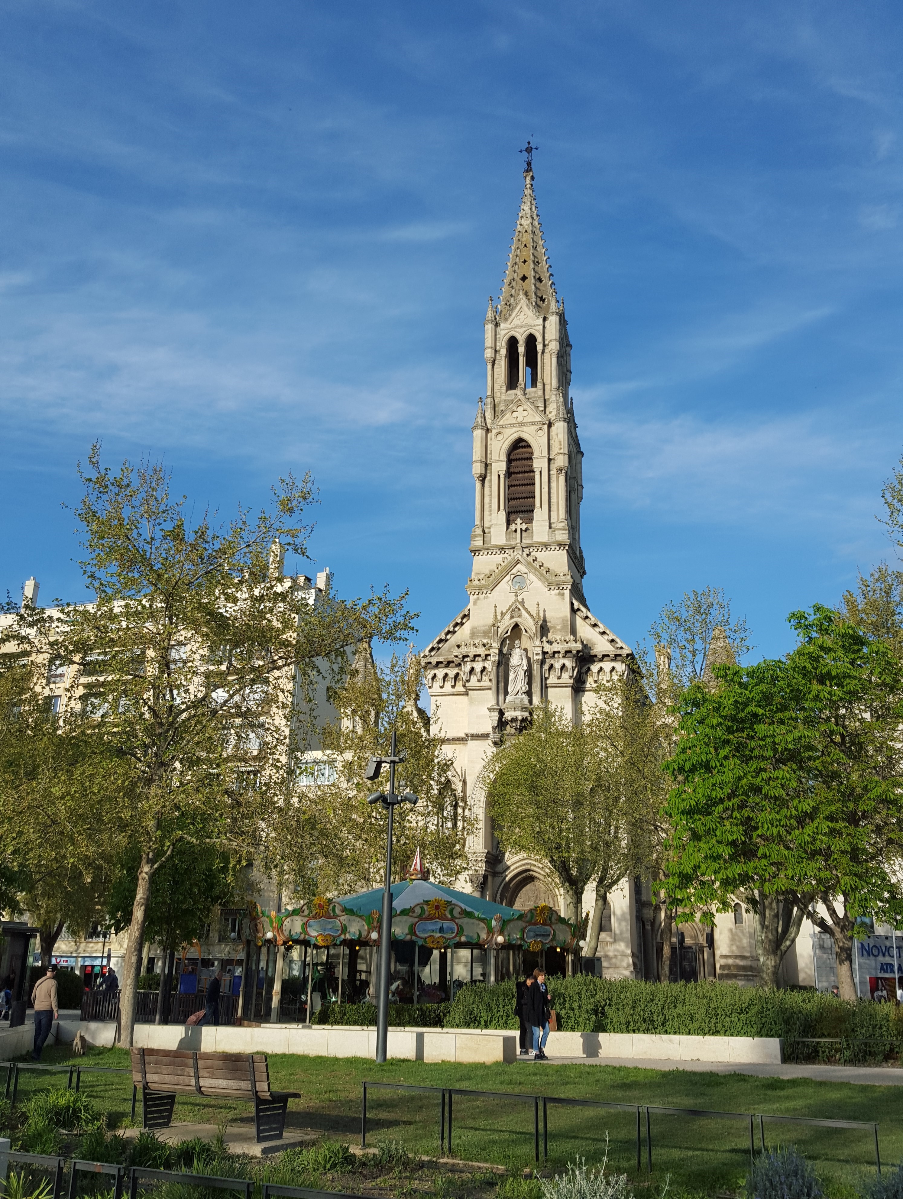 Église catholique sur l'esplanade, messes matinées et soirées très appréciées des Nîmois