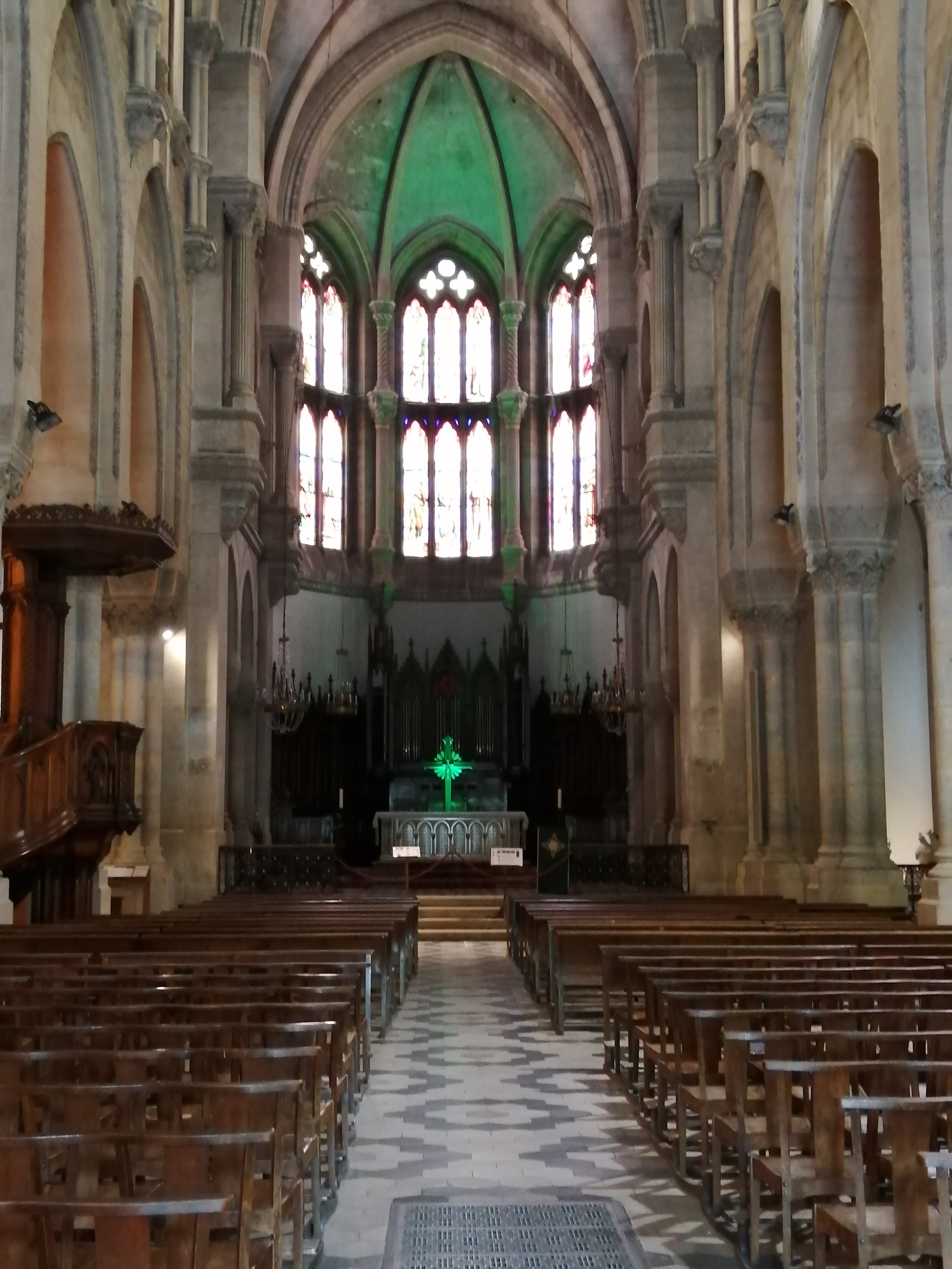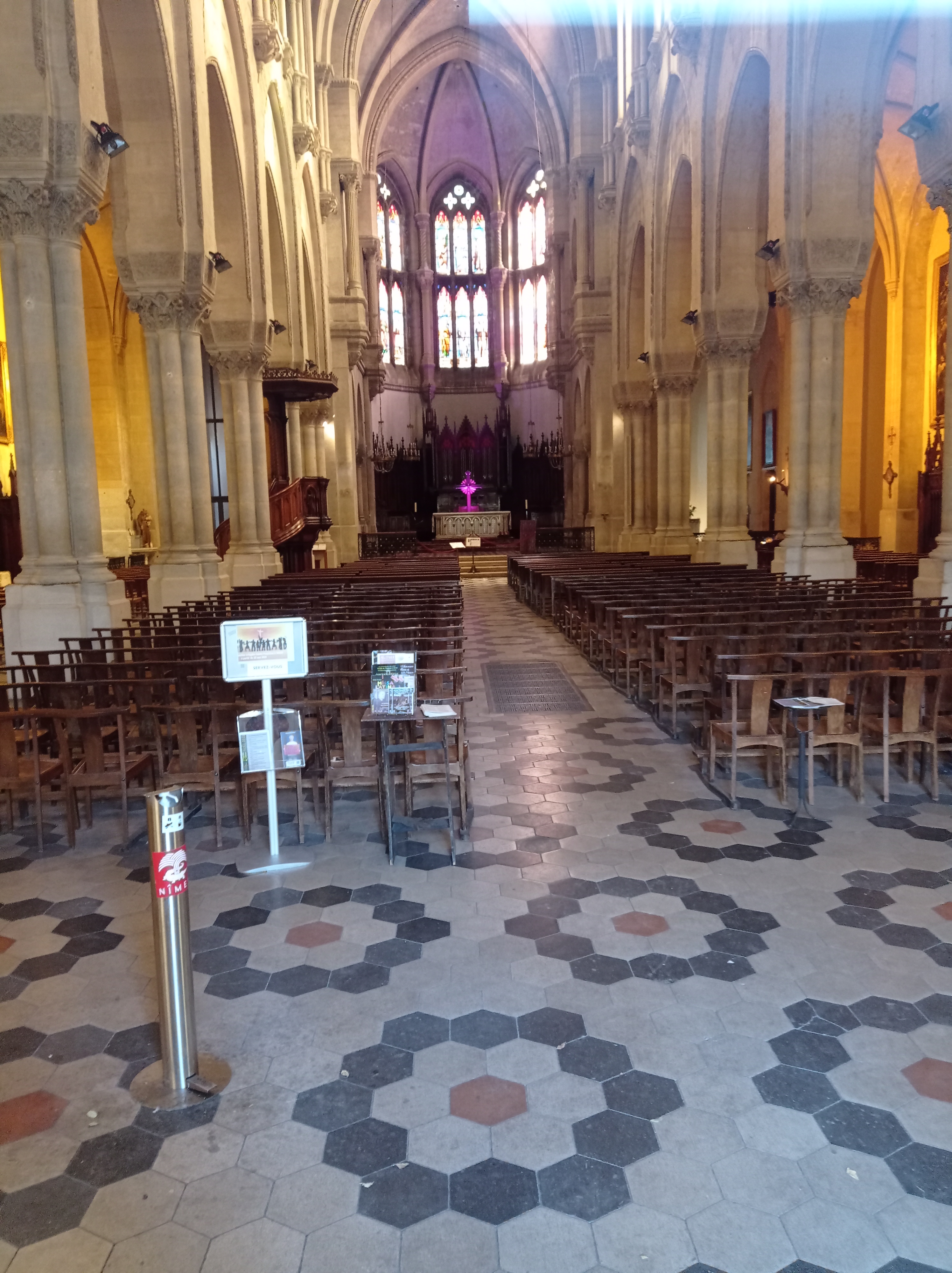Superbe édifice religieux. Une majestueuse église qui trône en centre ville à deux pas de l'esplanade Charles de Gaulle. Un bureau d'accueil est ouvert dans l'église pour toute information, église très bien entretenue et des bouquets de fleurs trônent devant l'autel.