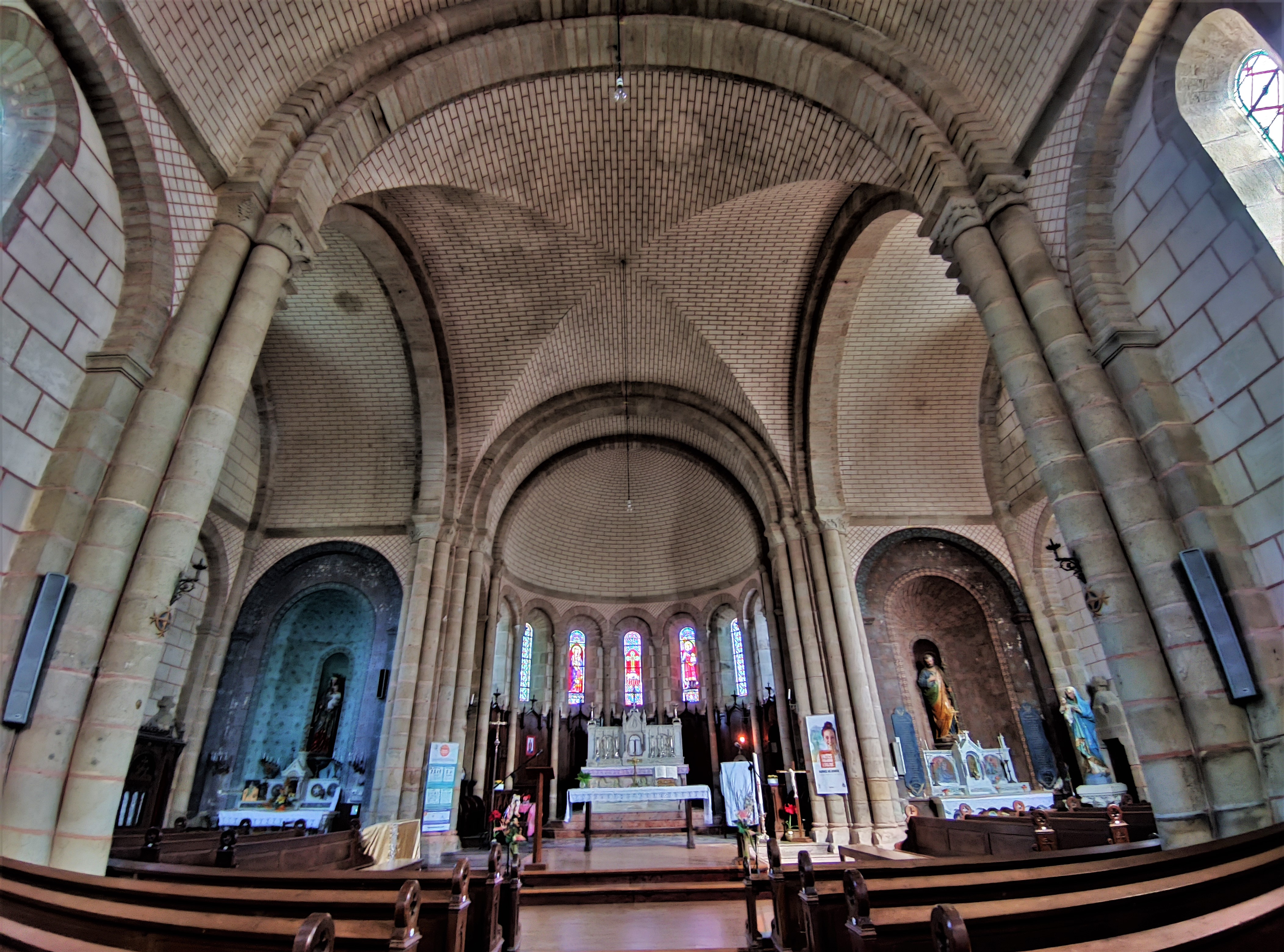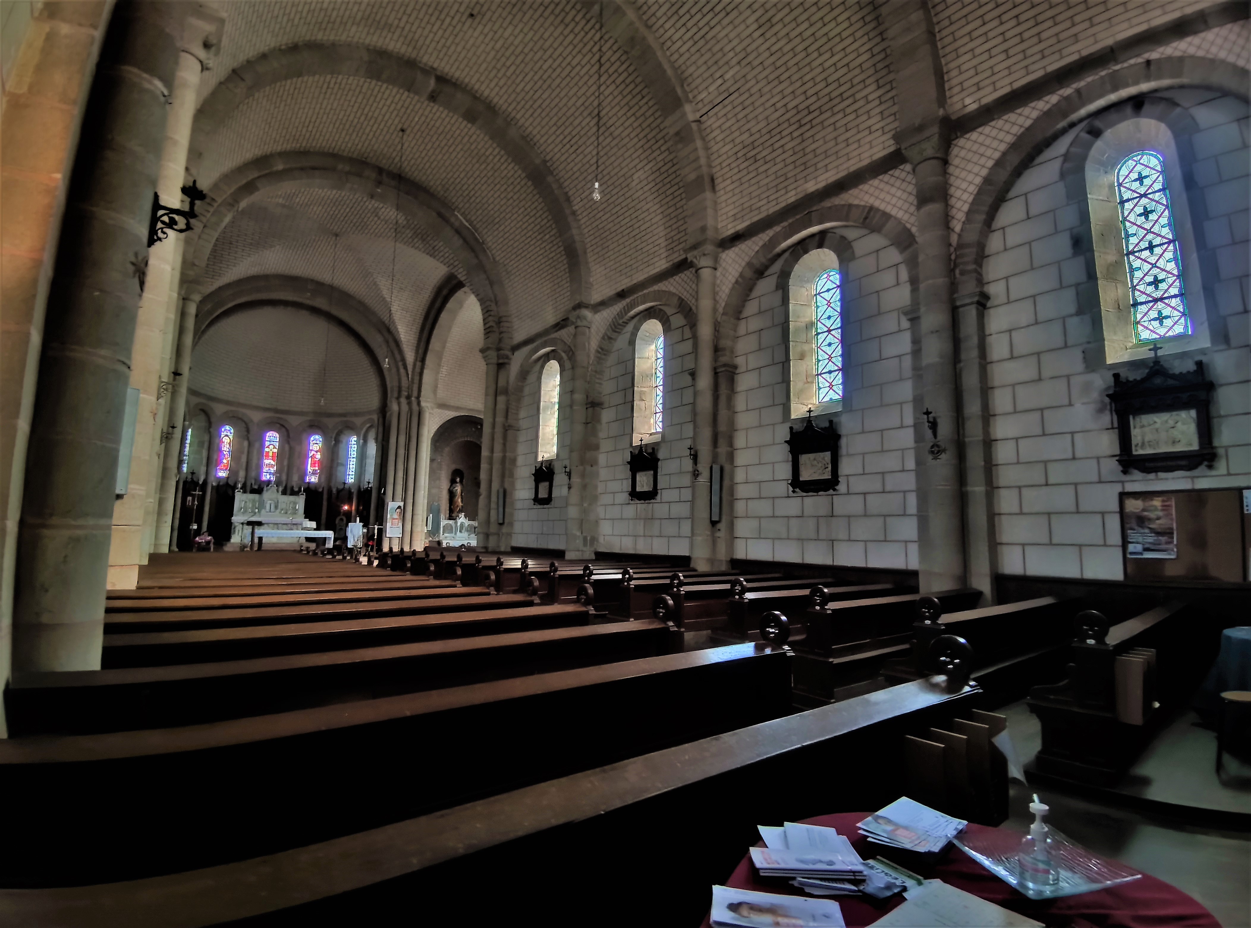 Une charmante église néo-romane dans une région où les traditions religieuses perdurent. Après cette visite, j'ai découvert l'existence de La Petite Église des Deux-Sèvres, aujourd'hui association loi 1901. Réunissant depuis 1801 des dissidents anticoncordataires, ce phénomène local met en lumière la culture religieuse des paroissiens. L'église Sainte-Radegonde de Cirières fut construite par les habitants sous la tutelle de l'abbé Chauveau. Architecte et entrepreneur, ce dernier mena à bien ce projet, l'église fut consacrée en 1868. Elle remplaça l'église primitive démontée par les mêmes habitants. Du portail à tympan aux voûtes en berceau ou d'arêtes, la demi-coupole du sanctuaire, les arcatures de la nef et toutes les courbes en plein cintre, c'est une église charmante qui décline les spécificités de l'art roman. Ouverte et accueillante, cette église rassemble. Le plan est en croix latine, la nef à vaisseau unique, le transept possède une absidiole dans chaque croisillons, absidioles embellies de décors peints. Le chœur, ses 7 vitraux et le maître-autel attirent le regard. Sainte-Radegonde figure sur le bas relief de l'autel et sur un vitrail.