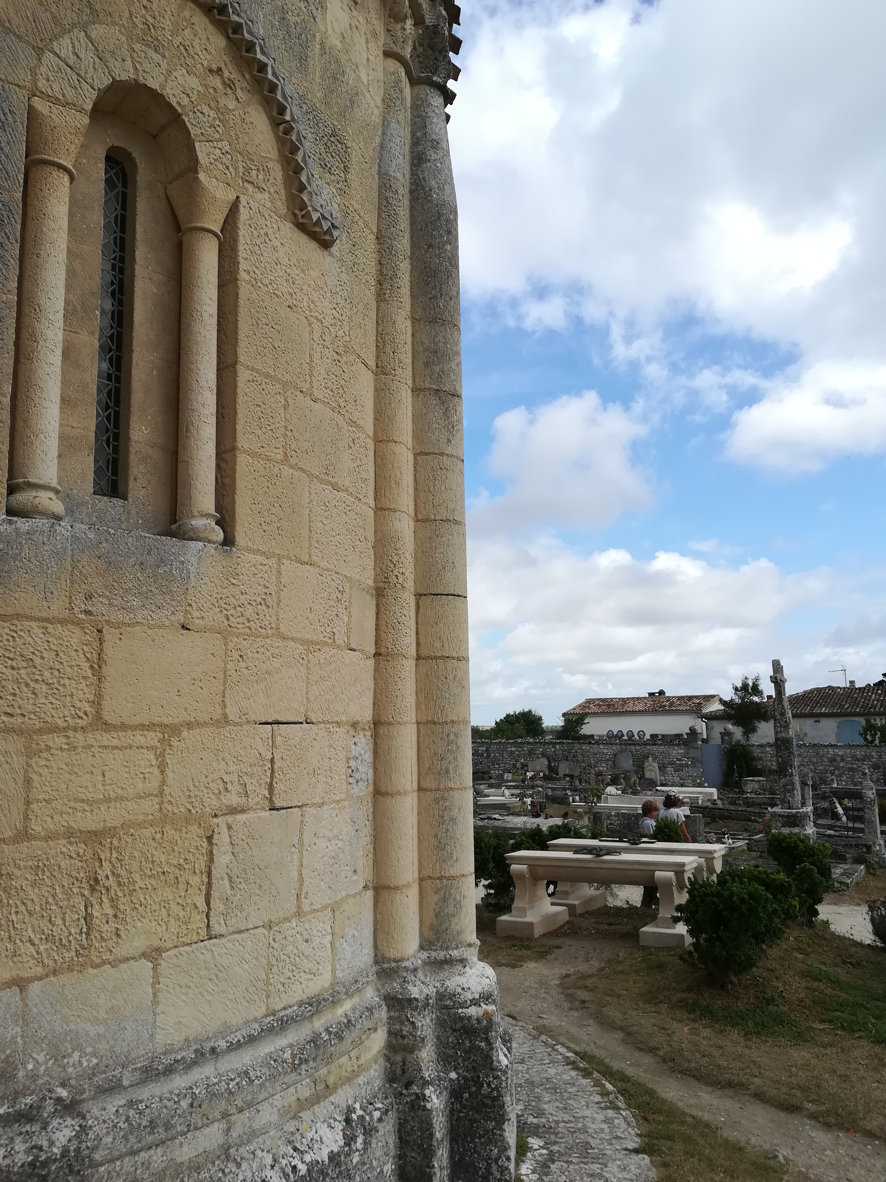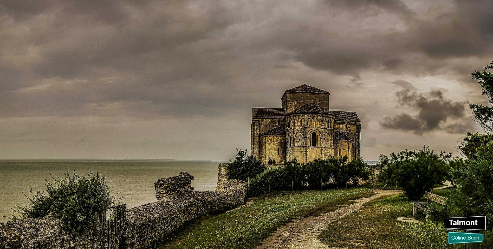 Le trésor de Talmont-sur-Gironde. Un chef-d’œuvre dressé face à la mer, ses renforts énormes lui permettent d’affronter les éléments déchainés. Le cimetière et ses tombes sur colonnettes renforcent cette richesse historique. Une petite église et un très grand refuge pour les habitants de ce village où certaines journées d’hiver ressemblent à s’y méprendre à celles passées sur un bateau dans la tempête. (le roulis et le tangage en moins)