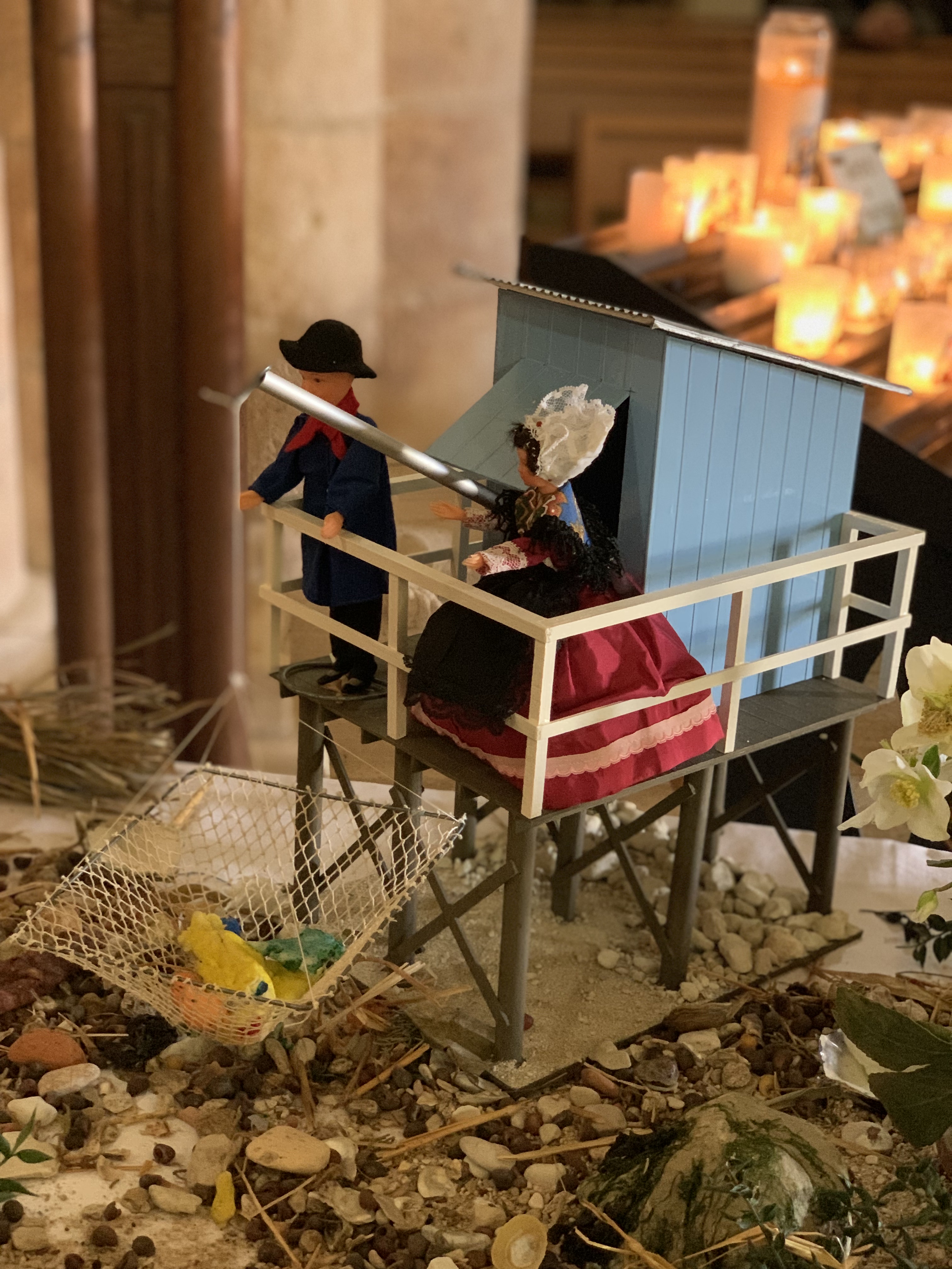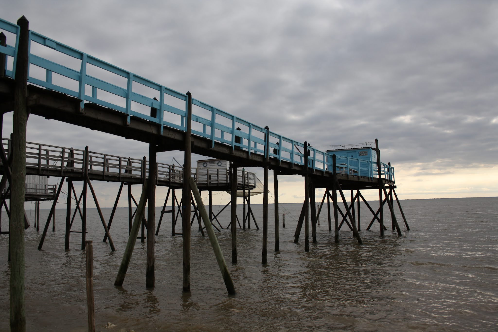 Une jolie église, simple et dépouillée..... Le site est au dessus de la mer. La vue est sympathique, les cabanes pour pêcher le carrelet..... Les photographes amateurs mitraillent le jolie paysage.....