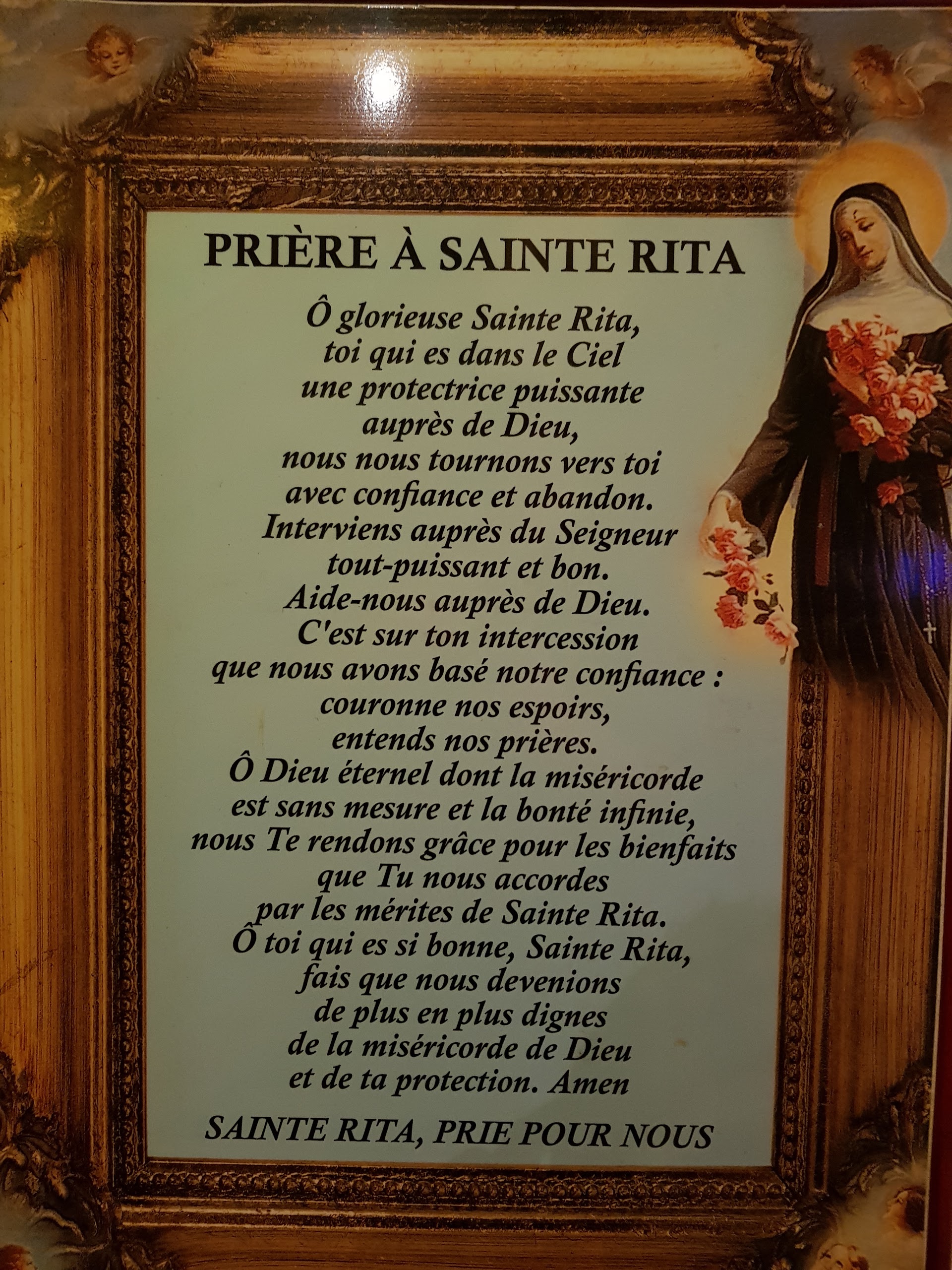 J'ai la devotion à Sainte Rita, l'avocate des causes impossibles! Priez pour nous!