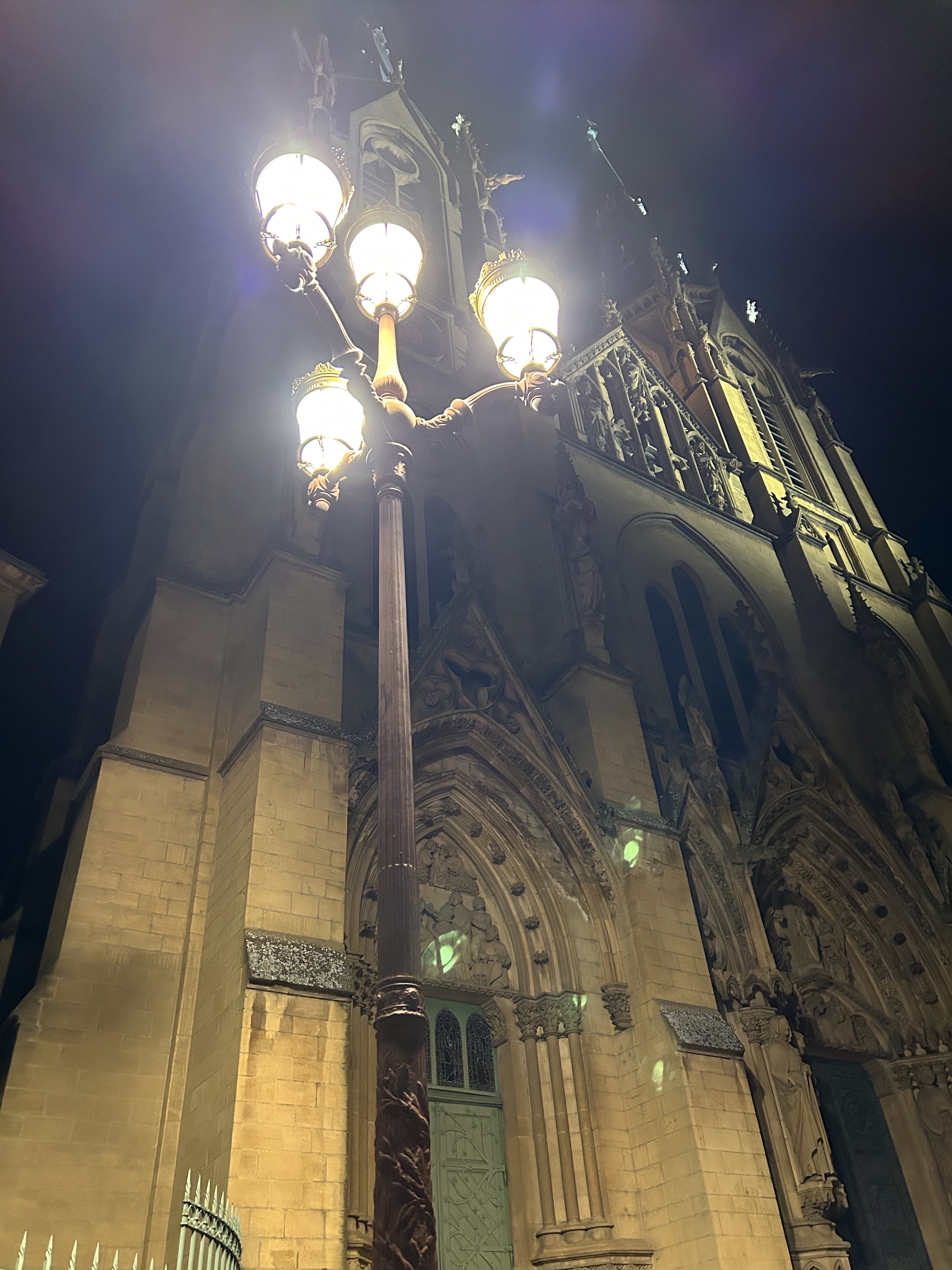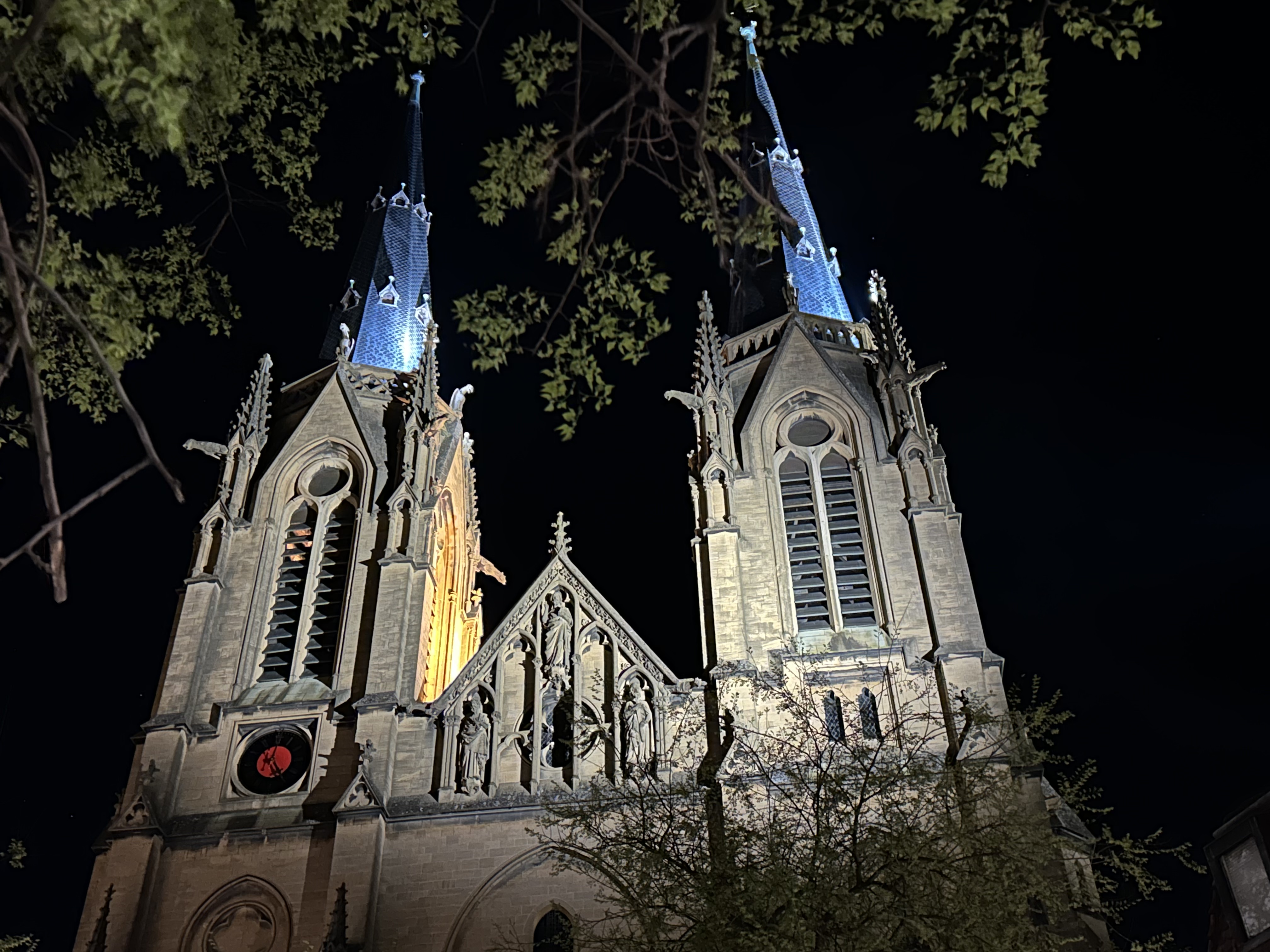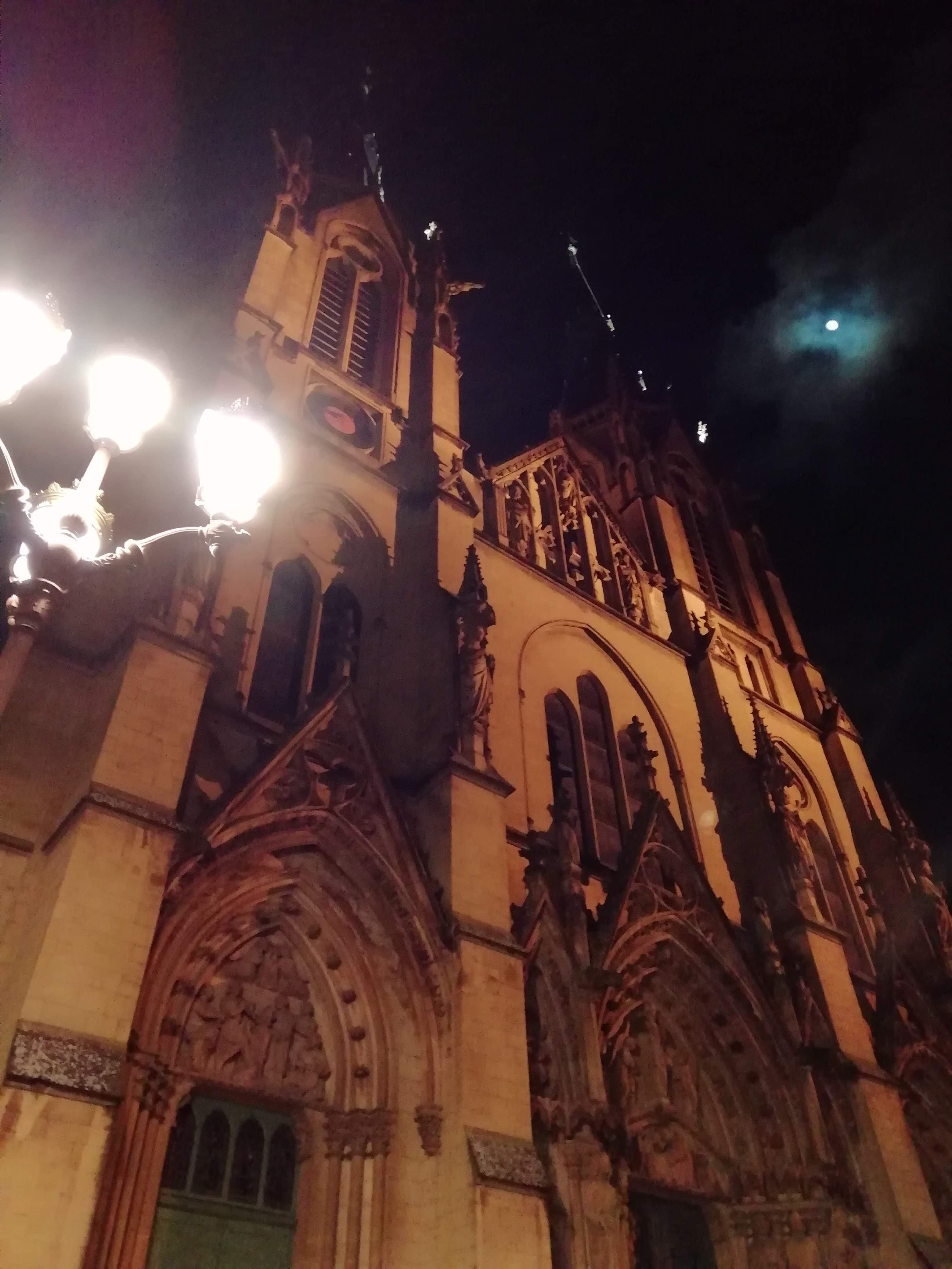 Cette église catholique se distingue par sa beauté et ses tours néo-gothiques. Pas étonnant que ce soit un endroit romantique. Juste après la nuit dernière, il y avait des restes de fleurs et de décorations d'un mariage. Les lampadaires et la lune ont fait le reste pour m'hypnotiser.