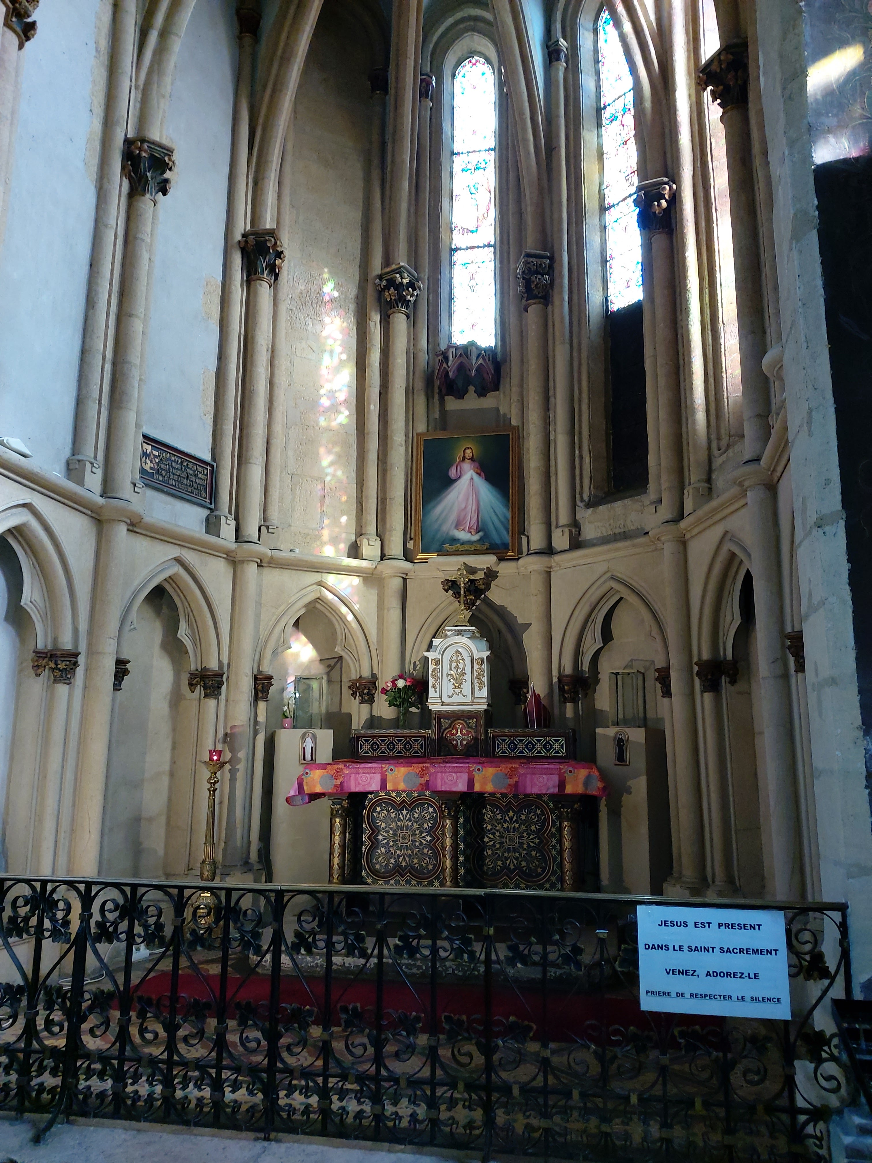 Très bel édifice a voir absolument surtout pour la quiétude et les magnifiques vitraux et objets liturgiques !!