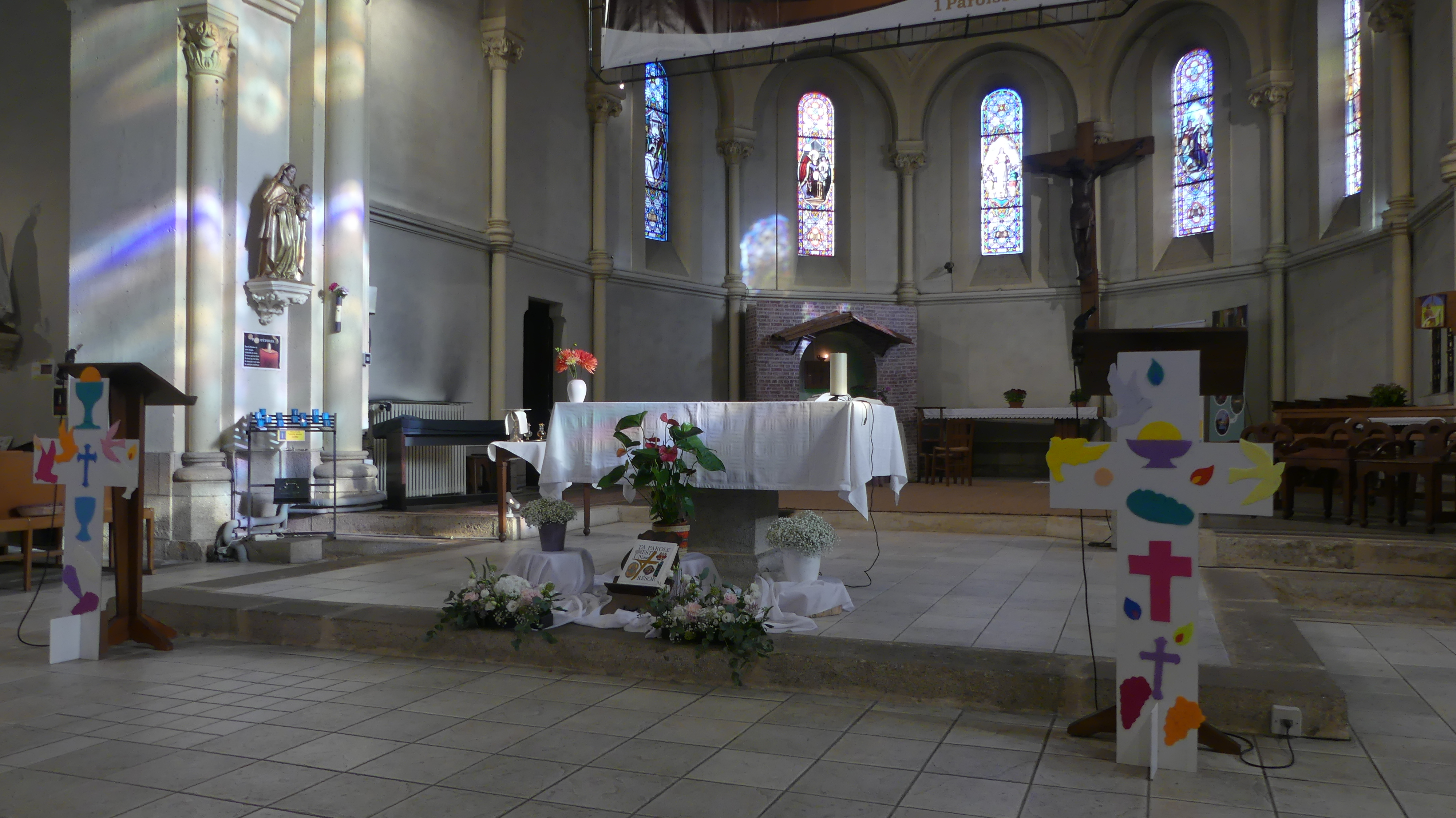 Petite église simple De la place pour stationner car il y a accès au parking du diocèse