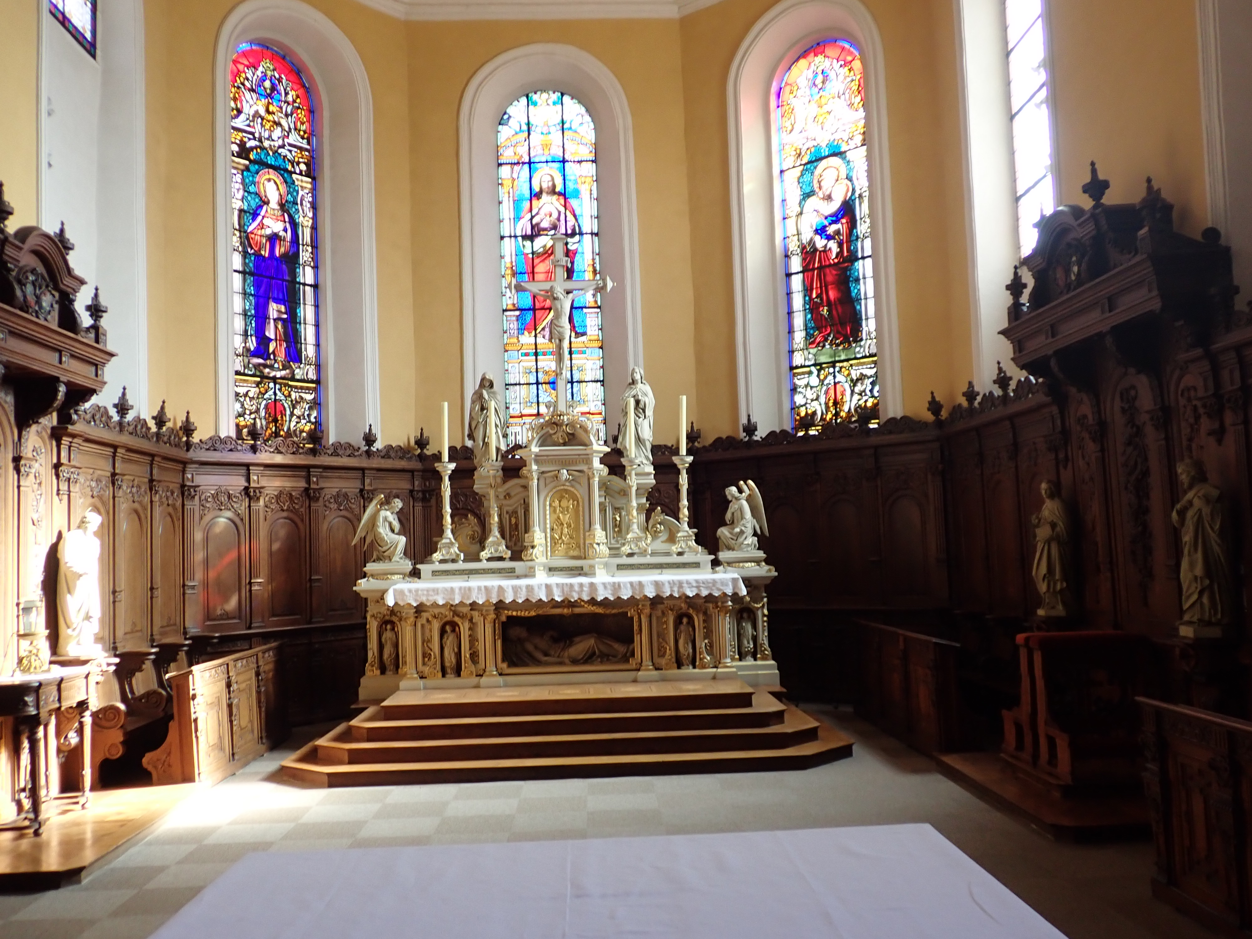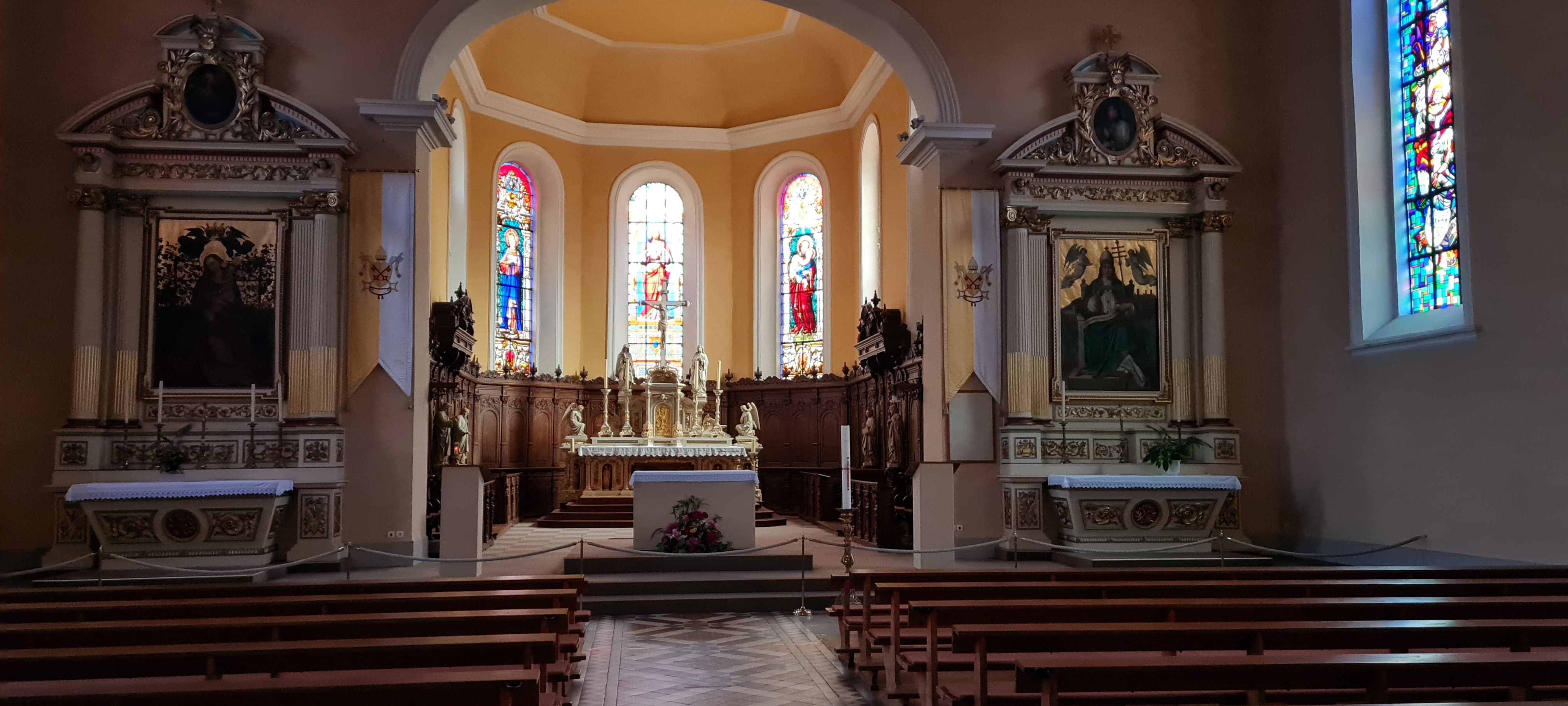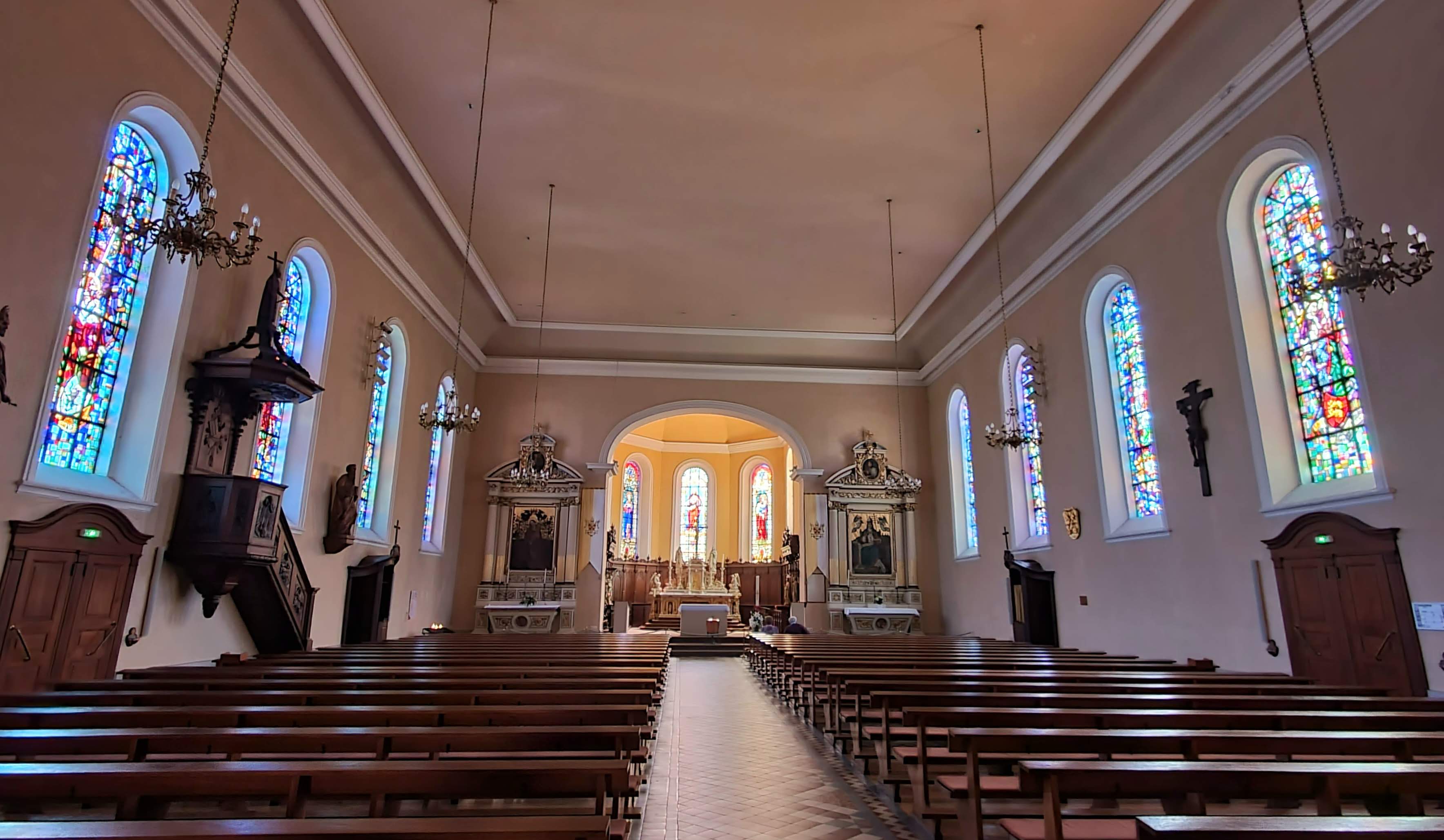 Église classique avec de beaux vitraux.