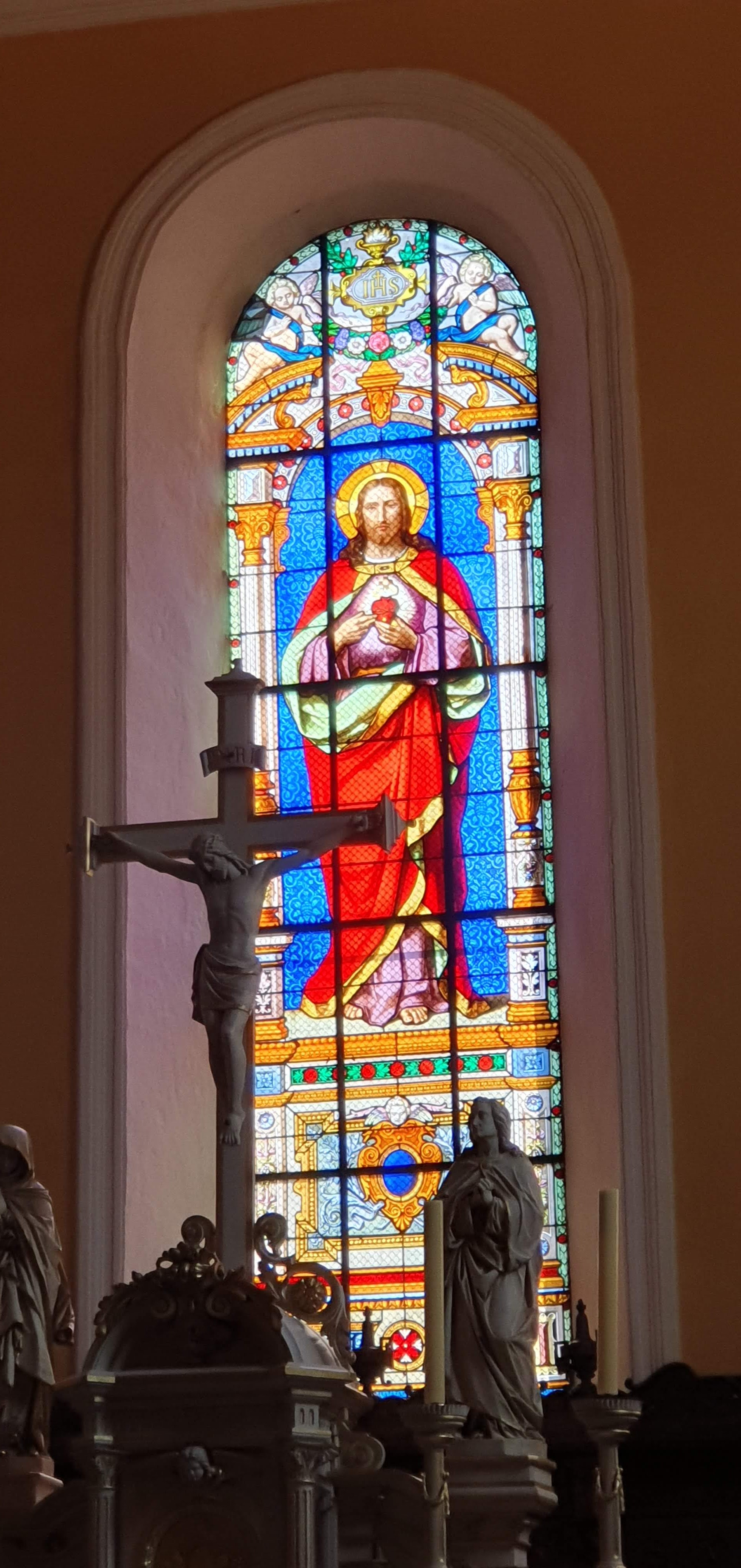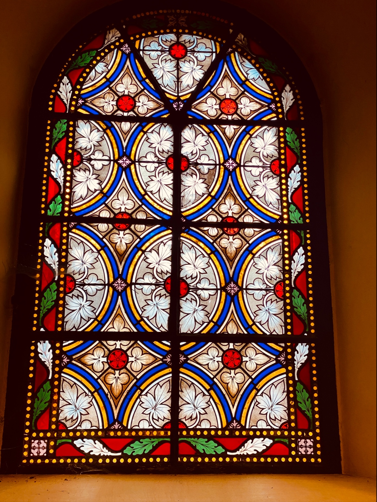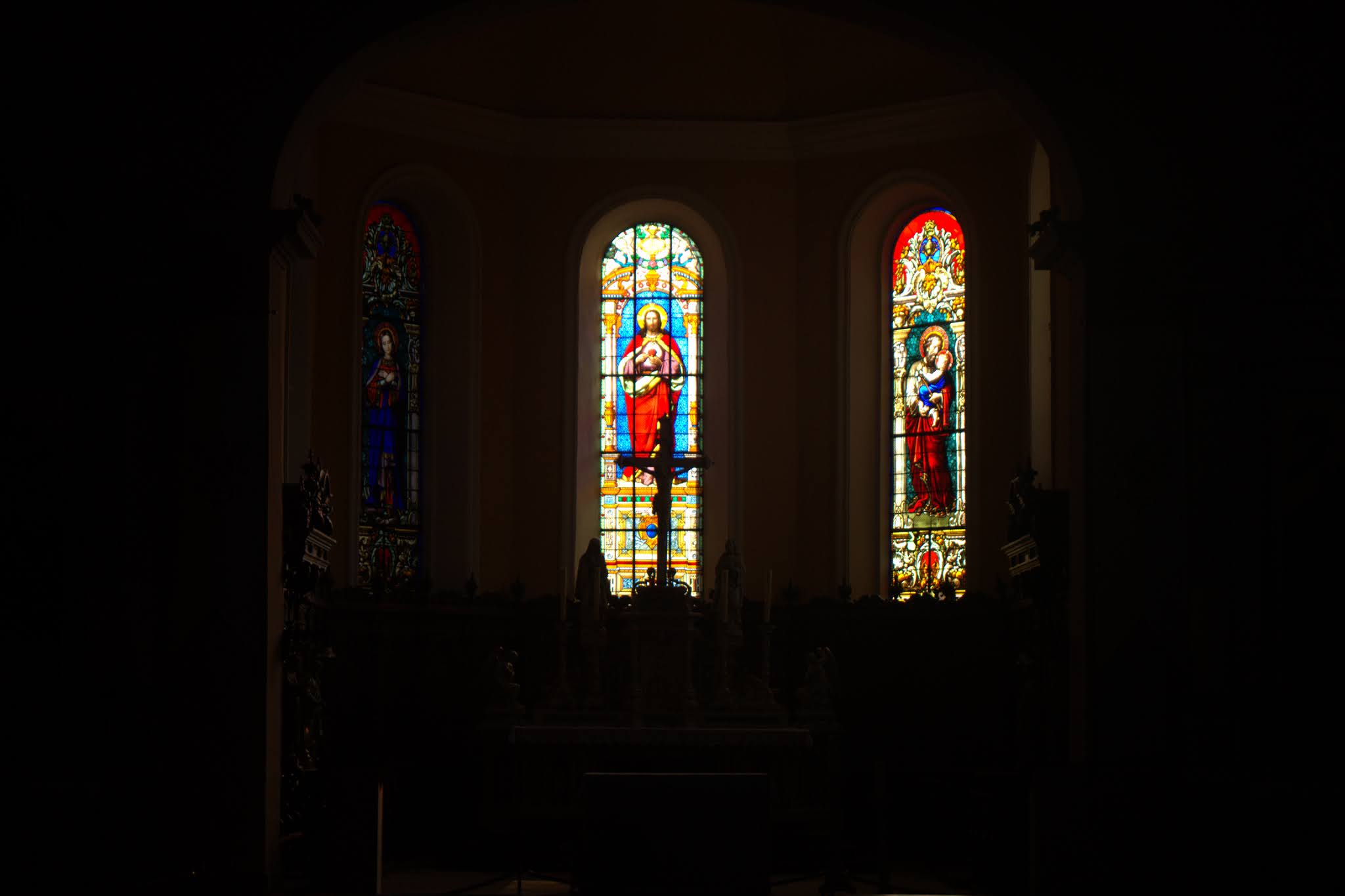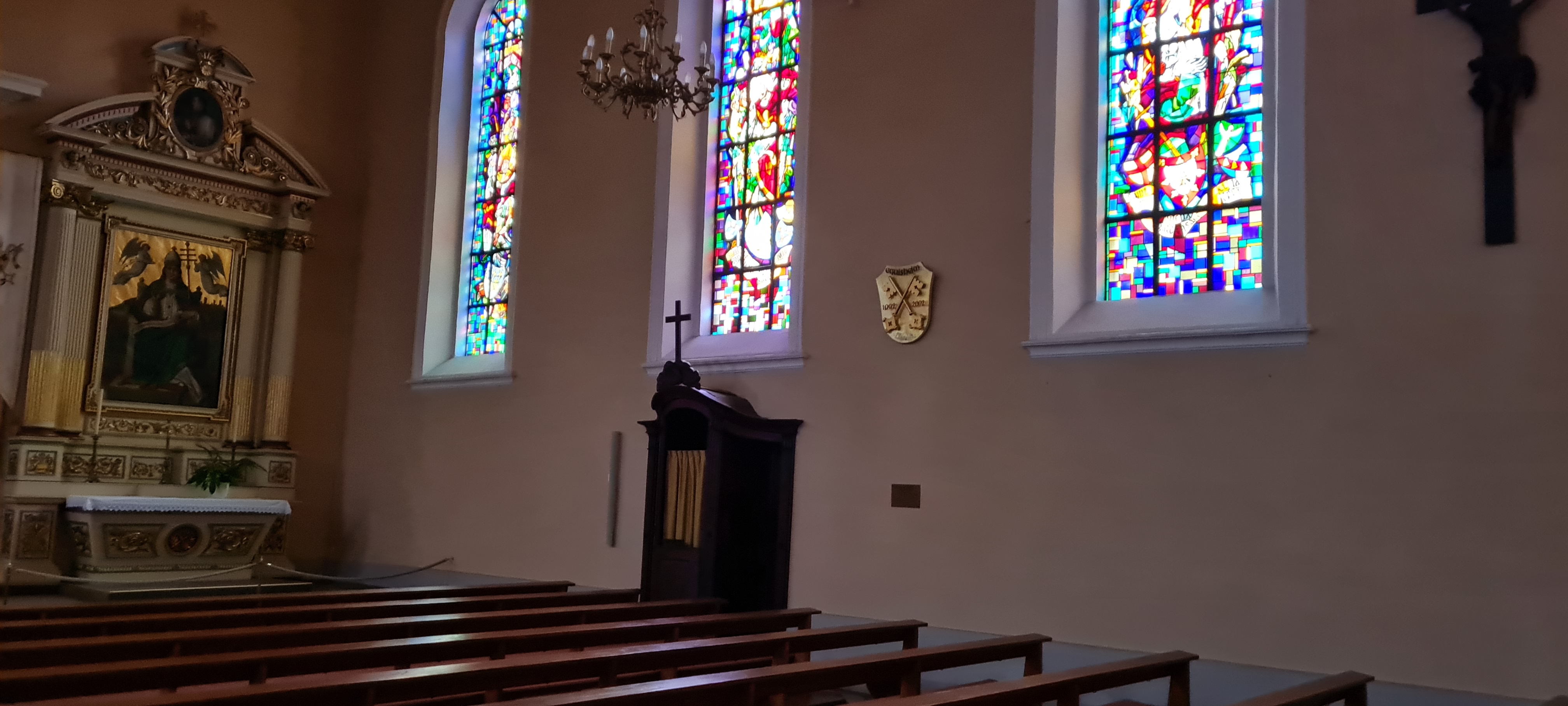Église classique avec de beaux vitraux.