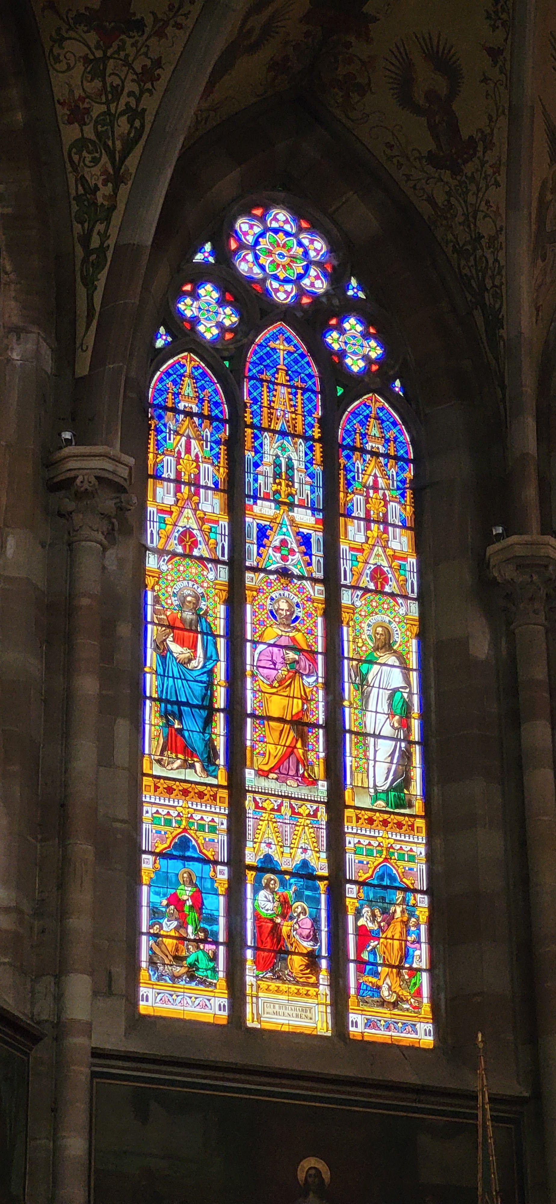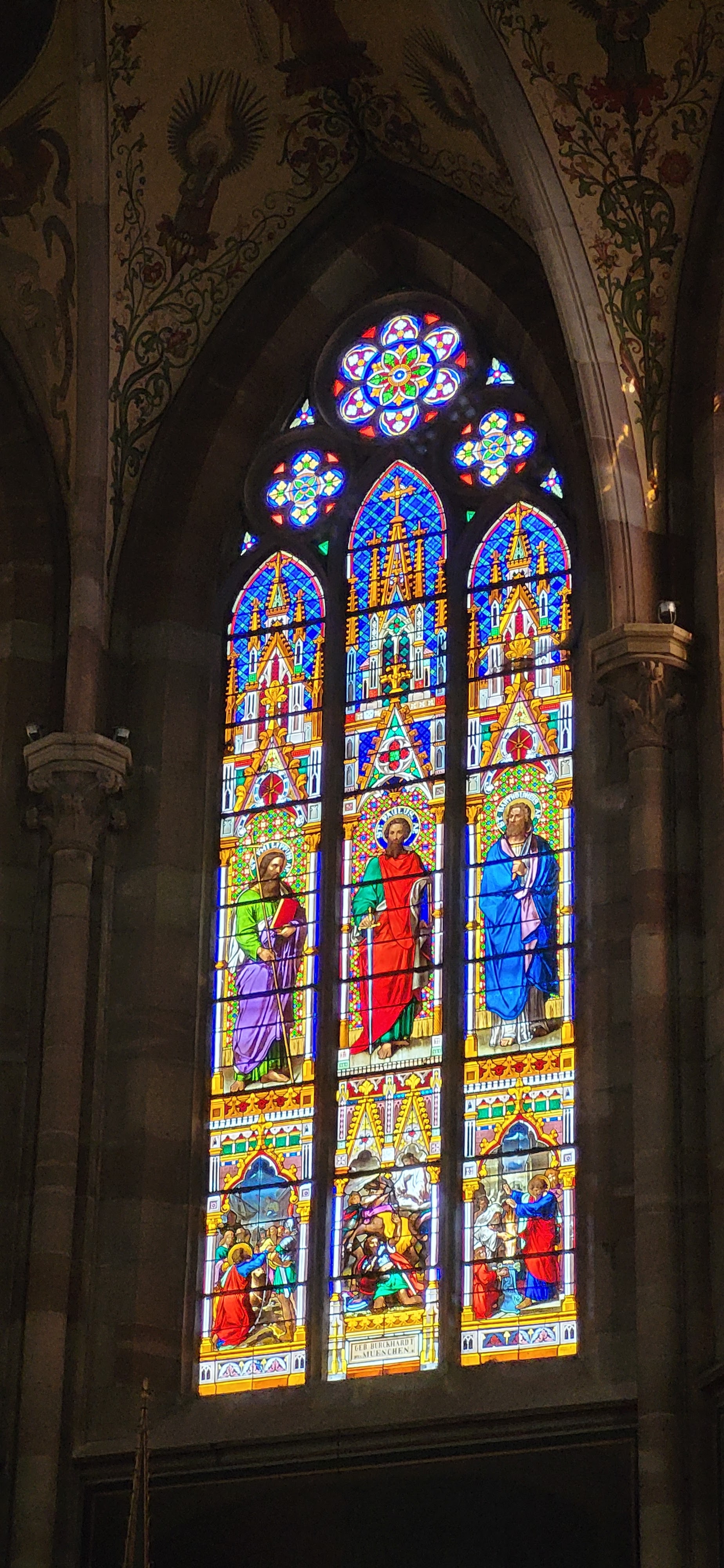 Autant que je sache, celui qui a célébré le « couronnement de la Vierge » au ciel après la mort de Marie était son fils, Jésus. Alors qu'ici, dans le tympan, on voit Pierre et Paul, en l'honneur desquels l'église porte le nom, faire cela. Ou peut-être que je me trompe ou peut-être que ce ne sont que de fausses nouvelles comme c’est le cas aujourd’hui ? Mais en tout cas, c'est une église impressionnante et bien conservée. Comme tout dans cette ville.
