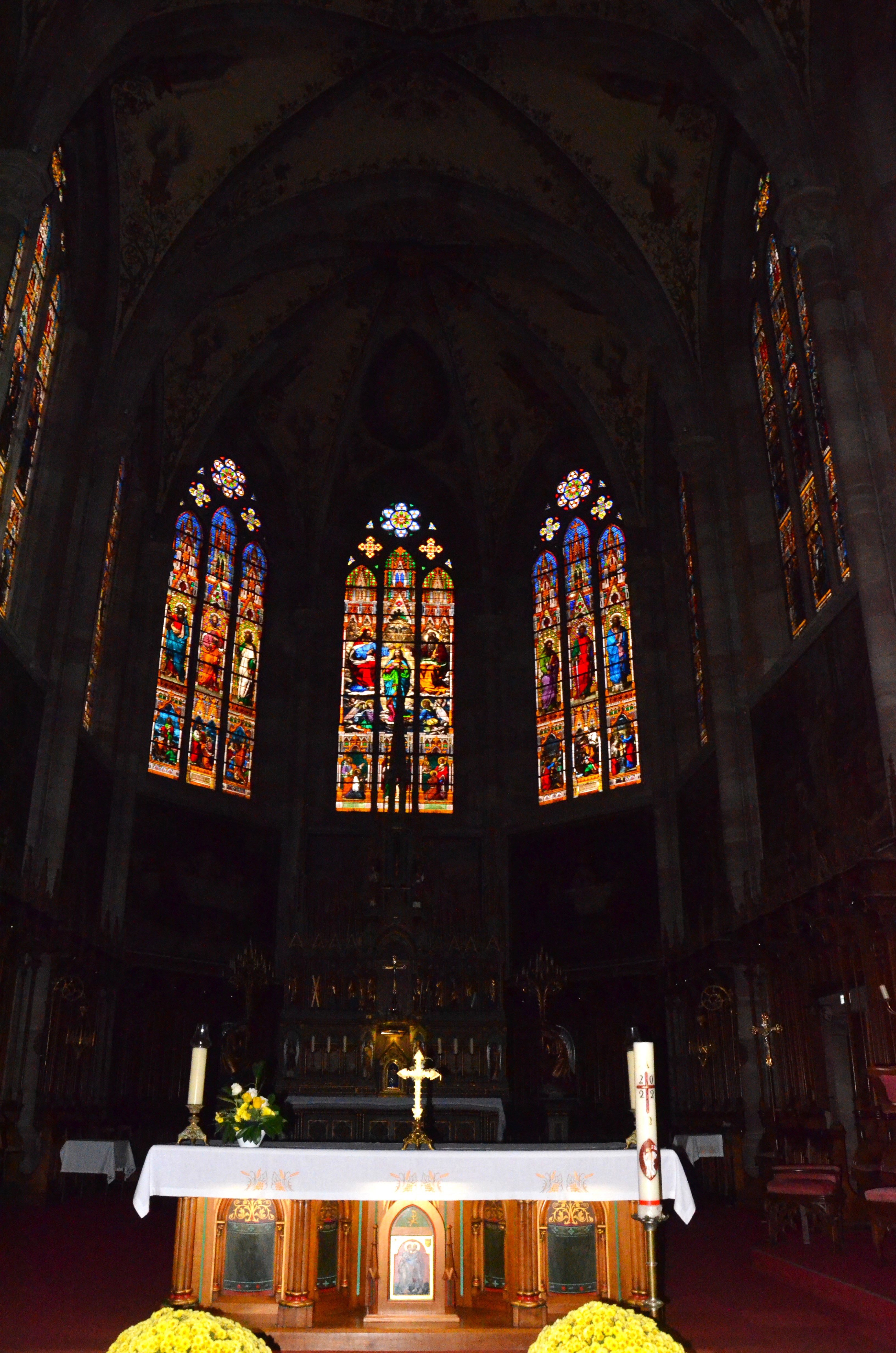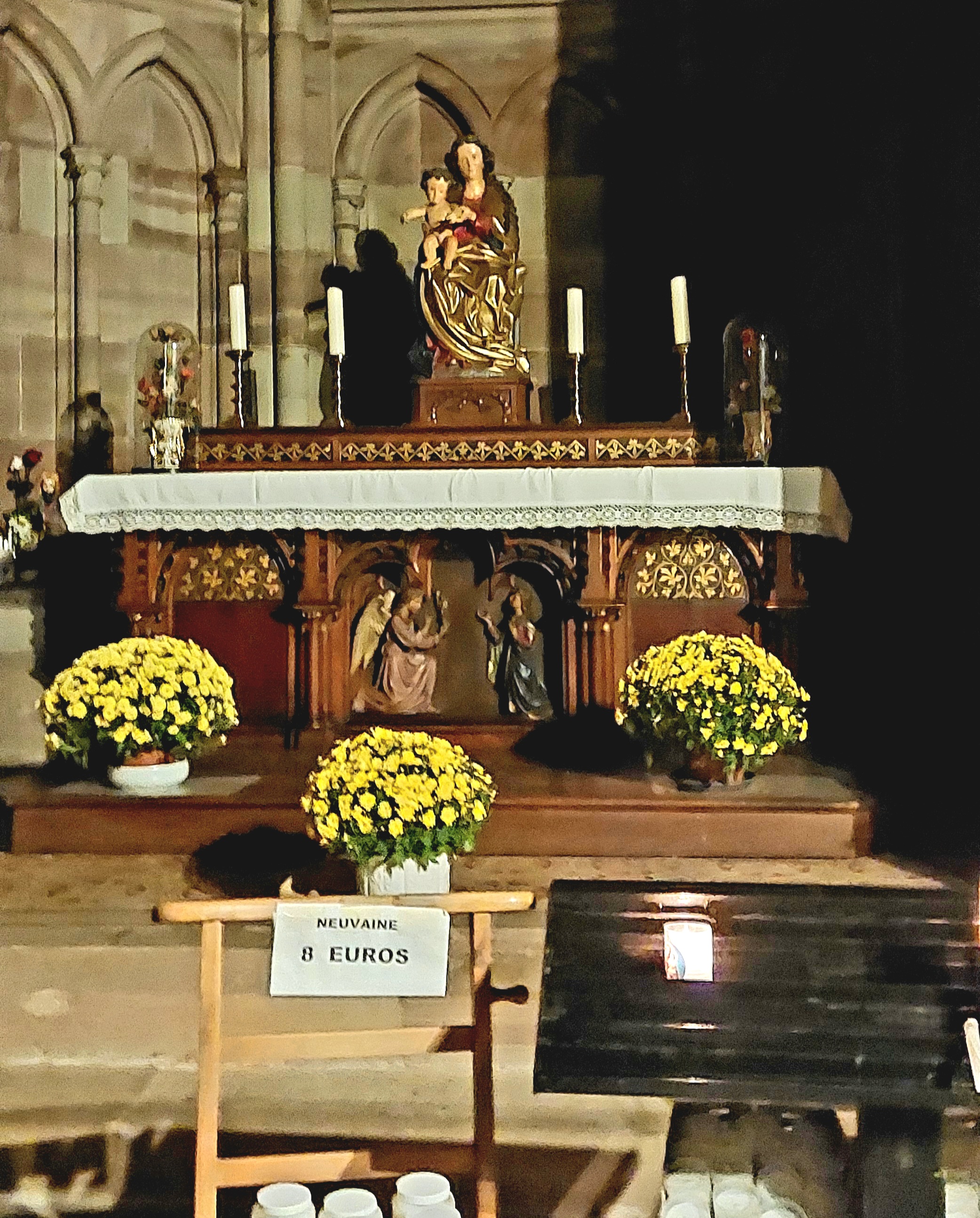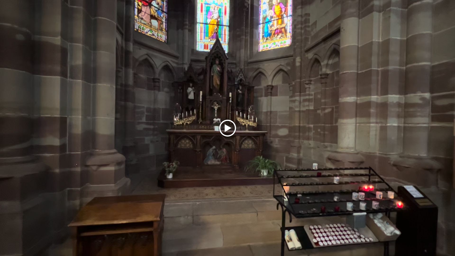 Une église élégante et élancée, avec la profondeur que lui donnent de vraies bougies. Les vitraux assurent l'intimité des chapelles et les colonnes et chaises invitent à s'asseoir et à prier en oubliant le temps. C'est dommage que nous ne puissions pas rester plus d'une heure !