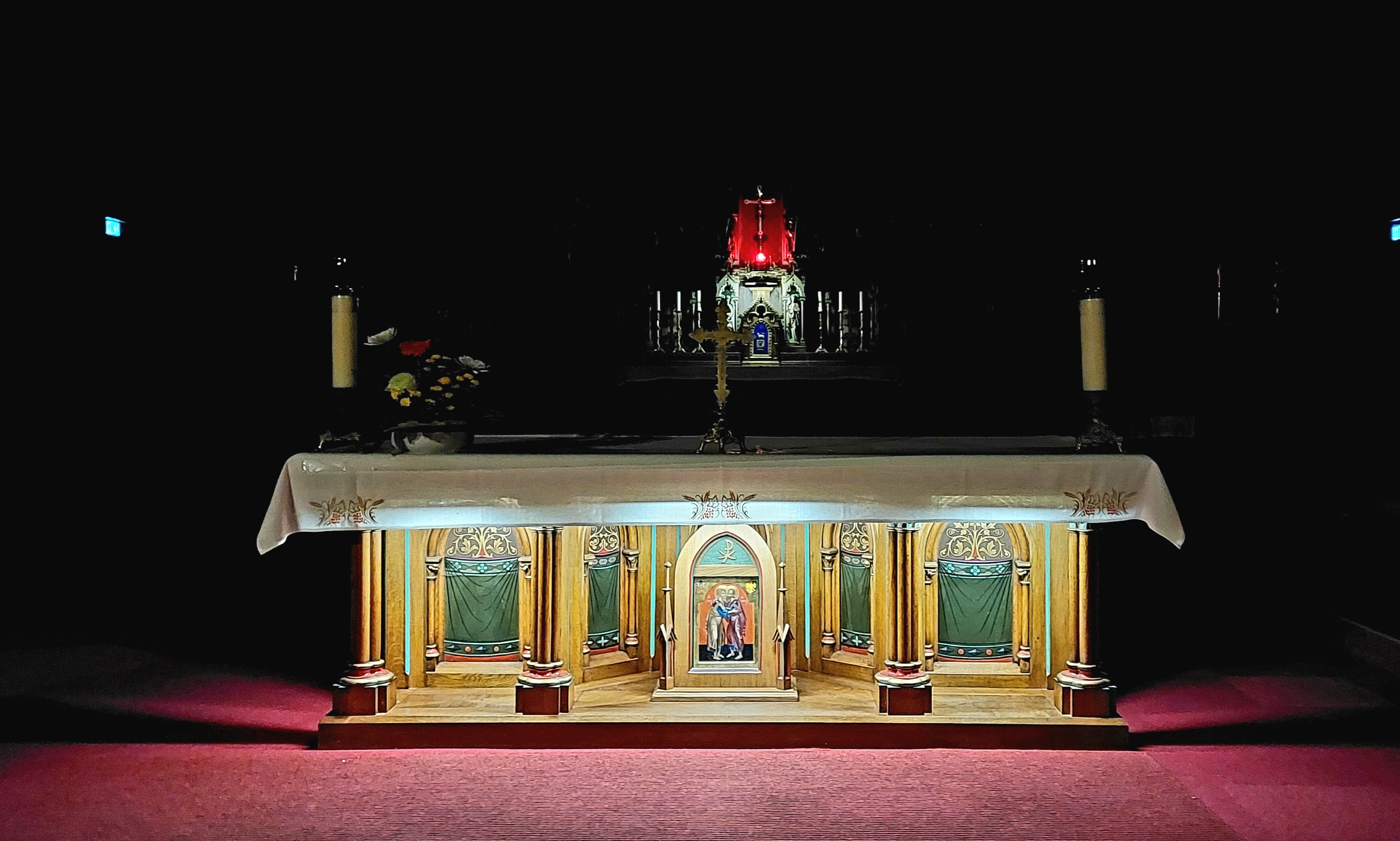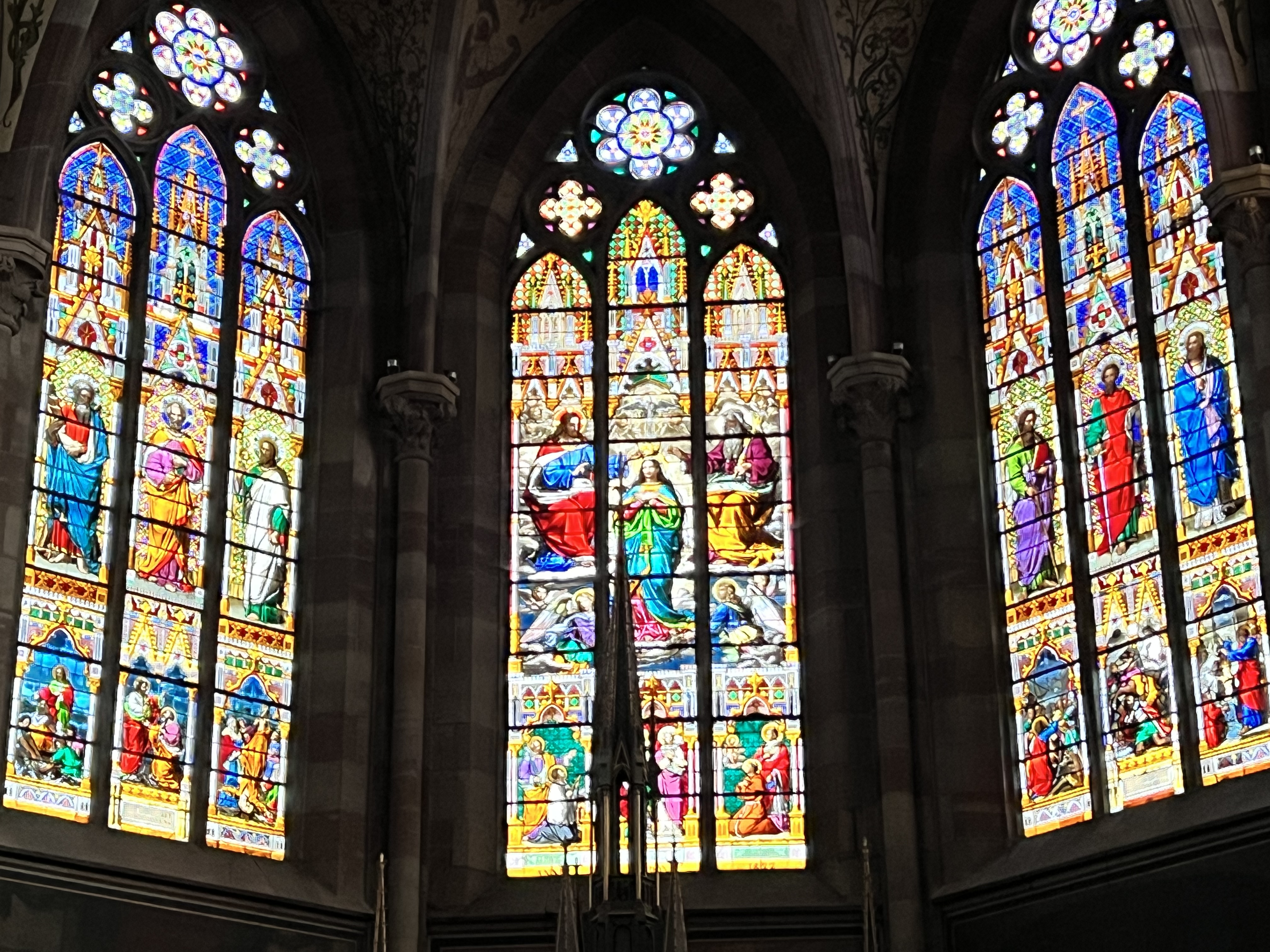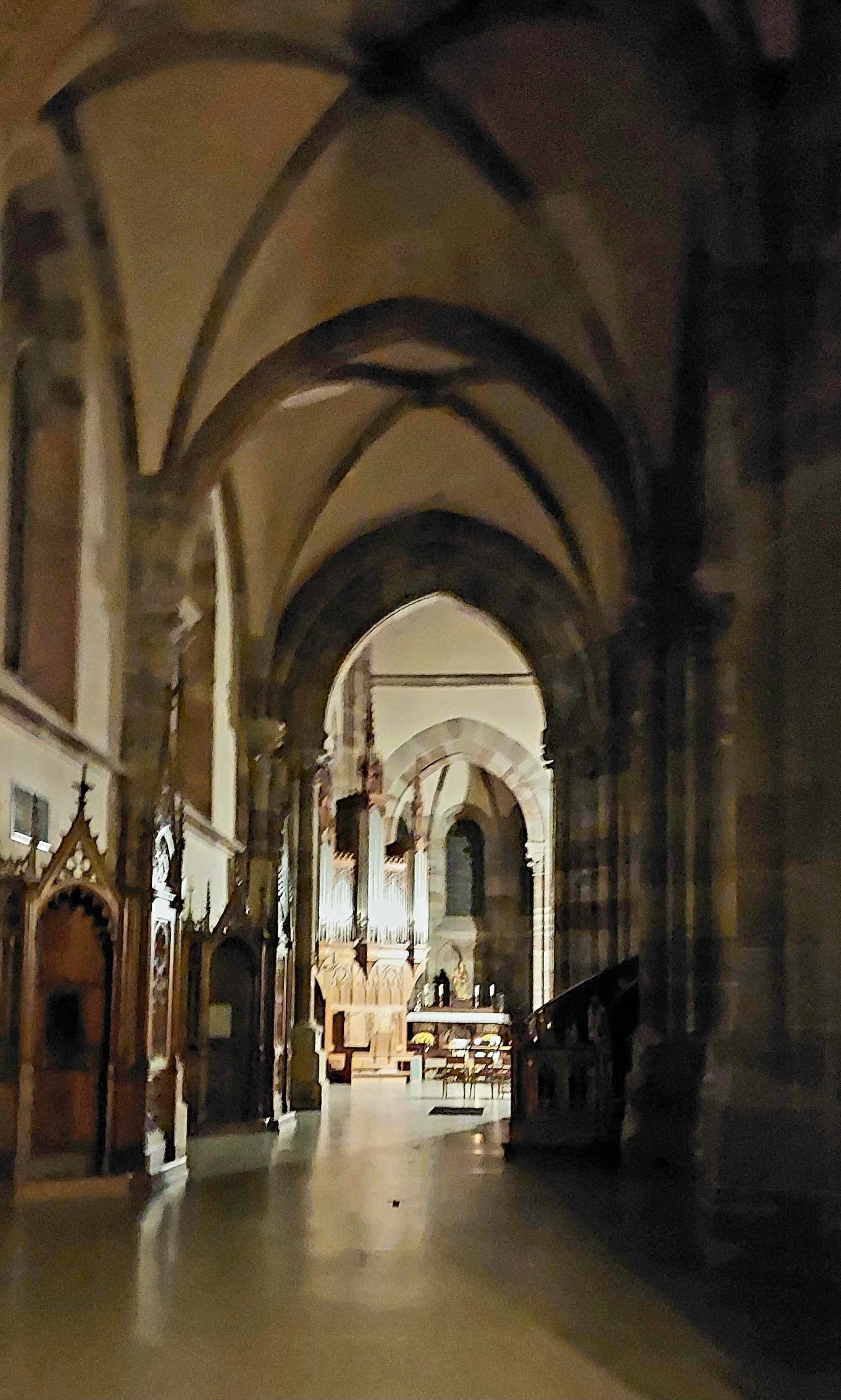Une église élégante et élancée, avec la profondeur que lui donnent de vraies bougies. Les vitraux assurent l'intimité des chapelles et les colonnes et chaises invitent à s'asseoir et à prier en oubliant le temps. C'est dommage que nous ne puissions pas rester plus d'une heure !