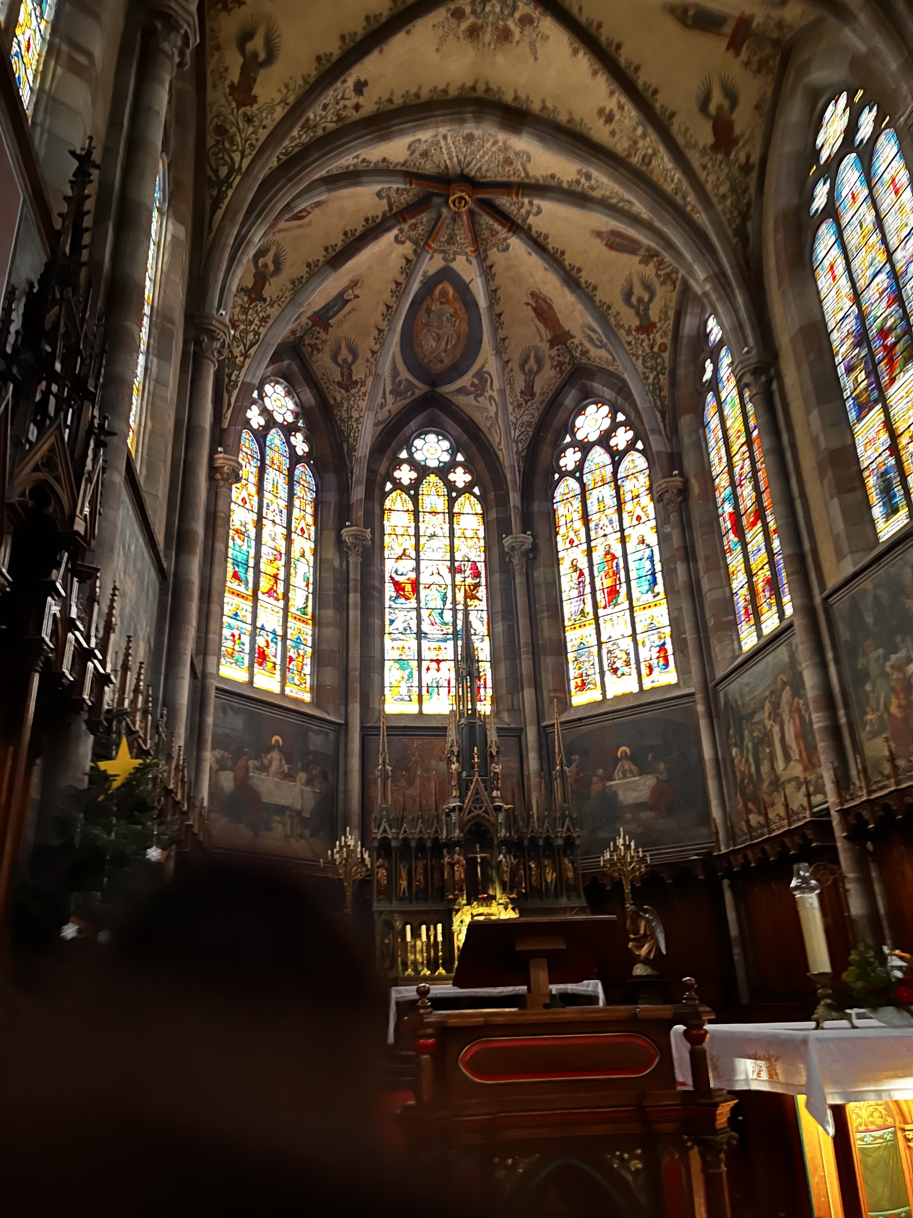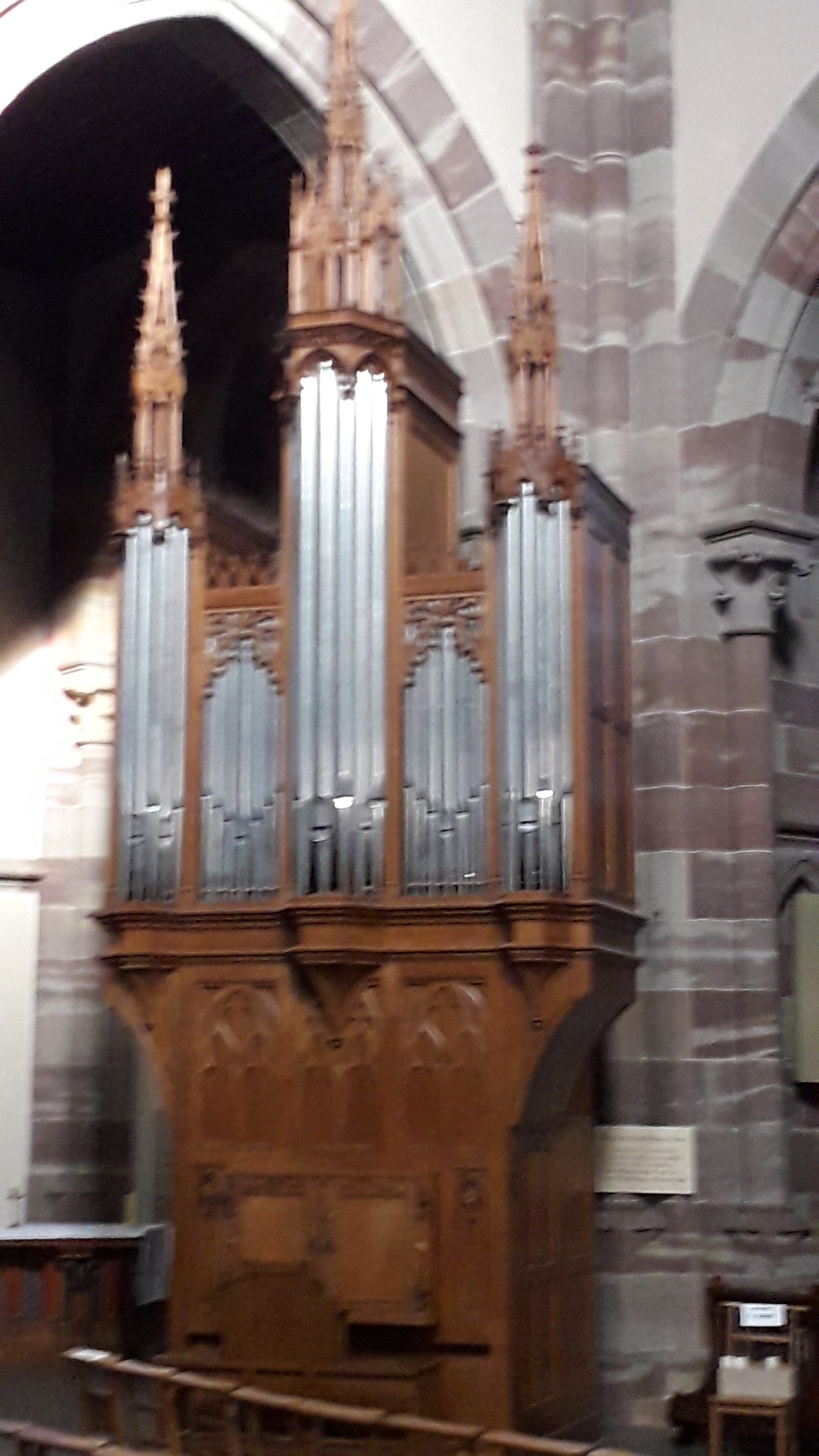 Lors de notre visite, l'office de tourisme était fermé et nous avons trouvé peu d'informations sur l'église à l'intérieur. Une visite guidée aurait été appréciée et permettrait de mieux comprendre l'histoire de ce magnifique édifice. Cette église date du XIIIe siècle mais a été largement restaurée au XIXe siècle. Les vitraux sertis dans le riche grès de couleur rose sont tout à fait extraordinaires. Une véritable trouvaille dans une ville de seulement 11 000 habitants. L'église n'est pas chauffée en hiver alors habillez-vous chaudement !