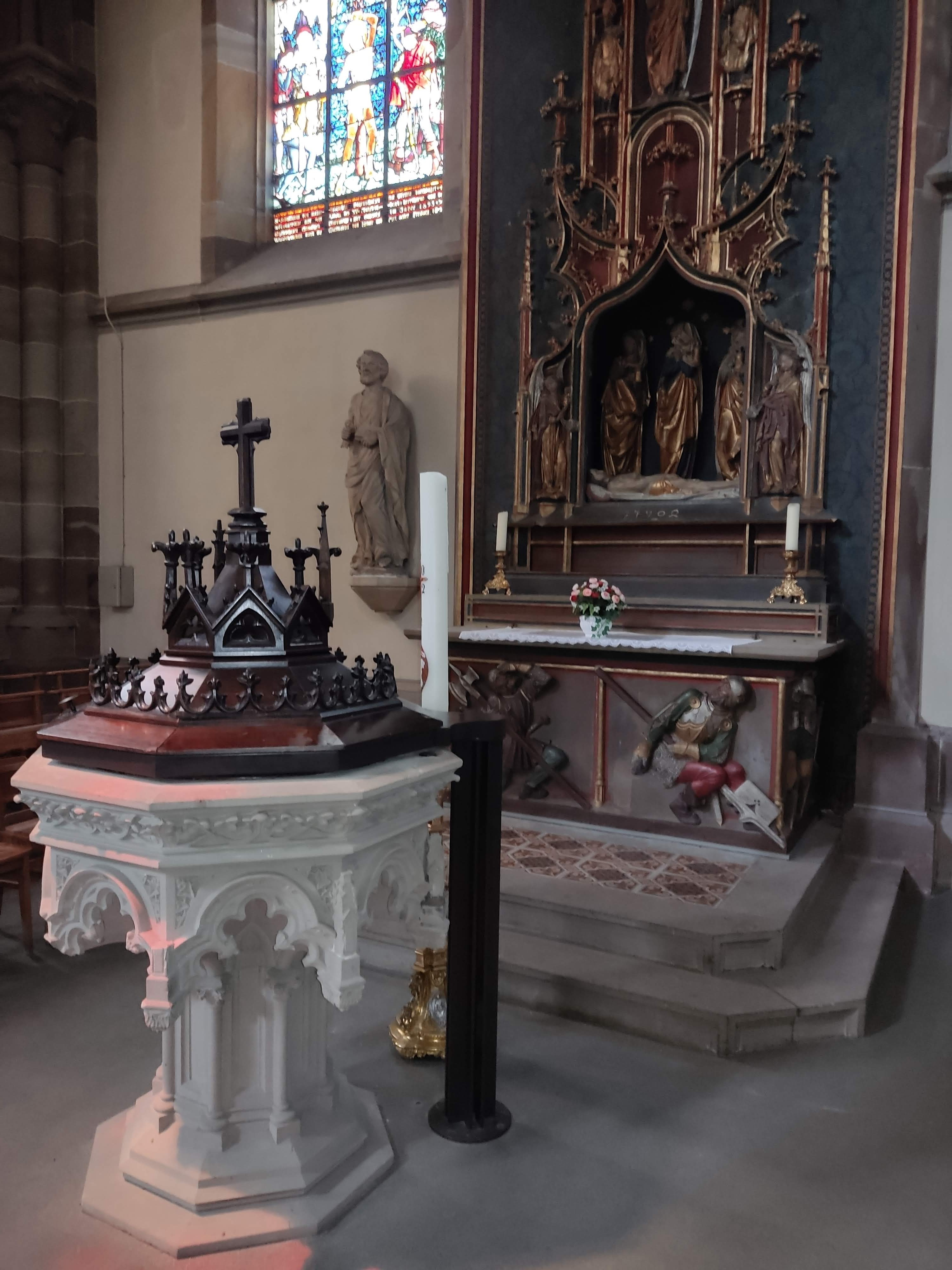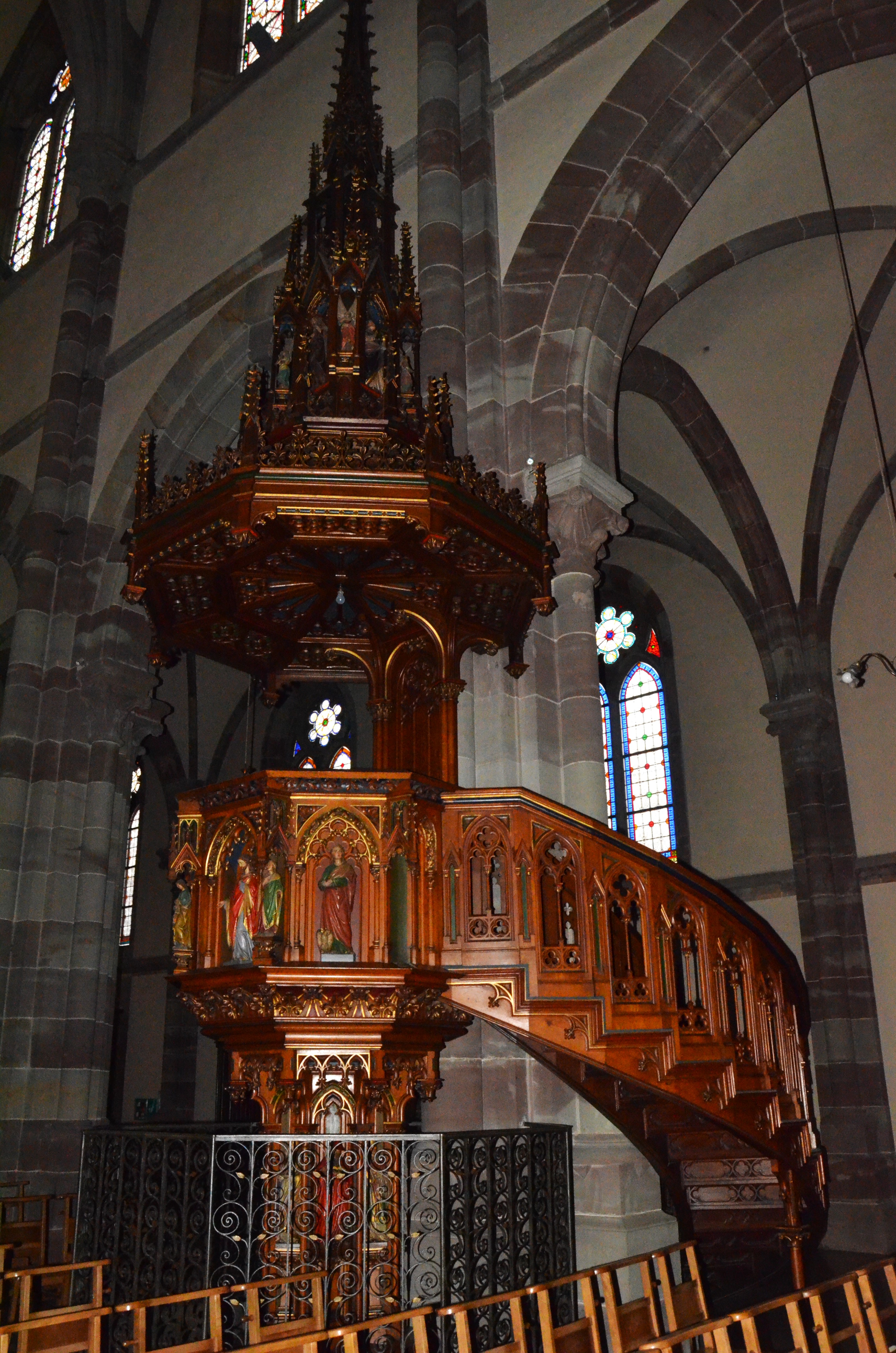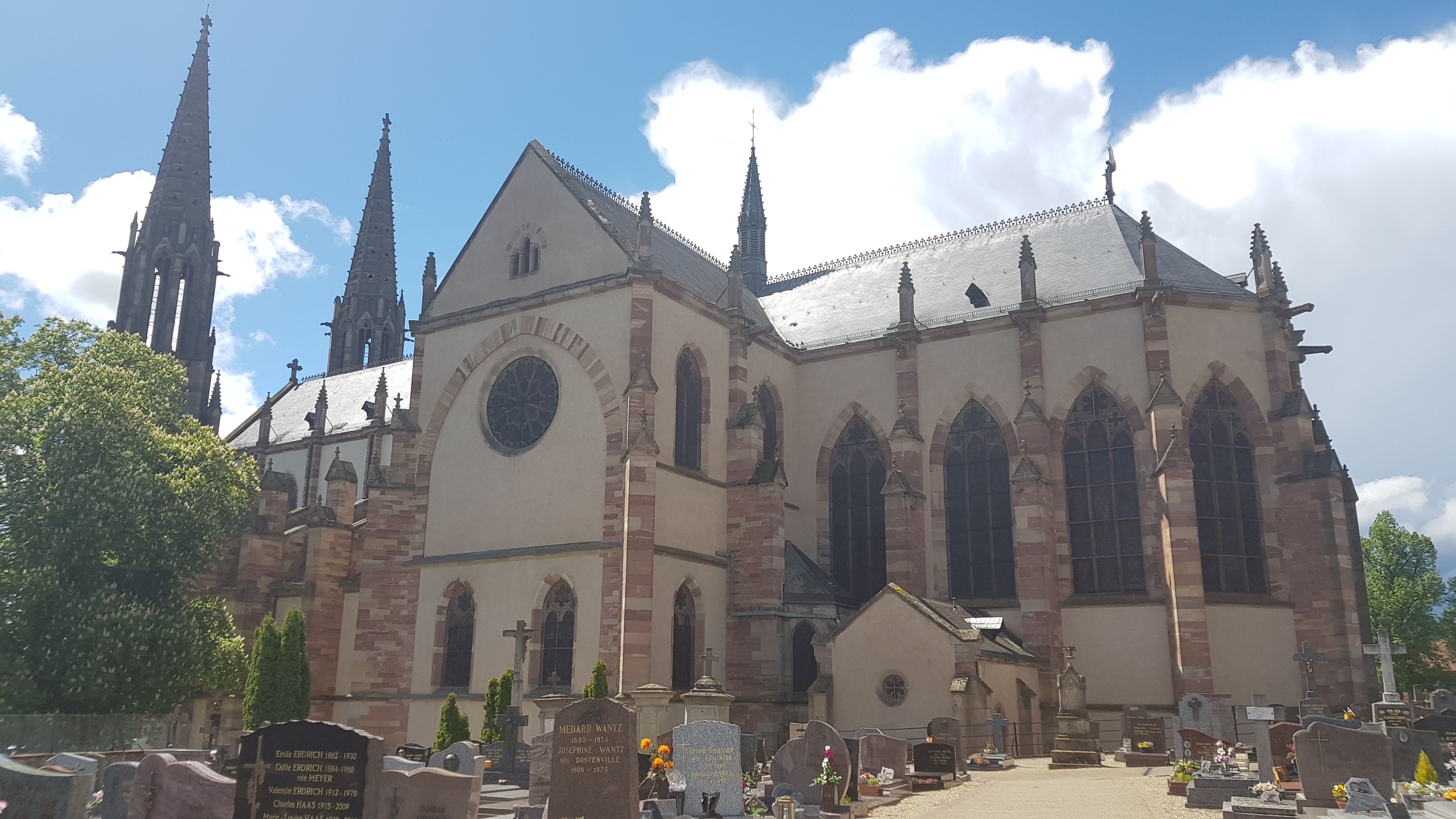 Belle petite église ou vous pouvez y aller sans être dérangé en dehors des offices. Histoires et œuvres sont à découvrir sur place dans les couleurs de granit rose pierre des clairière alsaciennes . Une des plus grandes églises catholiques d'Alsace de 75 m de long aux vitraux du XVe siècle des décors néo gothique Un parking gratuit se trouve derrière l'église. Si vous êtes de passage sur la region prenez le temps de vous y arrêter.