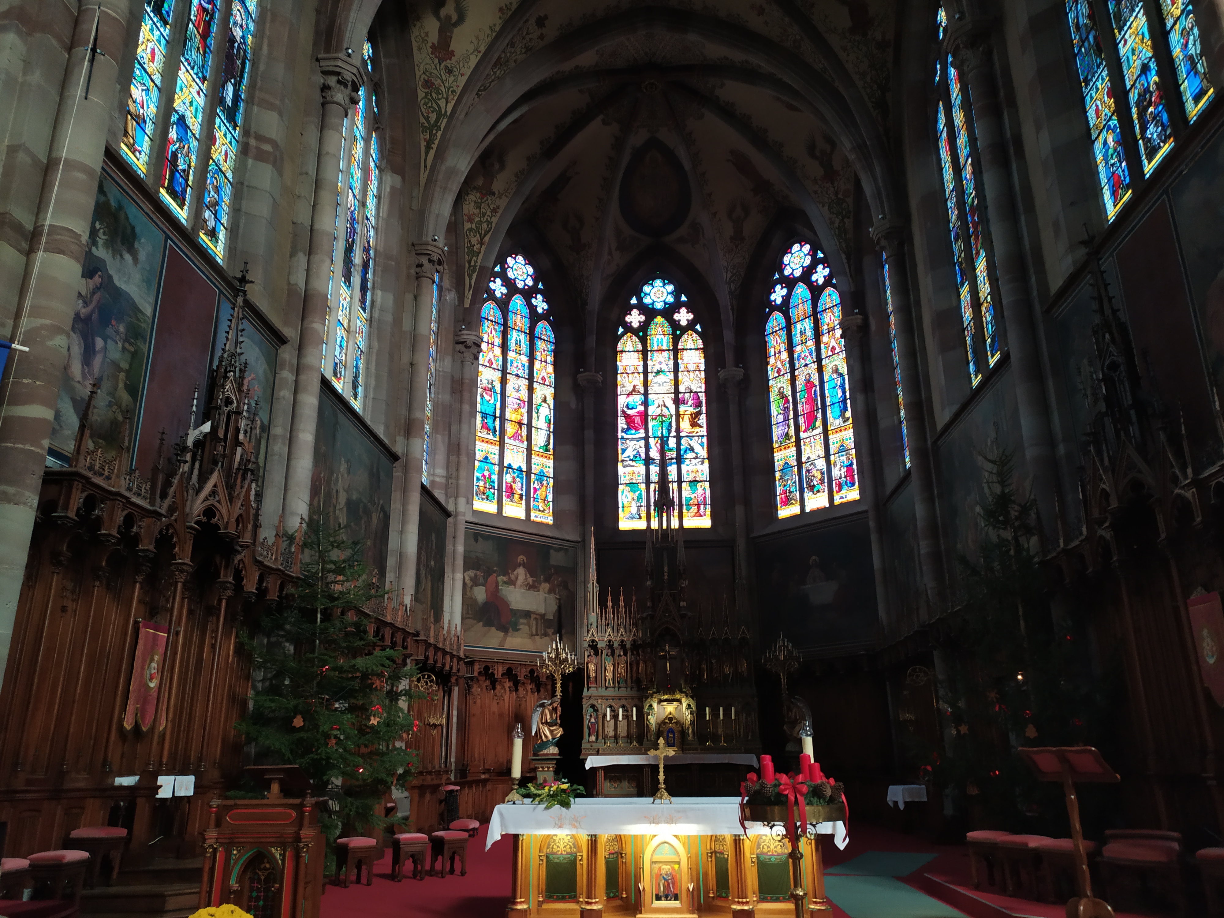 Belle église. Les peintures du plafond sont impressionnantes à regarder et l'autel est également magnifiquement conçu. Cela vaut vraiment le détour si vous êtes à Obernai.