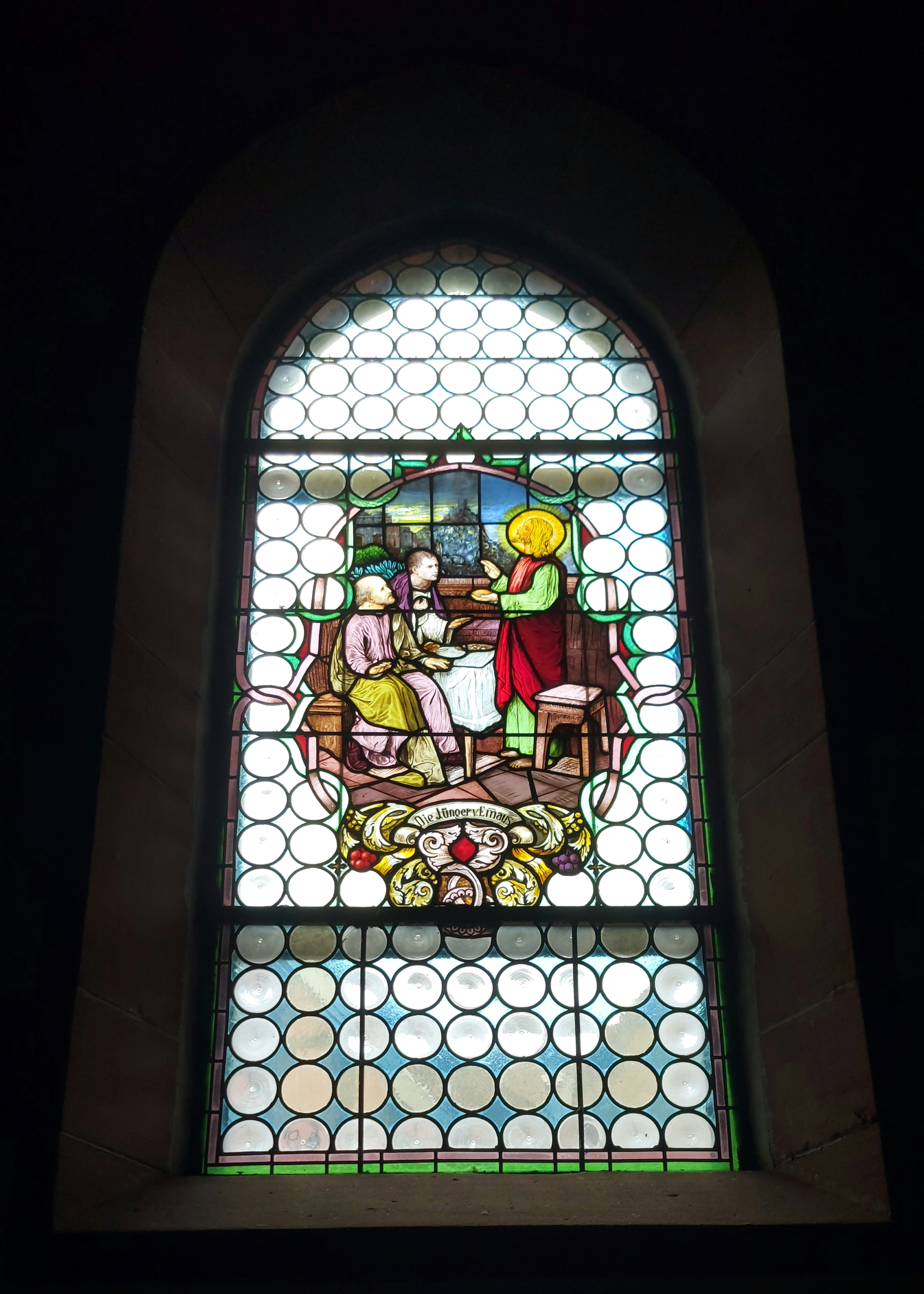 Belle église en grès rouge. De beaux vitraux. En haut du clocher en regardant de face on peut apercevoir un personnage qui laisse tomber un livre. Amusant
