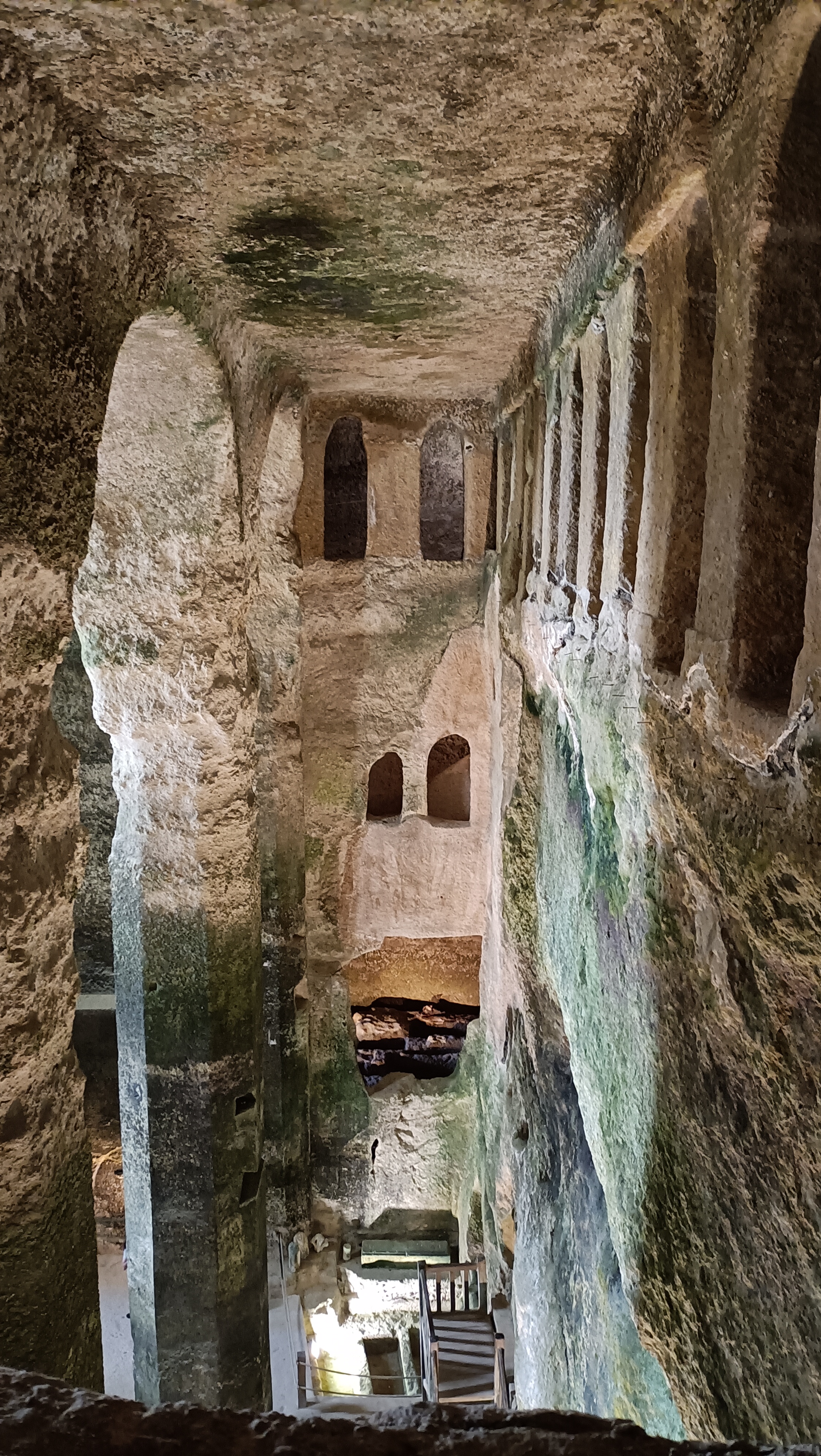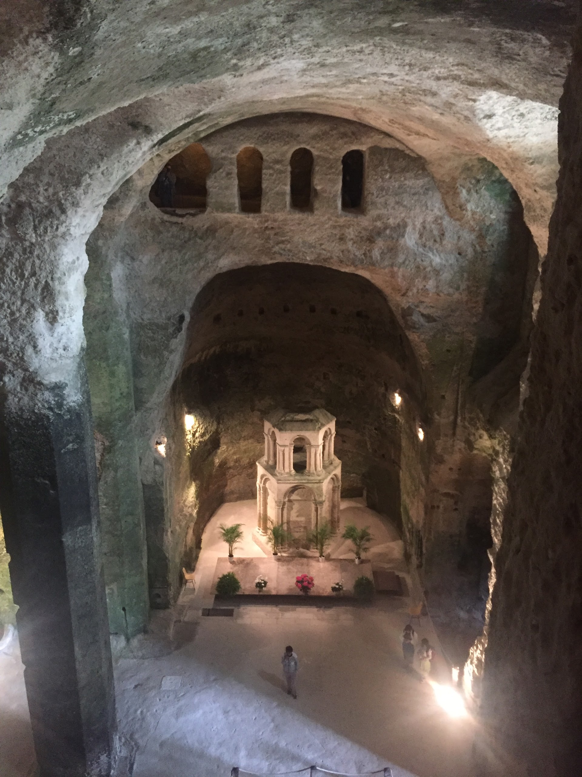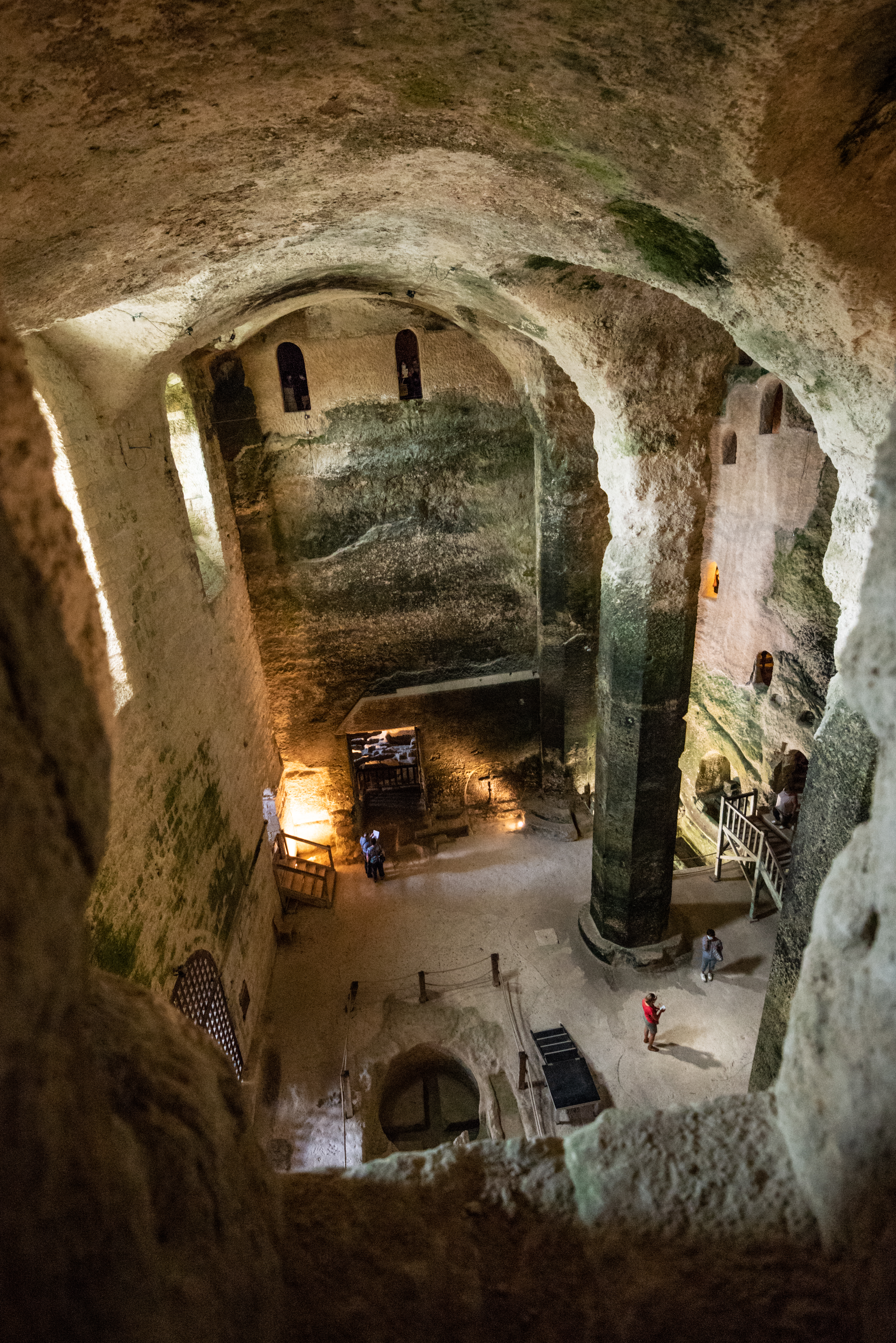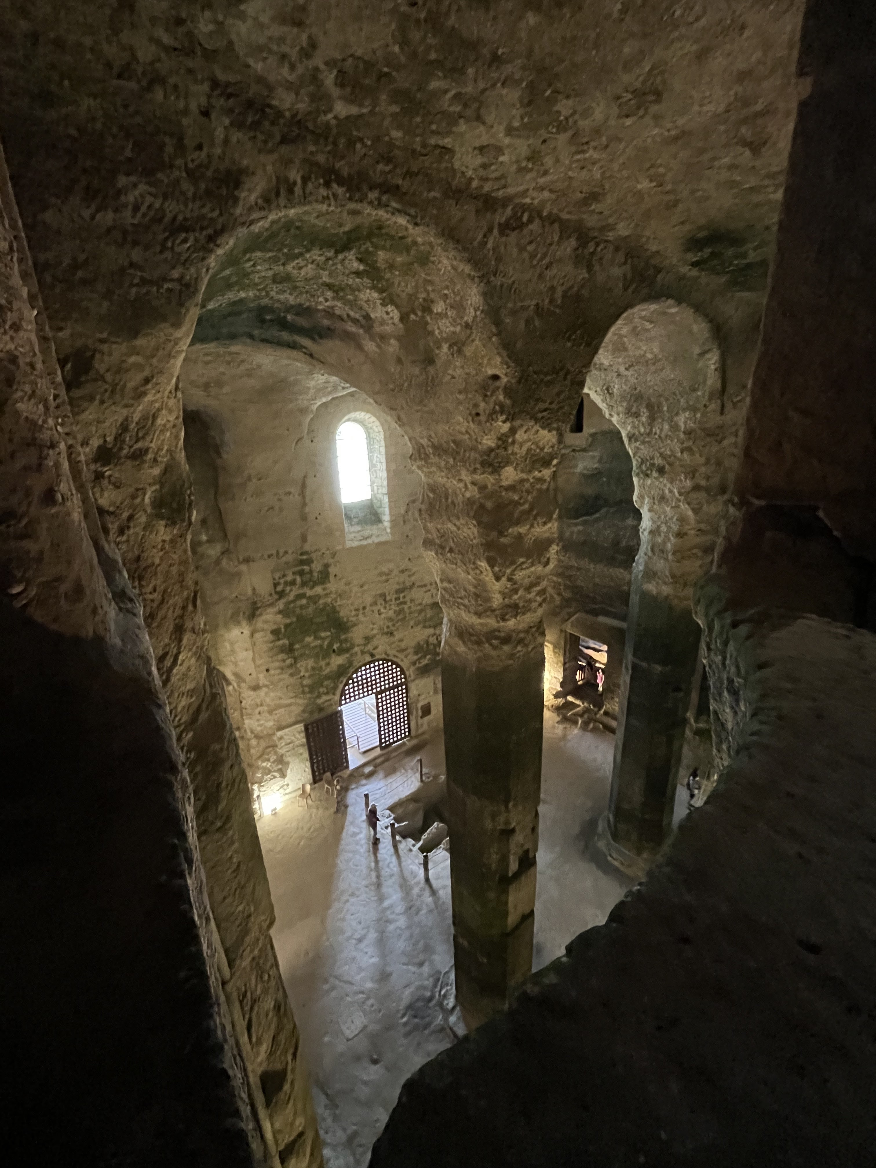 Magnifique église troglodyte construite dans une ancienne carrière. Elle renferme, entre autres, une sorte de très grand baptistère ou reliquaire et un cimetière très ancien, ainsi que des galeries supérieures à près de 30m de haut. A voir absolument !