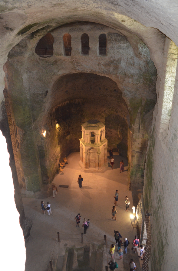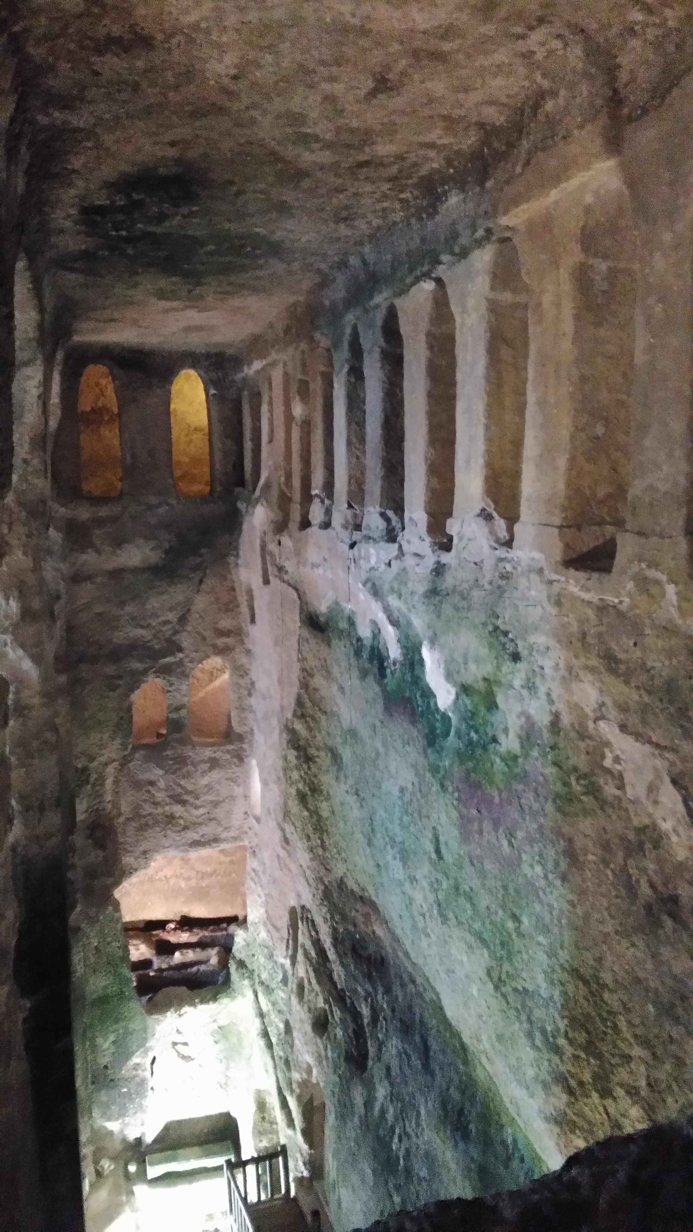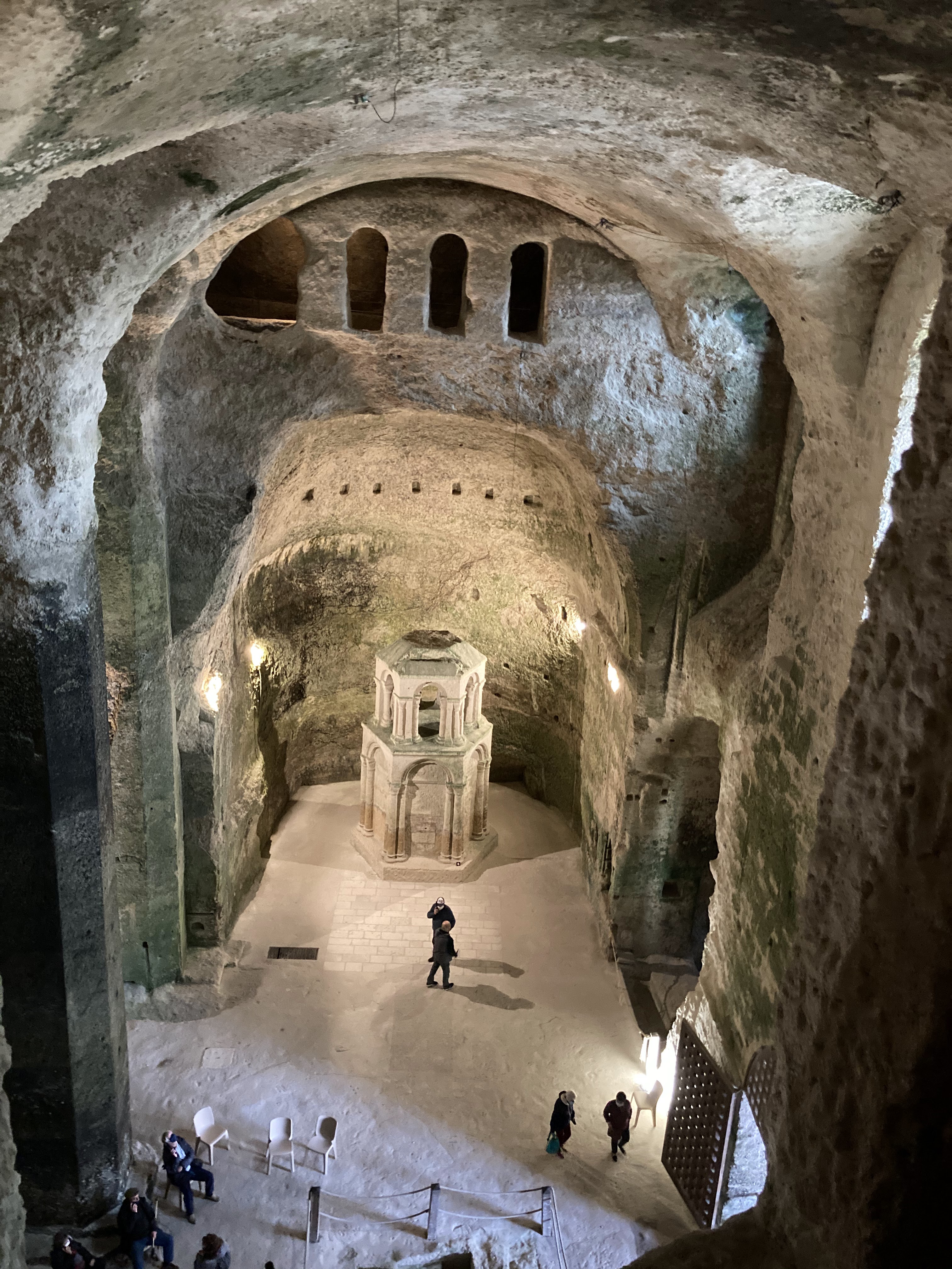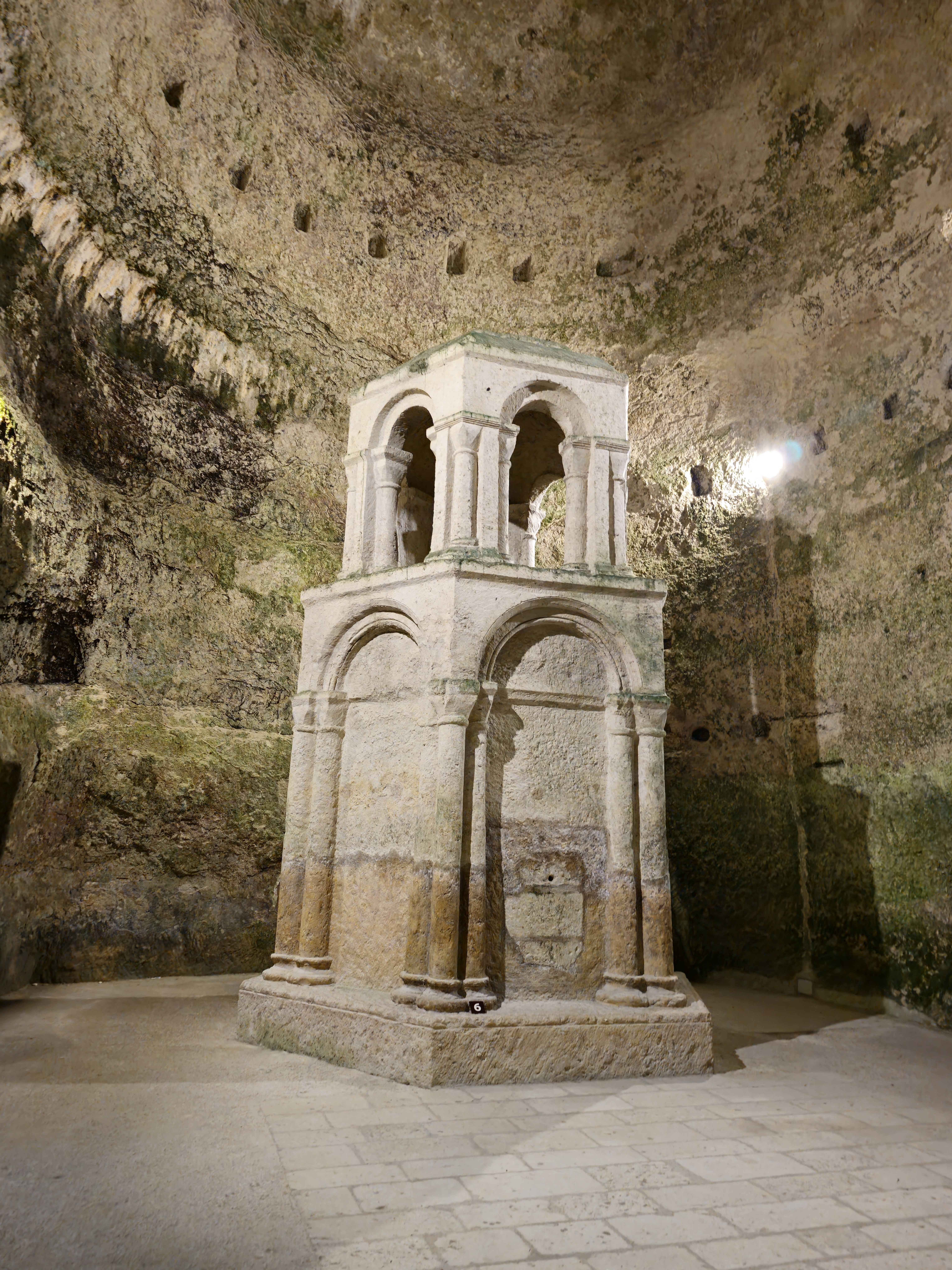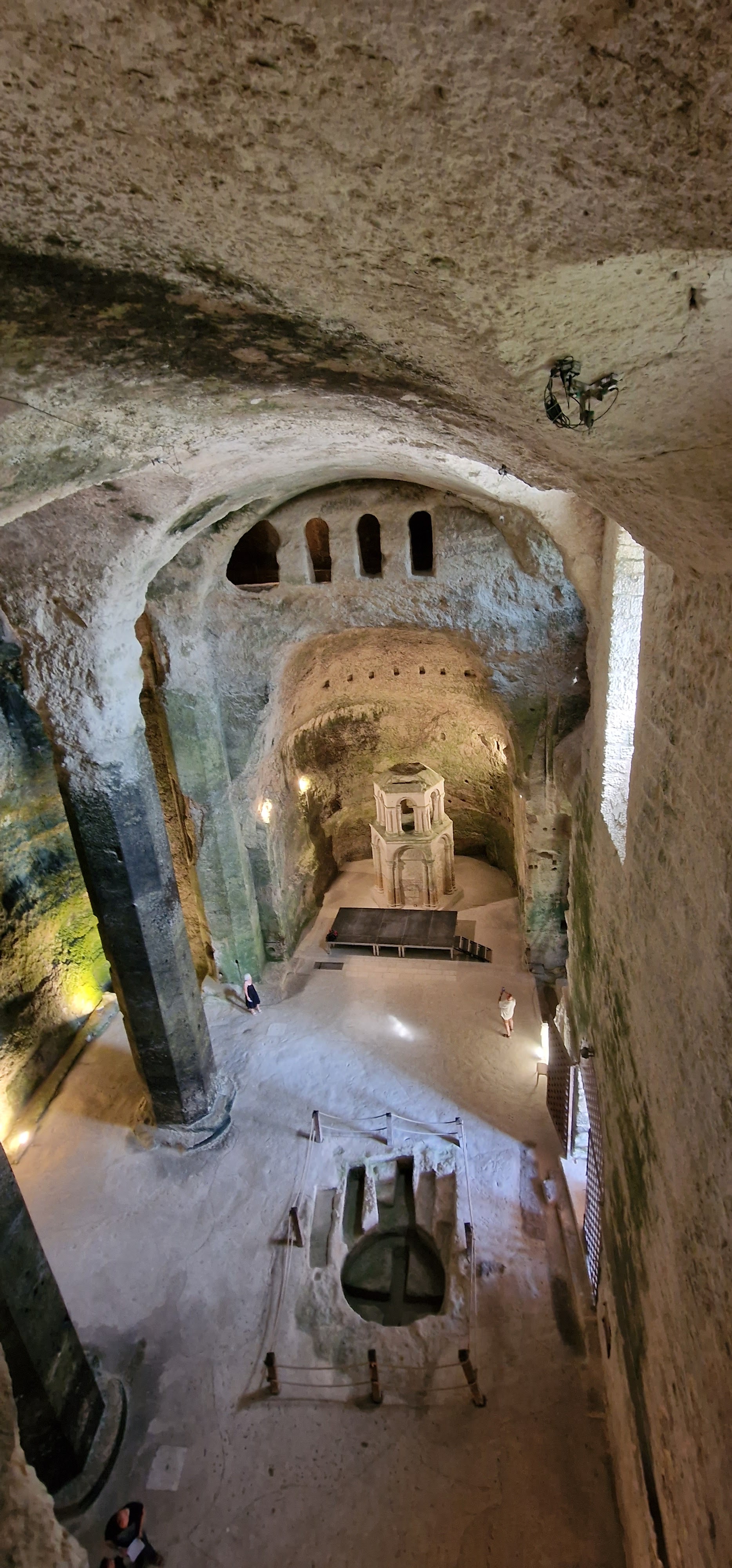 Grandiose et fascinante. Des églises ou des chapelles troglodytes, j’en avais déjà visité, mais là, on est dans les dimensions d’une cathédrale. Les immenses colonnes situées dans la nef qui accueille les visiteurs sont terriblement impressionnantes. Nos ancêtres du moyen-âge, habités par la foi, ont démontré par cet ouvrage un immense courage, des connaissances techniques et des savoir-faire exceptionnels. Sa nef grandiose, son reliquaire monumental taillé à même la roche, sa nécropole de 200 tombes, son ossuaire, son déambulatoire à plus de 10 mètres de hauteur m’ont laissé des souvenirs que je crois inoubliables.