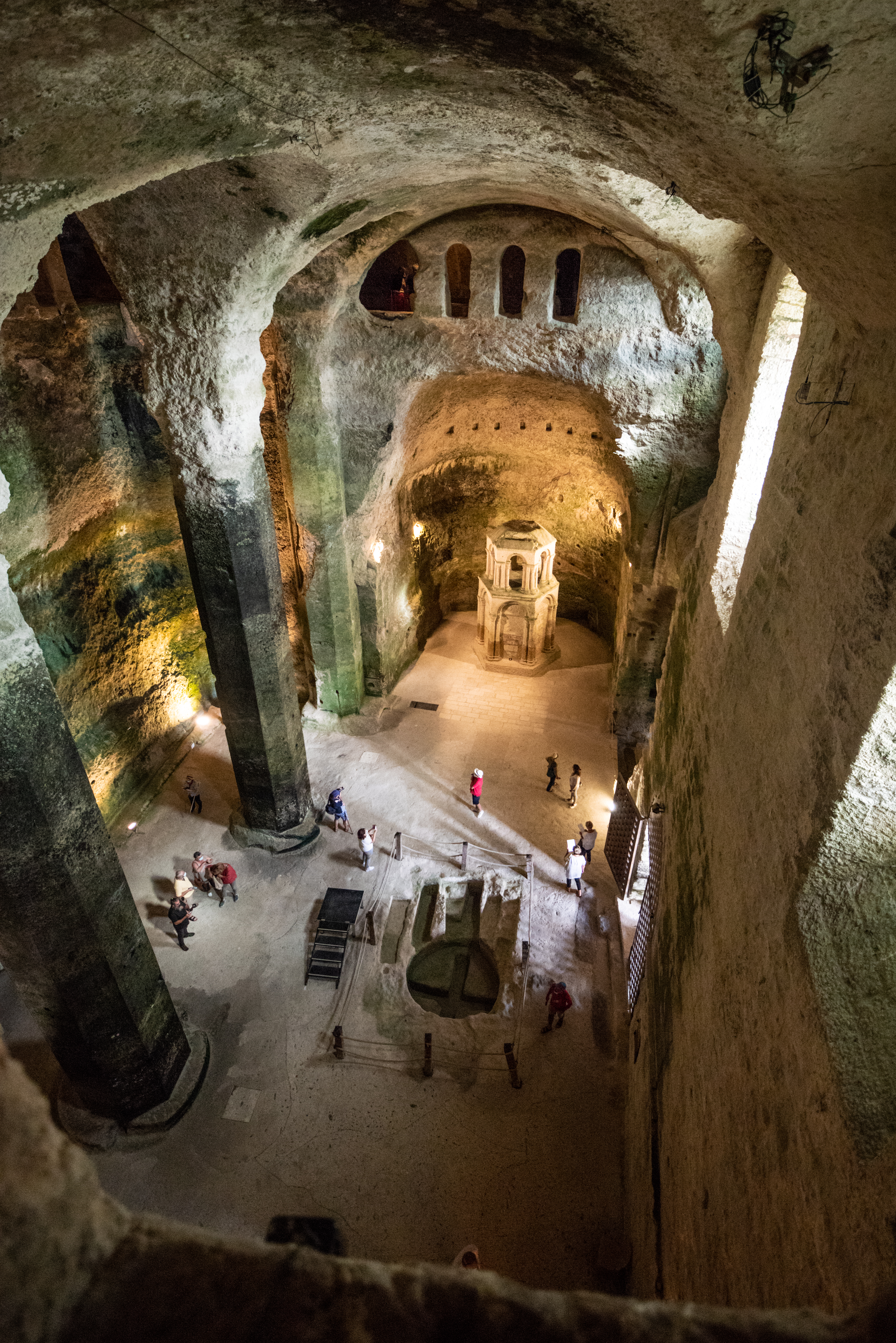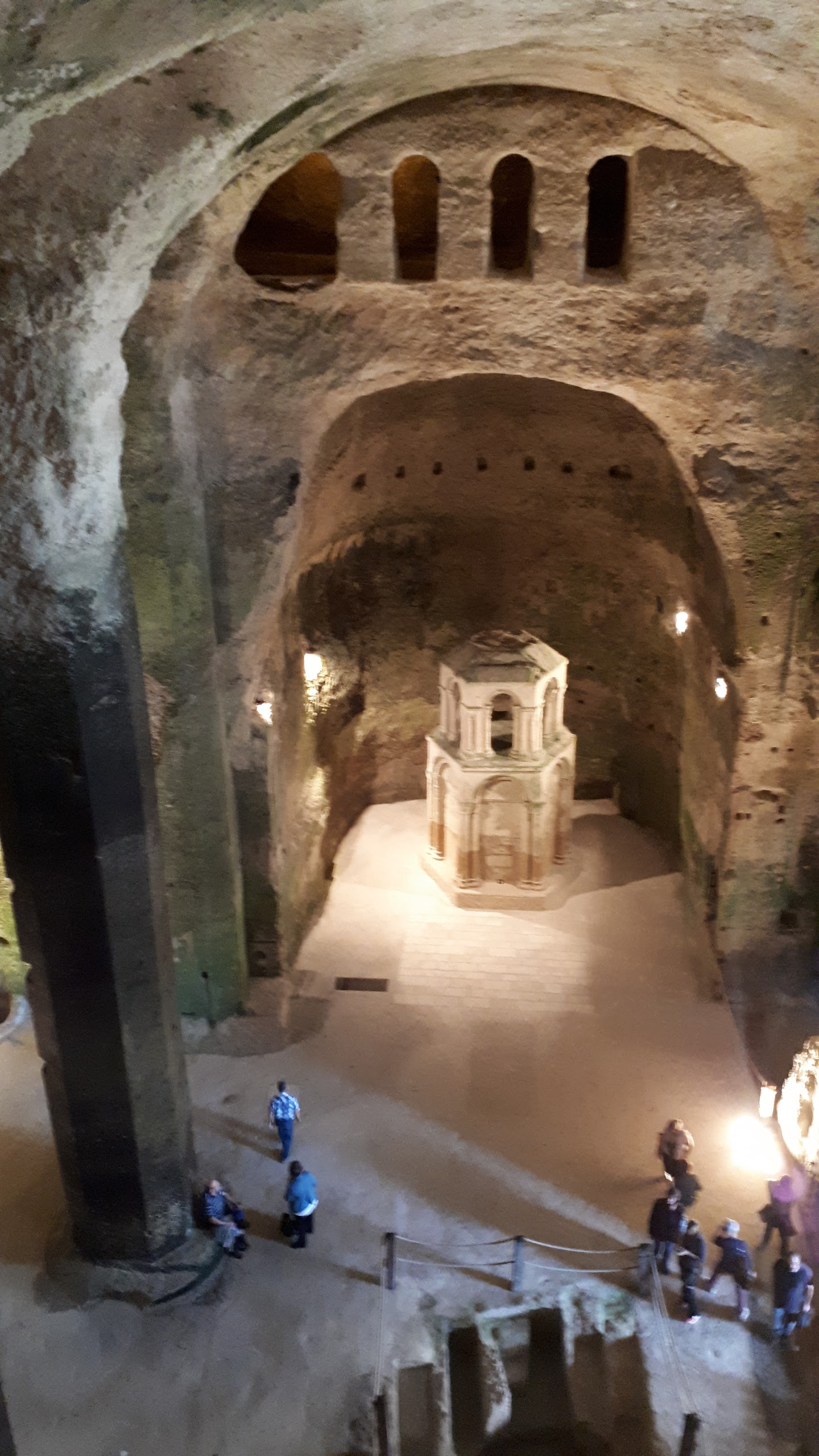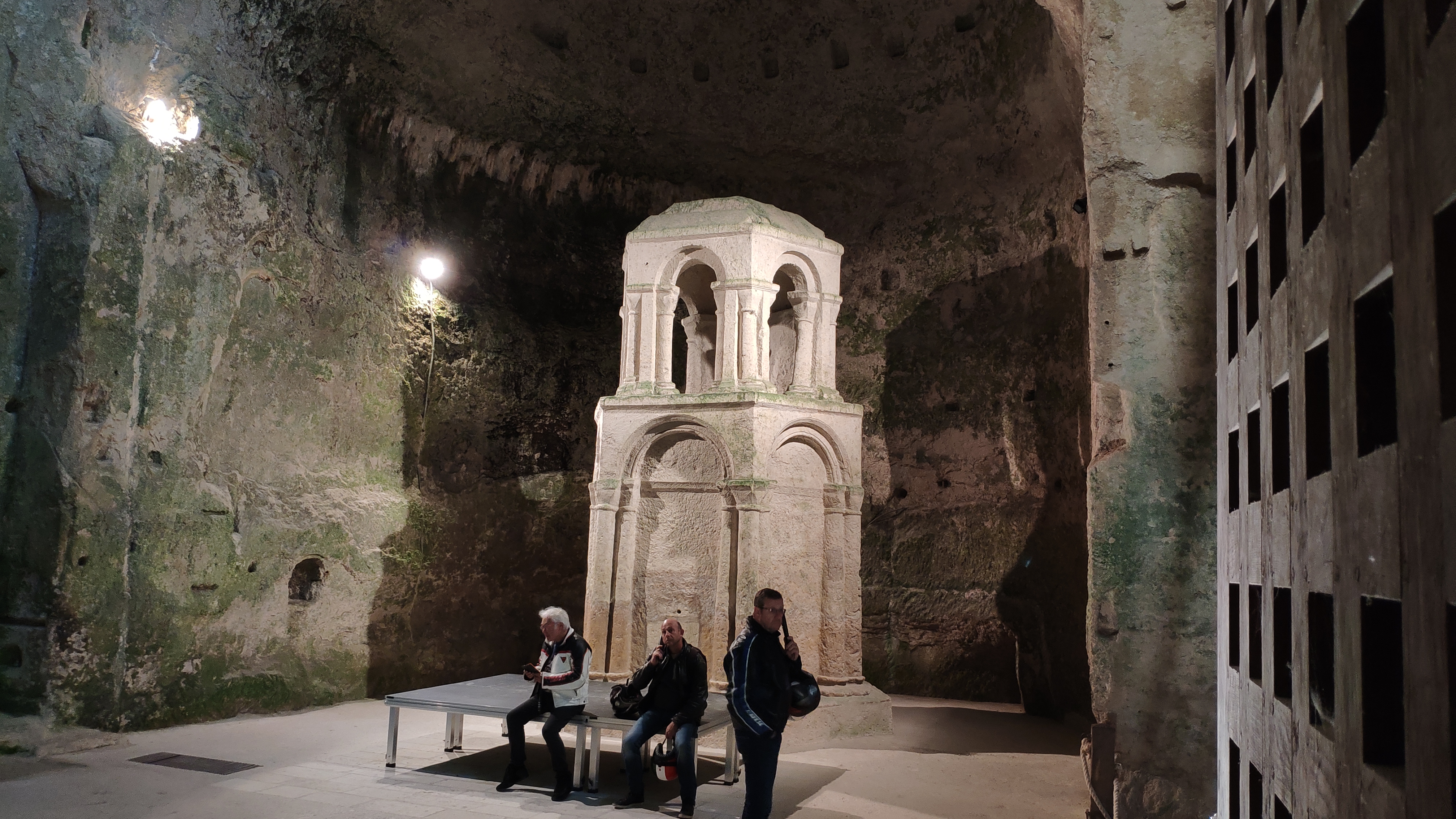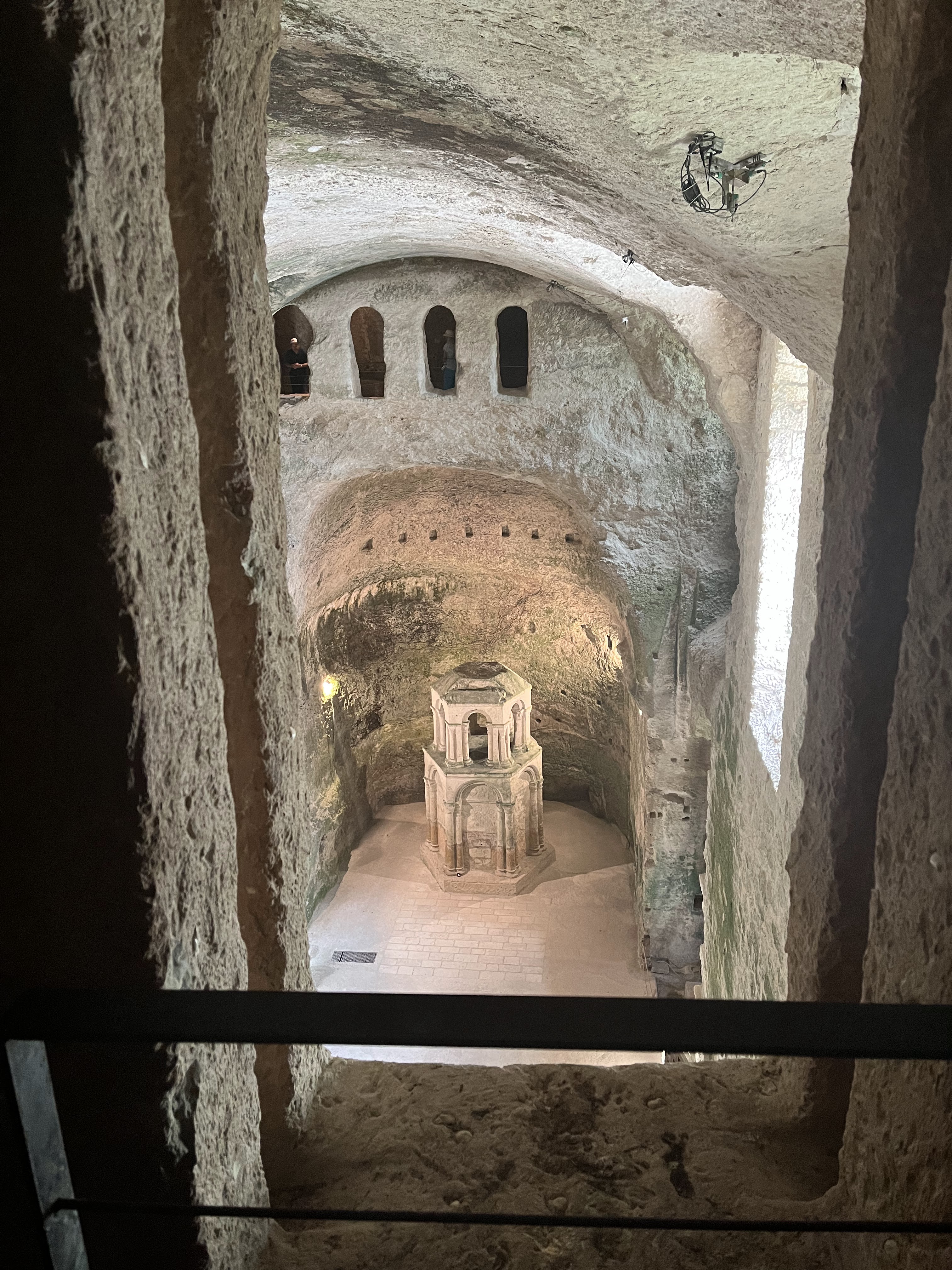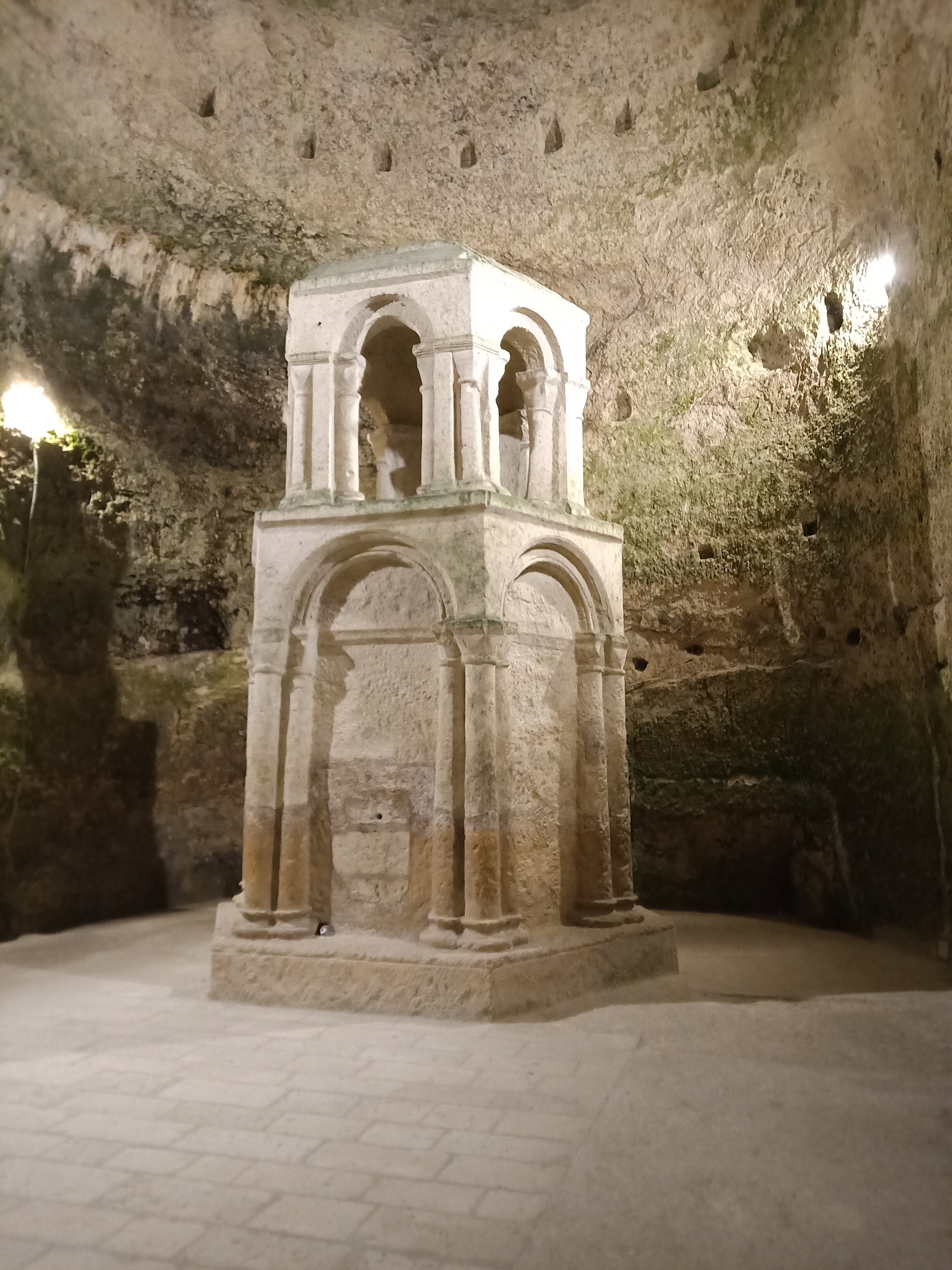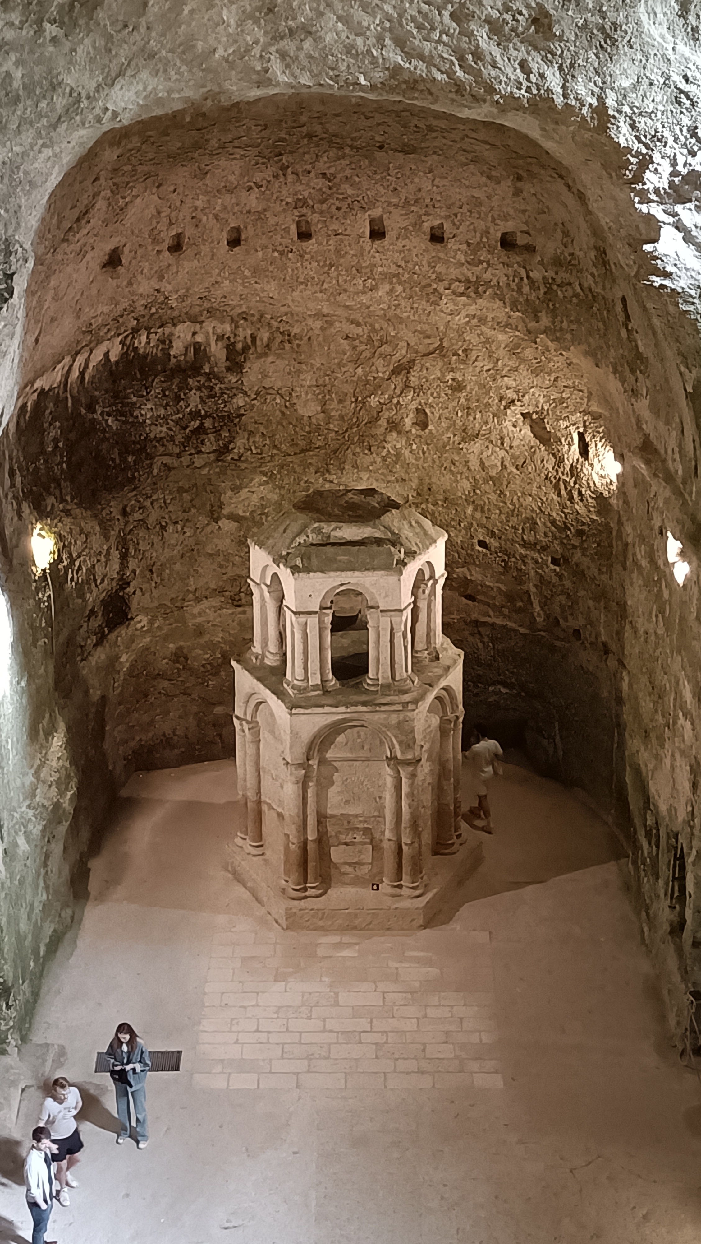 Grandiose et fascinante. Des églises ou des chapelles troglodytes, j’en avais déjà visité, mais là, on est dans les dimensions d’une cathédrale. Les immenses colonnes situées dans la nef qui accueille les visiteurs sont terriblement impressionnantes. Nos ancêtres du moyen-âge, habités par la foi, ont démontré par cet ouvrage un immense courage, des connaissances techniques et des savoir-faire exceptionnels. Sa nef grandiose, son reliquaire monumental taillé à même la roche, sa nécropole de 200 tombes, son ossuaire, son déambulatoire à plus de 10 mètres de hauteur m’ont laissé des souvenirs que je crois inoubliables.
