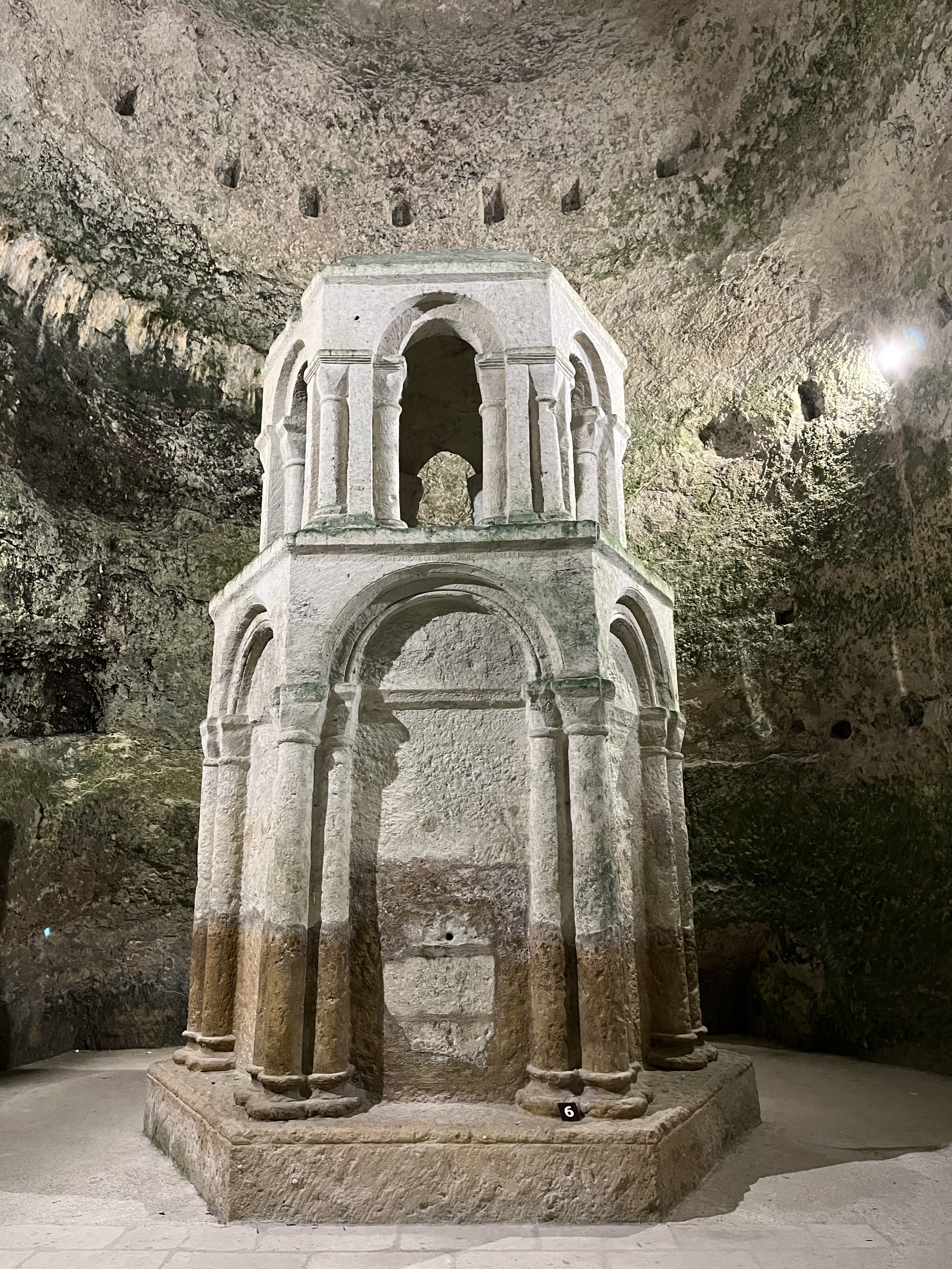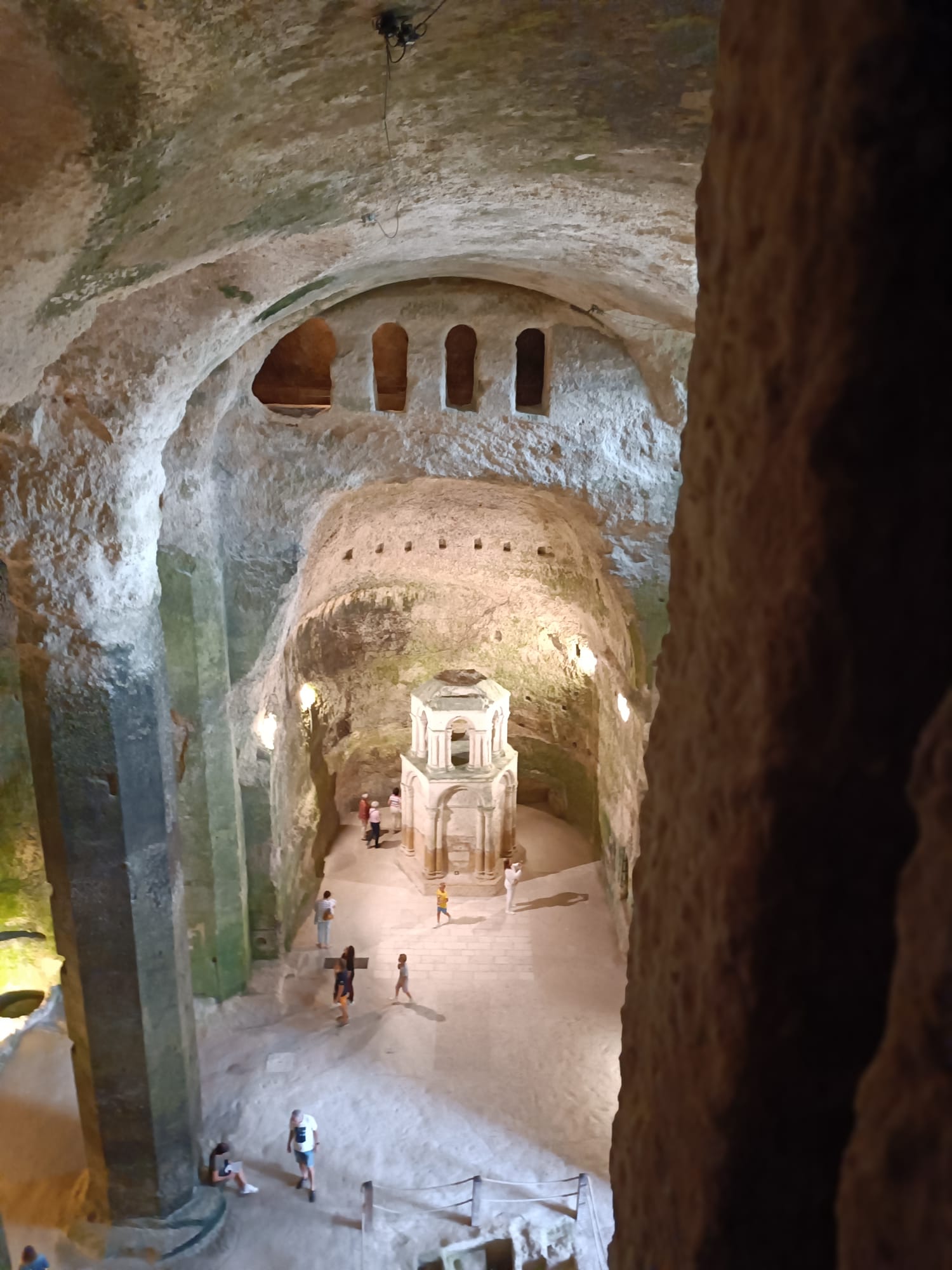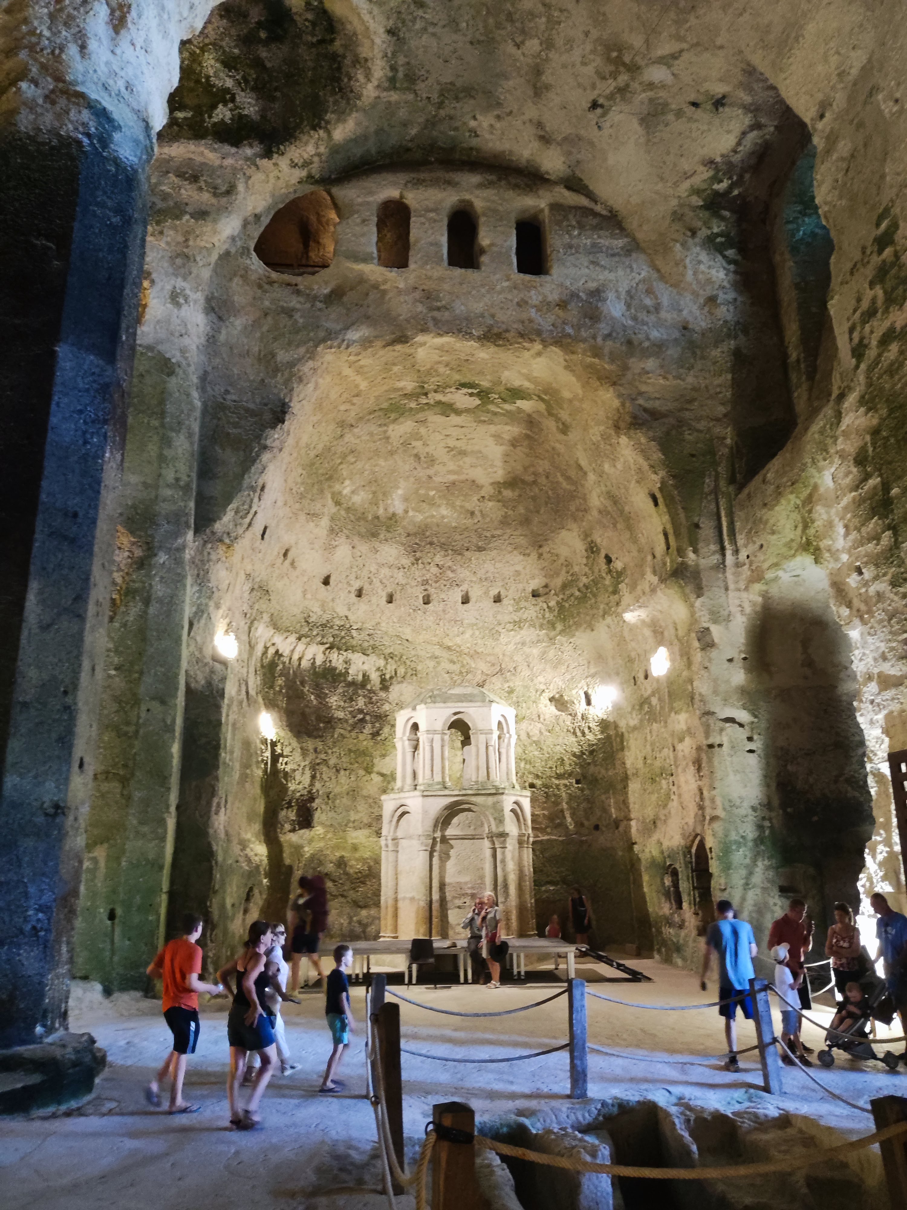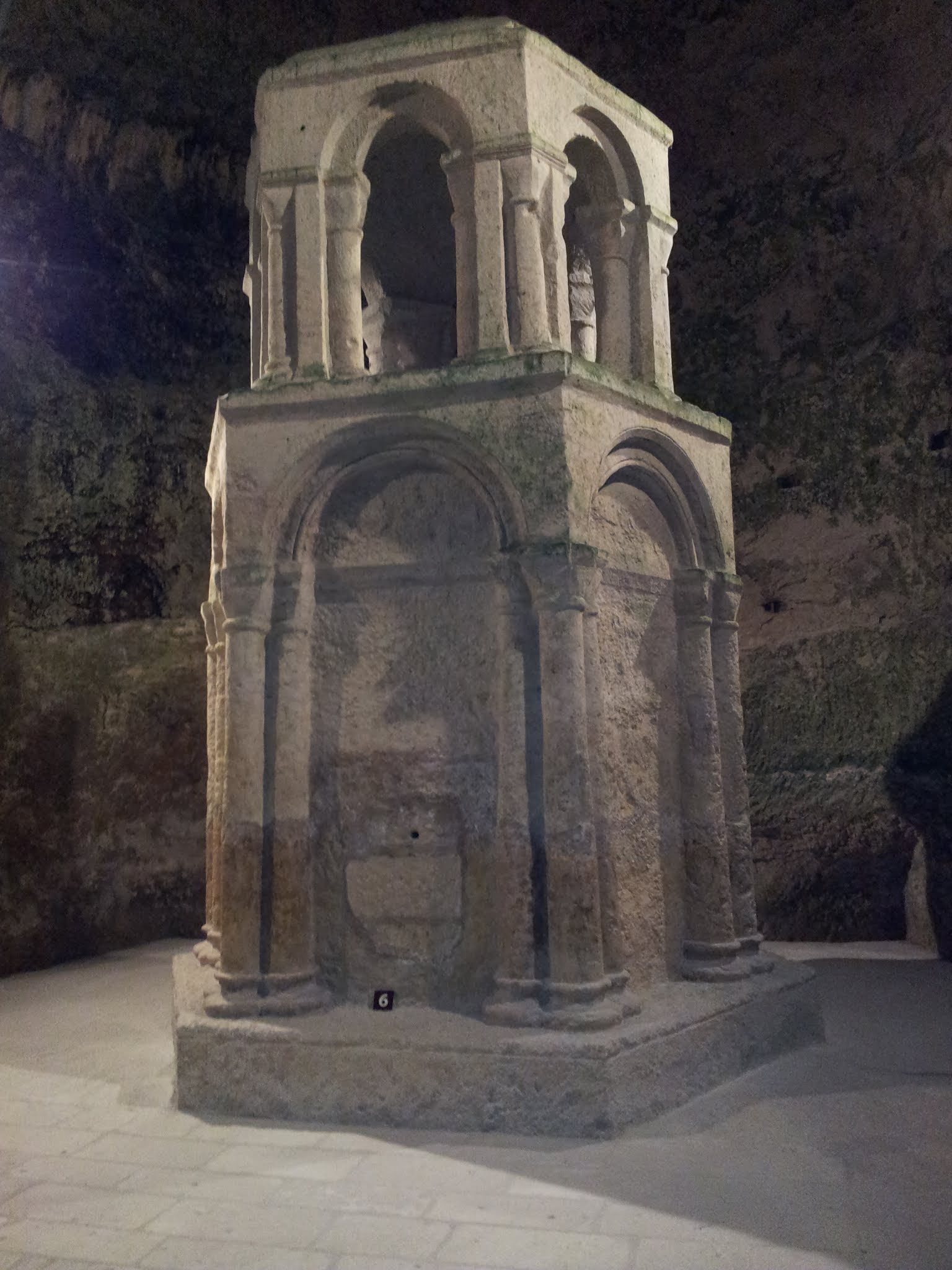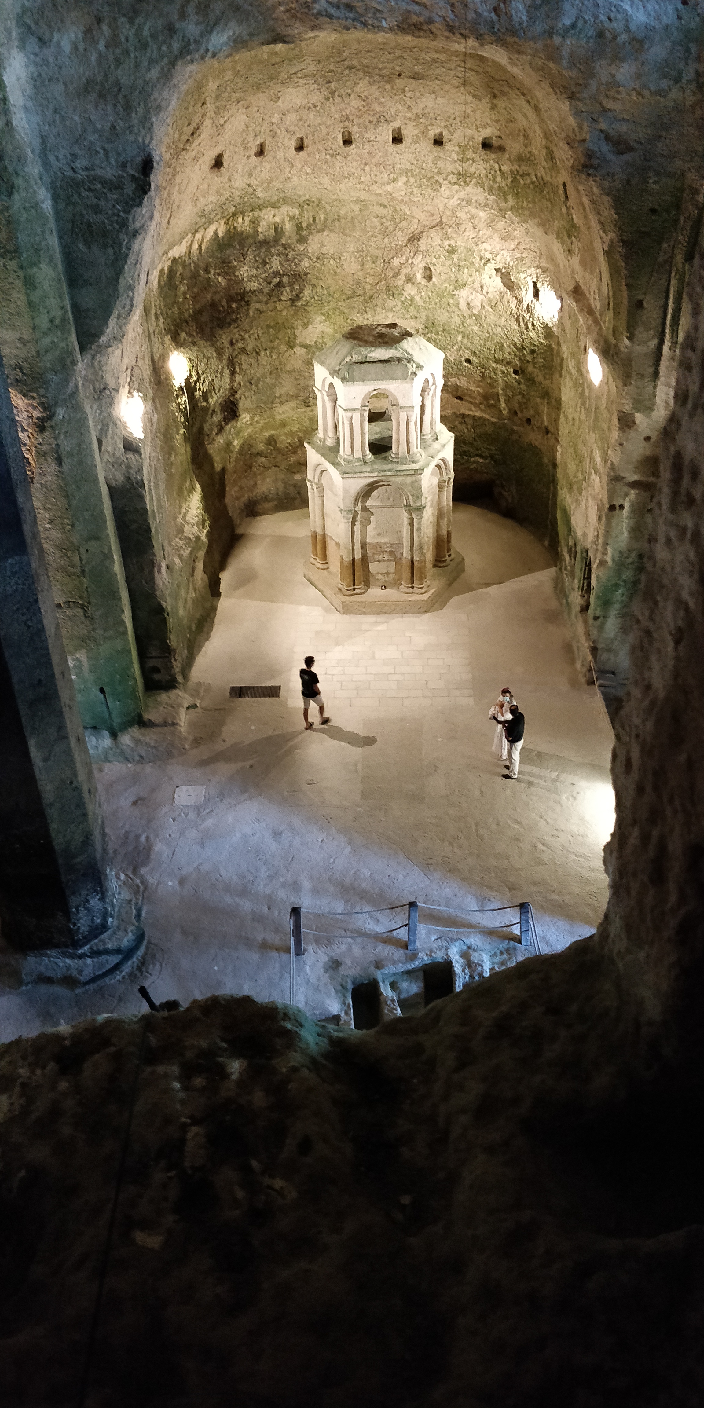 Grandiose et fascinante. Des églises ou des chapelles troglodytes, j’en avais déjà visité, mais là, on est dans les dimensions d’une cathédrale. Les immenses colonnes situées dans la nef qui accueille les visiteurs sont terriblement impressionnantes. Nos ancêtres du moyen-âge, habités par la foi, ont démontré par cet ouvrage un immense courage, des connaissances techniques et des savoir-faire exceptionnels. Sa nef grandiose, son reliquaire monumental taillé à même la roche, sa nécropole de 200 tombes, son ossuaire, son déambulatoire à plus de 10 mètres de hauteur m’ont laissé des souvenirs que je crois inoubliables.
