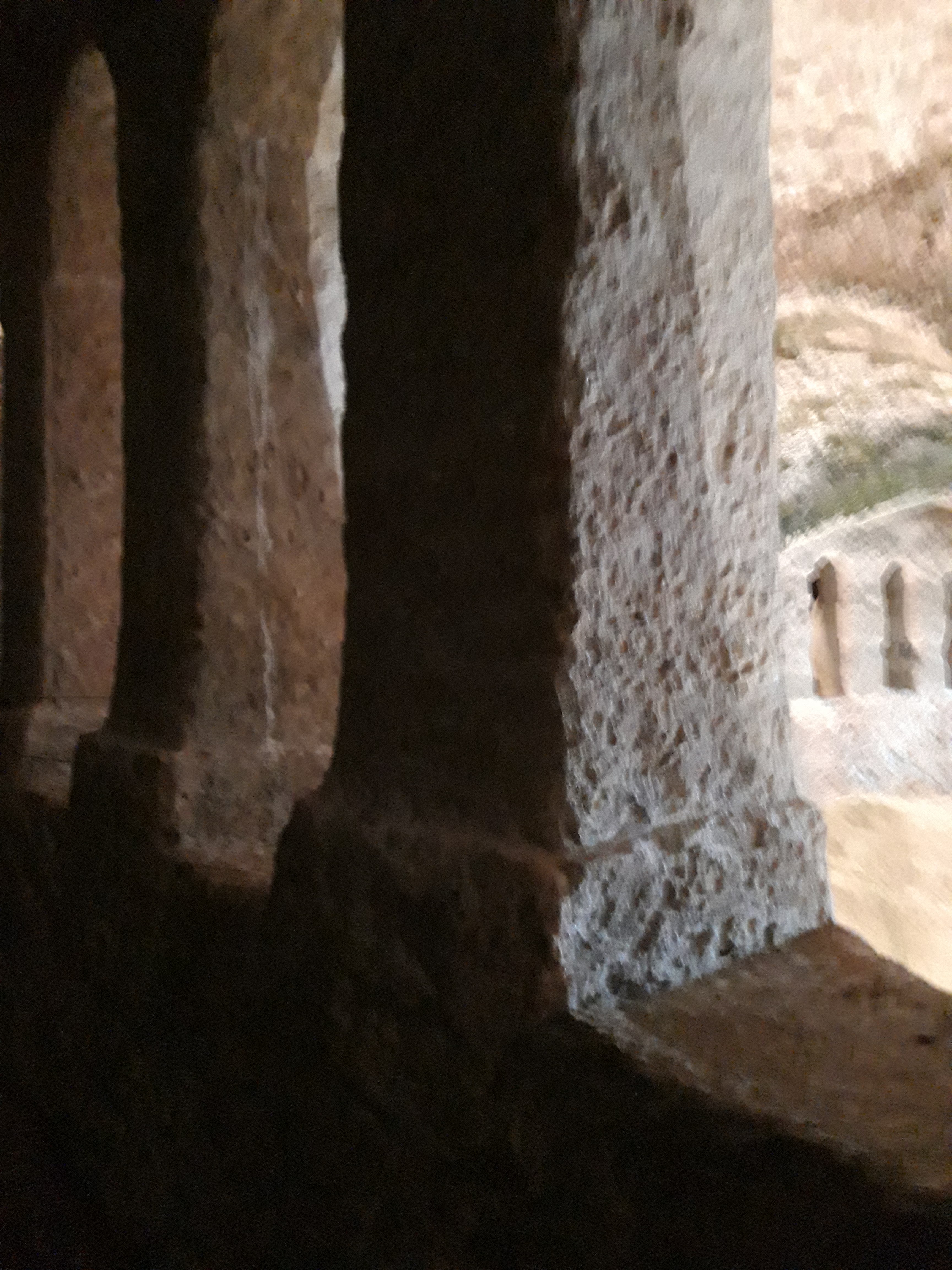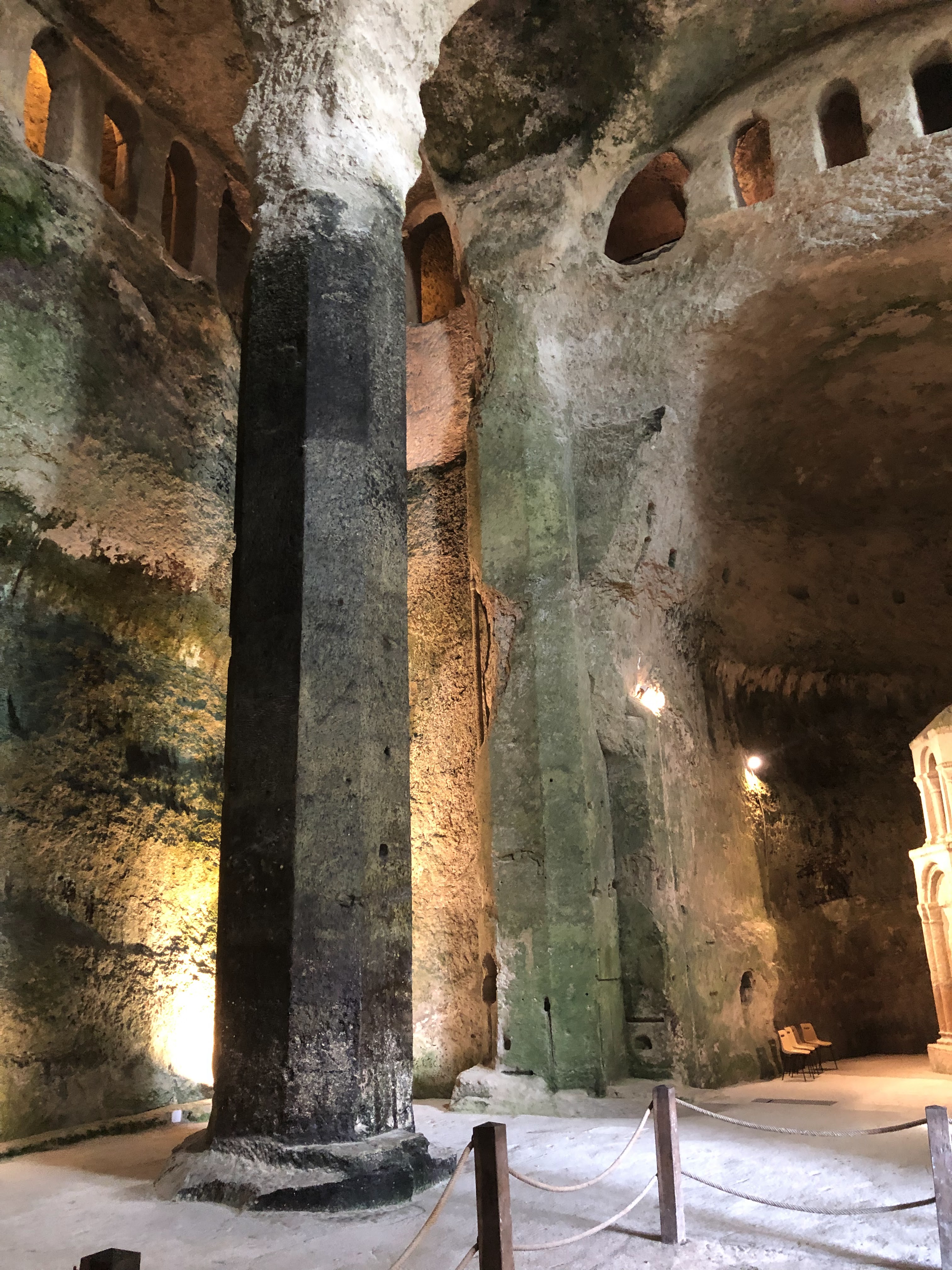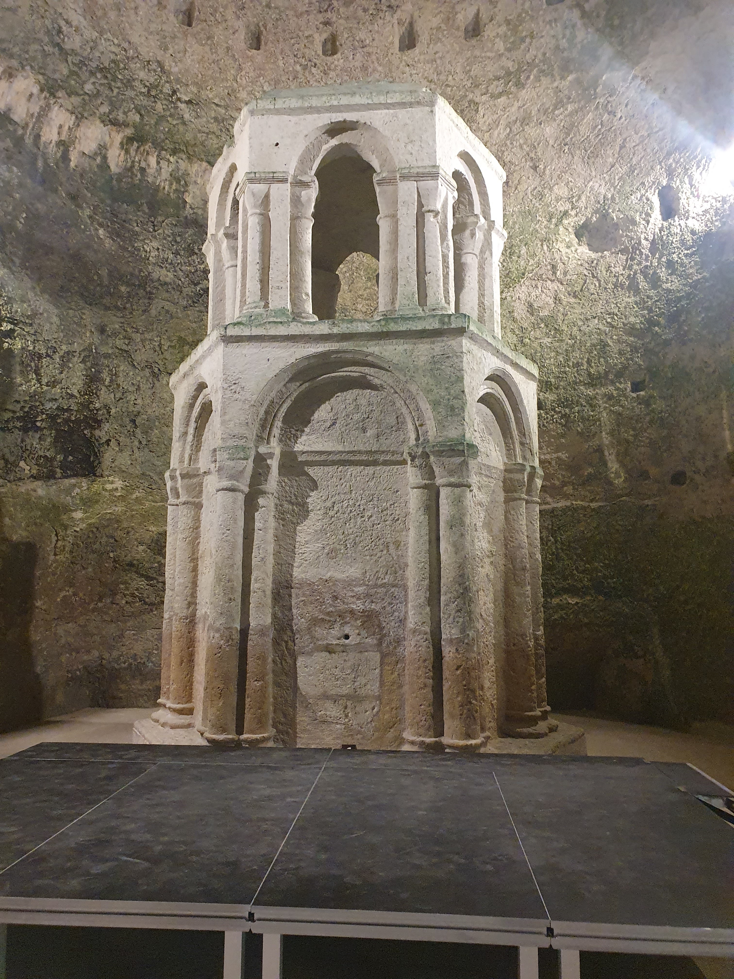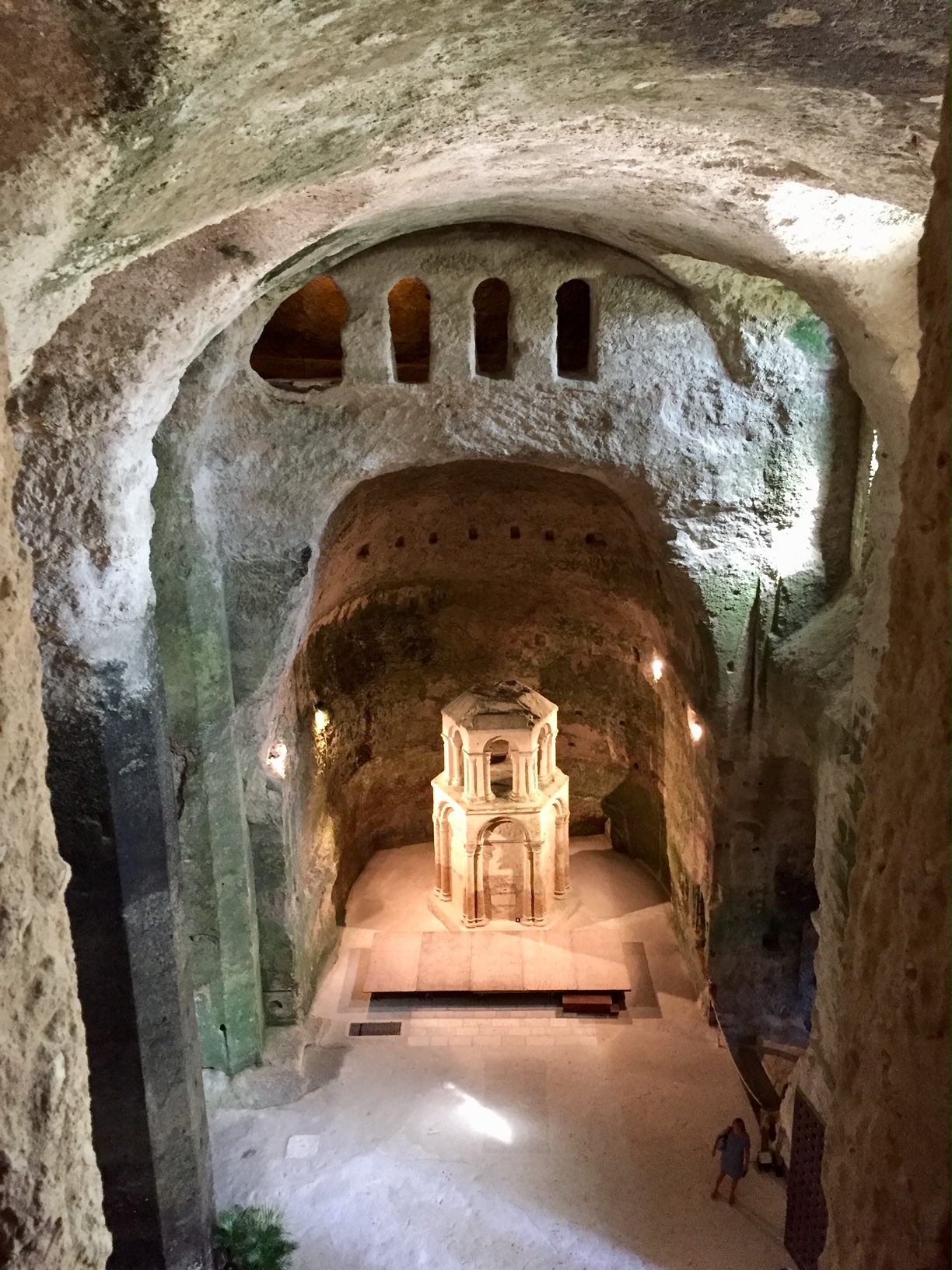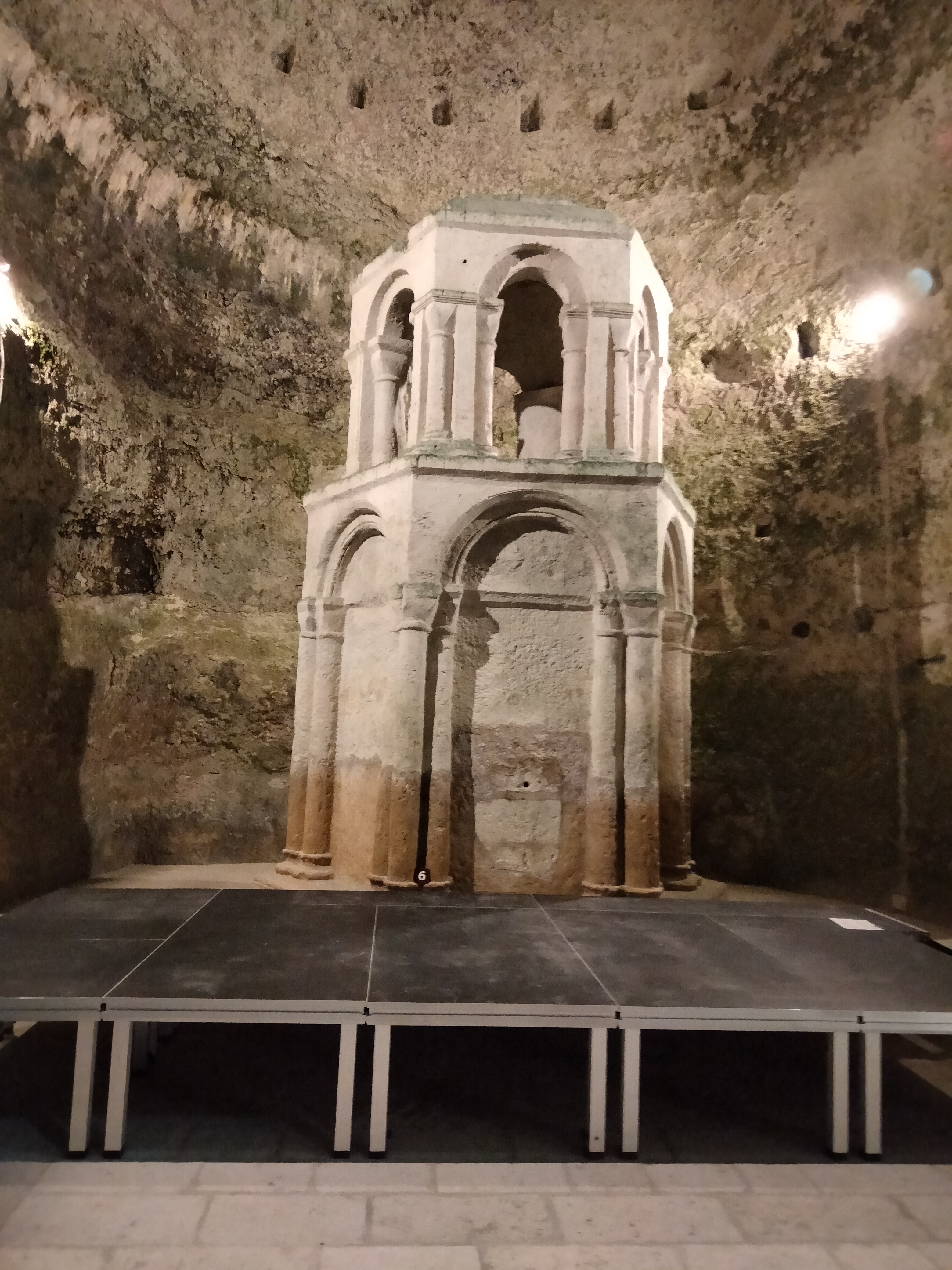 Grandiose et fascinante. Des églises ou des chapelles troglodytes, j’en avais déjà visité, mais là, on est dans les dimensions d’une cathédrale. Les immenses colonnes situées dans la nef qui accueille les visiteurs sont terriblement impressionnantes. Nos ancêtres du moyen-âge, habités par la foi, ont démontré par cet ouvrage un immense courage, des connaissances techniques et des savoir-faire exceptionnels. Sa nef grandiose, son reliquaire monumental taillé à même la roche, sa nécropole de 200 tombes, son ossuaire, son déambulatoire à plus de 10 mètres de hauteur m’ont laissé des souvenirs que je crois inoubliables.