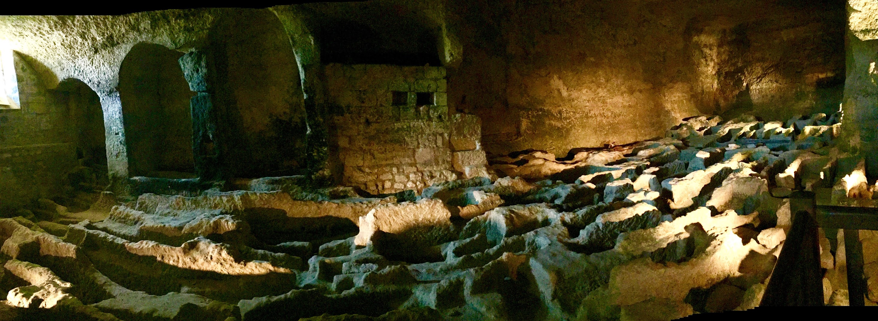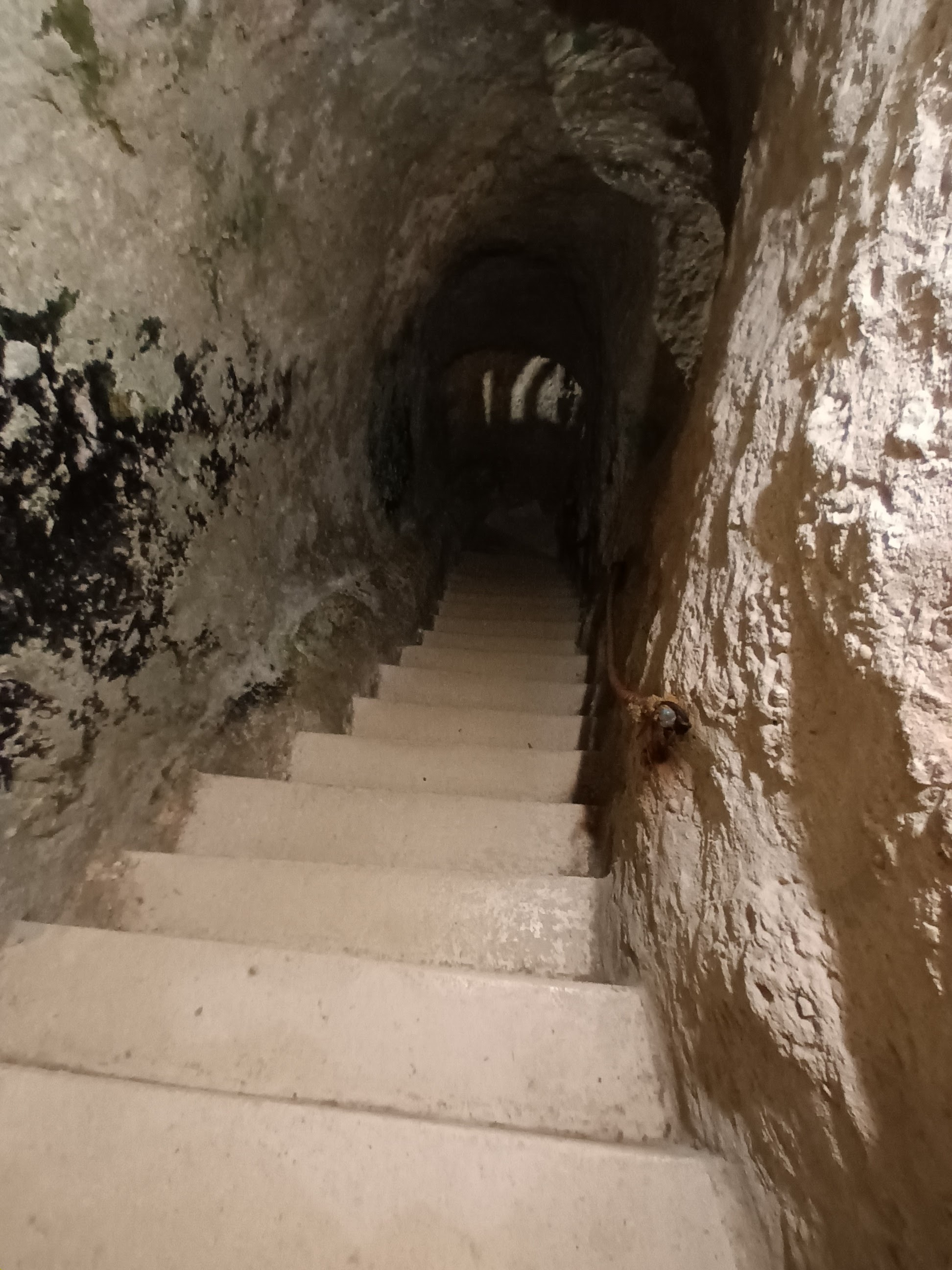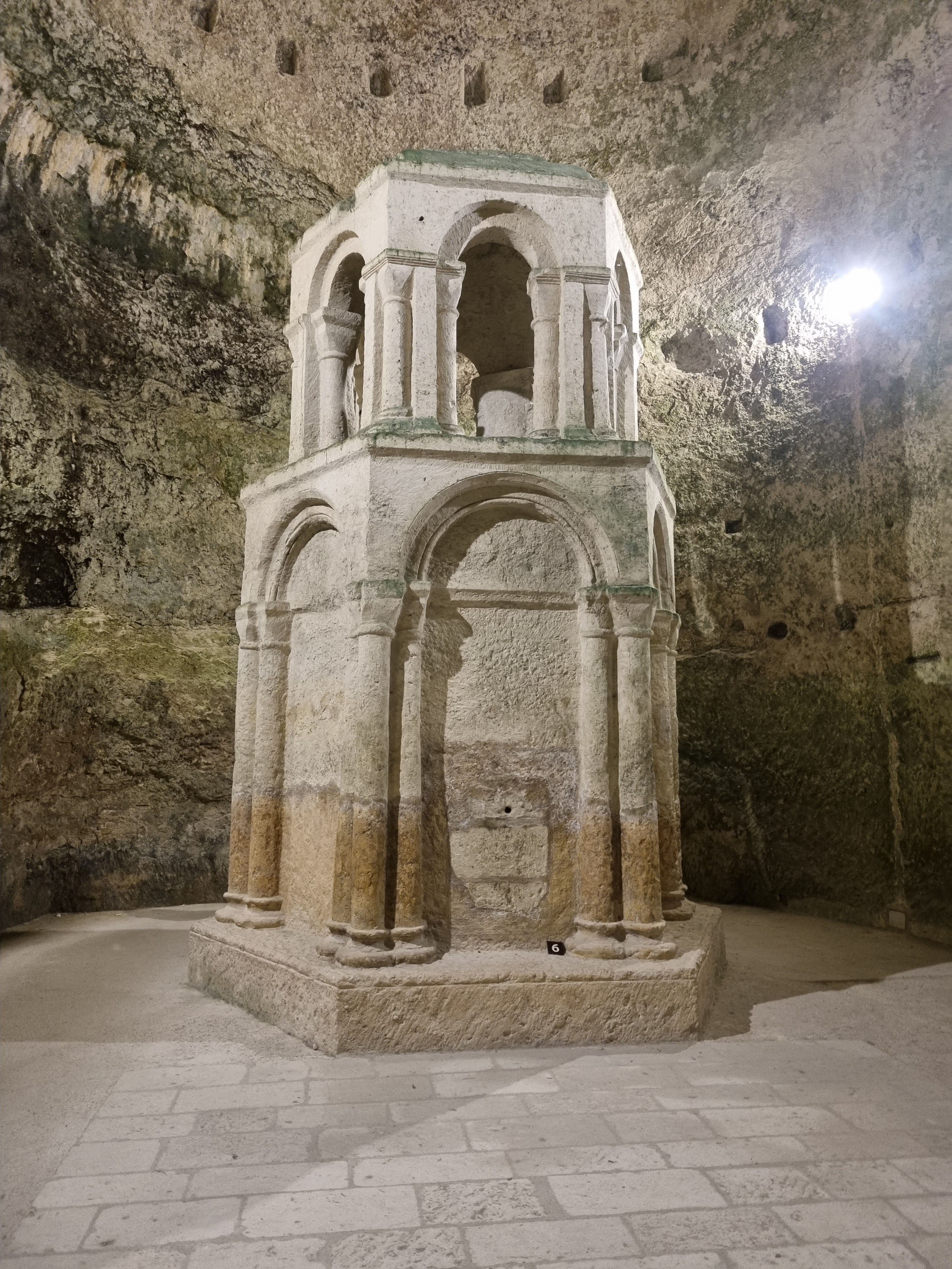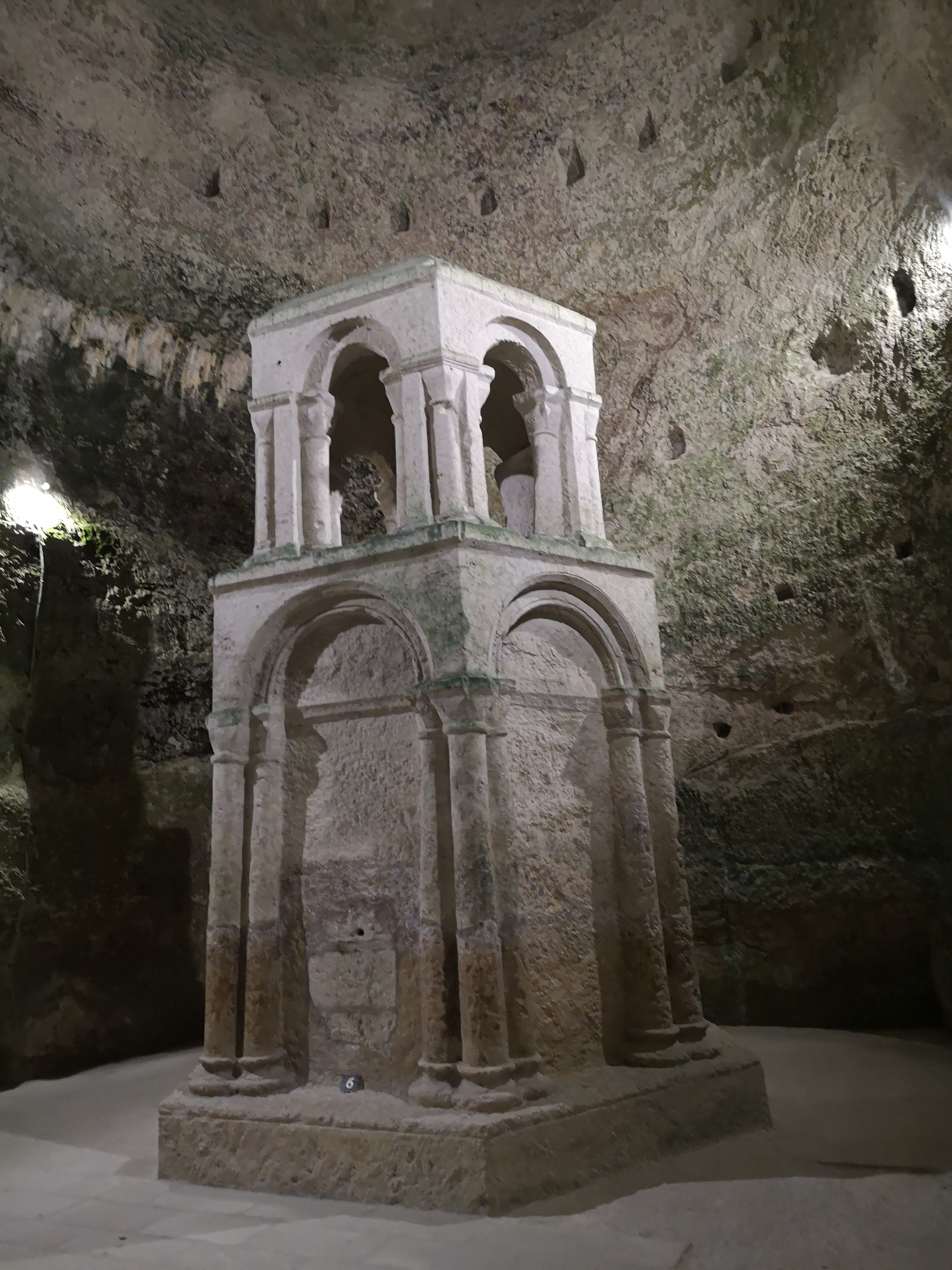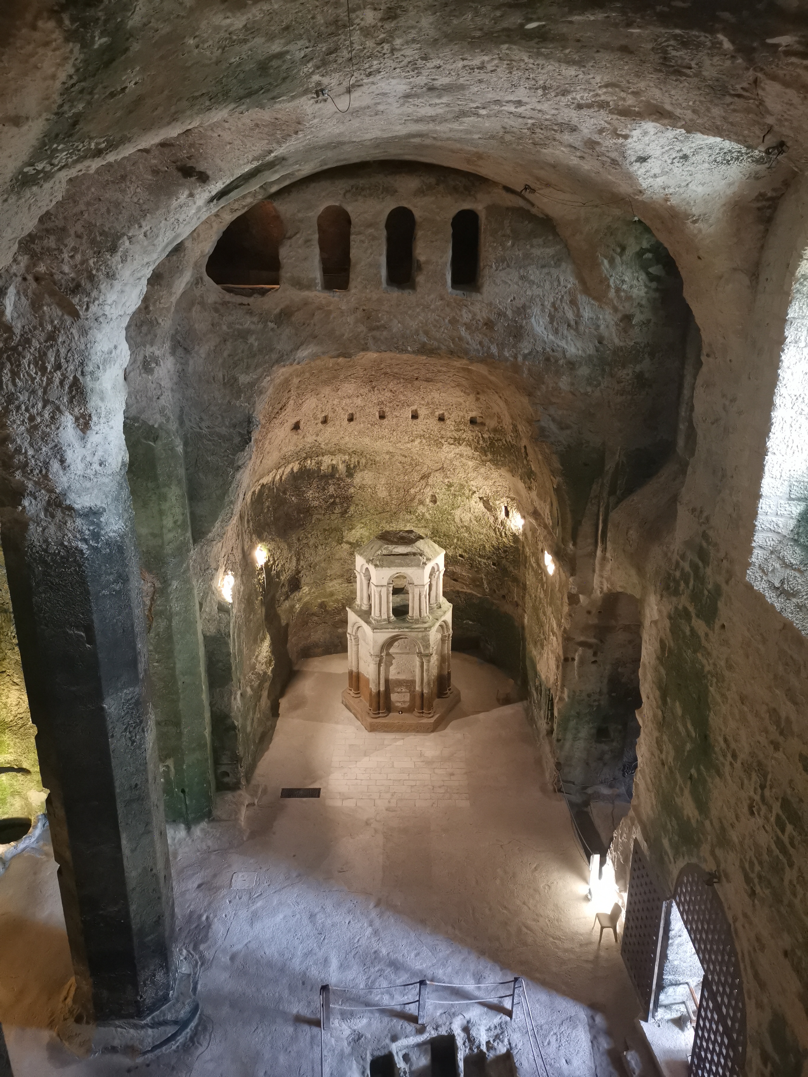 Grandiose et fascinante. Des églises ou des chapelles troglodytes, j’en avais déjà visité, mais là, on est dans les dimensions d’une cathédrale. Les immenses colonnes situées dans la nef qui accueille les visiteurs sont terriblement impressionnantes. Nos ancêtres du moyen-âge, habités par la foi, ont démontré par cet ouvrage un immense courage, des connaissances techniques et des savoir-faire exceptionnels. Sa nef grandiose, son reliquaire monumental taillé à même la roche, sa nécropole de 200 tombes, son ossuaire, son déambulatoire à plus de 10 mètres de hauteur m’ont laissé des souvenirs que je crois inoubliables.