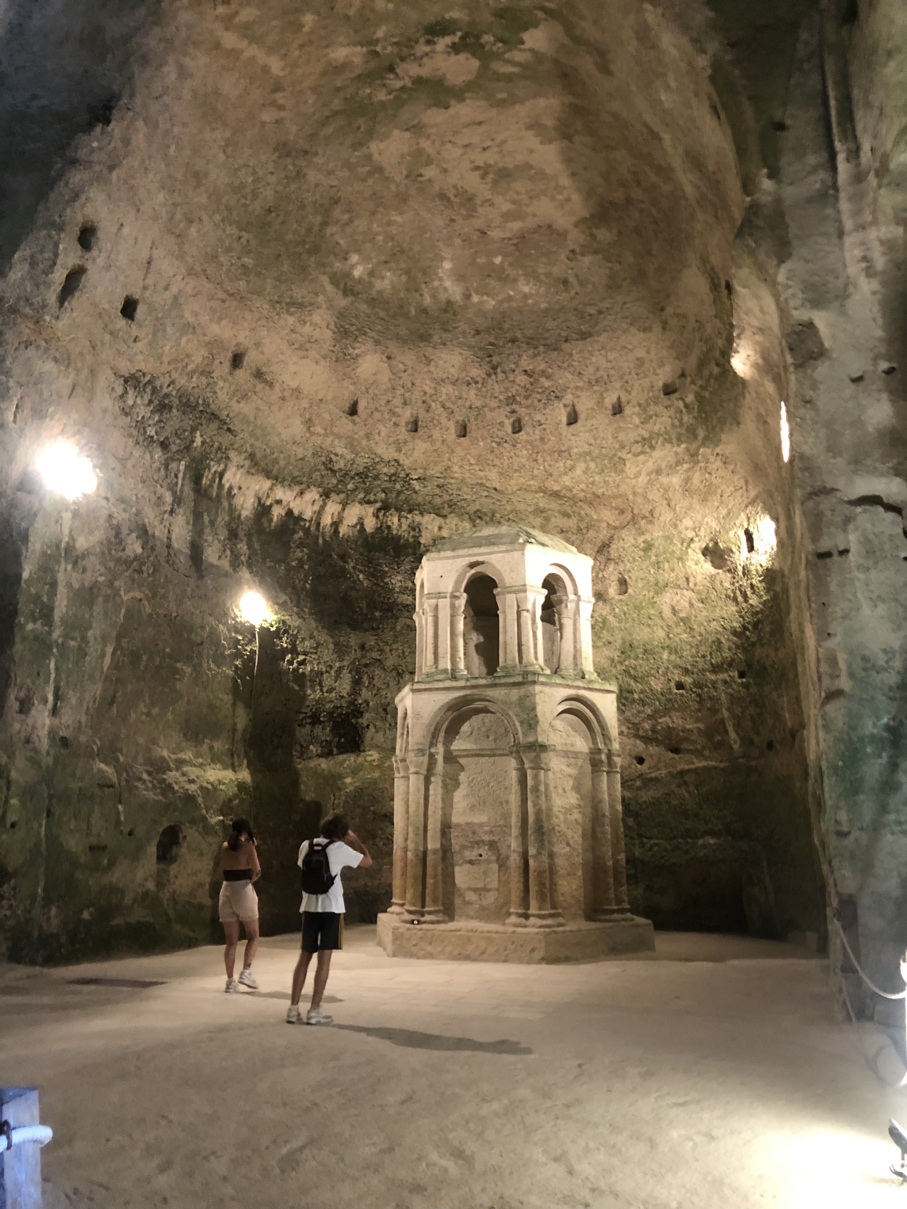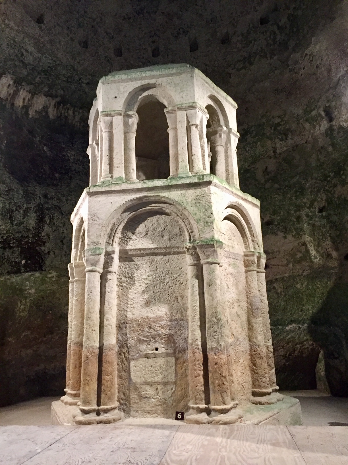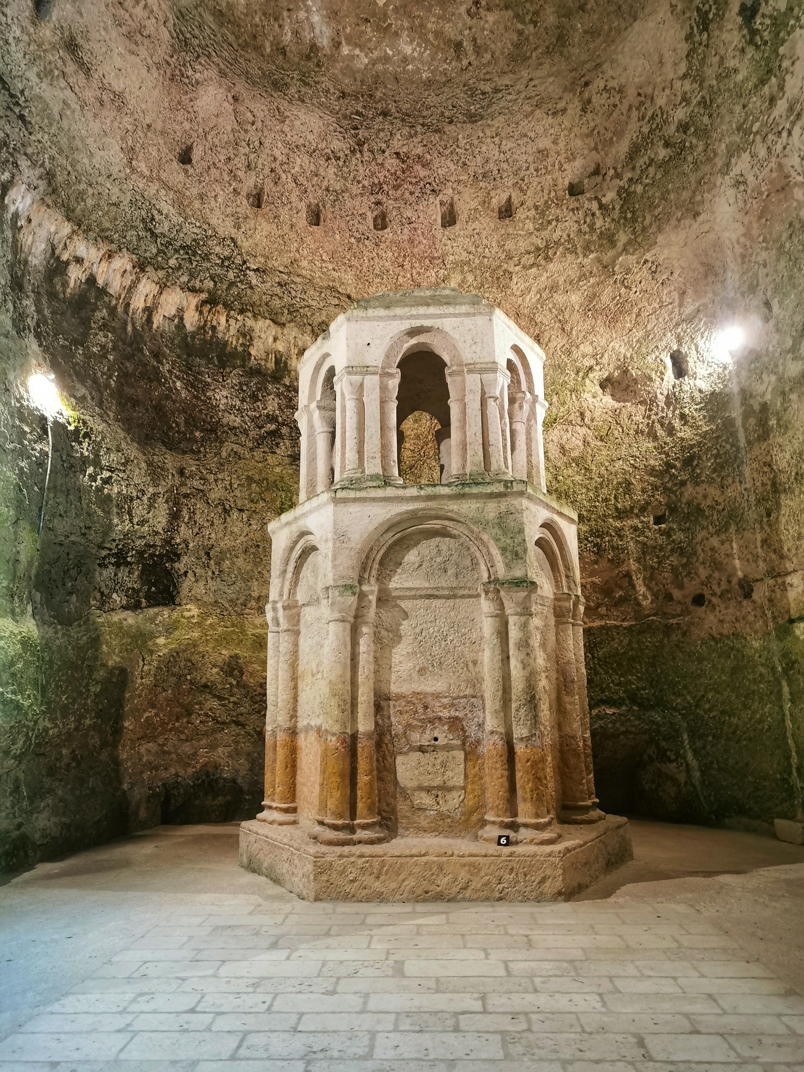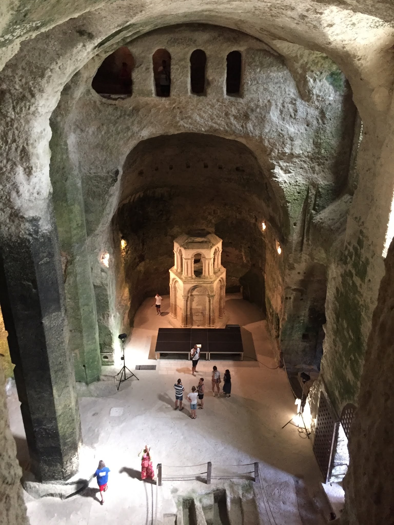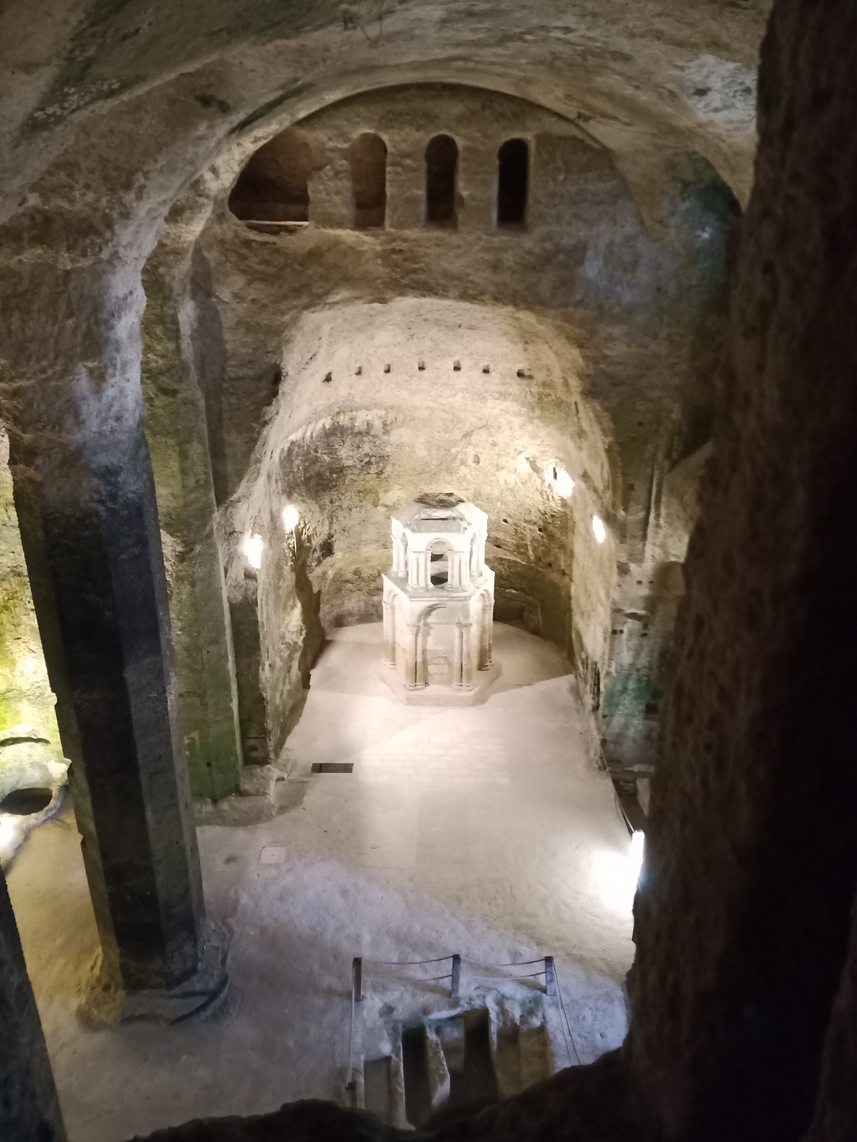 Grandiose et fascinante. Des églises ou des chapelles troglodytes, j’en avais déjà visité, mais là, on est dans les dimensions d’une cathédrale. Les immenses colonnes situées dans la nef qui accueille les visiteurs sont terriblement impressionnantes. Nos ancêtres du moyen-âge, habités par la foi, ont démontré par cet ouvrage un immense courage, des connaissances techniques et des savoir-faire exceptionnels. Sa nef grandiose, son reliquaire monumental taillé à même la roche, sa nécropole de 200 tombes, son ossuaire, son déambulatoire à plus de 10 mètres de hauteur m’ont laissé des souvenirs que je crois inoubliables.