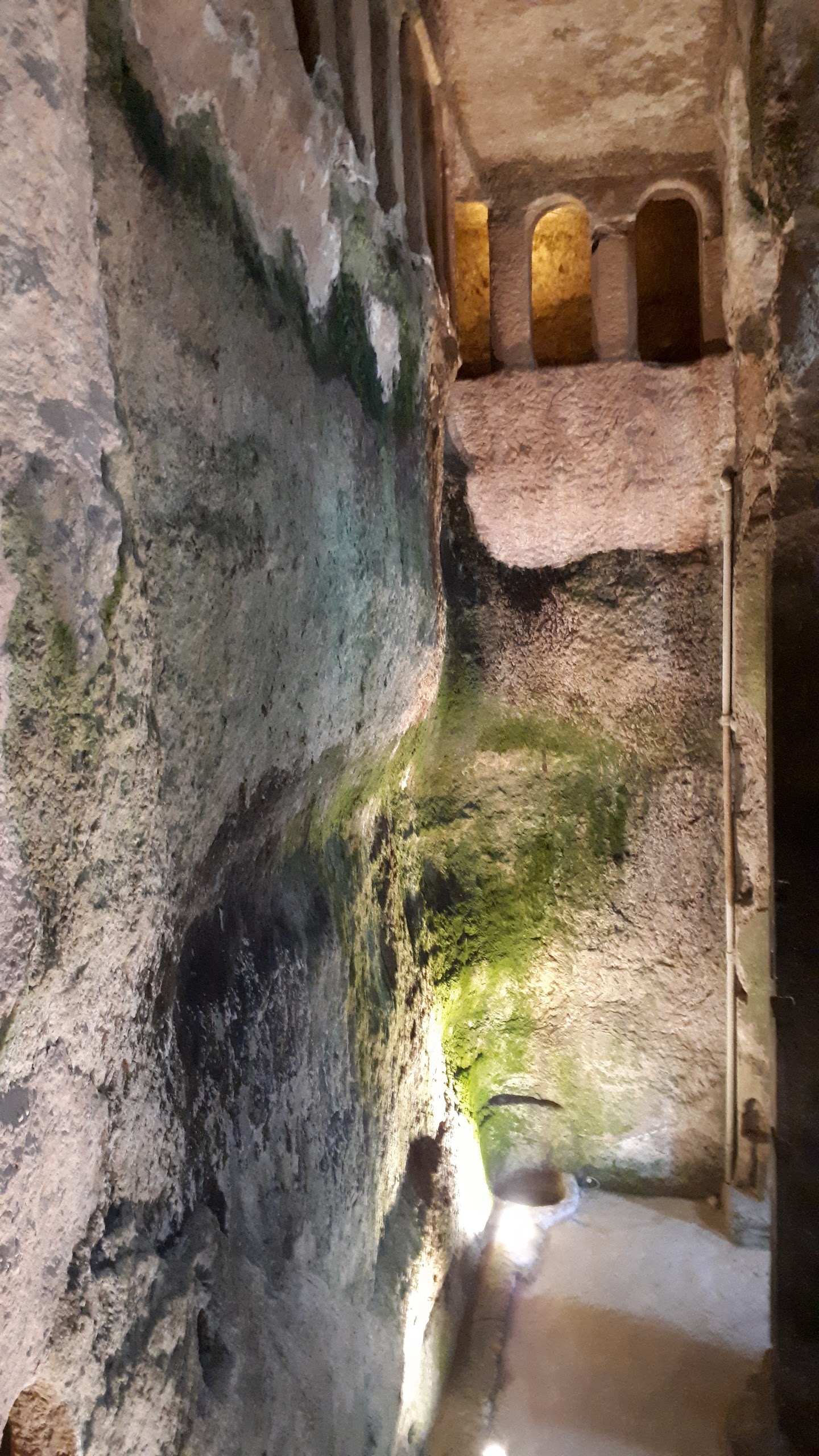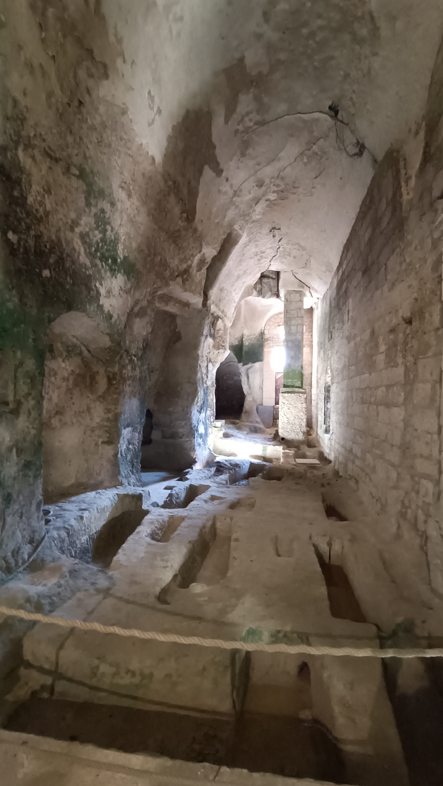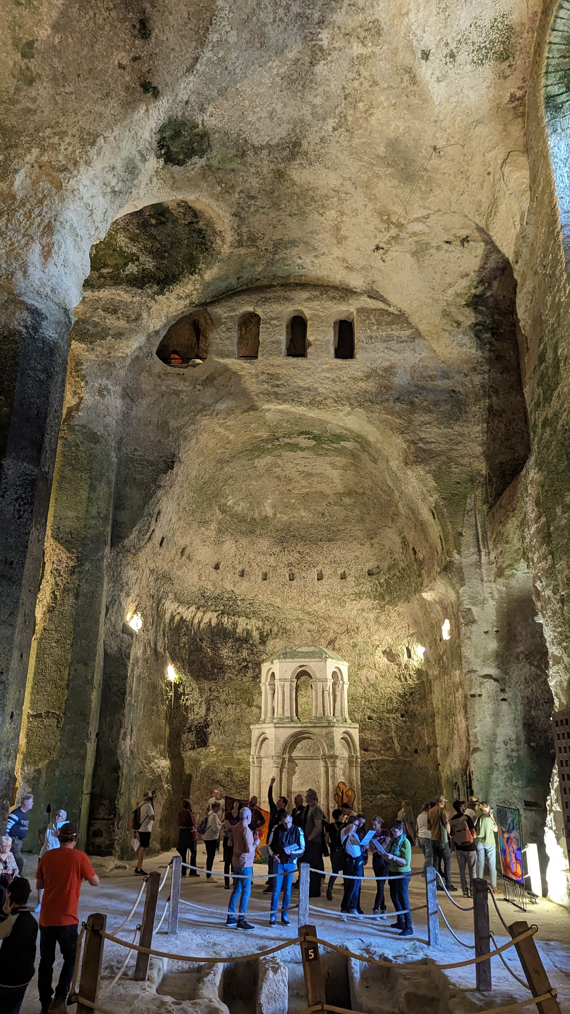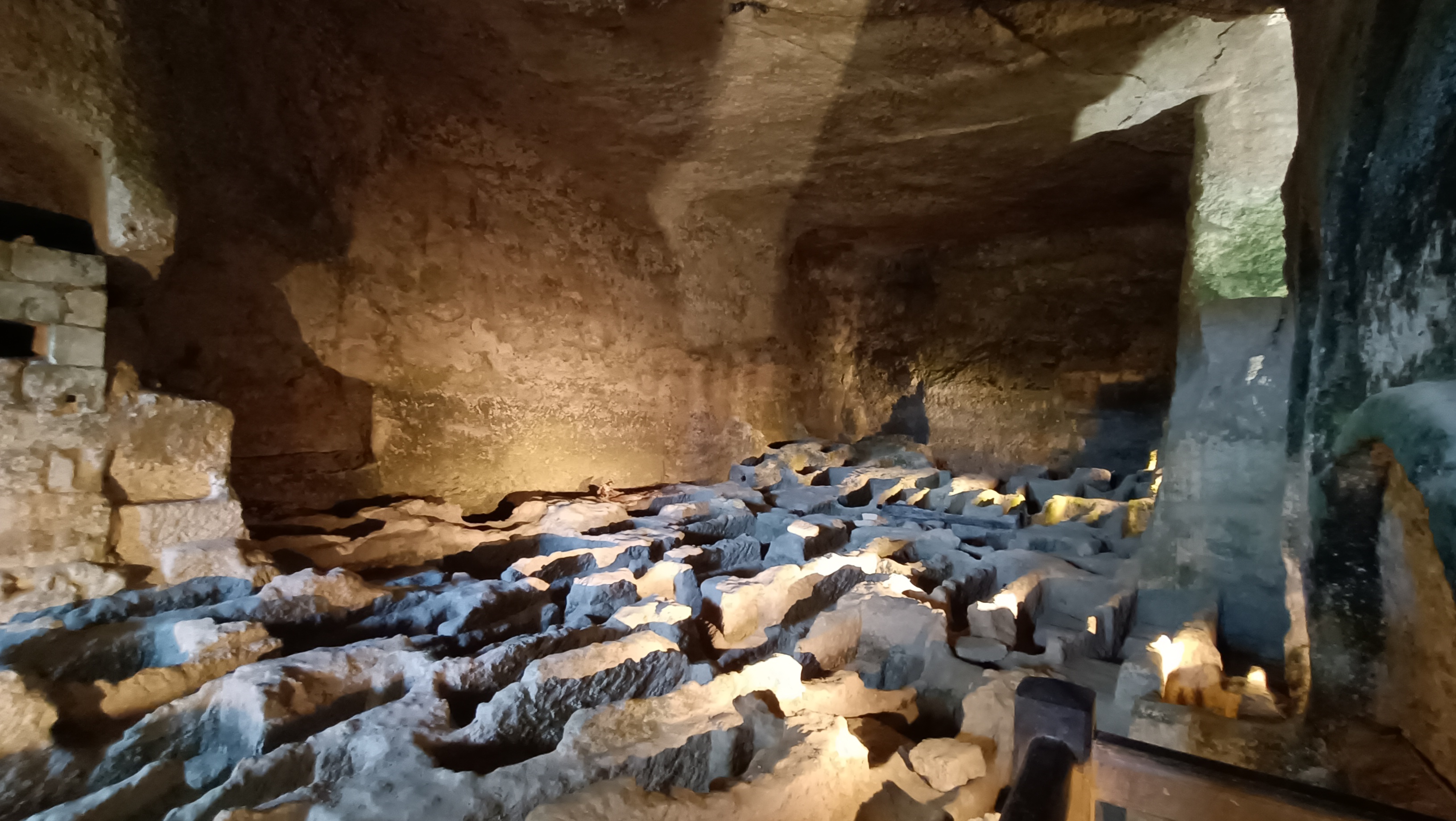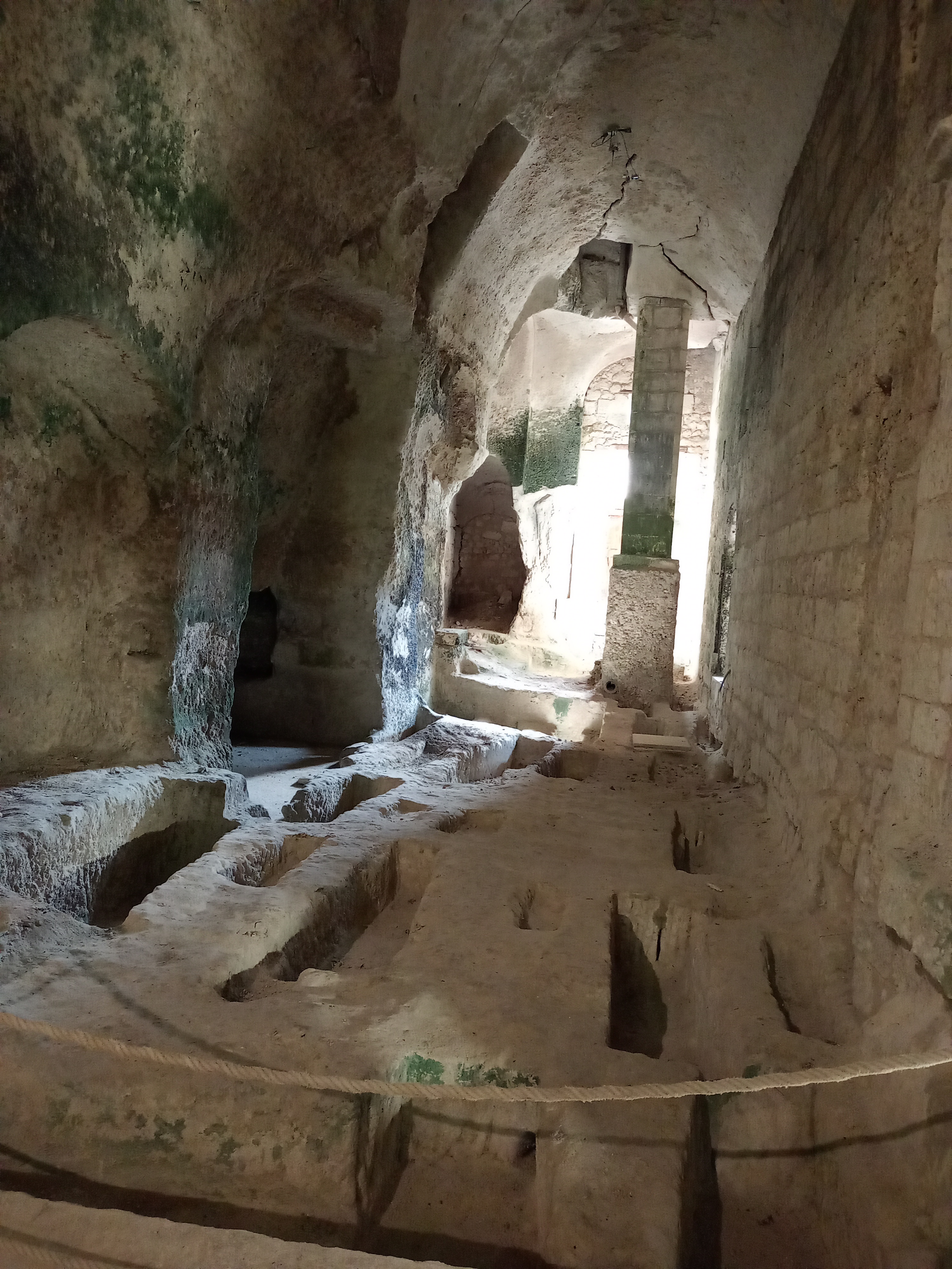 Grandiose et fascinante. Des églises ou des chapelles troglodytes, j’en avais déjà visité, mais là, on est dans les dimensions d’une cathédrale. Les immenses colonnes situées dans la nef qui accueille les visiteurs sont terriblement impressionnantes. Nos ancêtres du moyen-âge, habités par la foi, ont démontré par cet ouvrage un immense courage, des connaissances techniques et des savoir-faire exceptionnels. Sa nef grandiose, son reliquaire monumental taillé à même la roche, sa nécropole de 200 tombes, son ossuaire, son déambulatoire à plus de 10 mètres de hauteur m’ont laissé des souvenirs que je crois inoubliables.