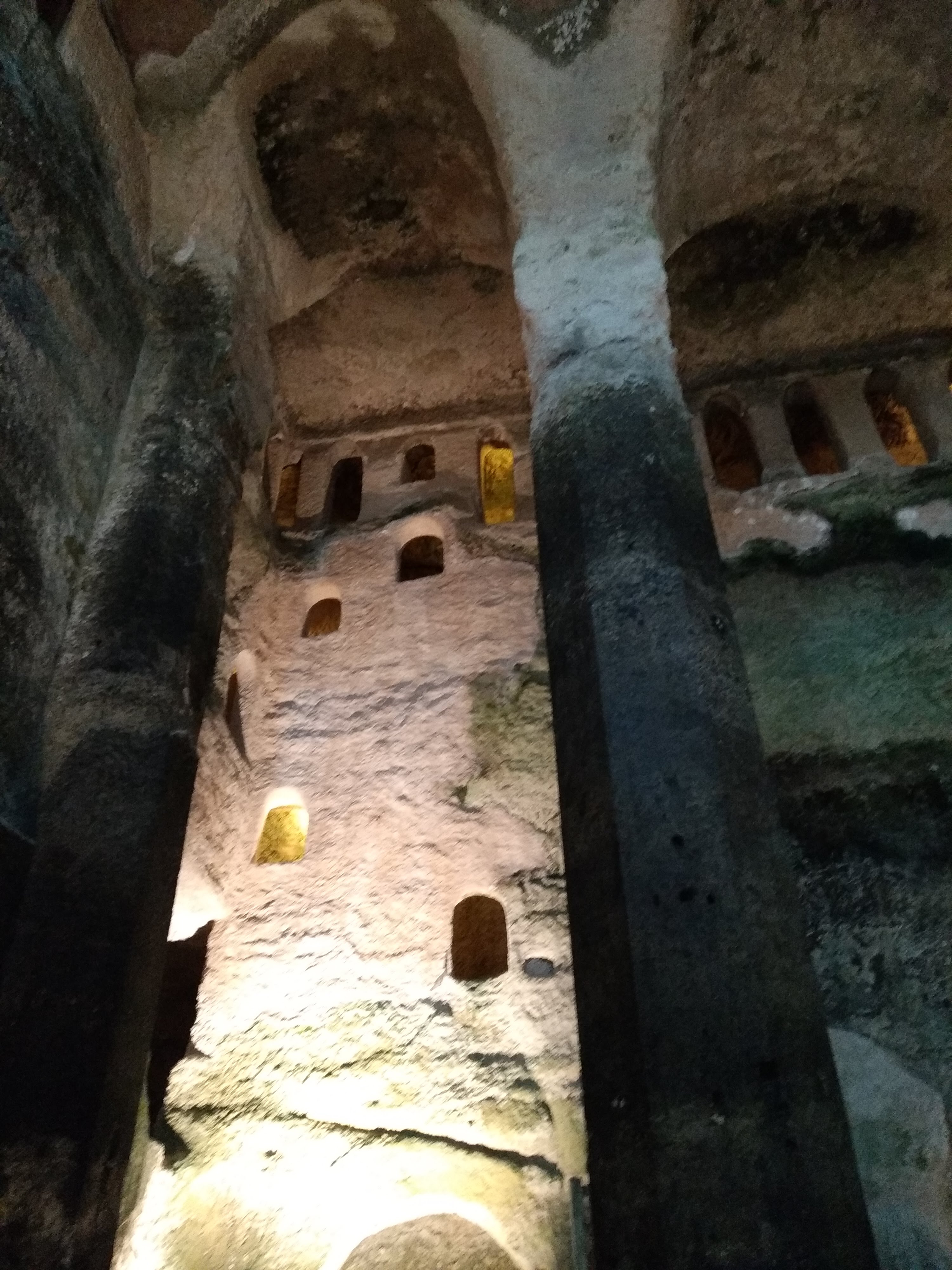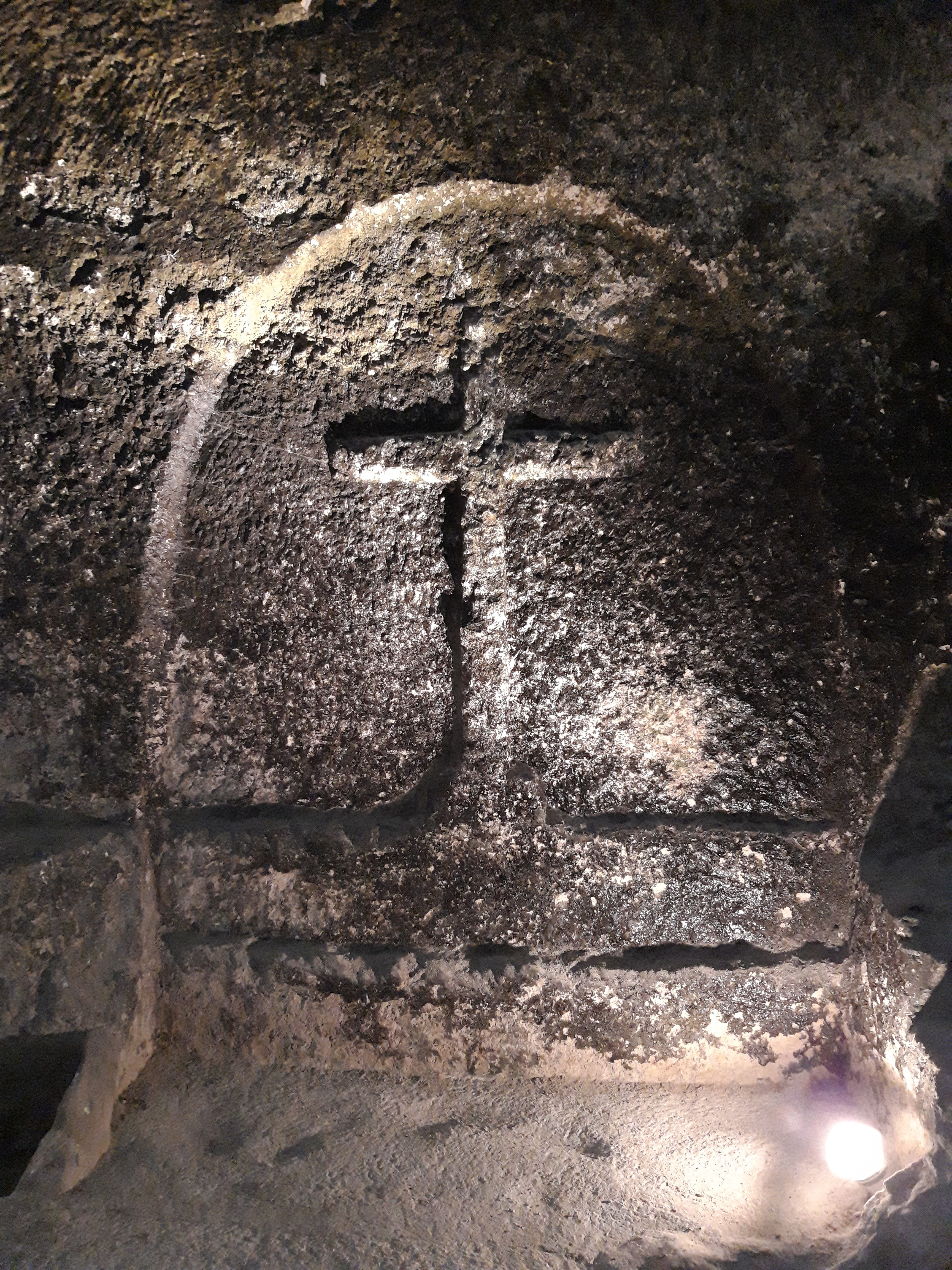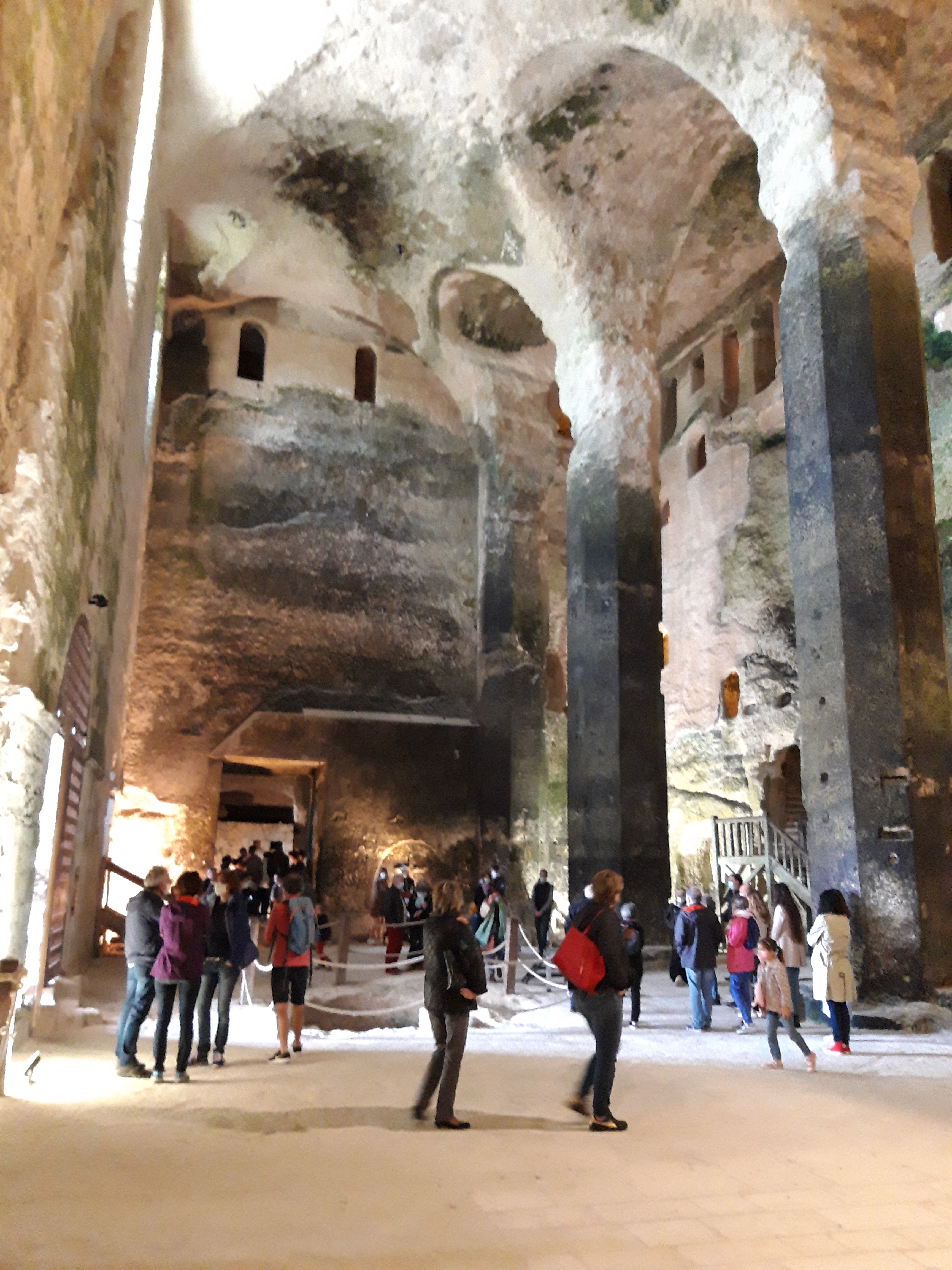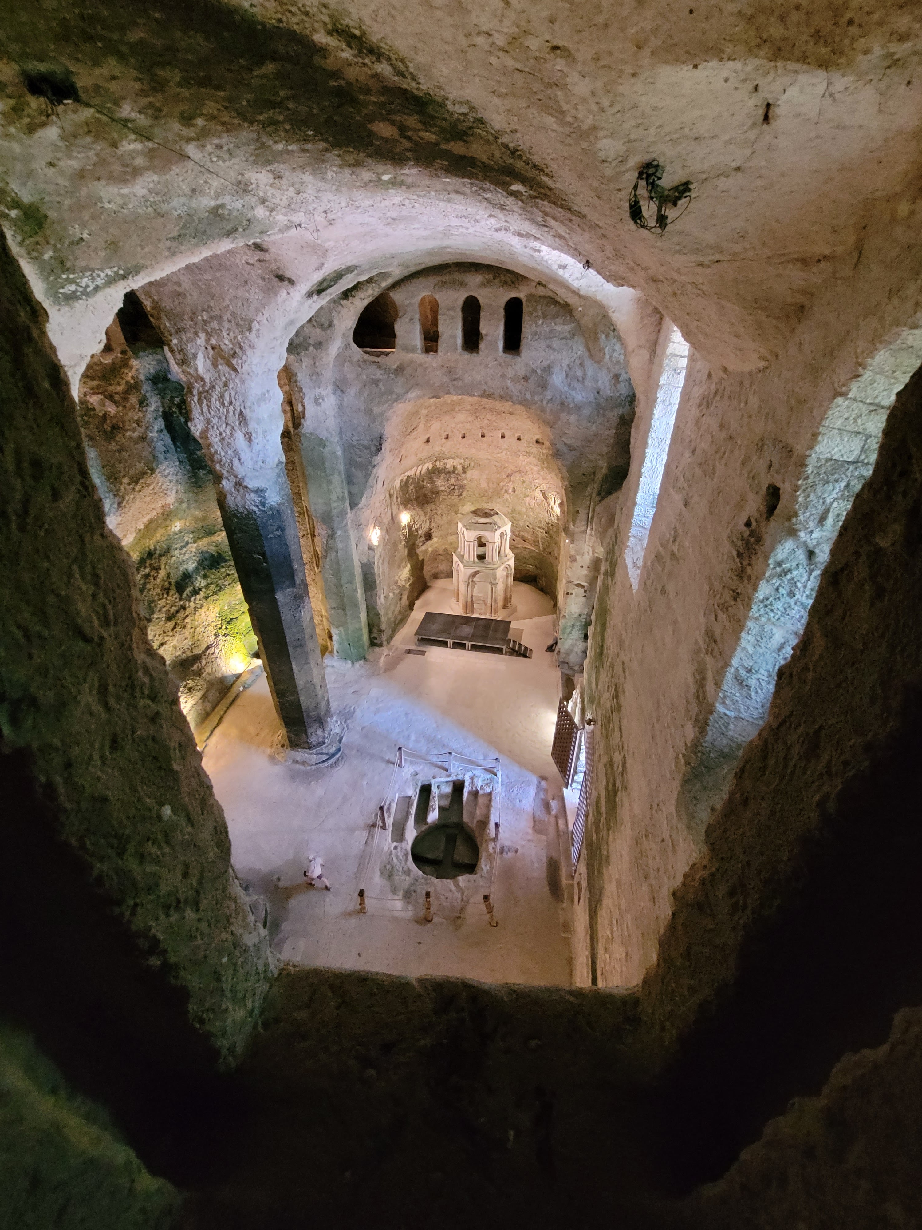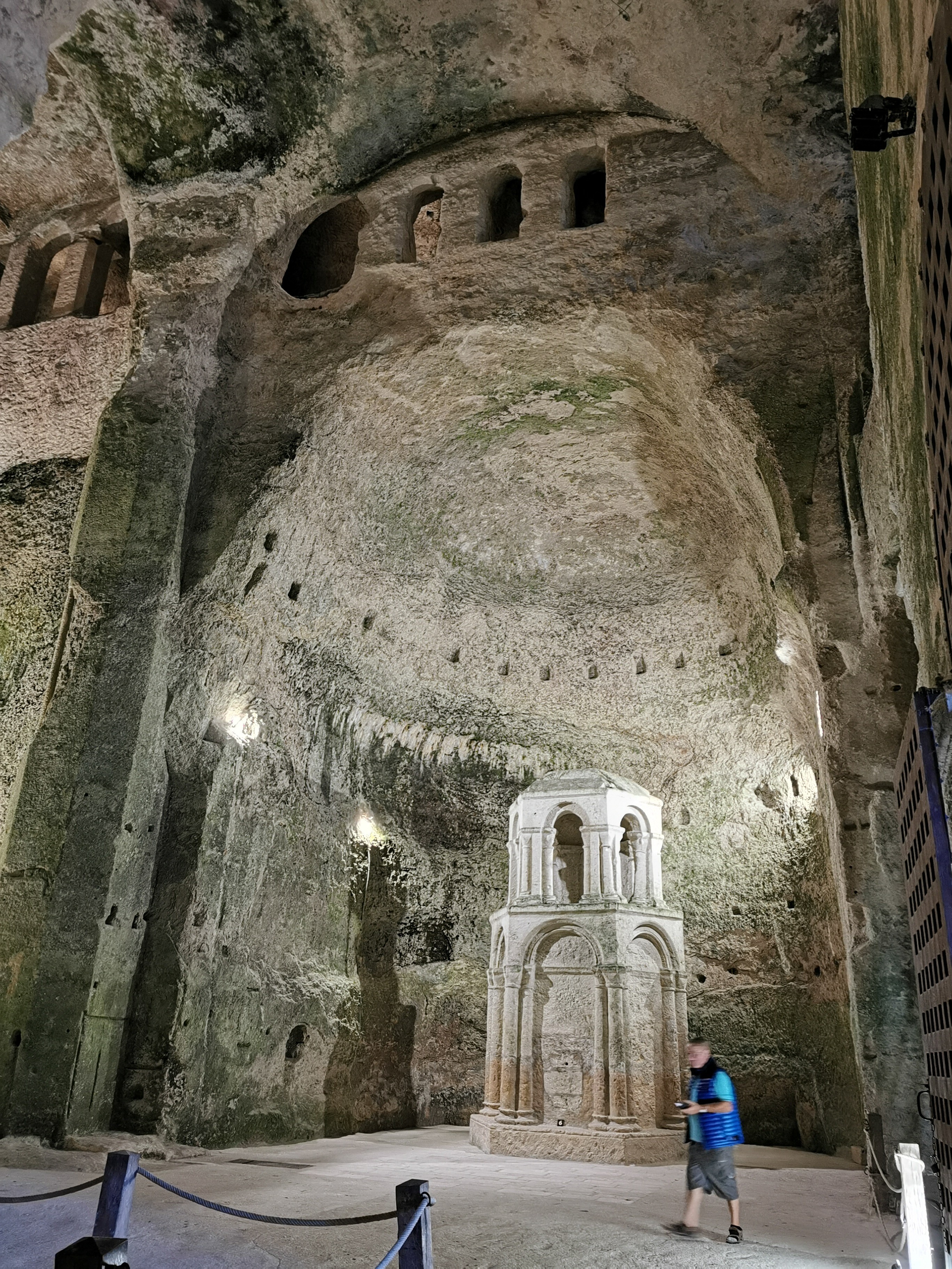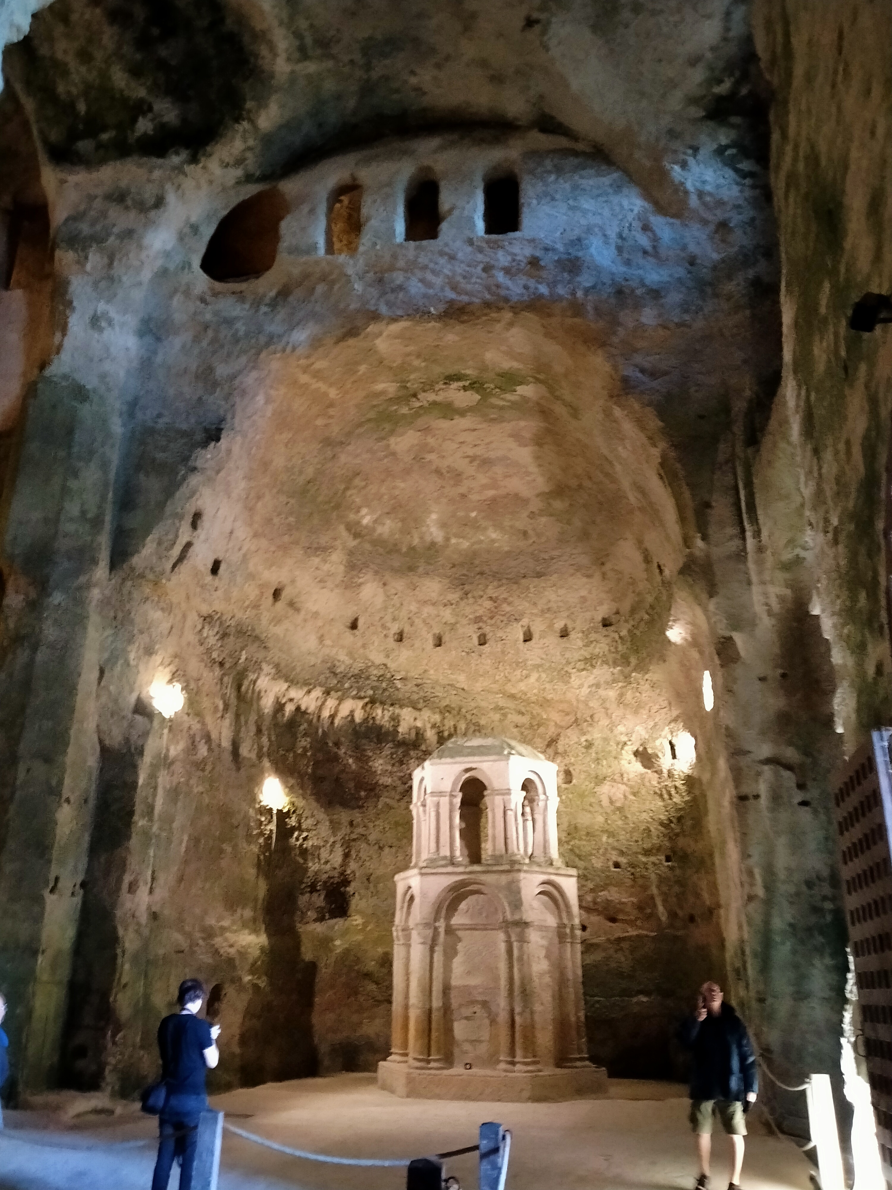 Grandiose et fascinante. Des églises ou des chapelles troglodytes, j’en avais déjà visité, mais là, on est dans les dimensions d’une cathédrale. Les immenses colonnes situées dans la nef qui accueille les visiteurs sont terriblement impressionnantes. Nos ancêtres du moyen-âge, habités par la foi, ont démontré par cet ouvrage un immense courage, des connaissances techniques et des savoir-faire exceptionnels. Sa nef grandiose, son reliquaire monumental taillé à même la roche, sa nécropole de 200 tombes, son ossuaire, son déambulatoire à plus de 10 mètres de hauteur m’ont laissé des souvenirs que je crois inoubliables.