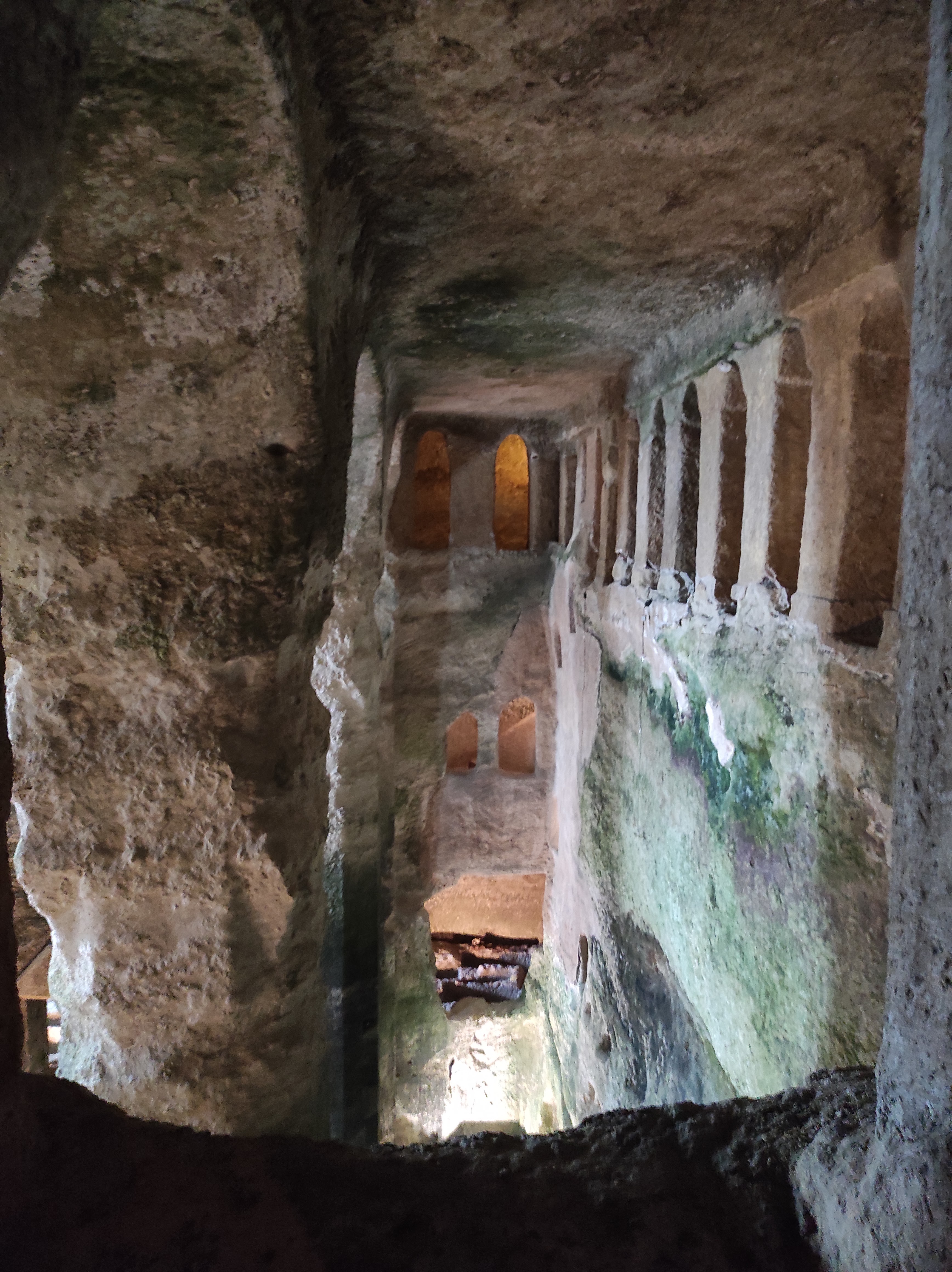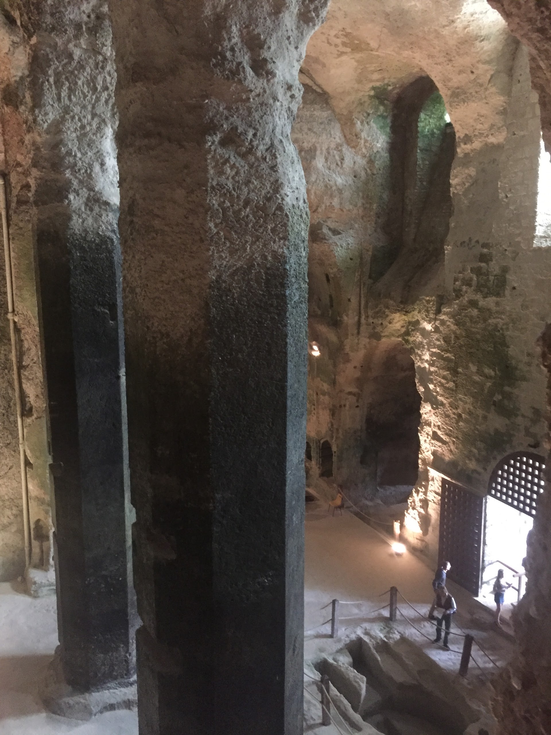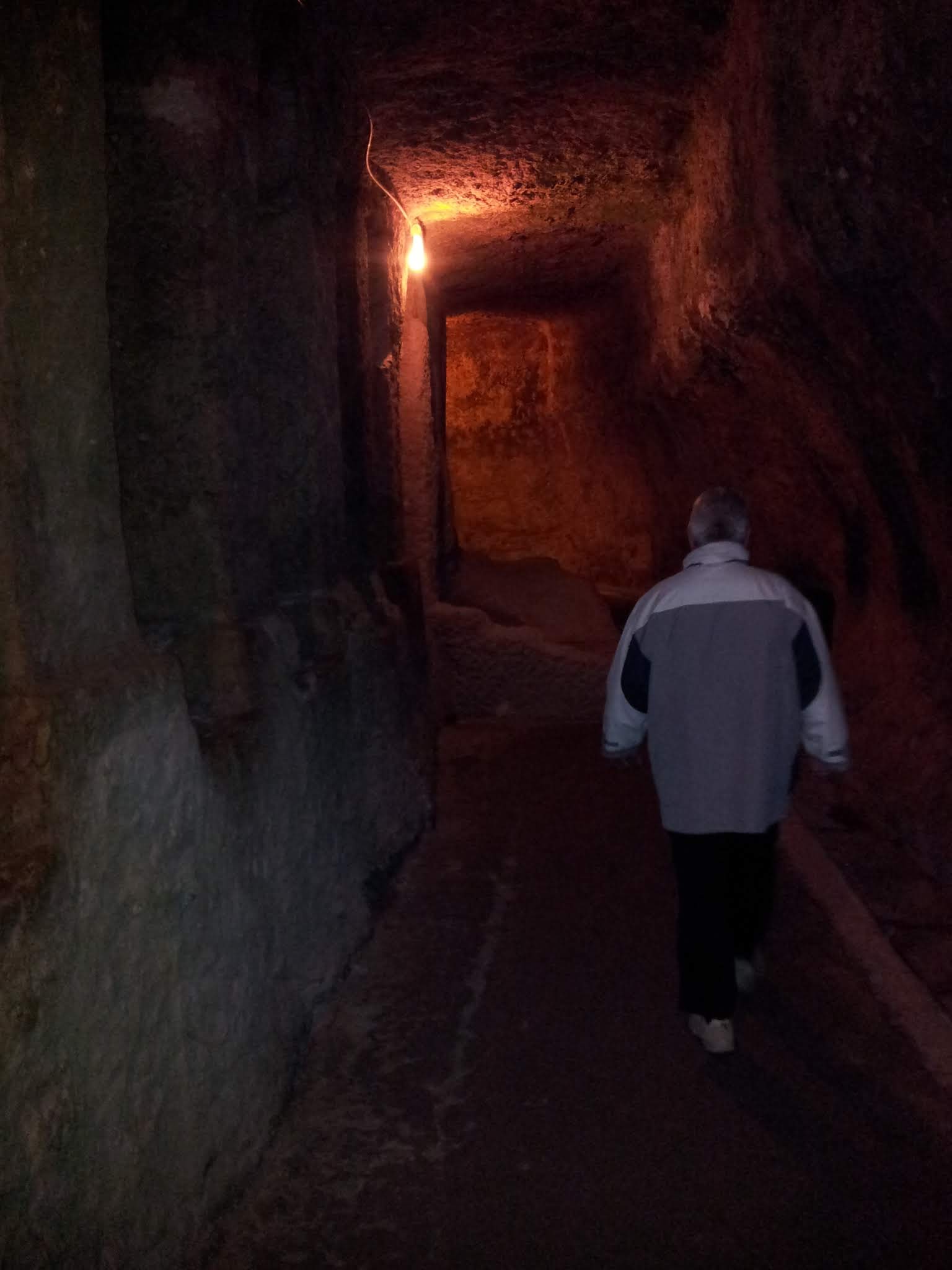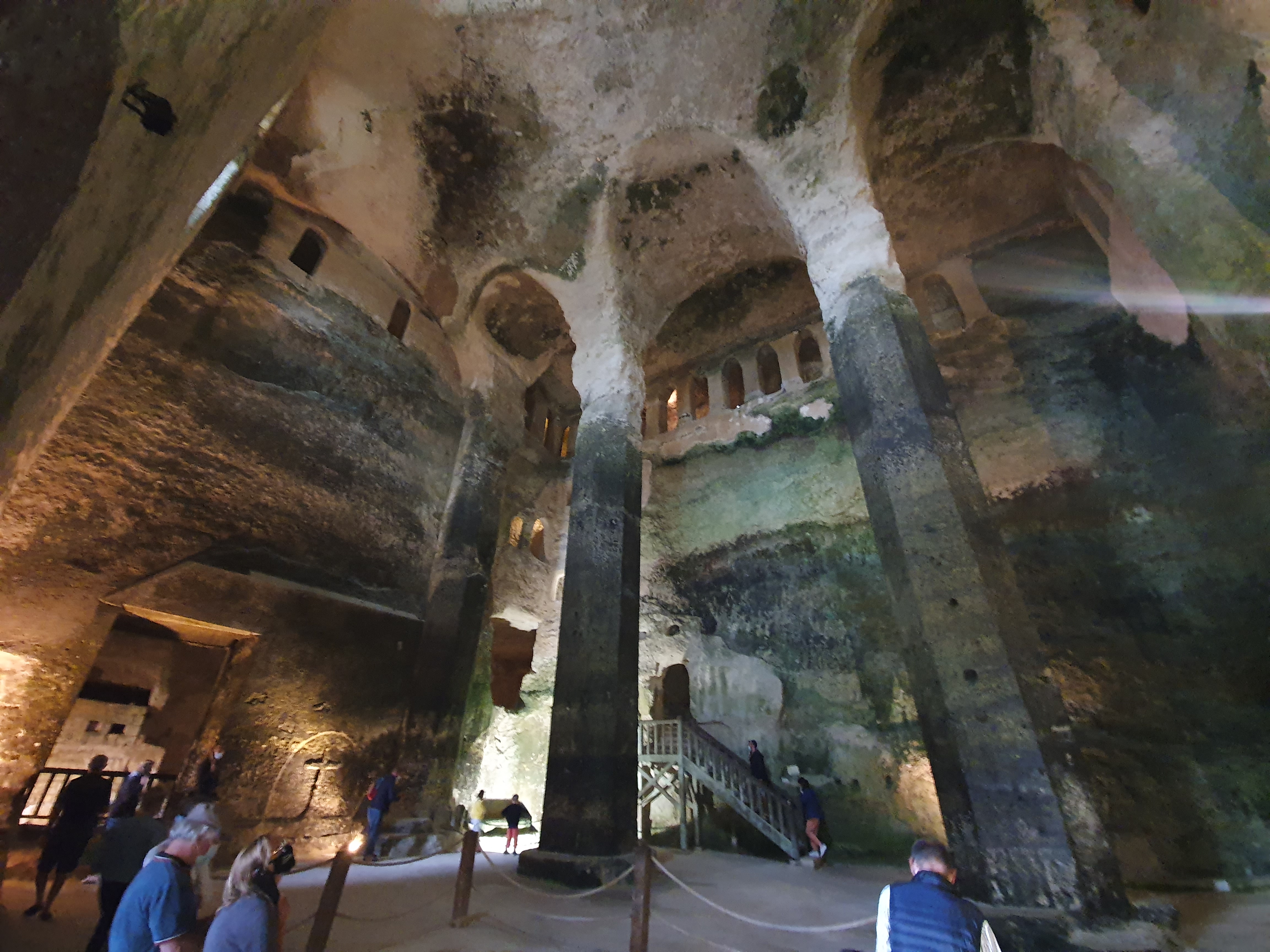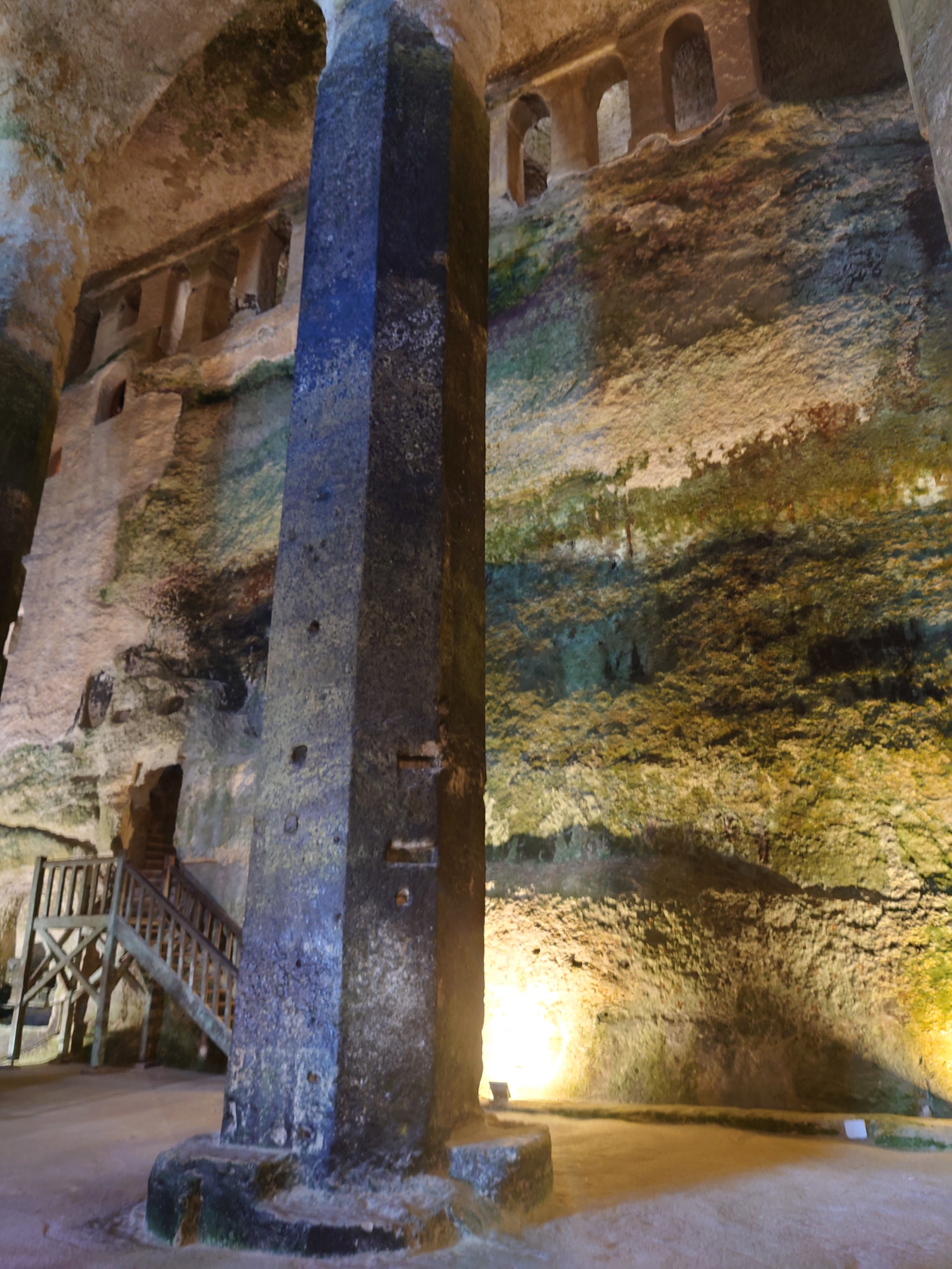 Grandiose et fascinante. Des églises ou des chapelles troglodytes, j’en avais déjà visité, mais là, on est dans les dimensions d’une cathédrale. Les immenses colonnes situées dans la nef qui accueille les visiteurs sont terriblement impressionnantes. Nos ancêtres du moyen-âge, habités par la foi, ont démontré par cet ouvrage un immense courage, des connaissances techniques et des savoir-faire exceptionnels. Sa nef grandiose, son reliquaire monumental taillé à même la roche, sa nécropole de 200 tombes, son ossuaire, son déambulatoire à plus de 10 mètres de hauteur m’ont laissé des souvenirs que je crois inoubliables.