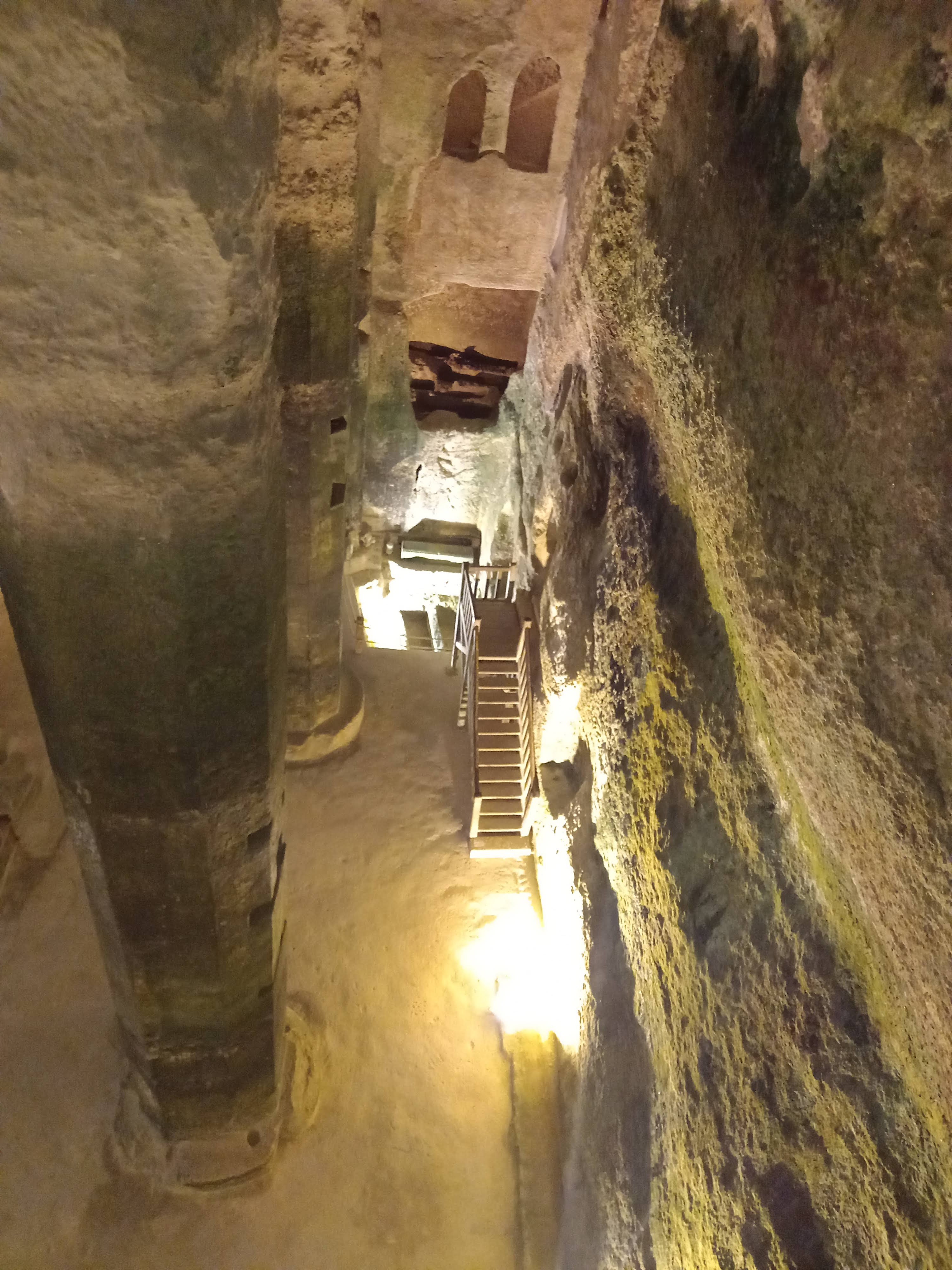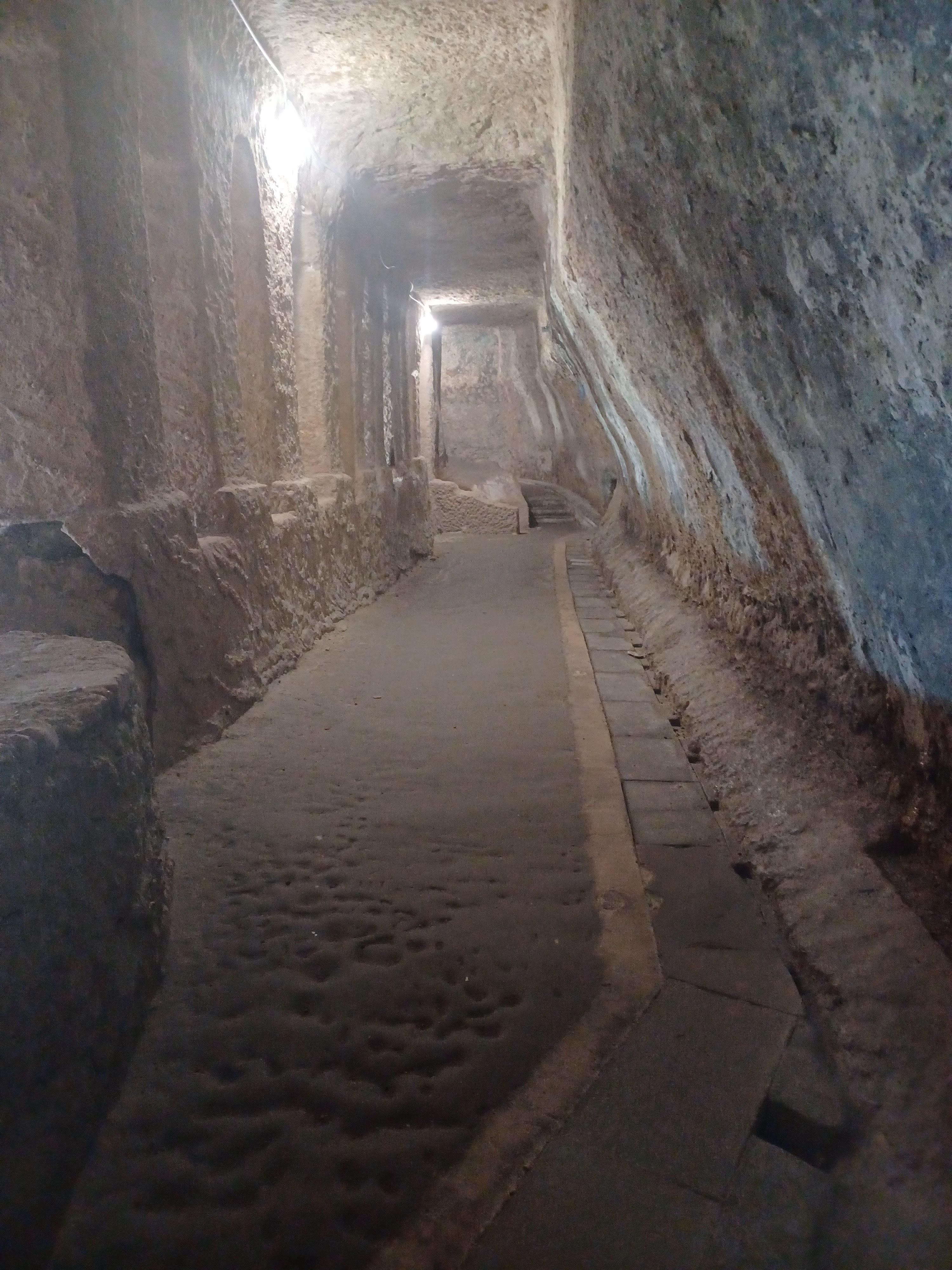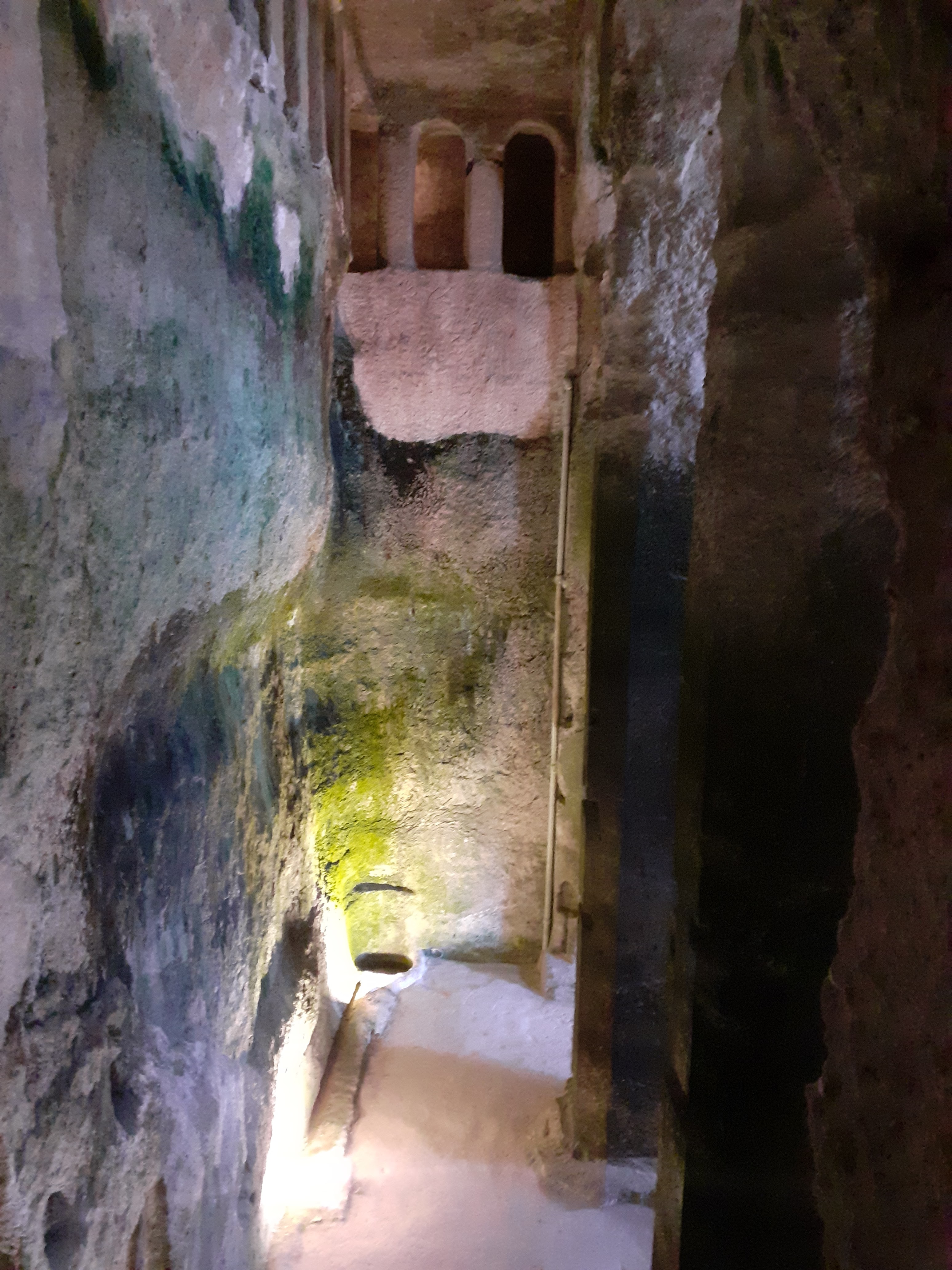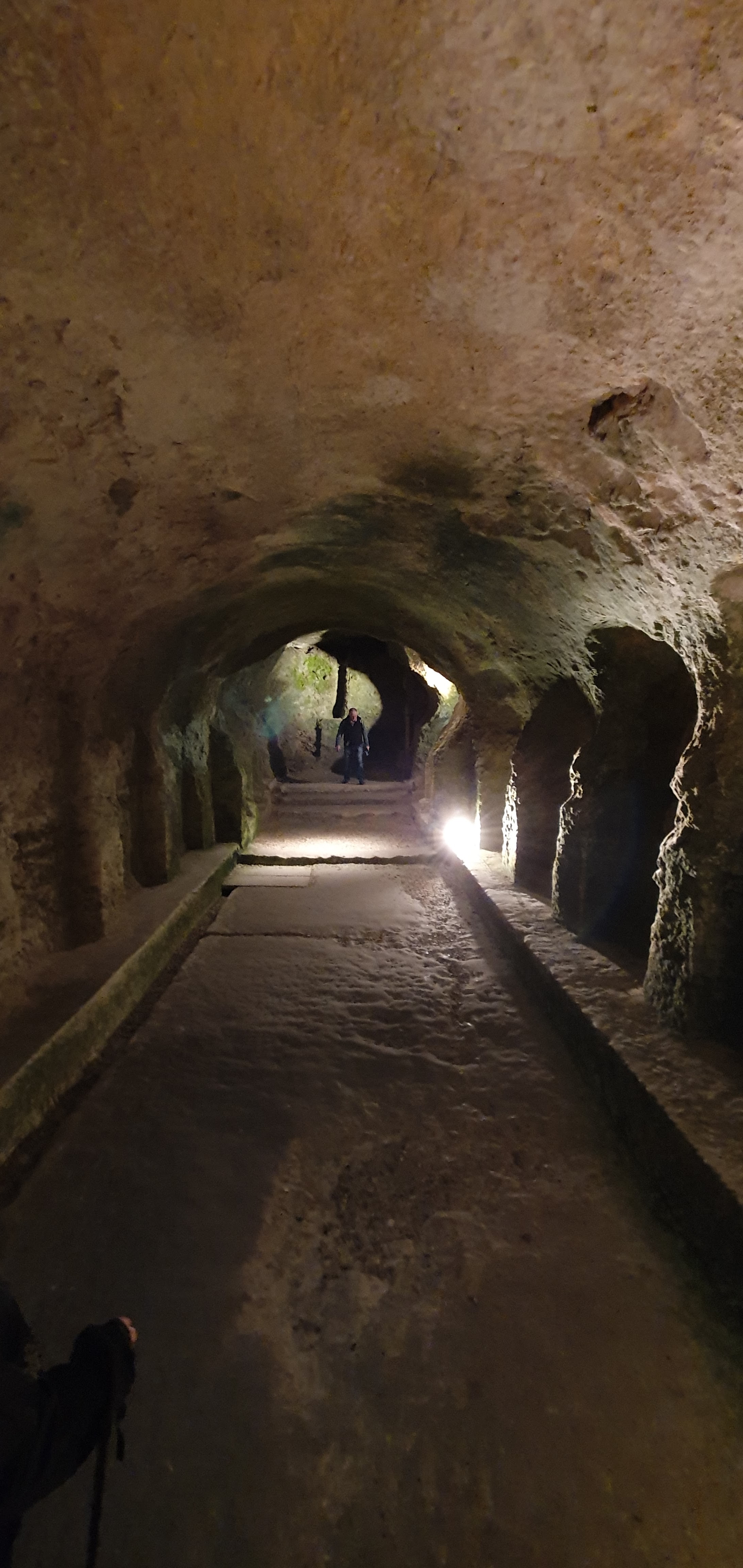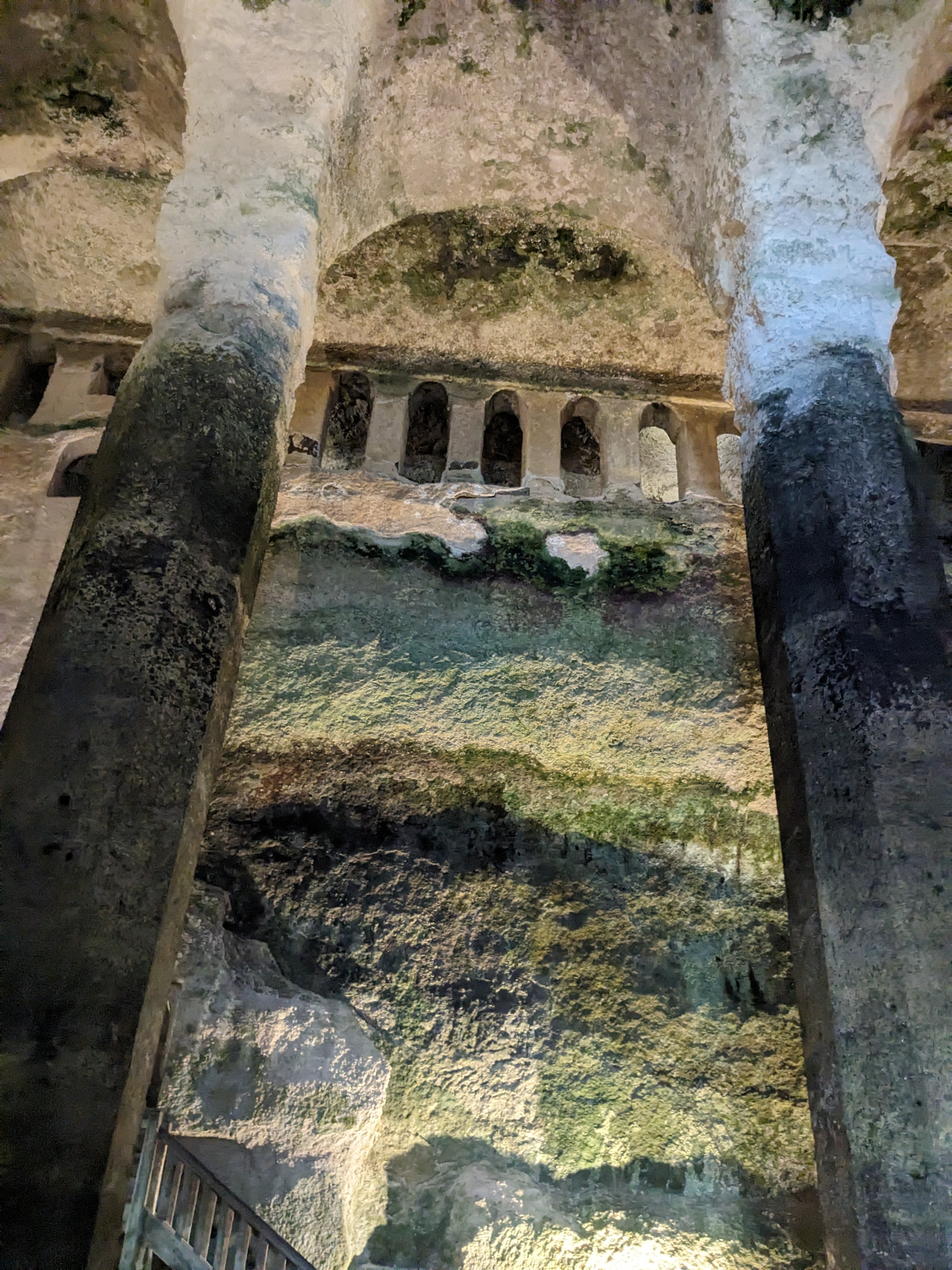 Grandiose et fascinante. Des églises ou des chapelles troglodytes, j’en avais déjà visité, mais là, on est dans les dimensions d’une cathédrale. Les immenses colonnes situées dans la nef qui accueille les visiteurs sont terriblement impressionnantes. Nos ancêtres du moyen-âge, habités par la foi, ont démontré par cet ouvrage un immense courage, des connaissances techniques et des savoir-faire exceptionnels. Sa nef grandiose, son reliquaire monumental taillé à même la roche, sa nécropole de 200 tombes, son ossuaire, son déambulatoire à plus de 10 mètres de hauteur m’ont laissé des souvenirs que je crois inoubliables.