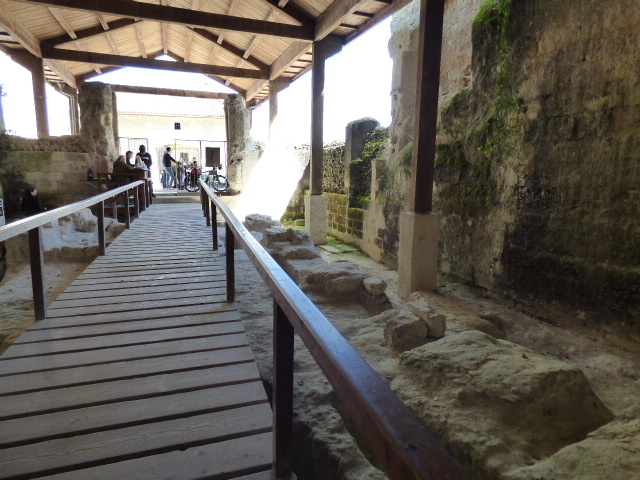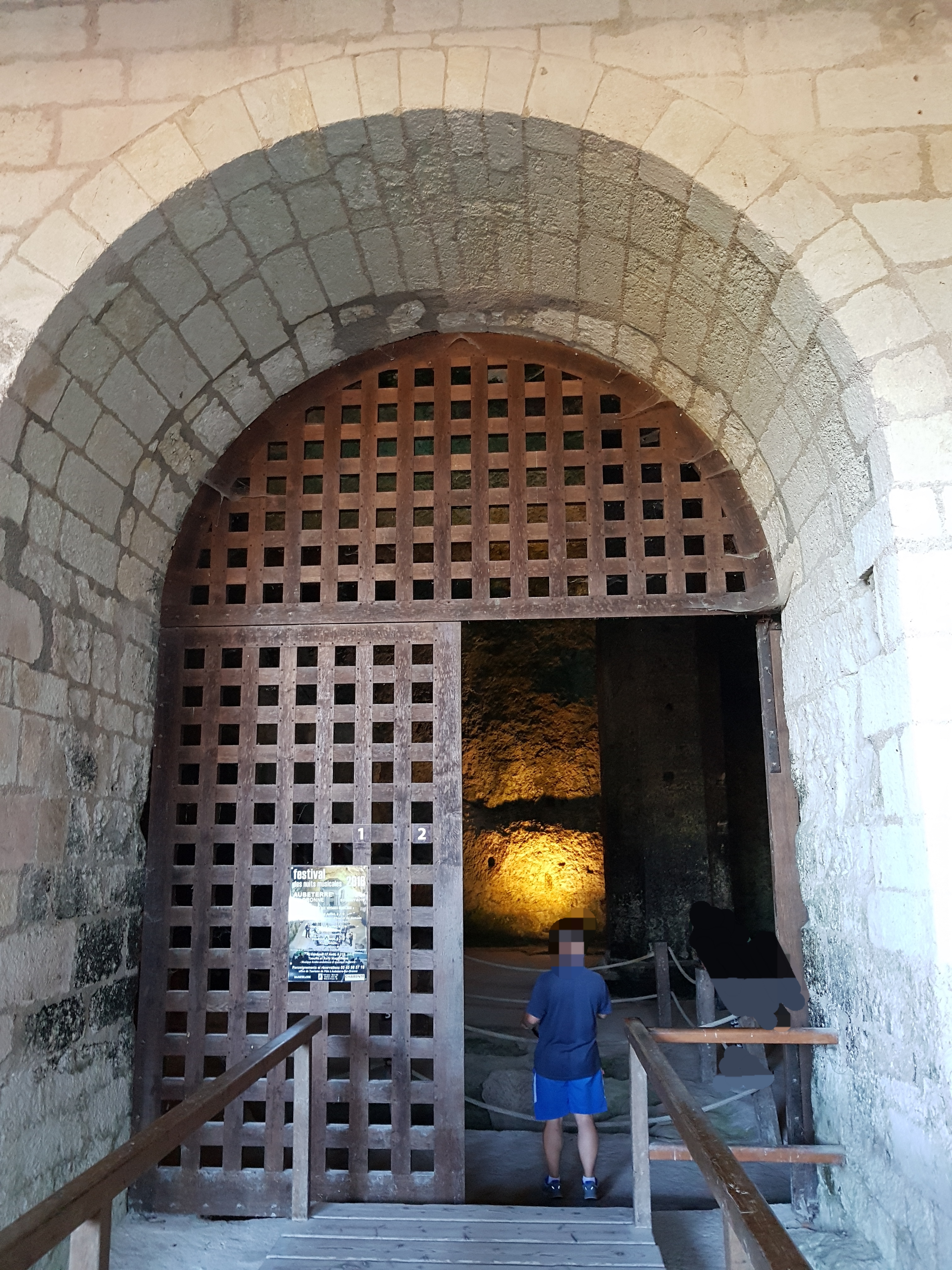 Église monolithe assez impressionnante avec ses piliers de 17 mètres de haut, mais moins large /profonde (ce qu’il en reste) que celle de Saint Emilion également creusée sous les ordres de Castillon. Les audio guide sont très bien faits avec les différents points pour avancer dans la visite.