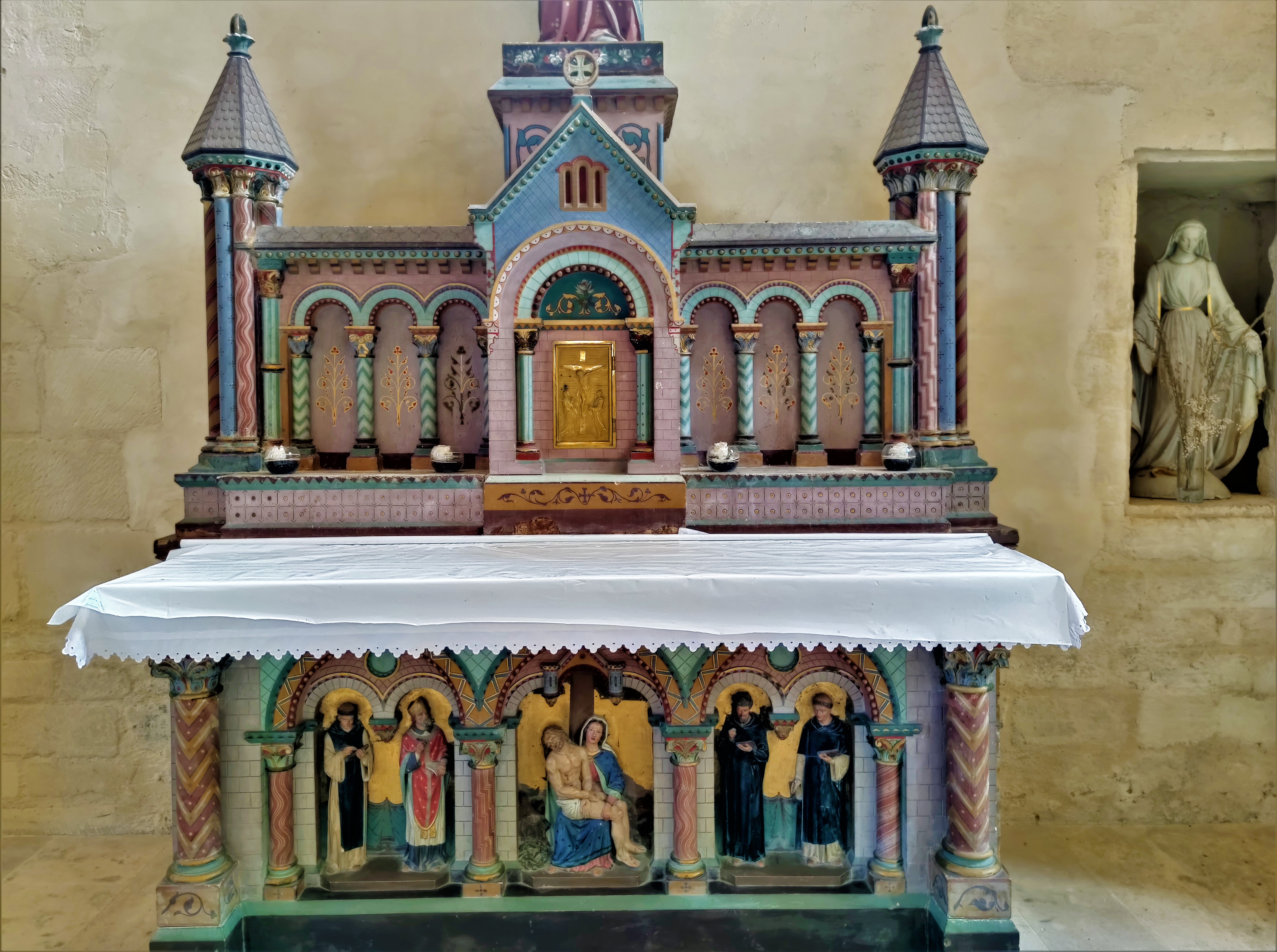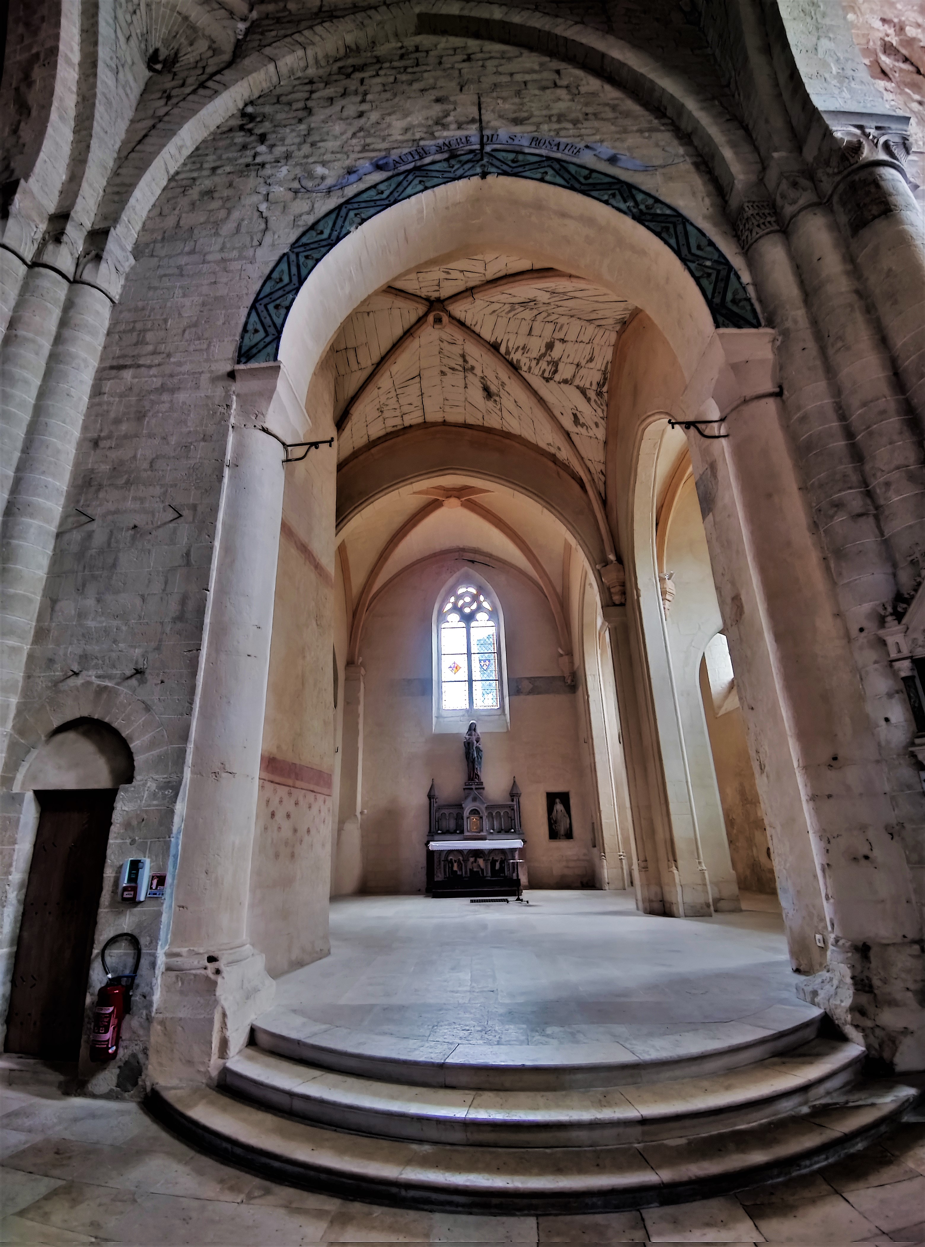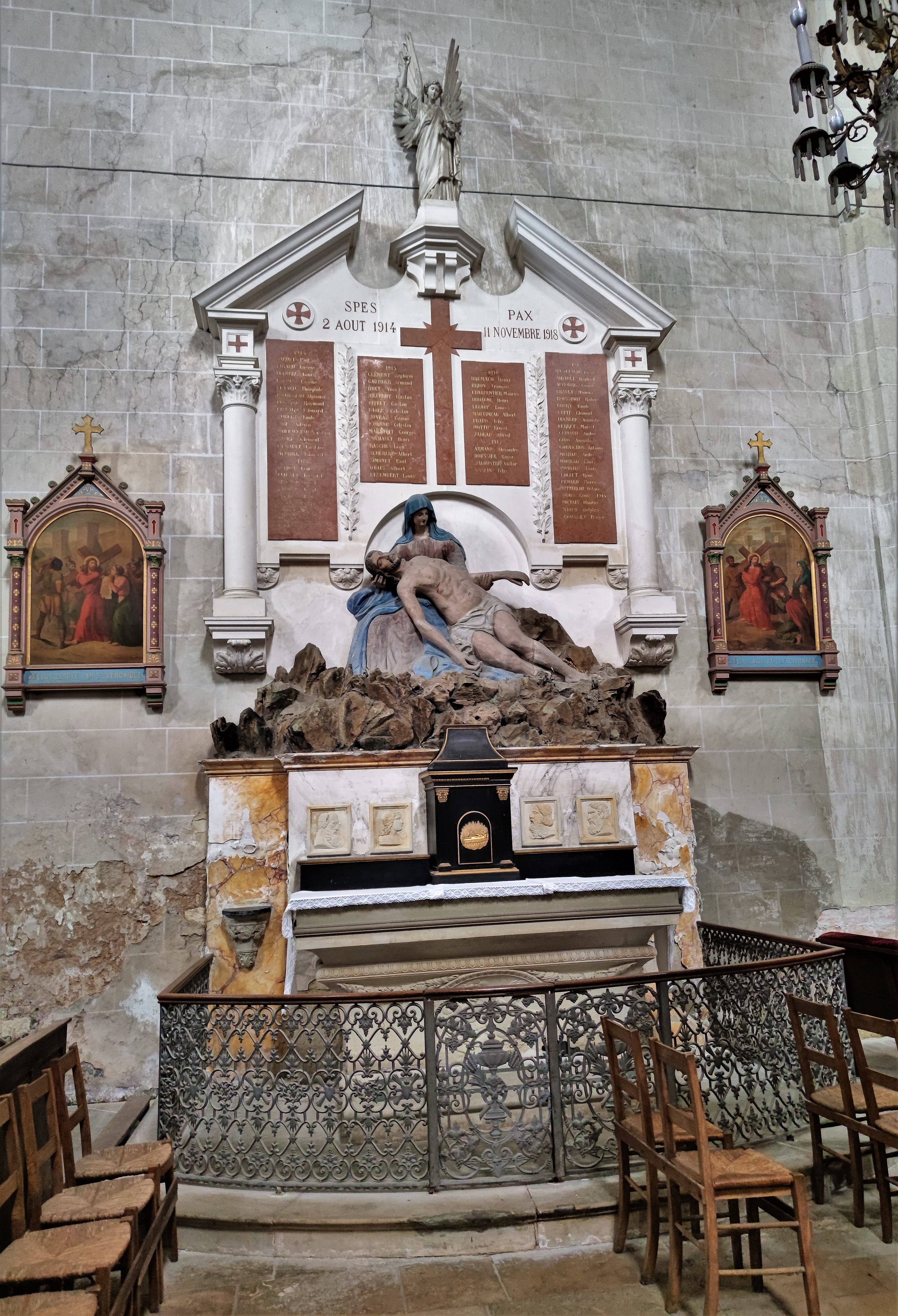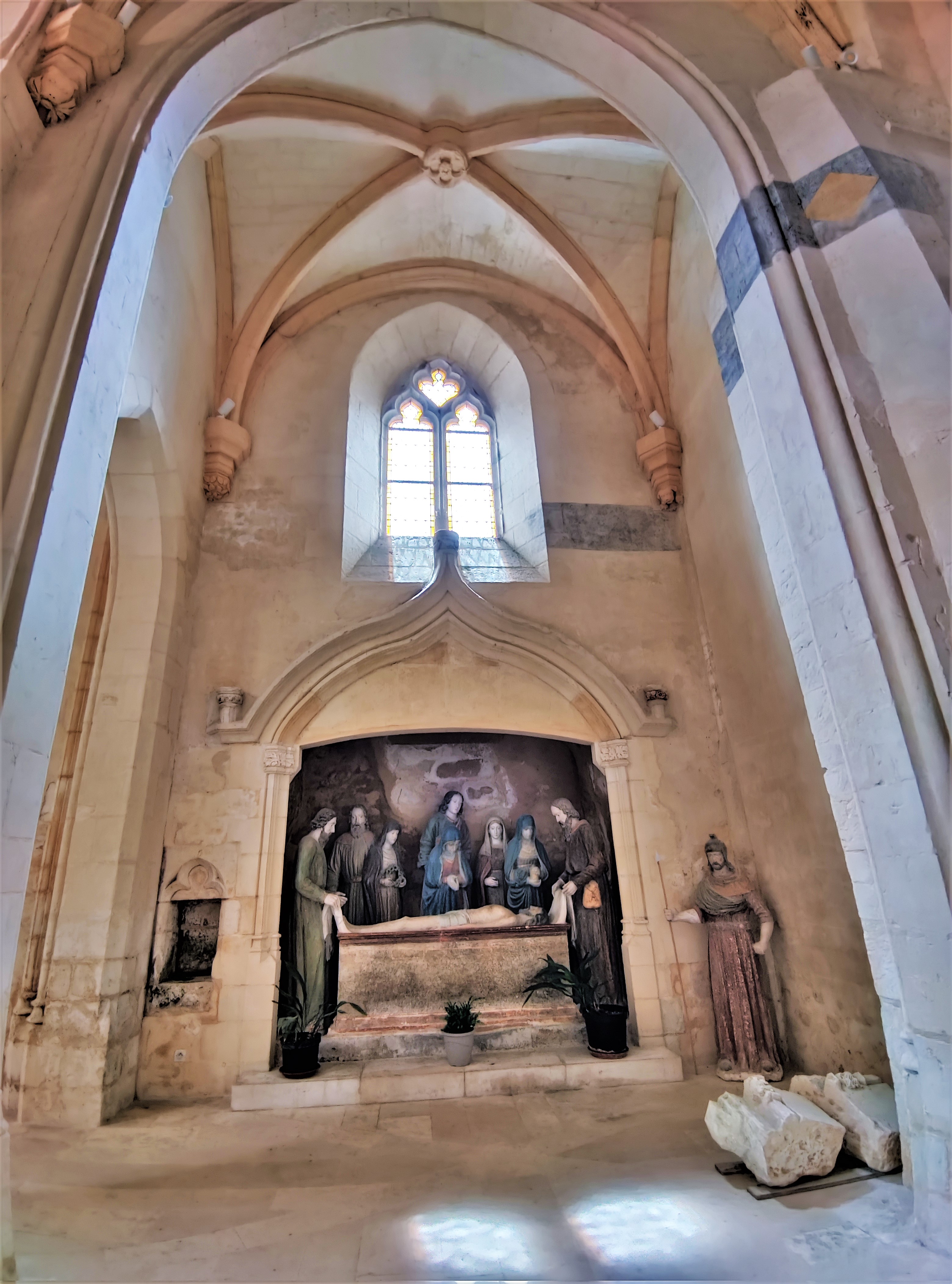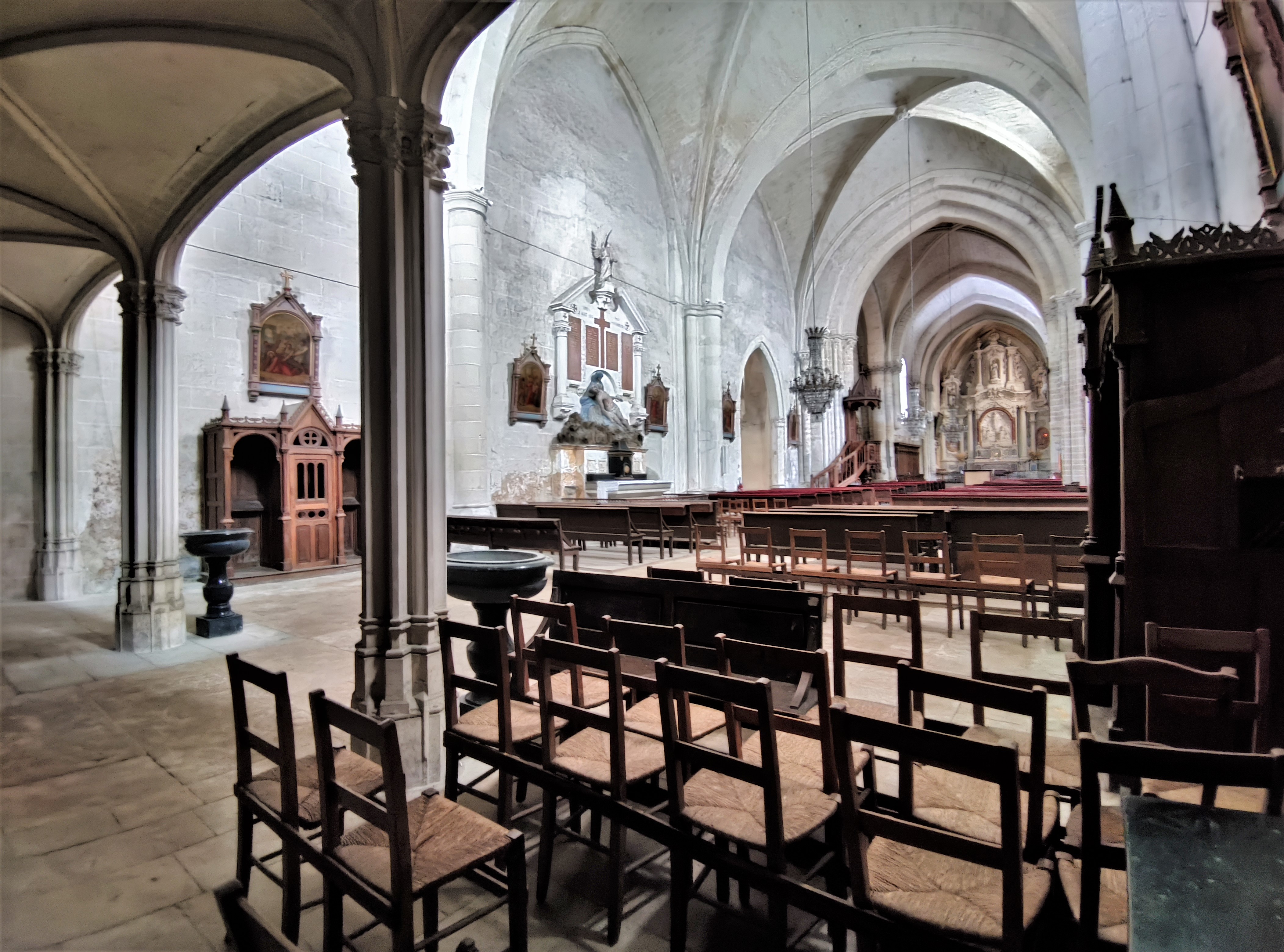 L'église et les anciens bâtiments conventuels forment un ensemble architectural remarquable. Les services de la mairie occupent les anciennes constructions monacales. L'église abbatiale, construite au 11ème sur les bases d'une chapelle, fut modifiée au 12ème, 15ème, 17ème et 19ème, puis restaurée au 20ème. Conséquemment à toutes ces modifications, le plan de cet édifice est complexe. C'est seulement lorsque que je l'ai vu dessiné que j'ai pu l'appréhender. C'est une église à parcourir, à découvrir dans ces recoins, on s'y perdrait presque. De jolies choses y sont abritées, et, comme pour l'architecture, diverses époques sont représentées, les découvrir fut pour moi source d'heureuses surprises ; tableaux, mise au tombeau, enfeu et gisant, autels, retable etc... A l'Est, l'église jouxte la mairie (anciennes dépendances de l'abbaye). Au Nord, l'édifice abritant le Service de l'Architecture et des Patrimoines est accolé à la 3ème travée de la nef. Devant cette construction s'ouvrent les souterrains de la ville.