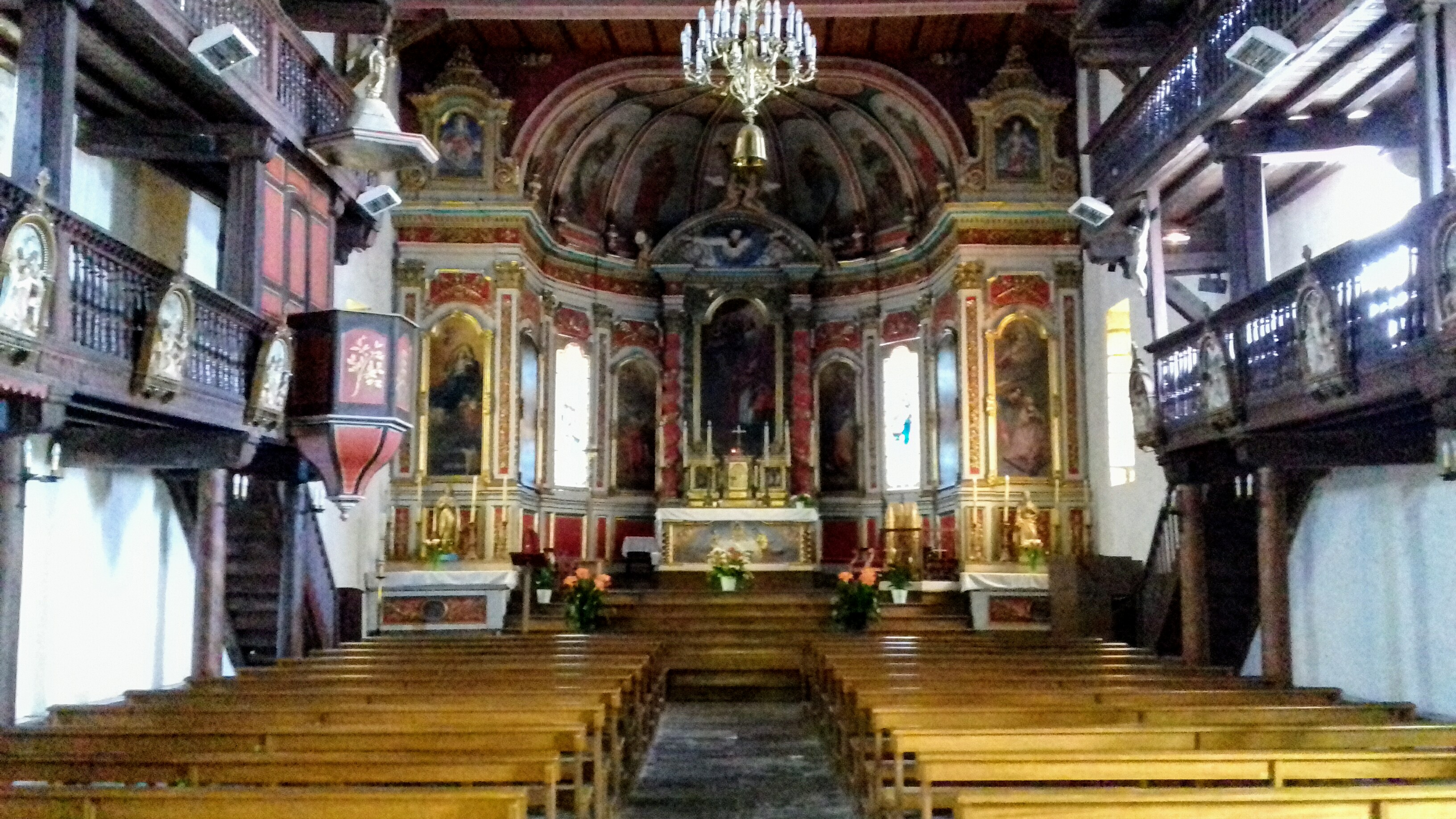 Belle pte église tte blanche avec son pt cimetière à ses pieds, accès pas facile pour les personnes à mobilité réduite. Église lors de ma visite, fermée, dommage. Aujourd'hui Lundi de Pâques, ouverte mais personne sauf moi. Un intérieur simple, 3 hauteurs de tribunes. Très peu de vitraux. Un très beau rétable et de magnifiques tableaux.