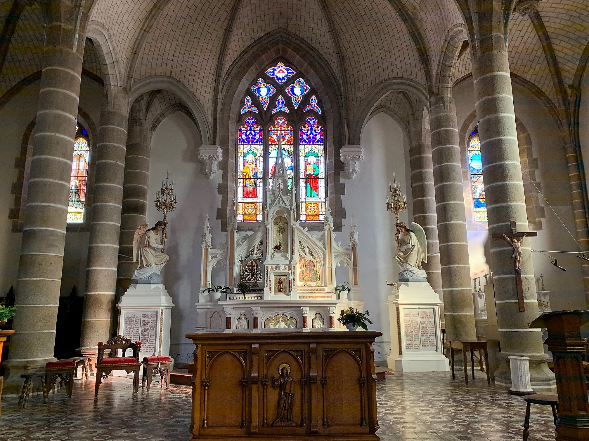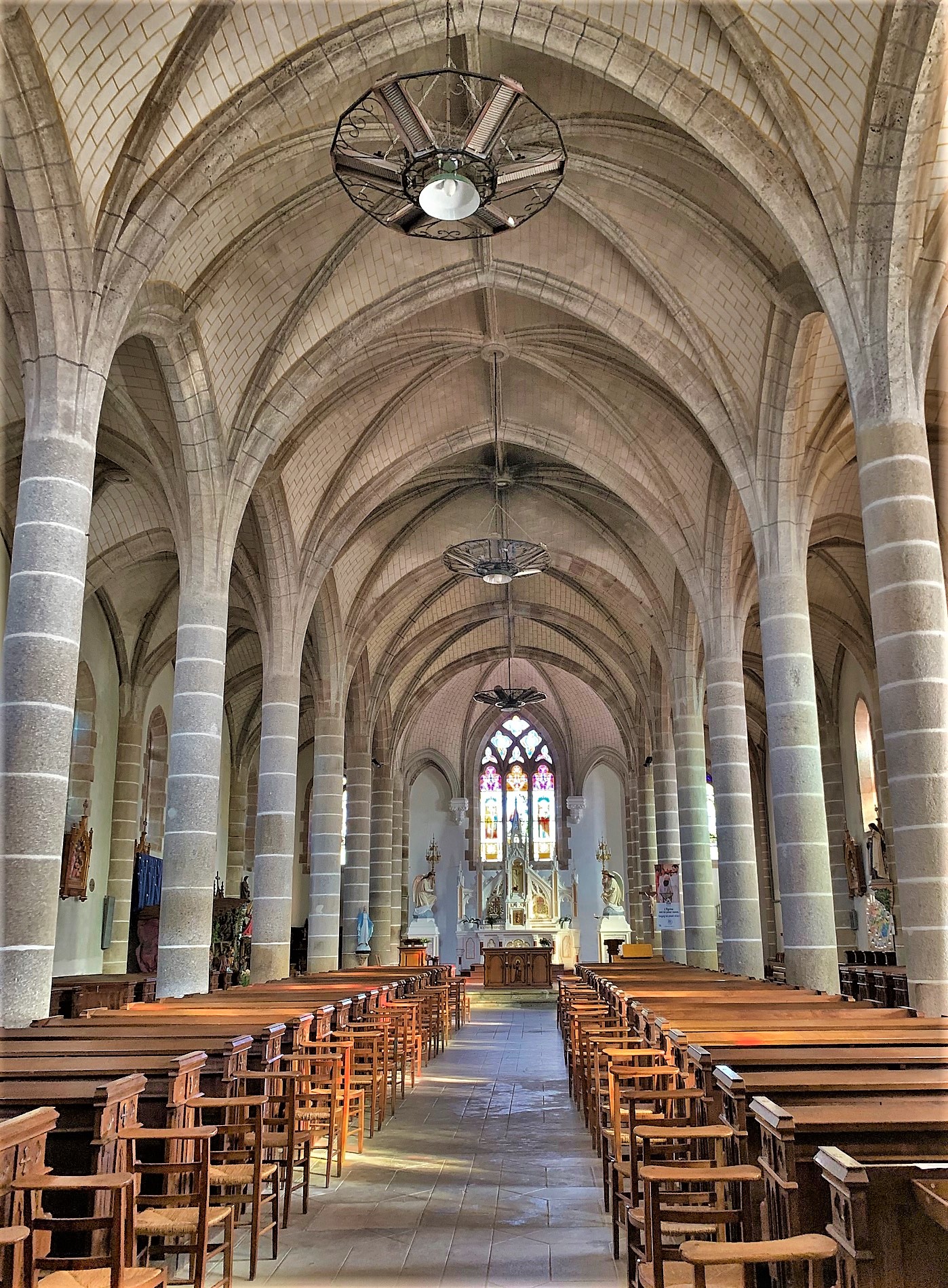 Lorsque l'on pénètre dans l'Eglise St-Pierre de Boismé, l'éclairage important diffusé par de nombreux vitraux peut surprendre. Ceux, situés dans la nef, au nombre de 16, ont été offerts par des personnalités marquantes de la commune. Trois belles verrières, ouvertes sur le chevet plat, éclairent le sanctuaire et les chapelles. Cette église n'est pas exceptionnelle, mais son existence-même reflète la volonté des 1400 habitants (1876) habités par une ferveur chrétienne, si présente à la fin du 19ème siècle et au début du 20ème. Son histoire nous plonge dans la période si particulière de 1905 et la séparation des Eglises et de l'Etat. Une église d'un style néo 15ème siècle construite à l'emplacement de l'ancienne église du 13ème. Cette dernière était trop petite, l'abbé Ferdinand Clémenceau, curé de 1877 à 1920 dirigera le projet de reconstruction, débuté en 1882. Trois travées à trois vaisseaux sont d'abord construites, deux pour le chœur et une pour commencer la nouvelle nef, identifiables de l'extérieur, elles se terminent avec des pignons. On abat ensuite les restes de l'ancienne église et on commence l'édification des cinq travées supplémentaires de la nef. Le conseil de Fabrique (organisme qui gère les biens matériels de la paroisse) gère le projet et les difficultés financières qui vont avec. La bénédiction de cette nouvelle église a lieu le 8 DÉCEMBRE 1905. Curieusement, le lendemain, le 9 DÉCEMBRE 1905, la séparation des Eglises et de l'Etat reverse l'édifice dans les propriétés de la commune. L'inventaire des biens de la Fabrique donnera lieu à quelques troubles, provoquant deux interventions armées des autorités en 1906.
