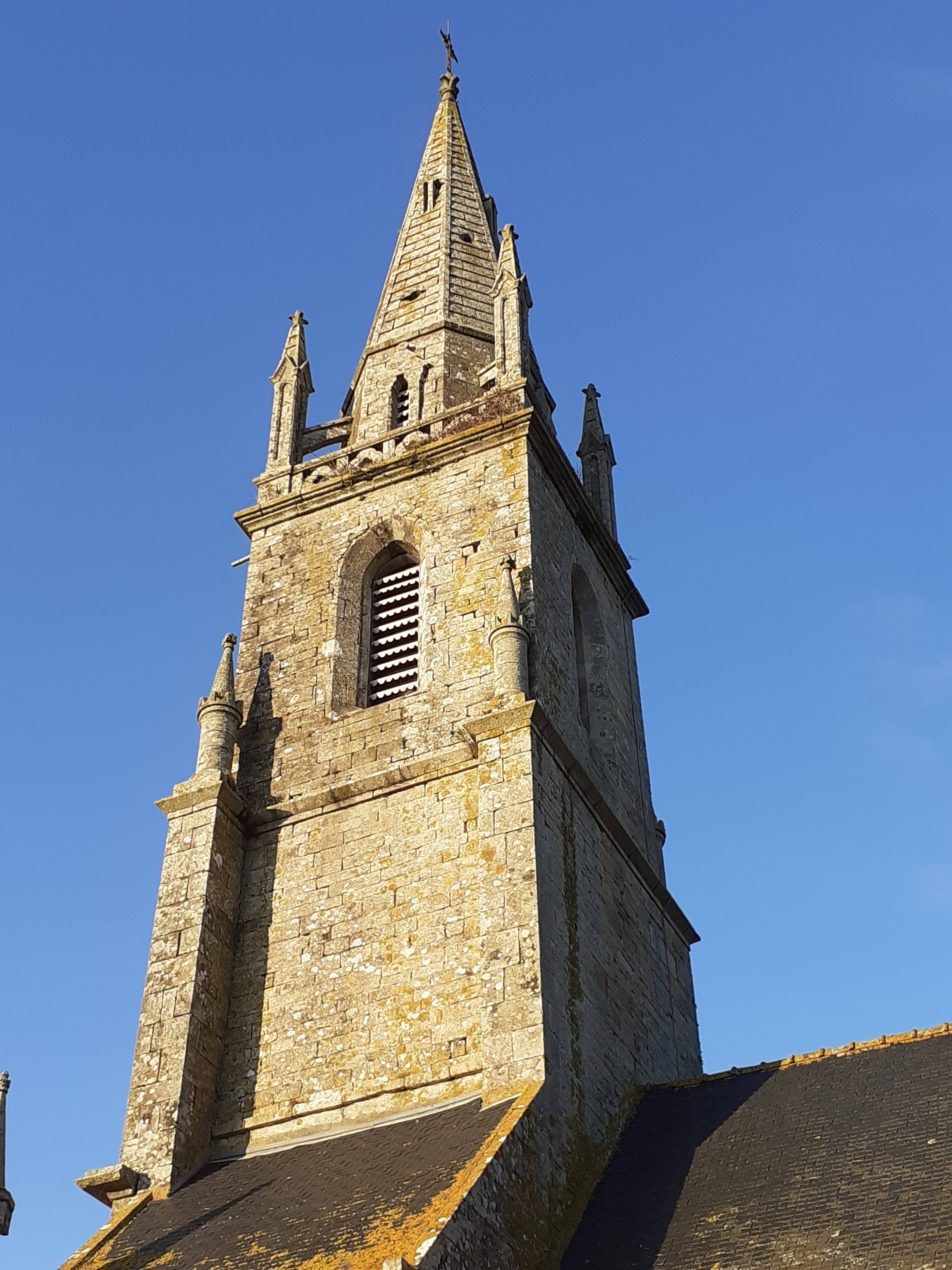 Église avec clocher flèche. Intérieur assez simple et sombre. Jolis vitraux. Daté milieu 19 ème. Magnifique calvaire à proximité.