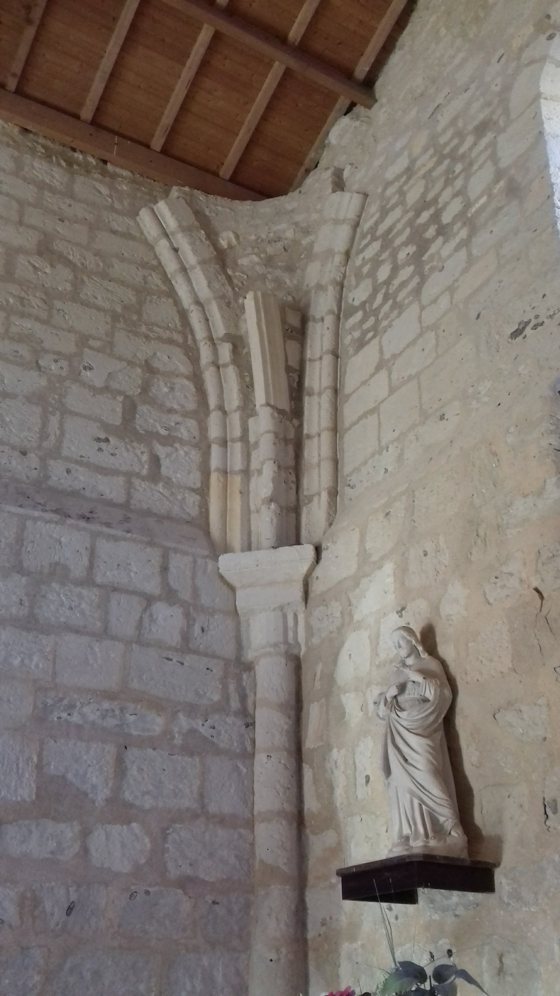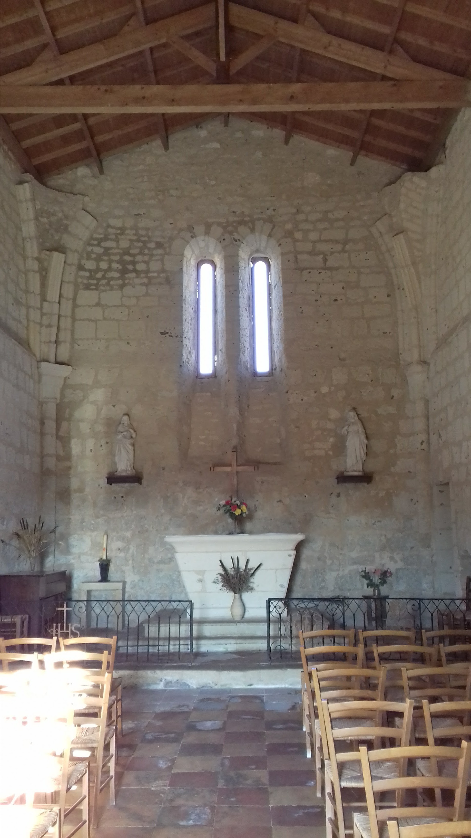 Pte église de village tte simple en extérieur comme en intérieur. Son pt cimetière attenant. Pas de sculptures et les vitraux sont des plus minimalistes. Toiture ancienne innexistante, refaite couverture et charpente