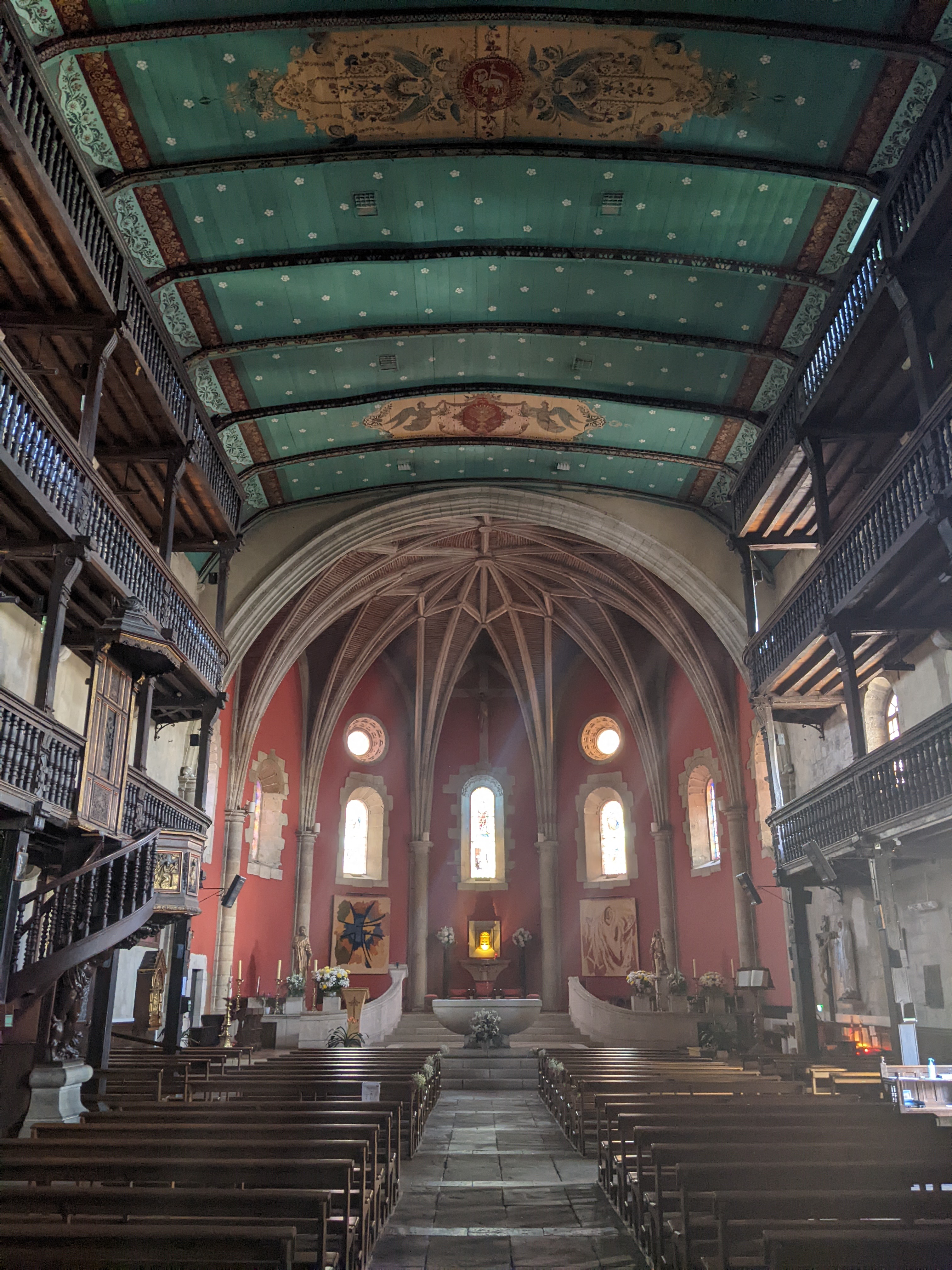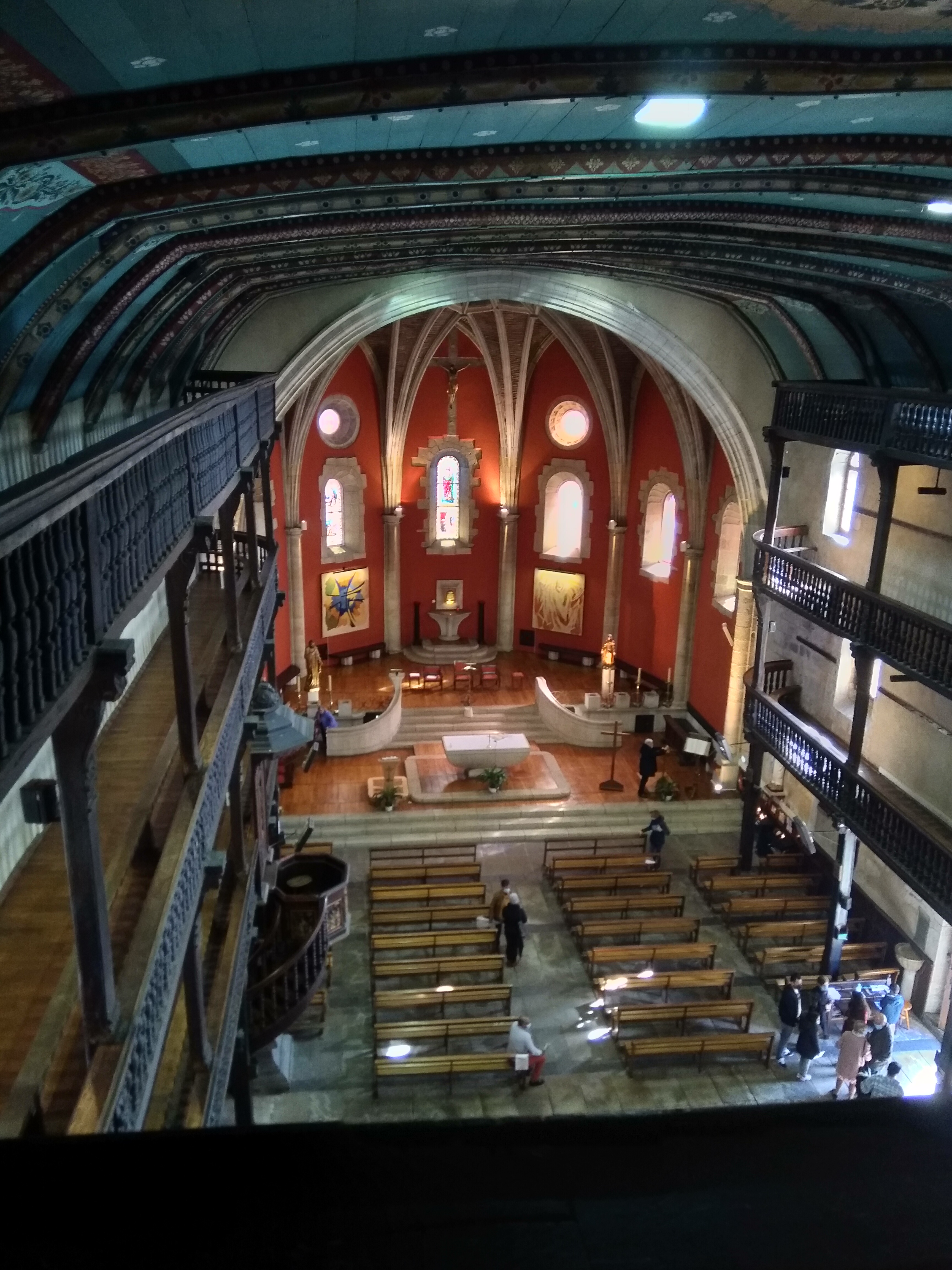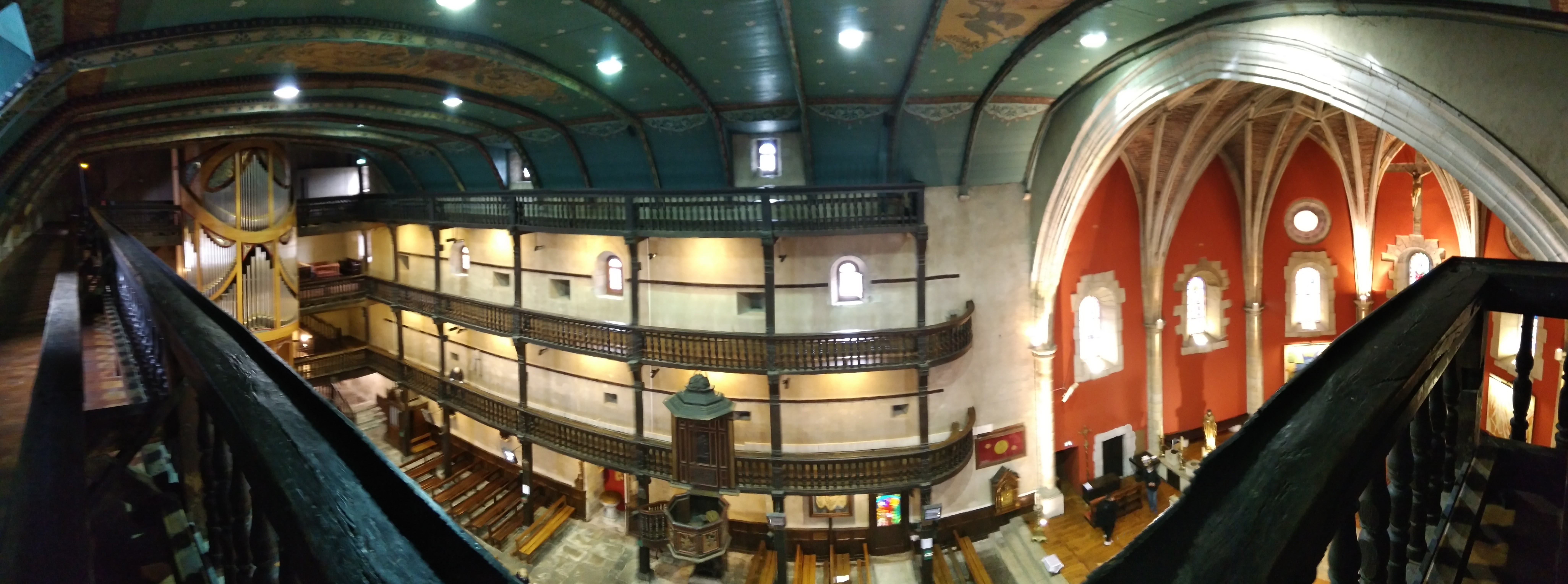 super! peintures au plafond et galeries incroyables sur trois niveaux. Réception typique des églises et synagogues basques