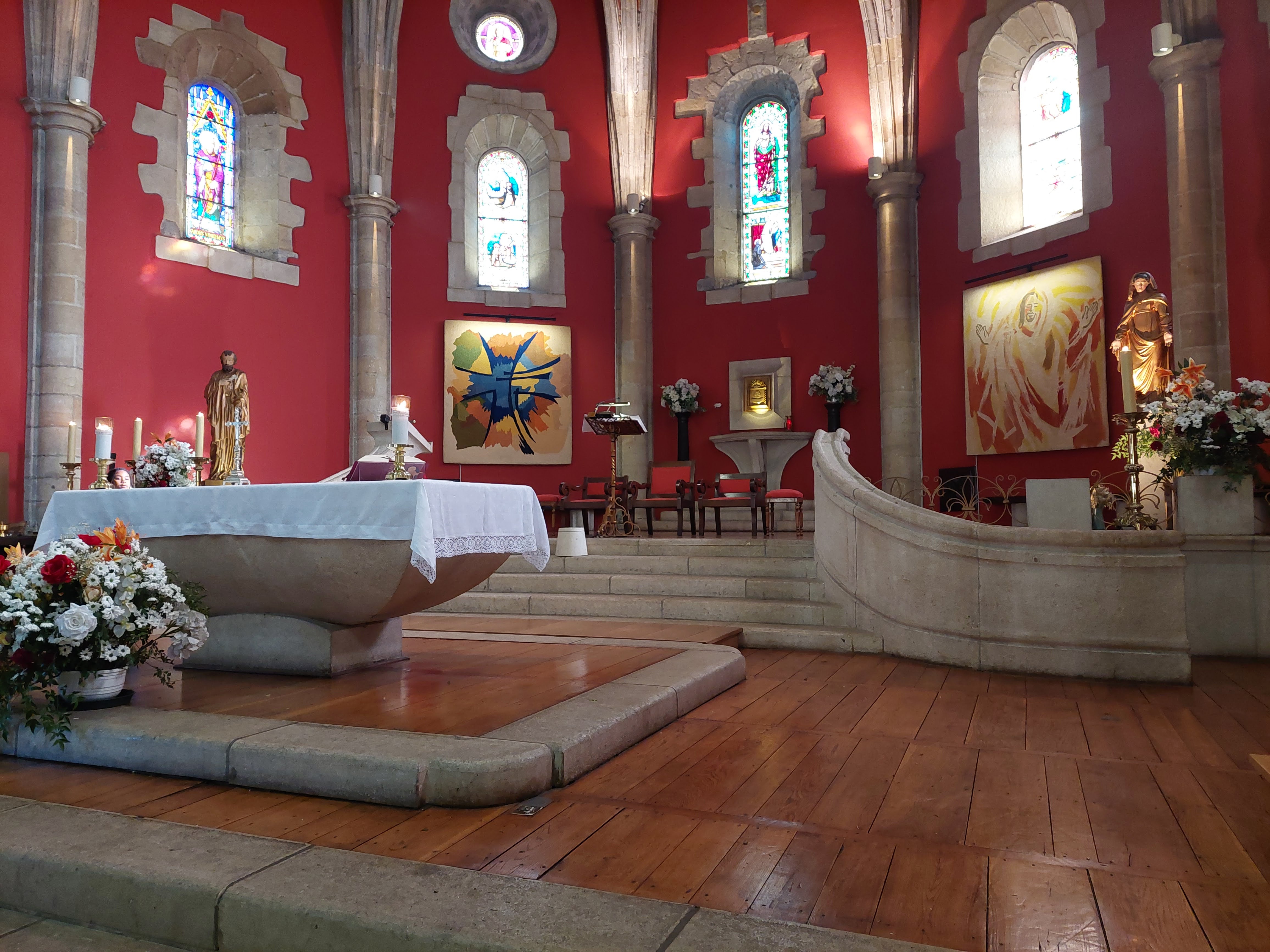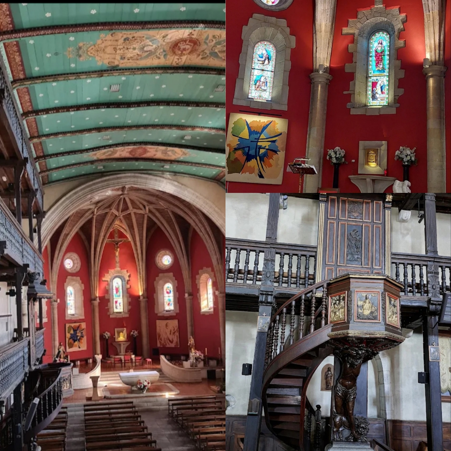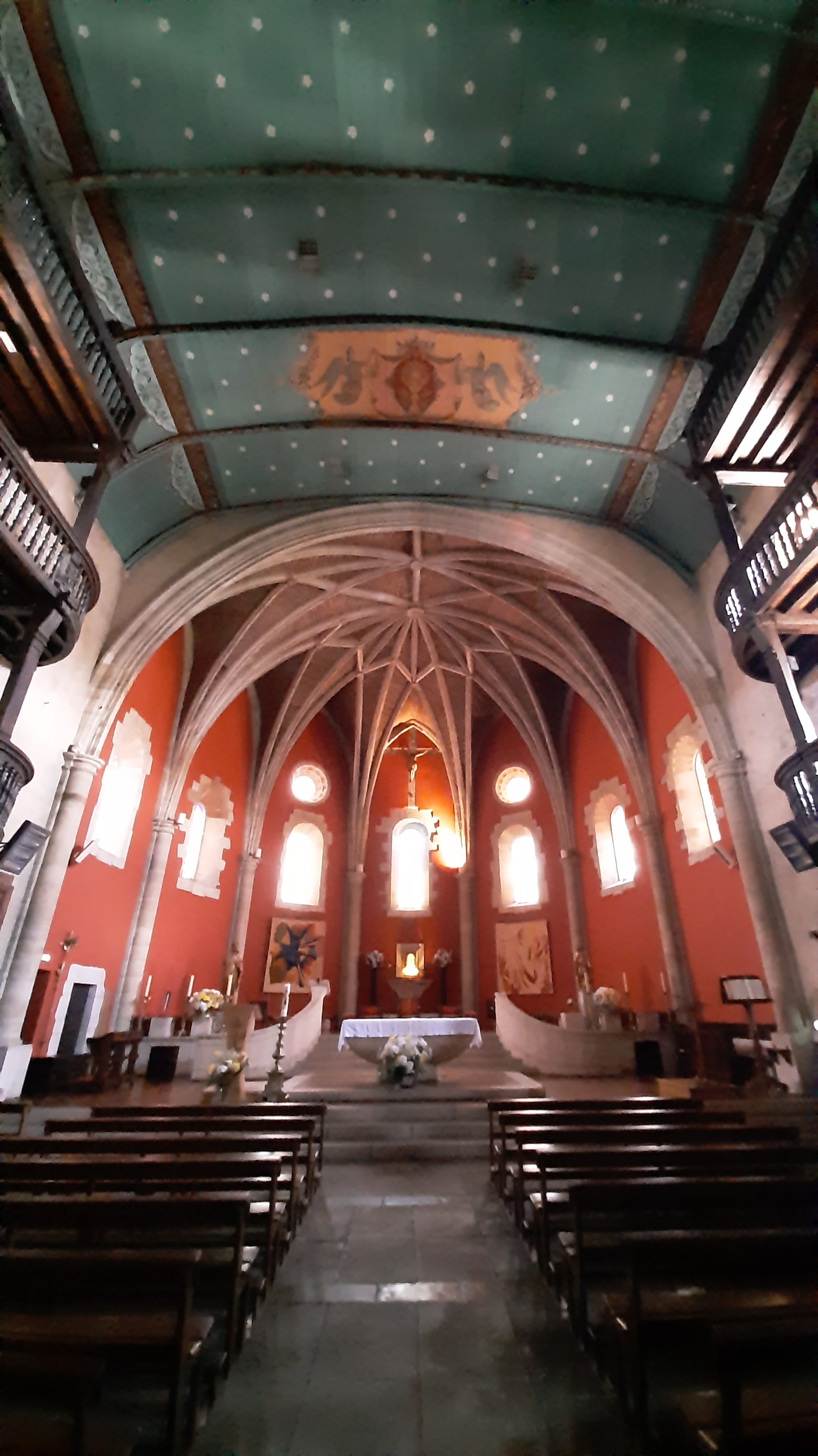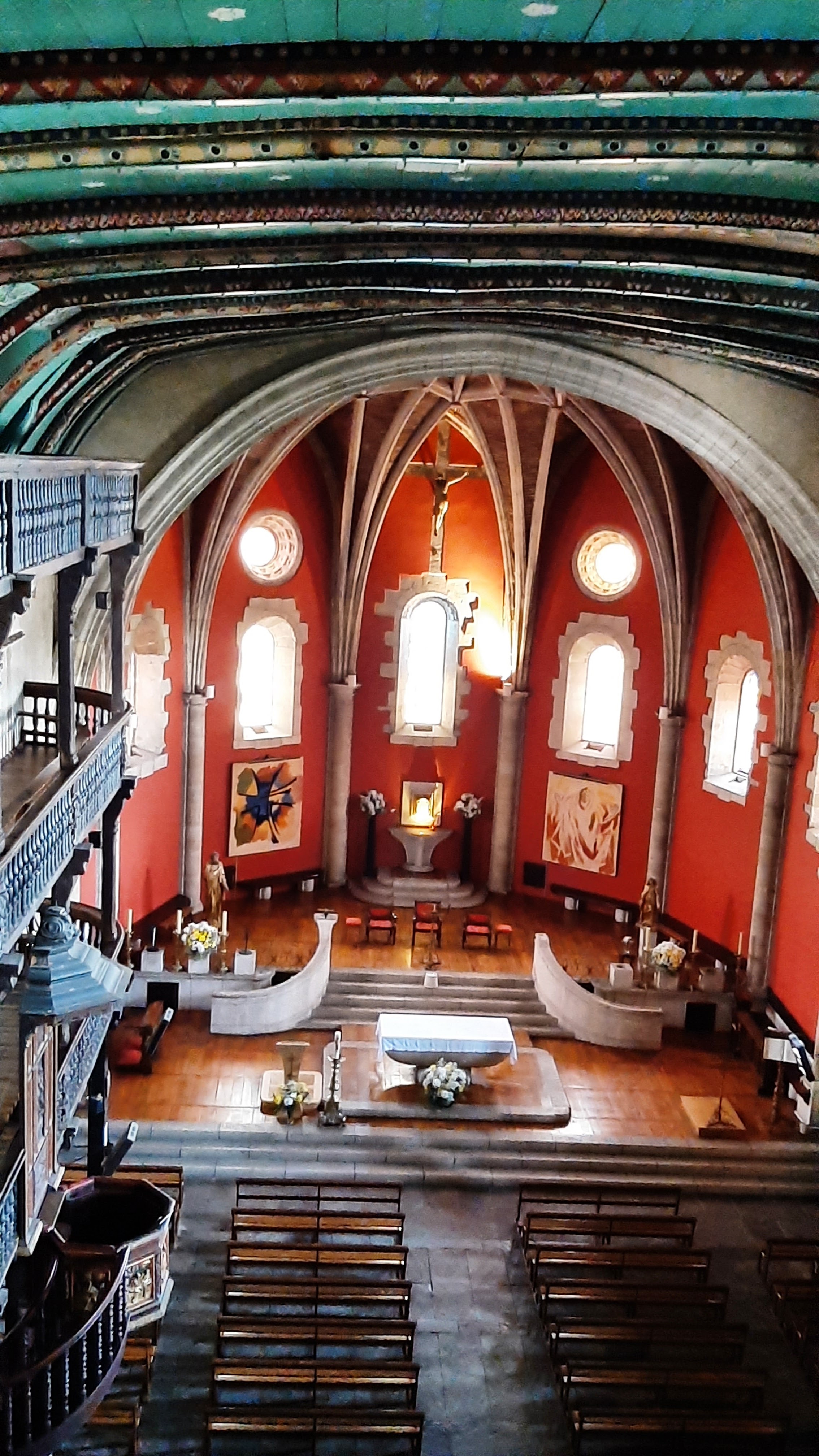 super! peintures au plafond et galeries incroyables sur trois niveaux. Réception typique des églises et synagogues basques