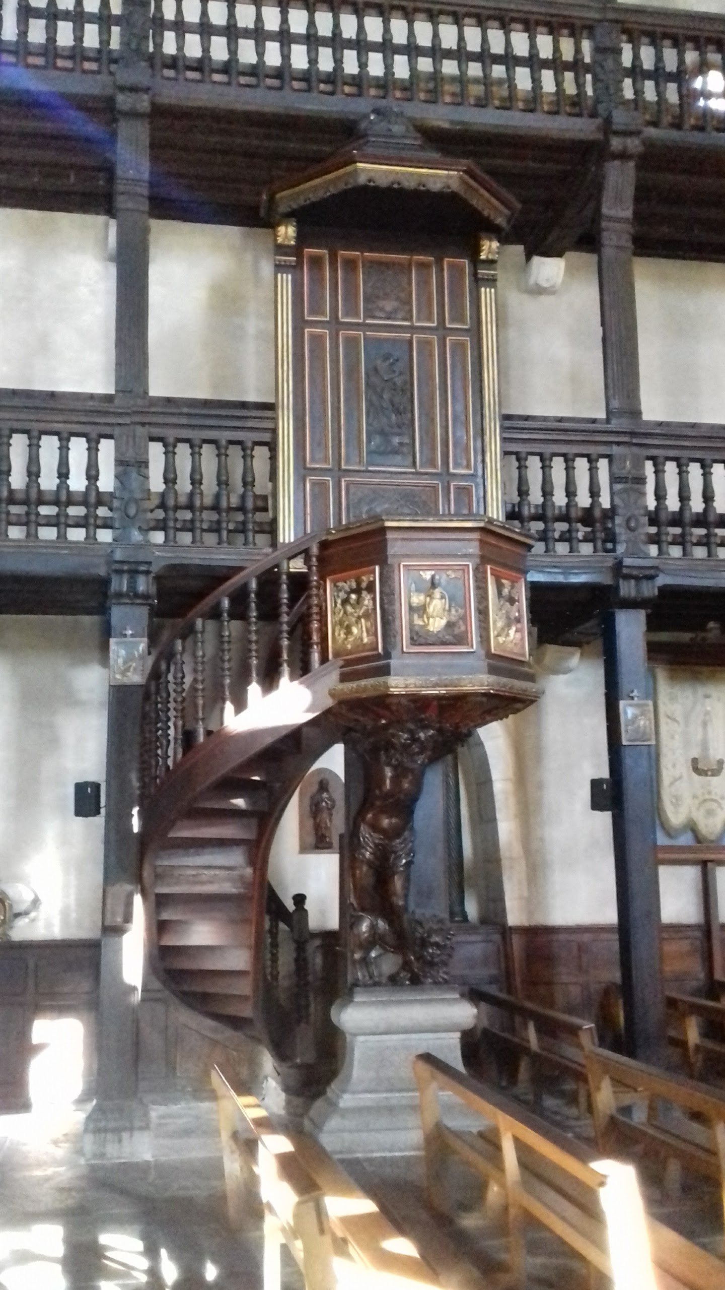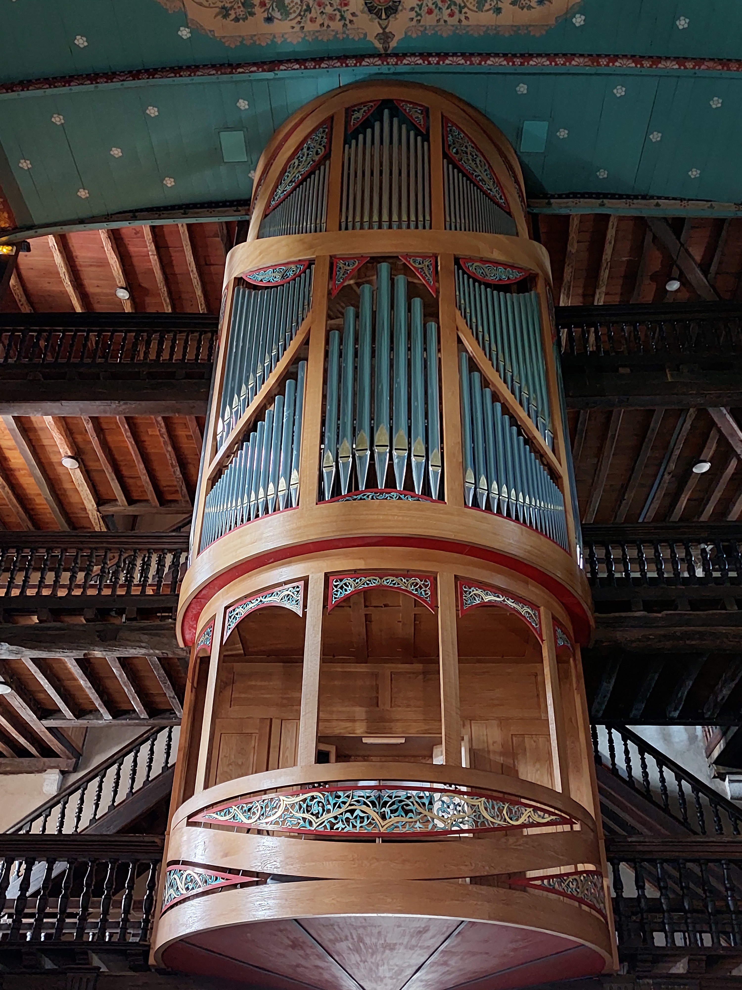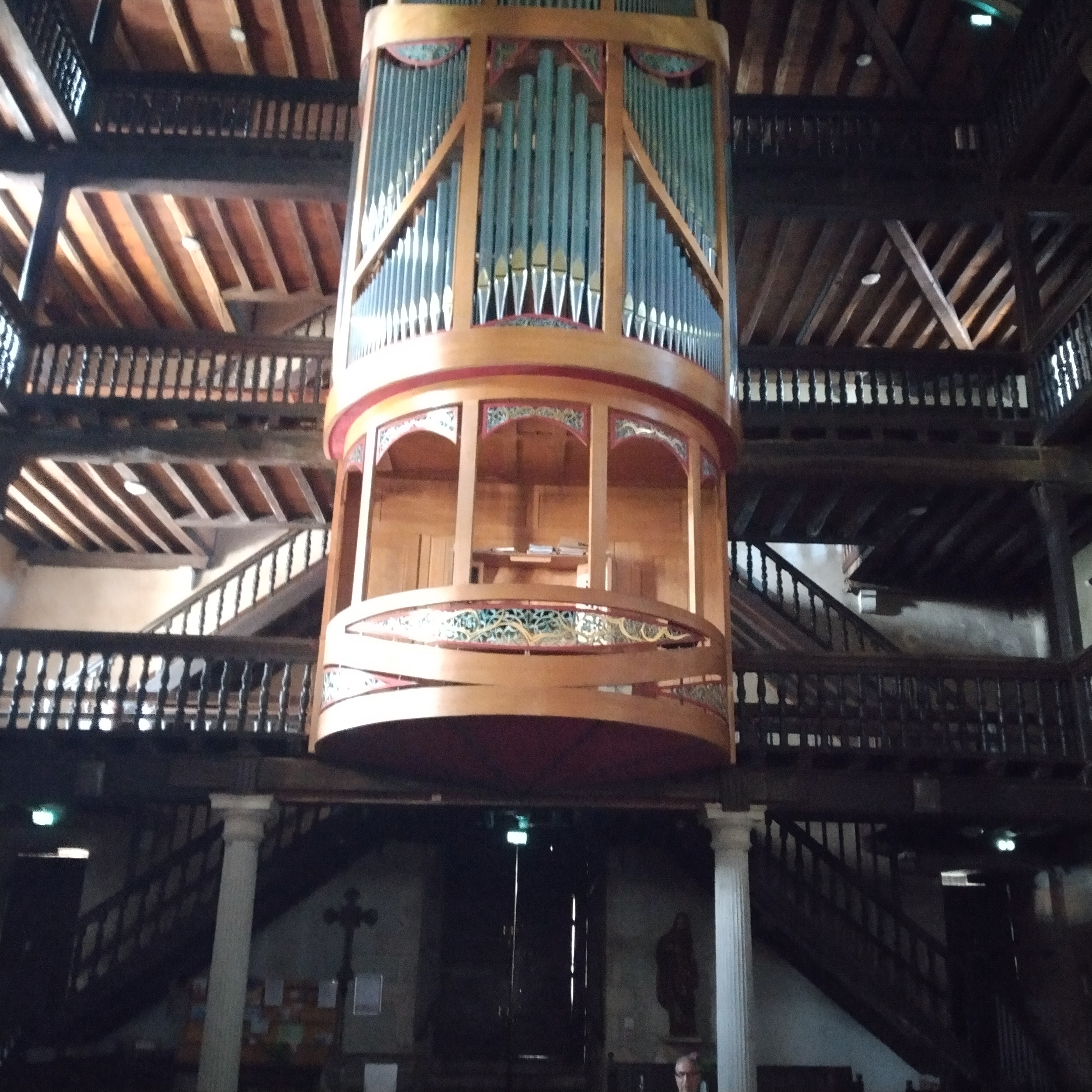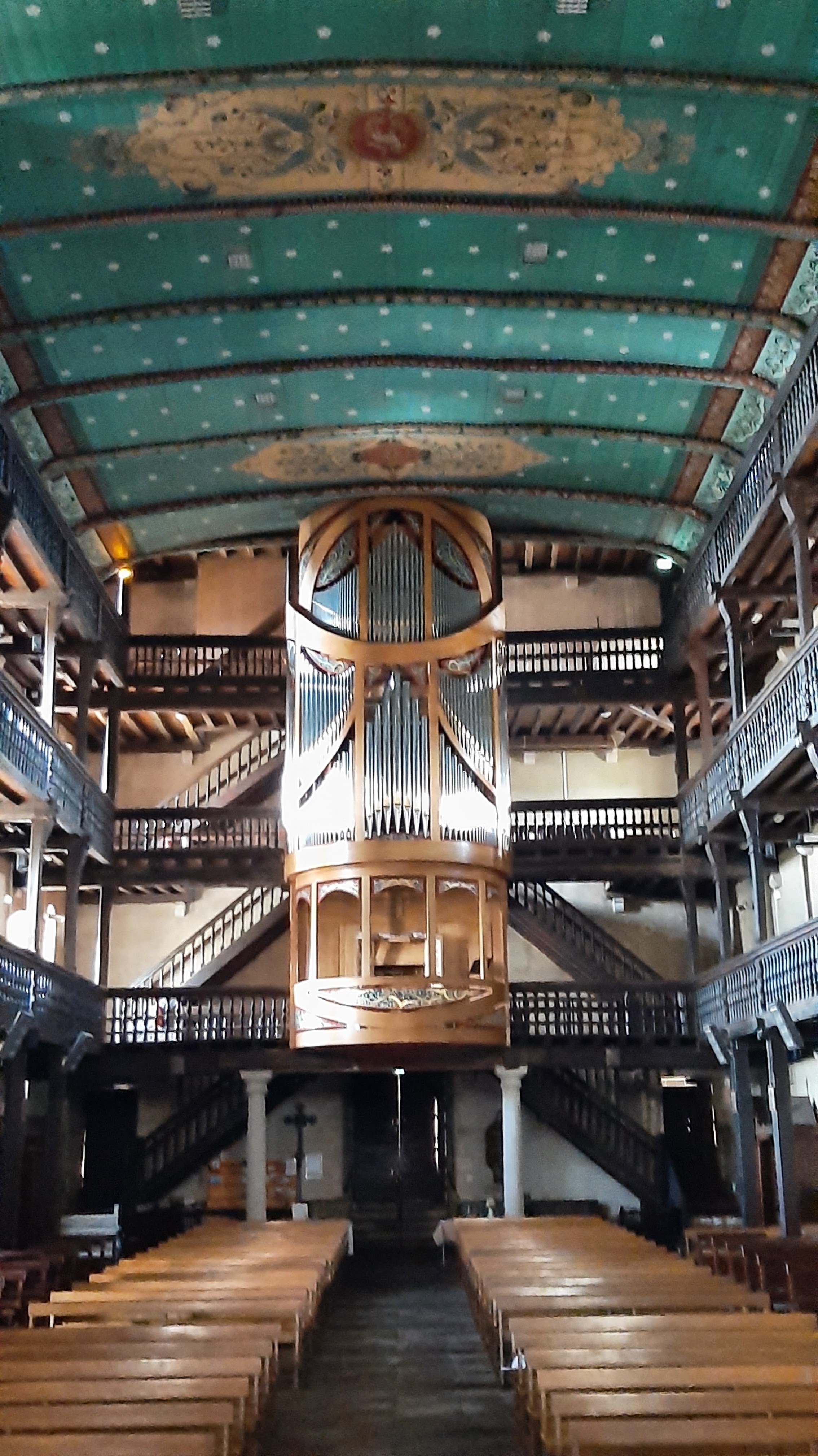 L'église est vraiment très belle à l'intérieur et on peut monter par des escaliers en bois jusqu'aux balcons d'en haut. Très belles orgues.