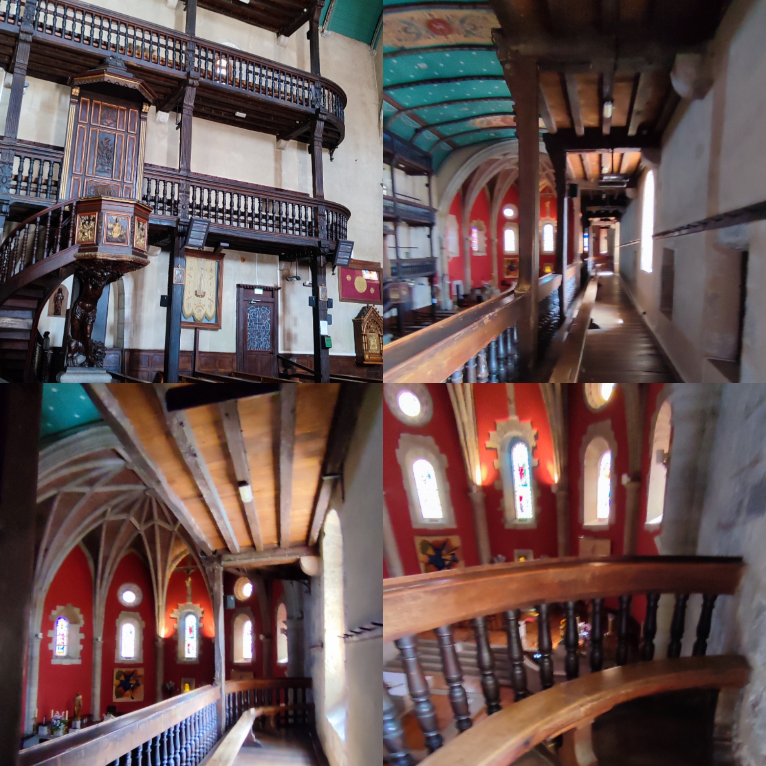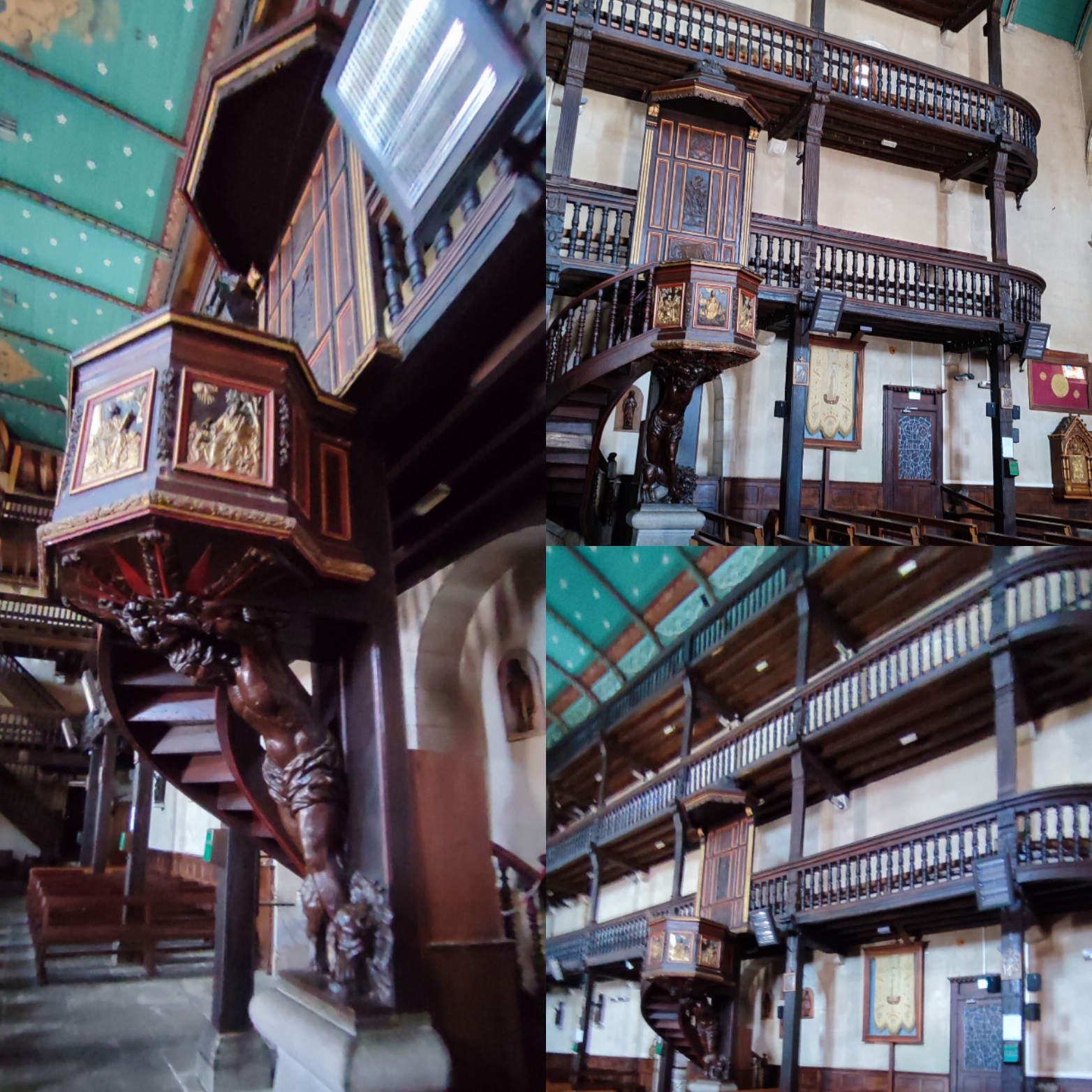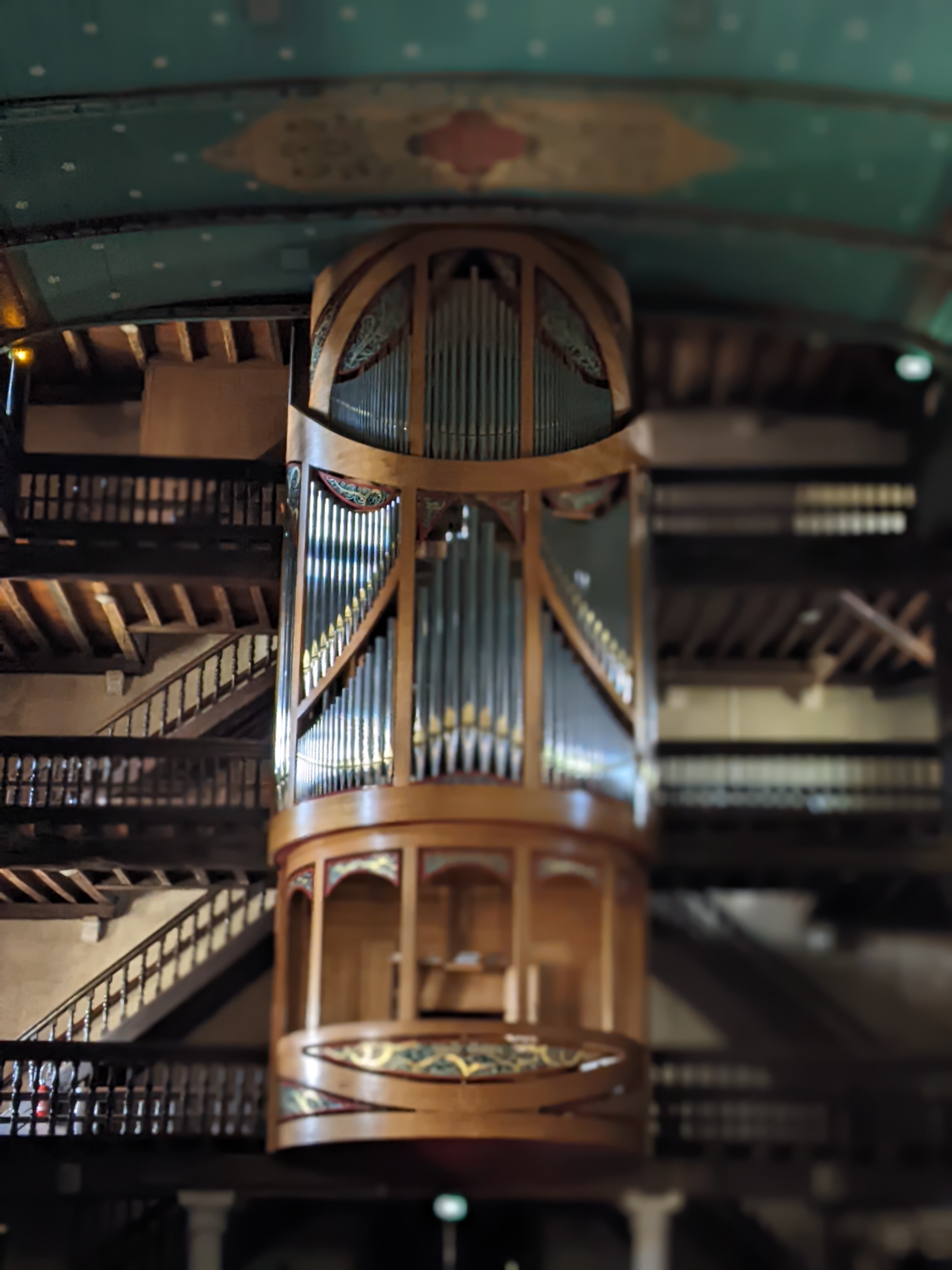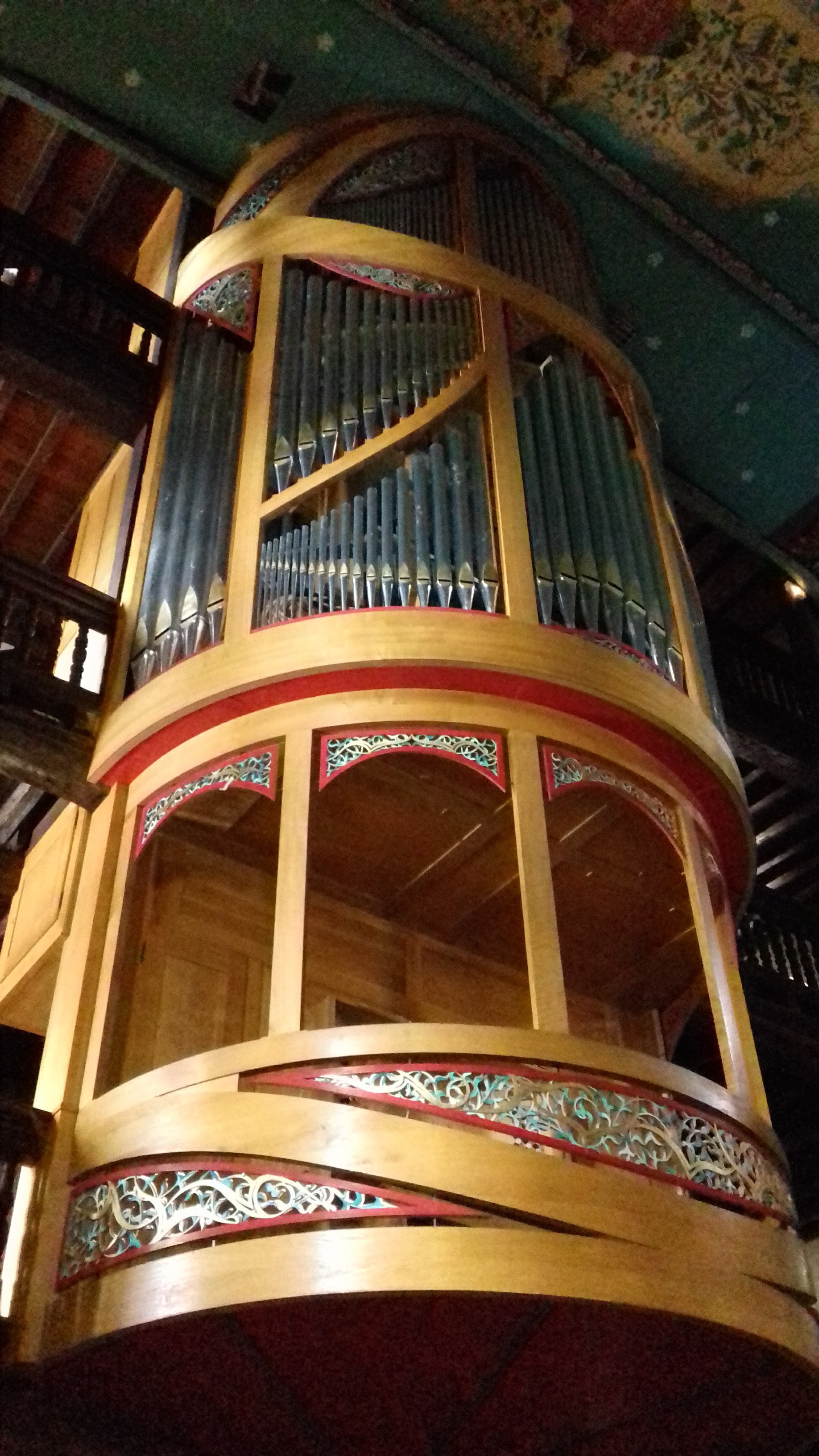 L'église est vraiment très belle à l'intérieur et on peut monter par des escaliers en bois jusqu'aux balcons d'en haut. Très belles orgues.
