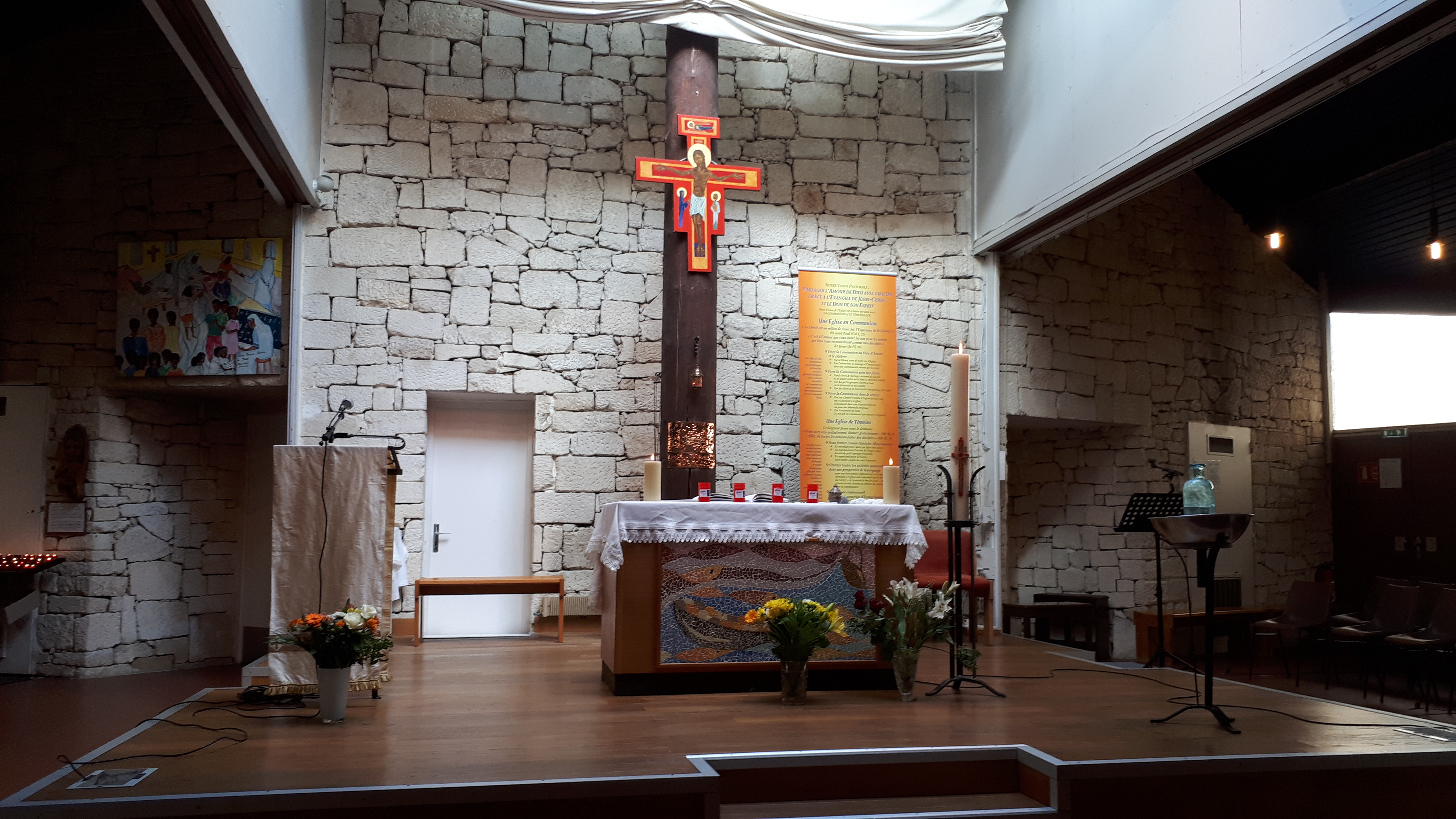 C était le baptême de mon petit fils l extérieur n est pas super beau mais l intérieur est plein de chaleur un baptême célébré par le diacre ce 8 septembre dans l amour de Dieu avec chaleur et bonne humeur (4 baptêmes en dehors d une messe mais super sympa)