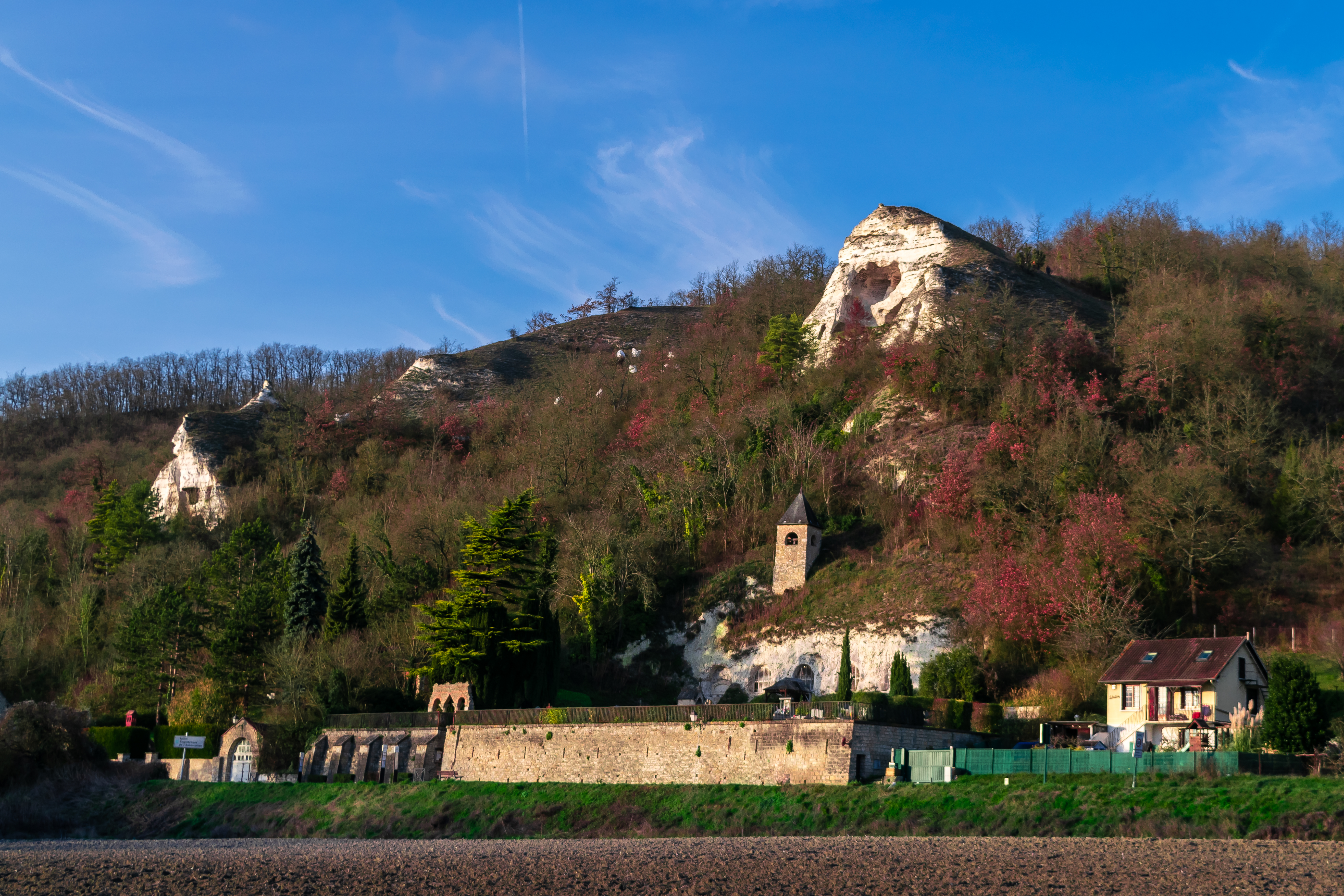 Trop beau eglise troglodyte a haute isle a cote de la roche guyon les maisons de ouf qui y a par la les roches super beau