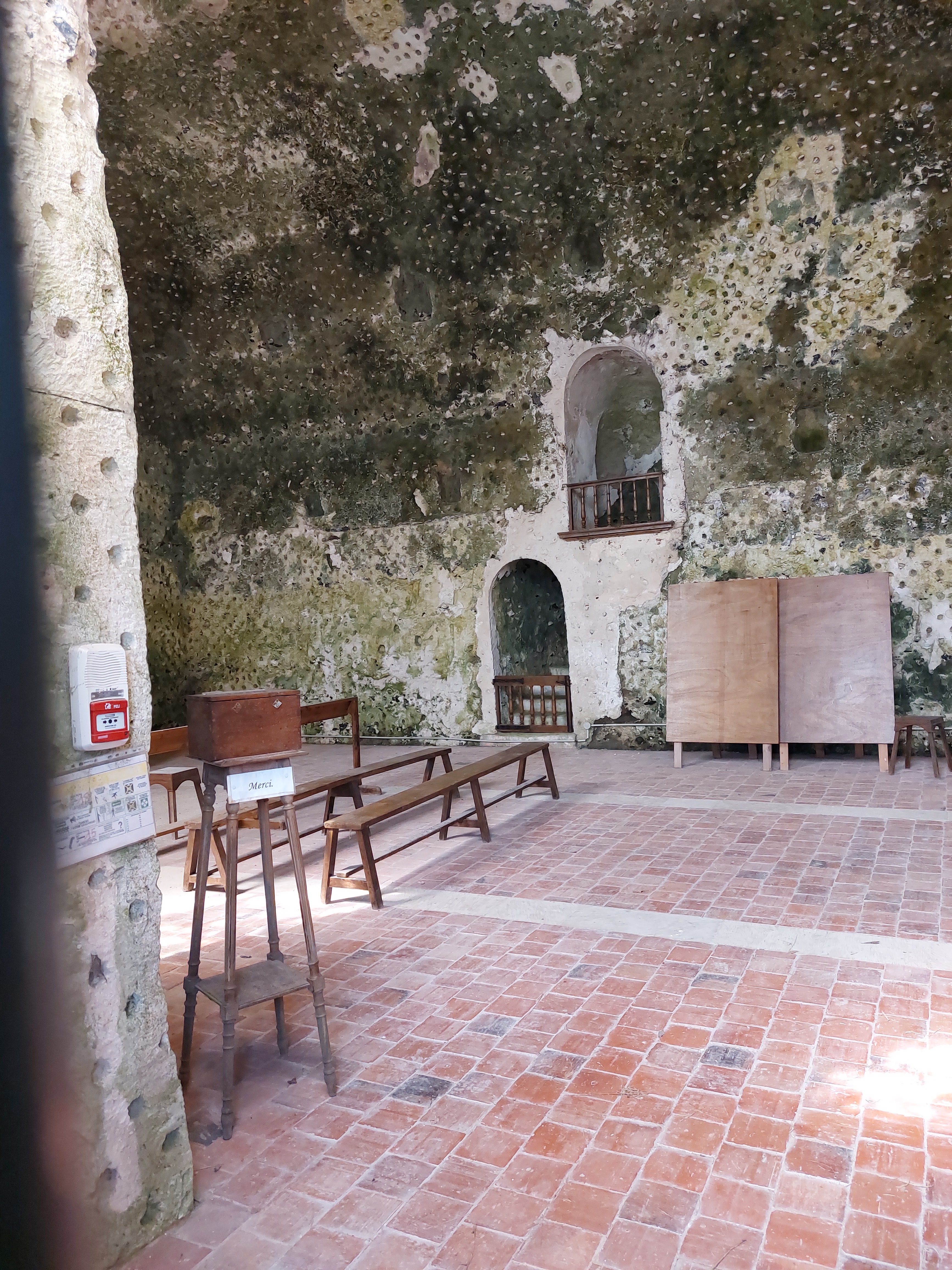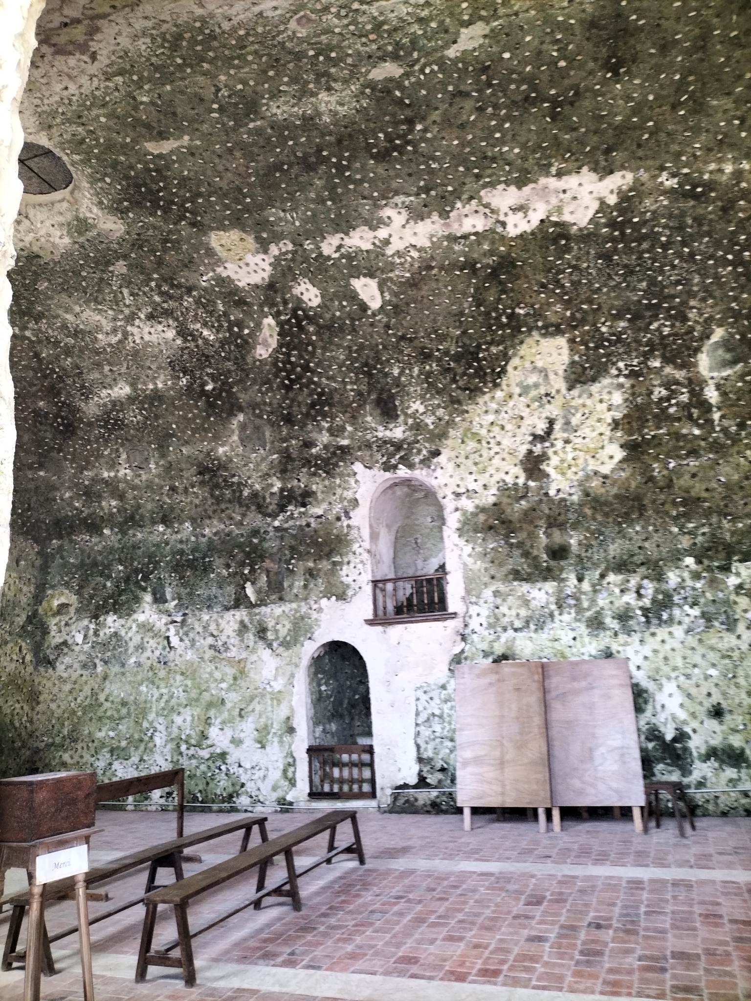 Même si nous n'avons pas pu entrer car elle était fermée, on a pu voir depuis l'extérieur la pièce creusée dans la falaise et c'est étonnant.