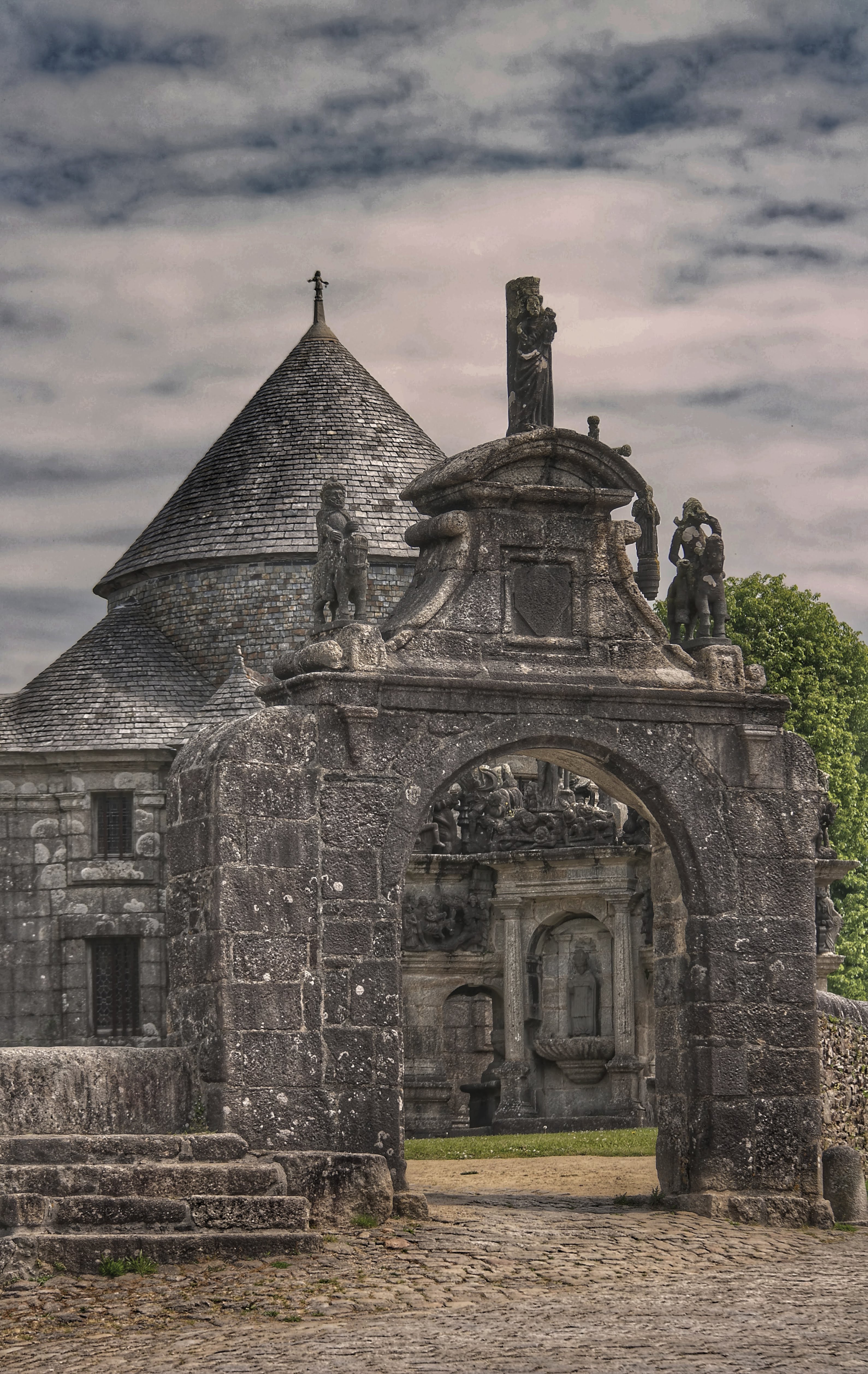 Ensemble paroissial particulier typique du Finisterre en Bretagne. Il en existe de nombreuses, chacune avec sa particularité.