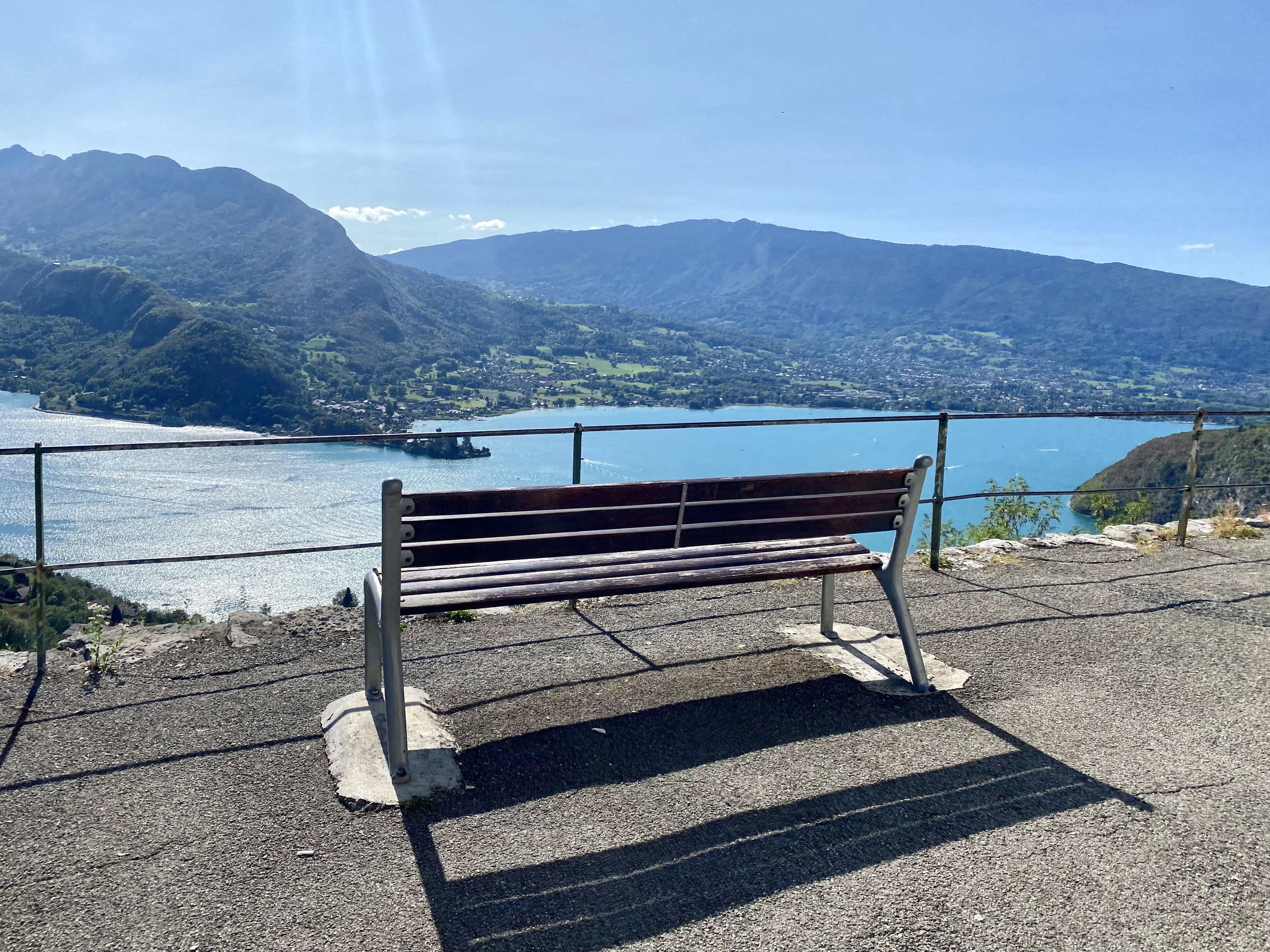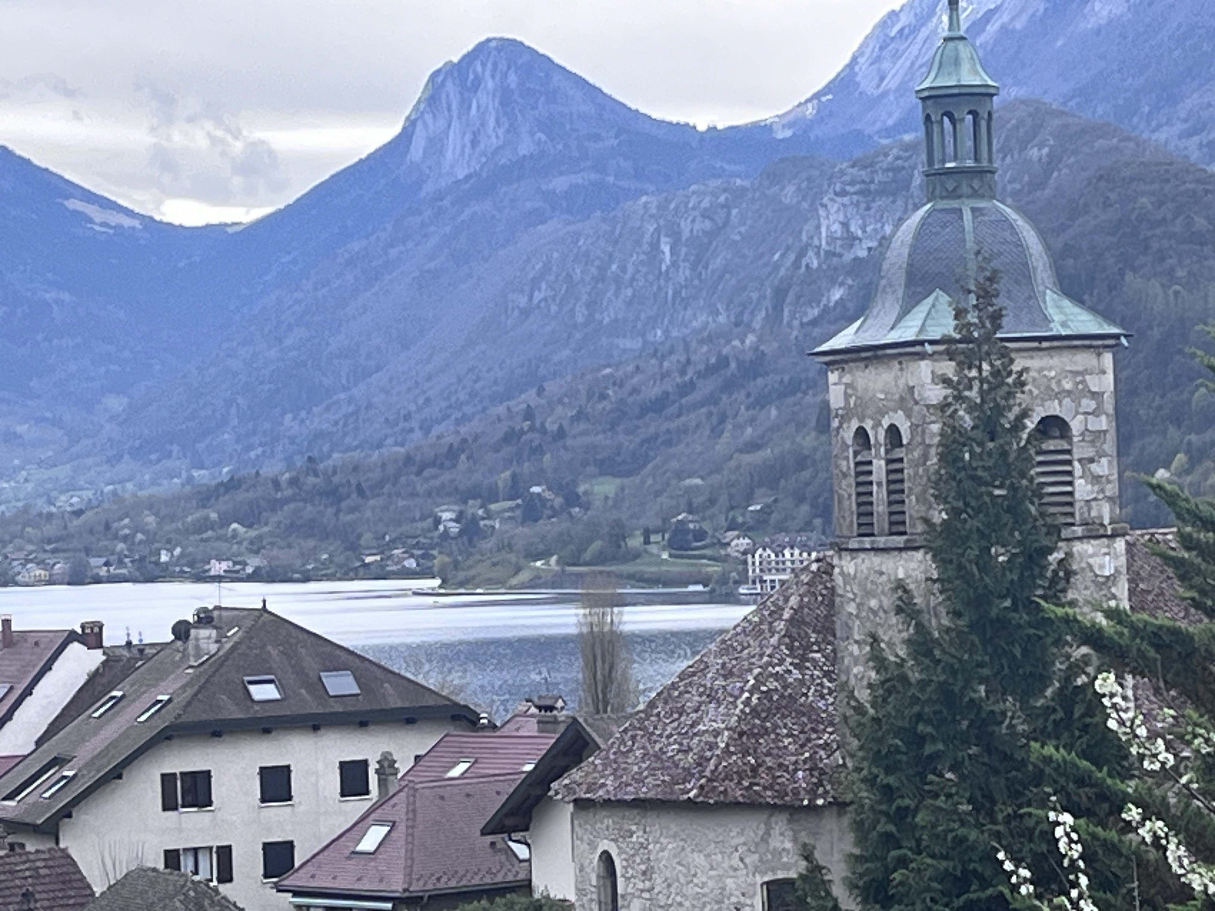 Vue incroyable sur le lac depuis le parvis de cette petite église, située au calme dans les hauteurs du lac d’Annecy