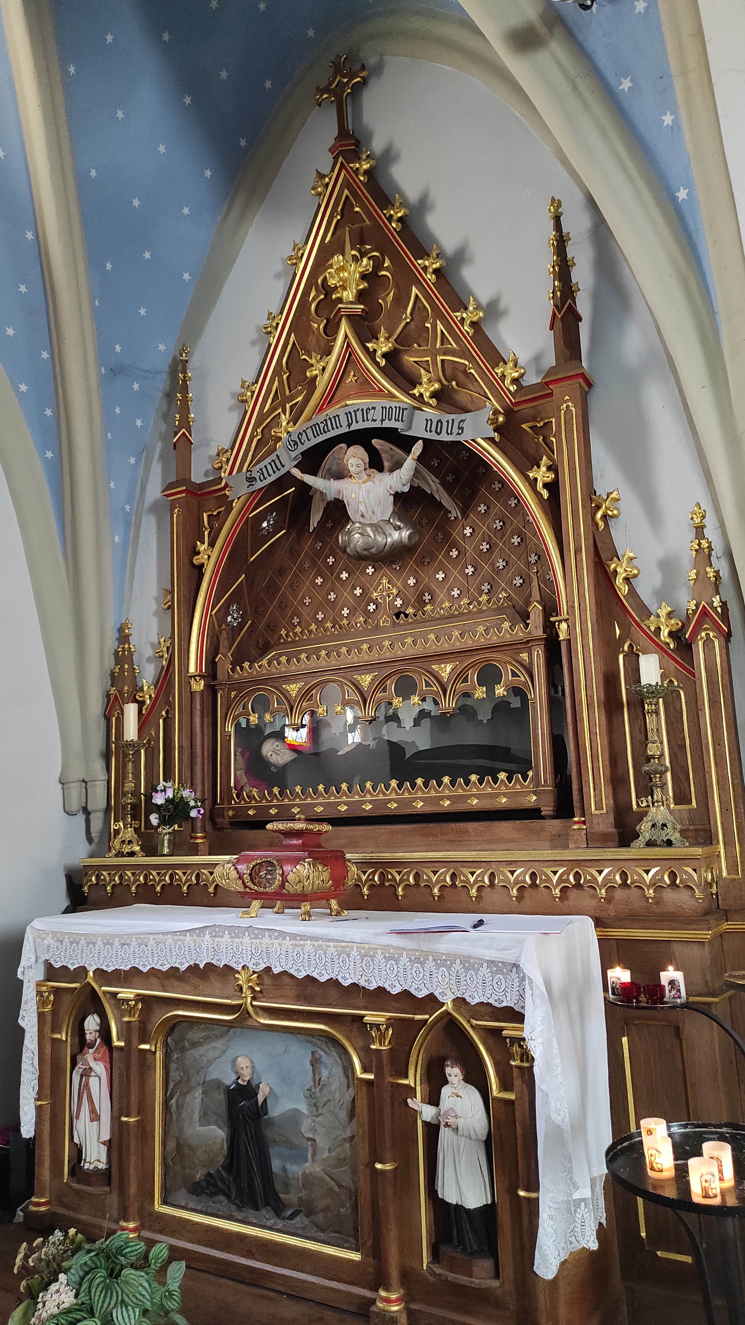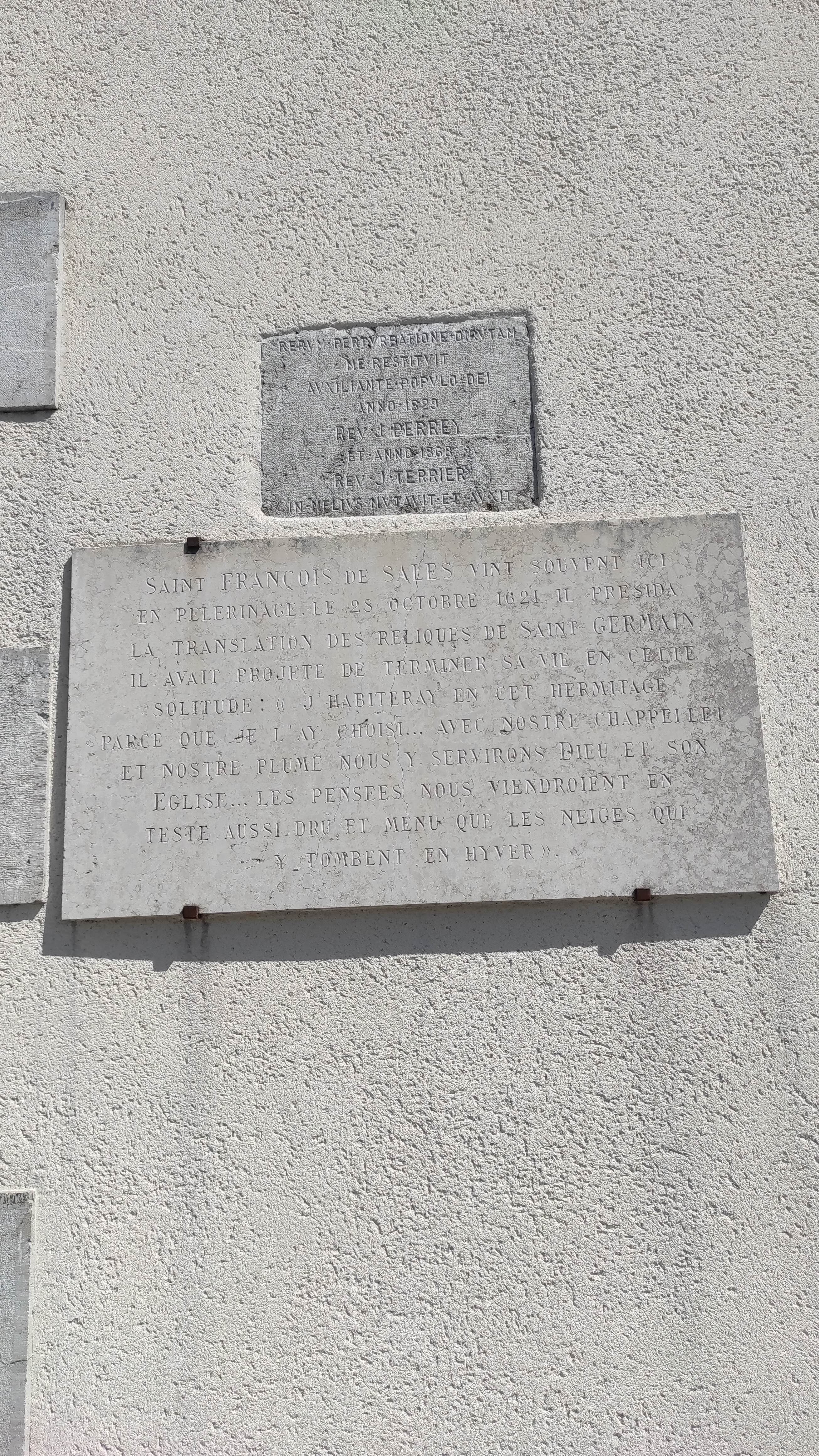 Ermitage de Saint Germain sur Talloires L extérieur est très joli depuis la route et en arrivant devant on trouve une belle entrée Par contre des pancartes annoncent que des tuiles peuvent tomber du toit L intérieur est très foncé Ce monument mérite rapidement des travaux