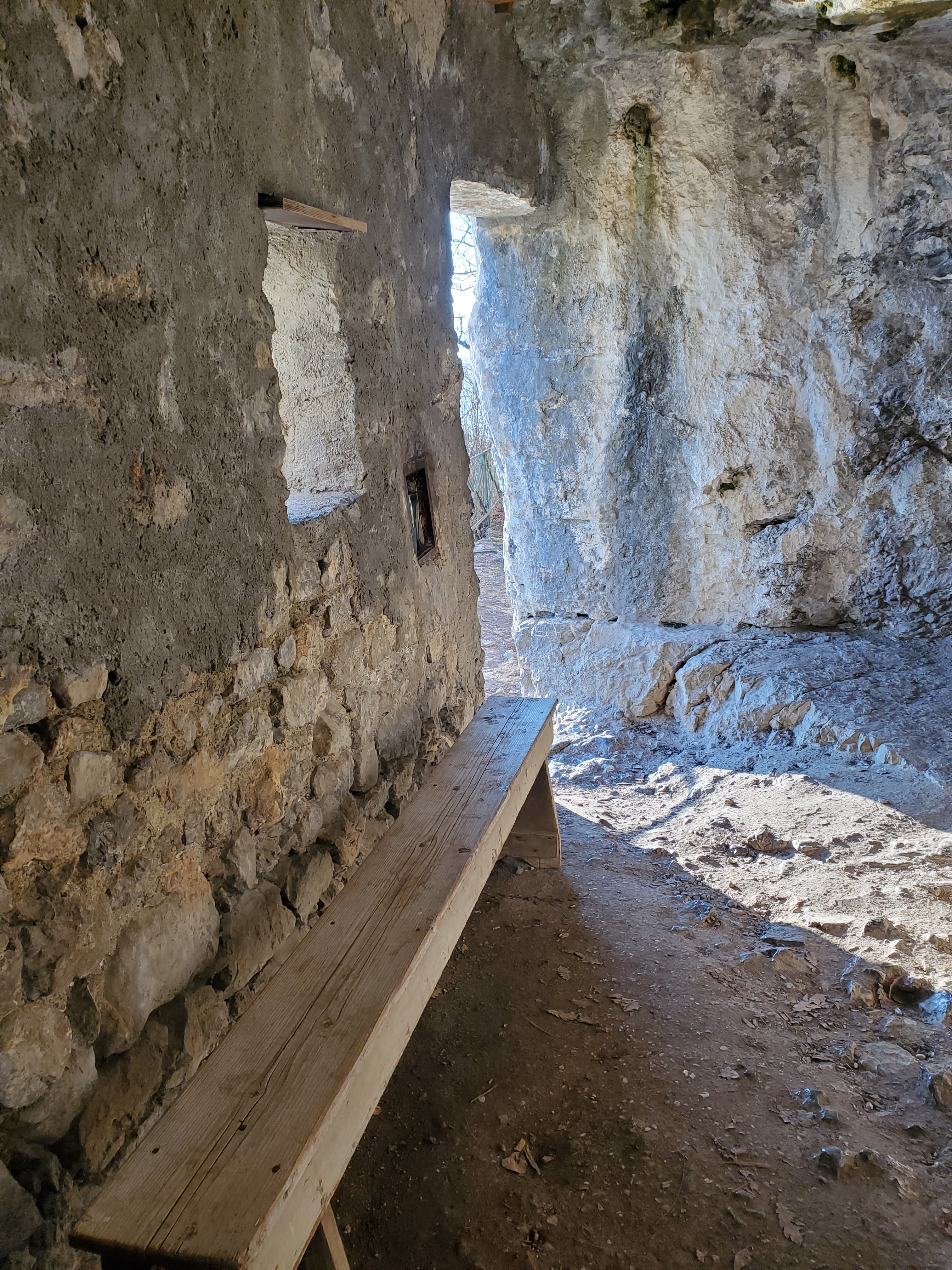 Petite chapelle bien dissimulée dans la roche. Une vue spectaculaire sur le lac d'Annecy.
