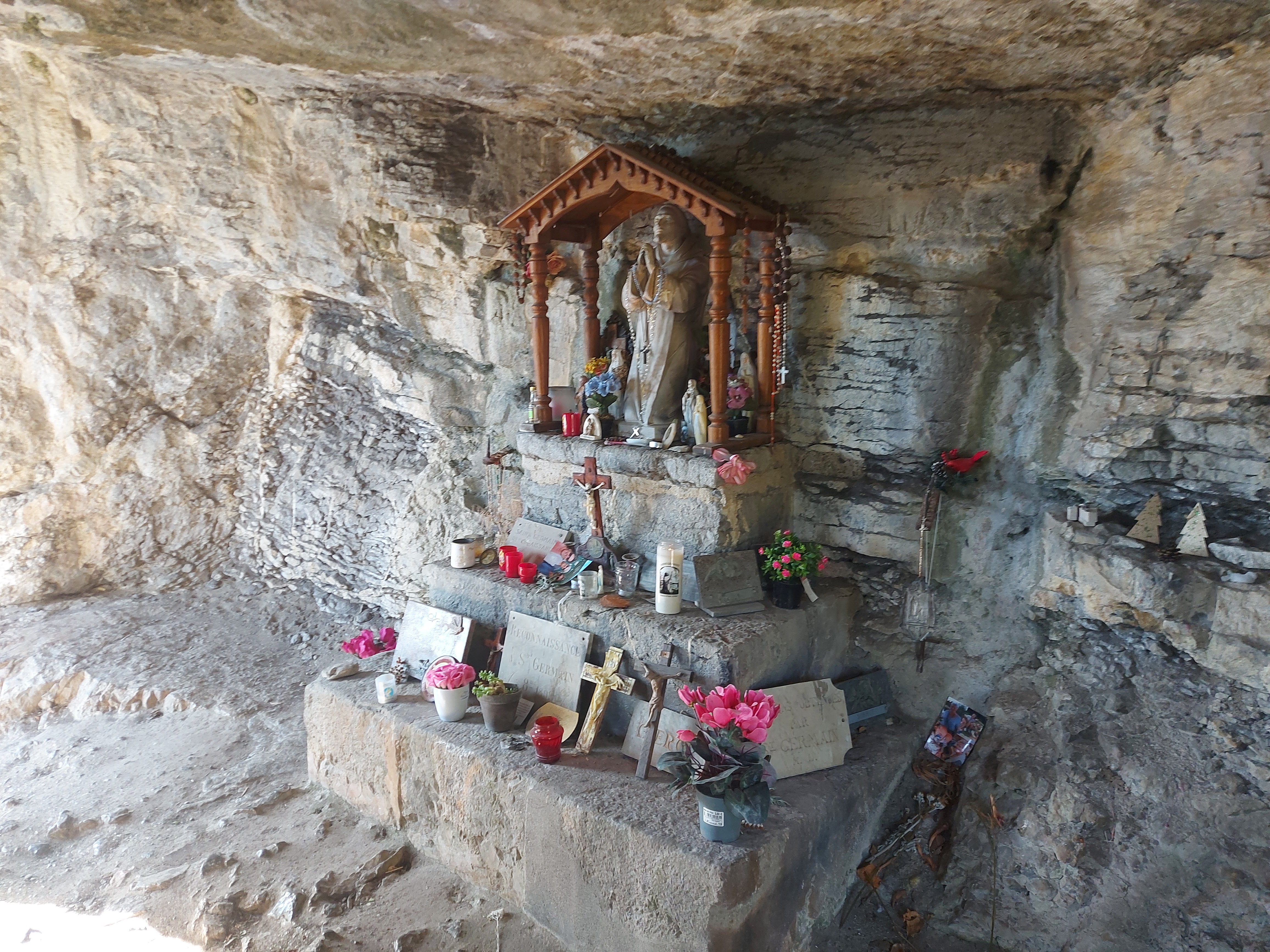 Belle petite chapelle et grotte. Très belle vue sur le lac en allant à la grotte.
