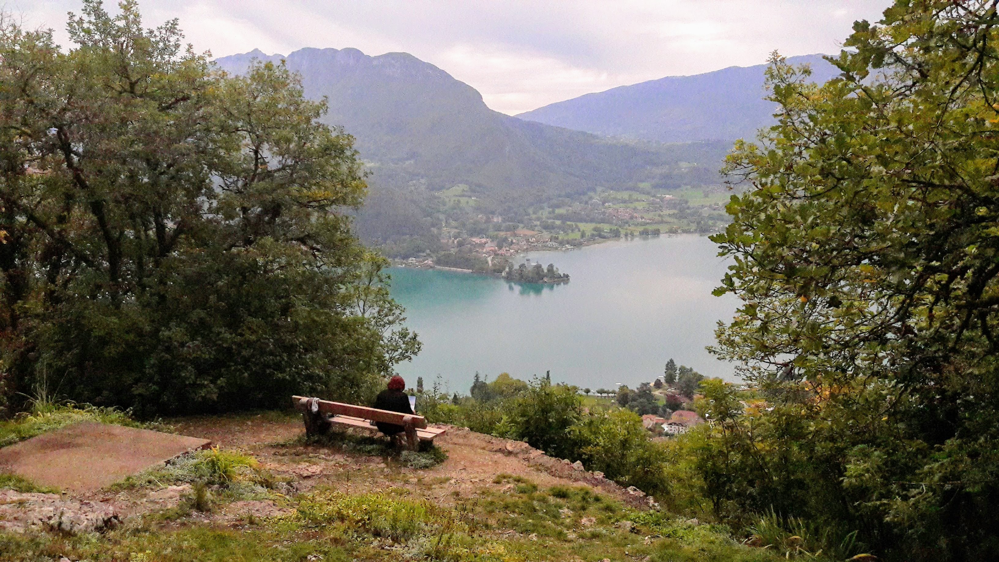 Belle vue sur le lac d'annecy, endroit tranquille et envoutant. Attention tout petit parking accessible par une petite rue qui grimpe fort raide sur 80m.